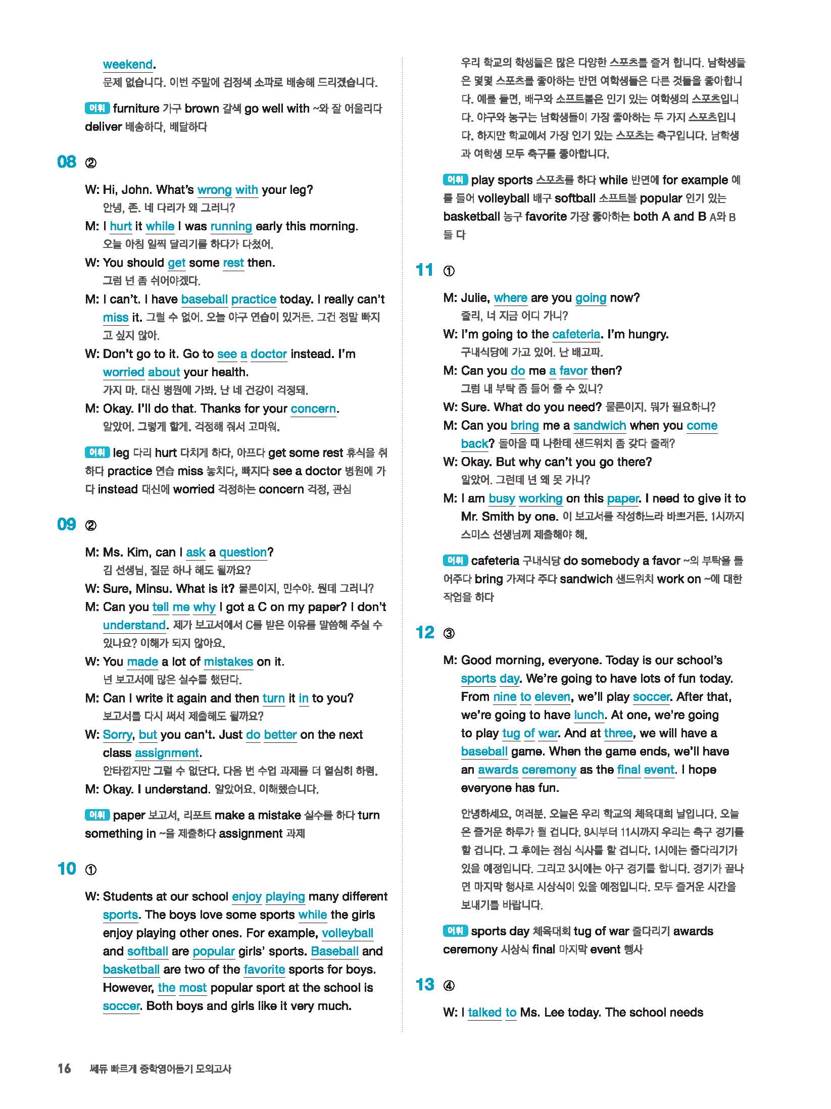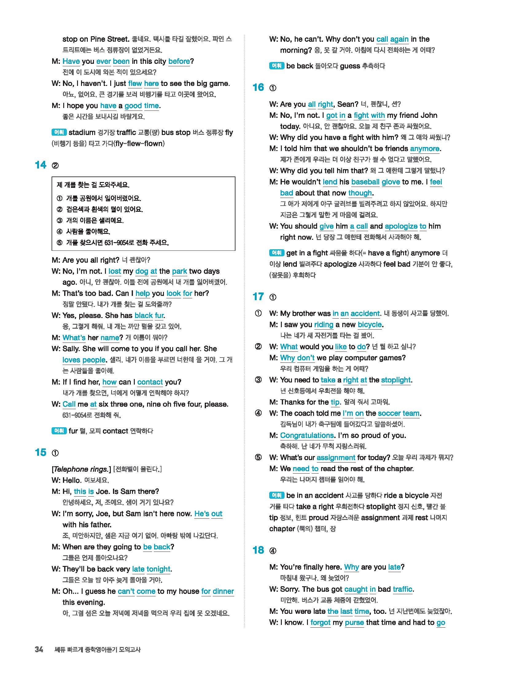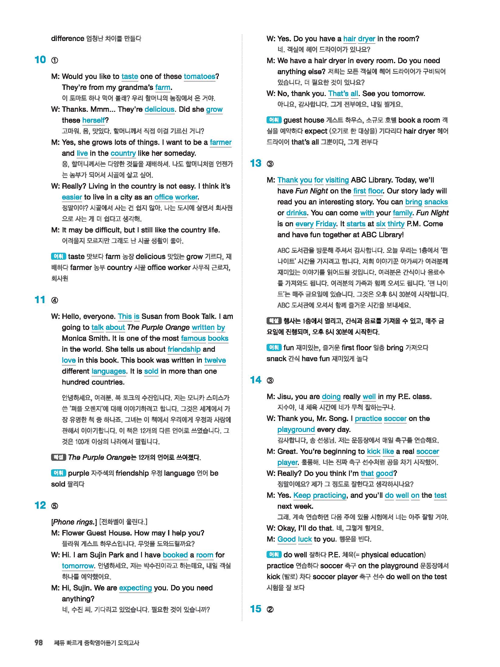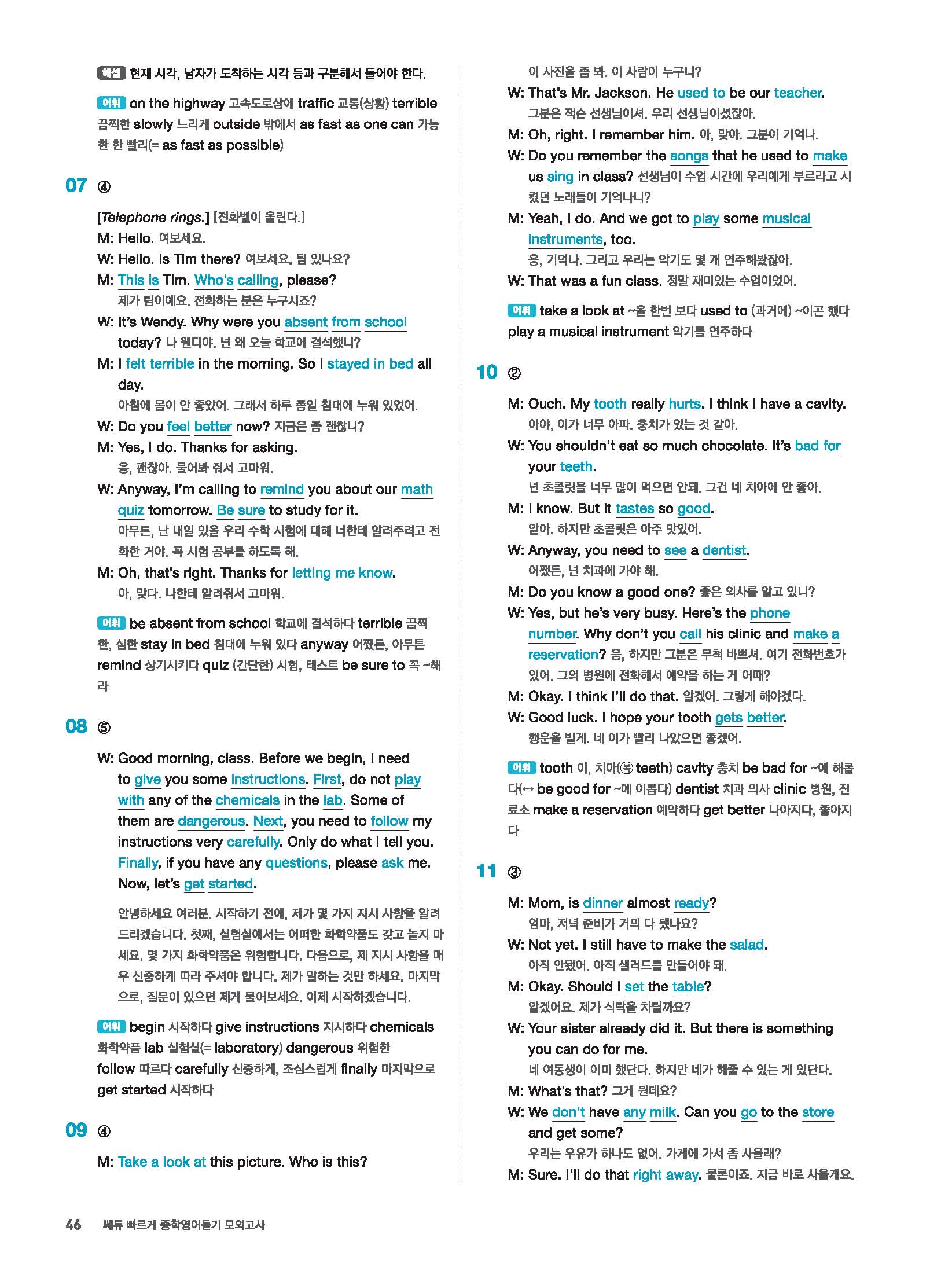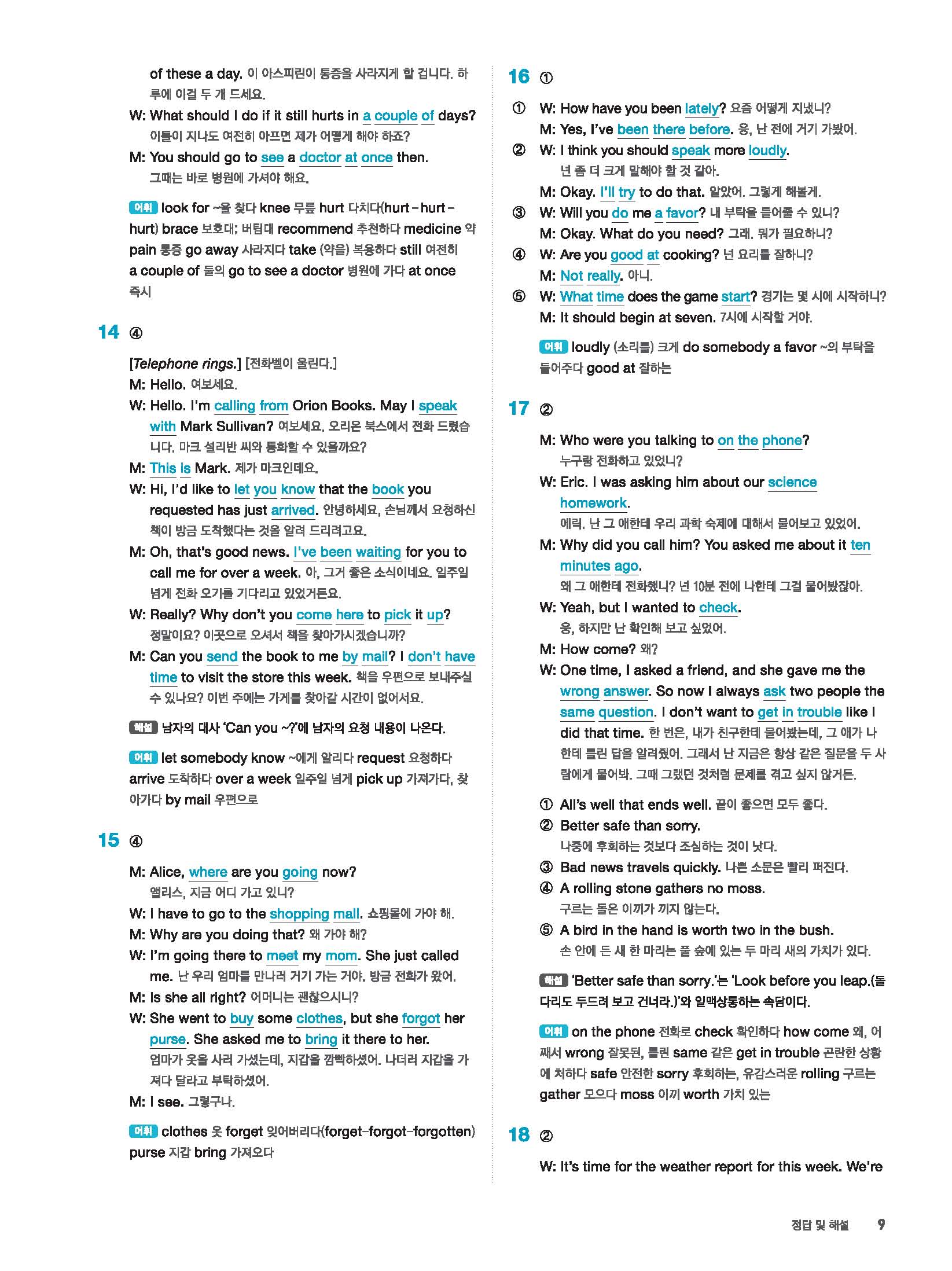 빠르게 중학 영어듣기 모의고사 20회 2 정답 및 해설 답지 빠른답지 사진답지 모바일최적화