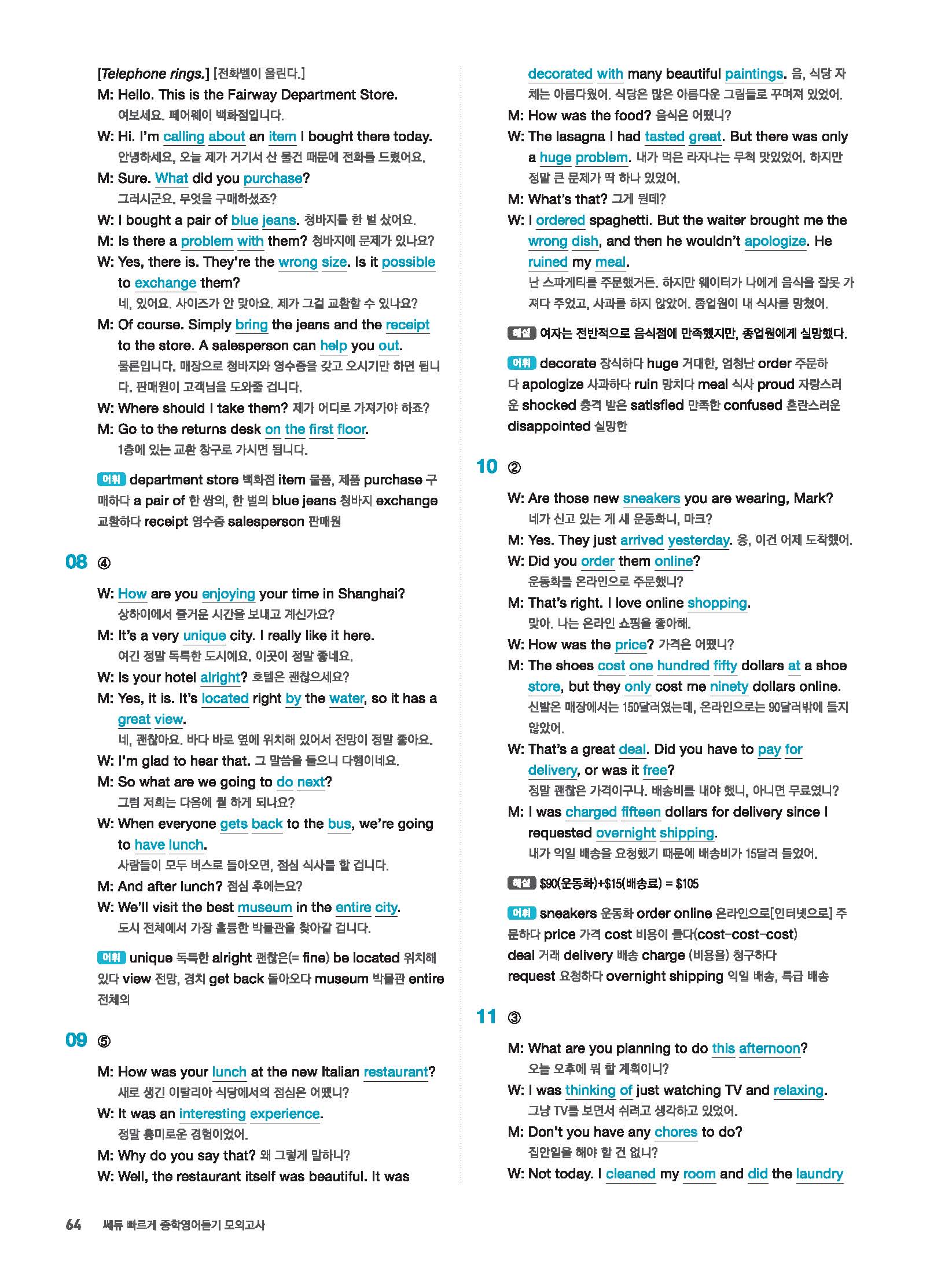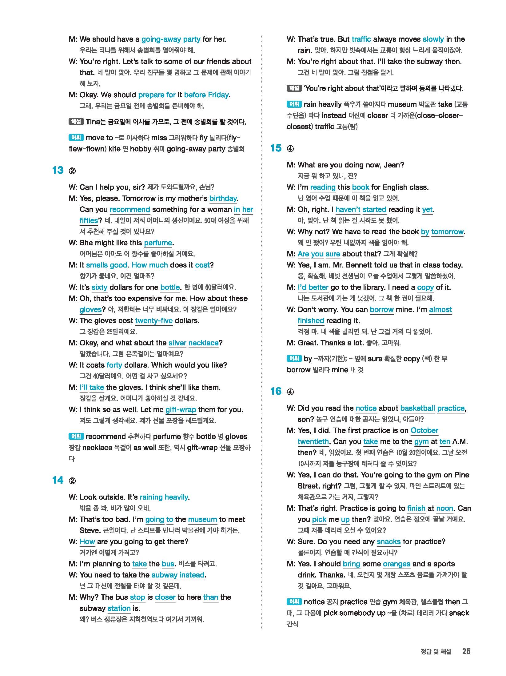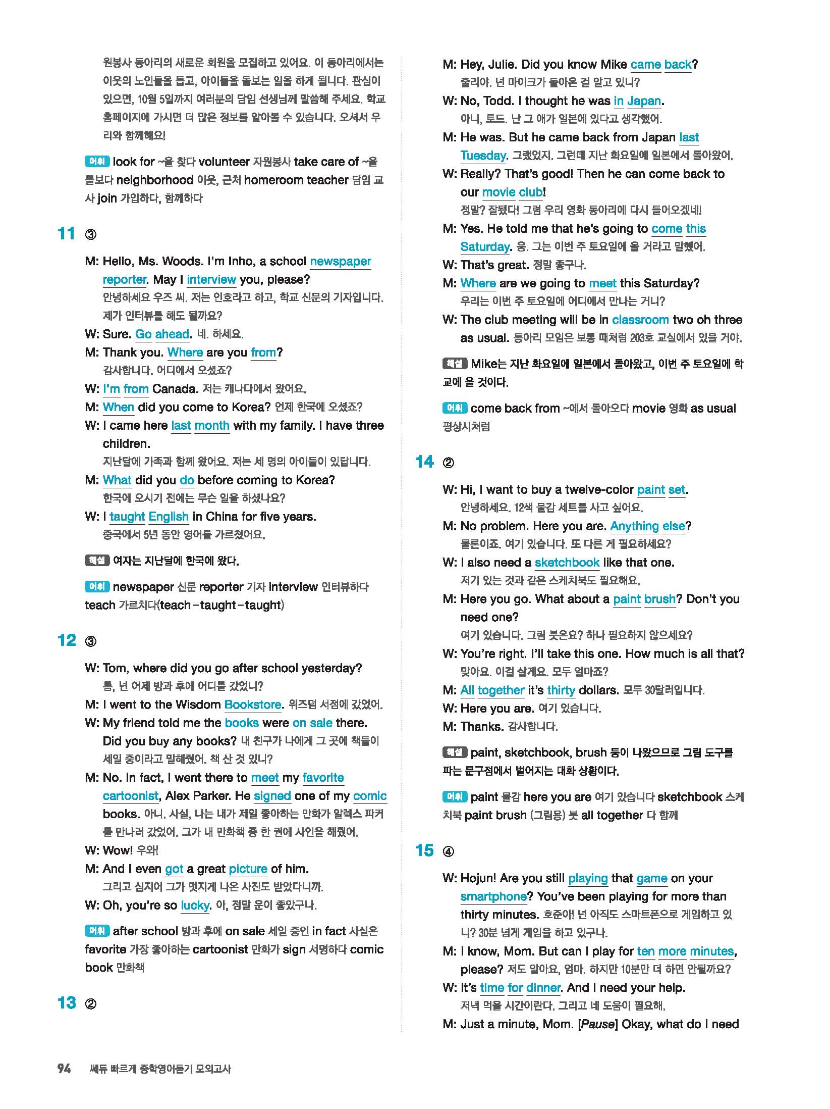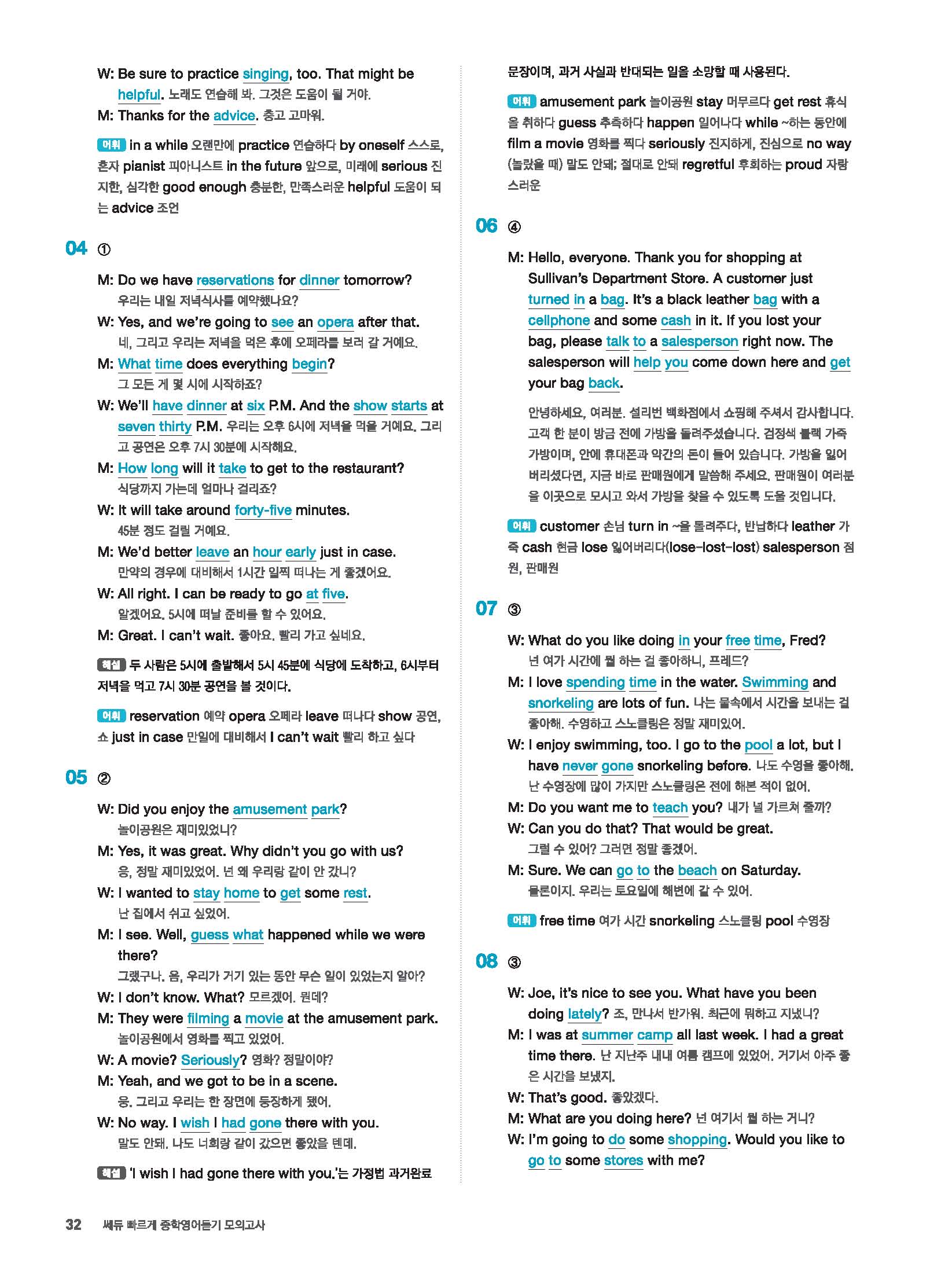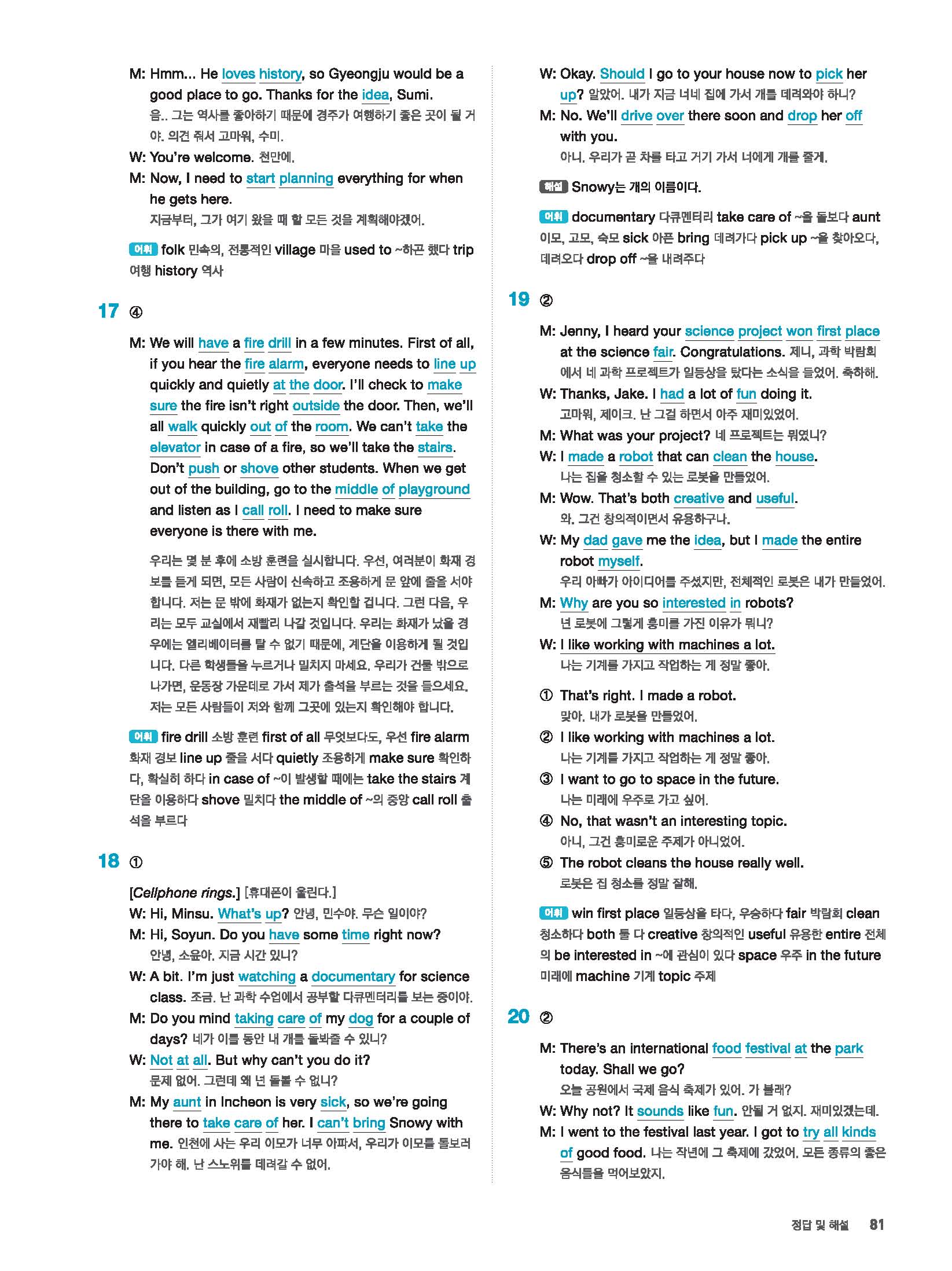 빠르게 중학 영어듣기 모의고사 20회 2 정답 및 해설 답지 빠른답지 사진답지 모바일최적화