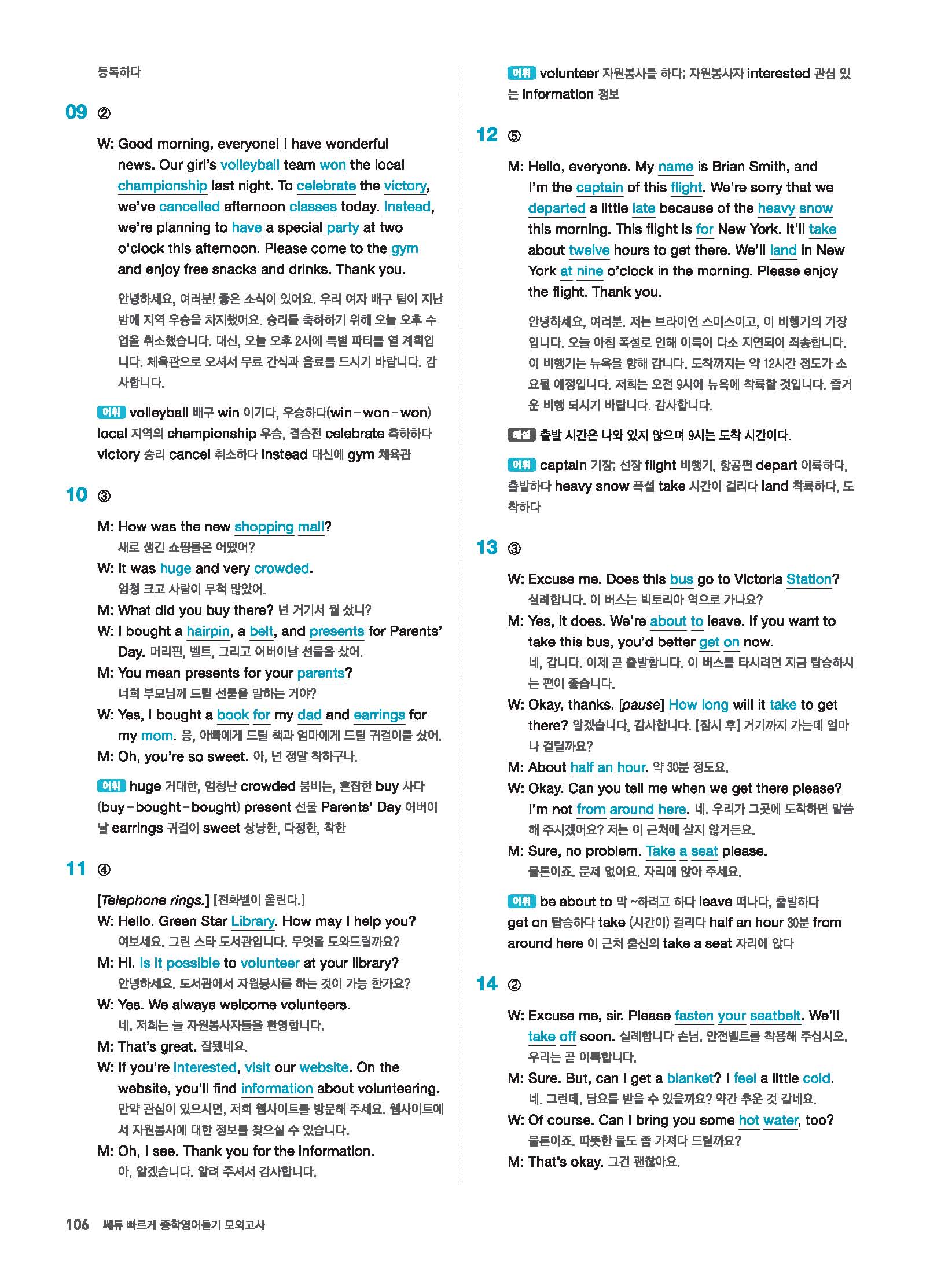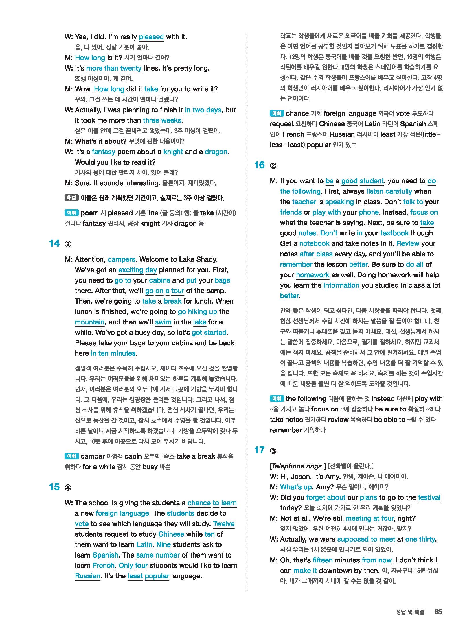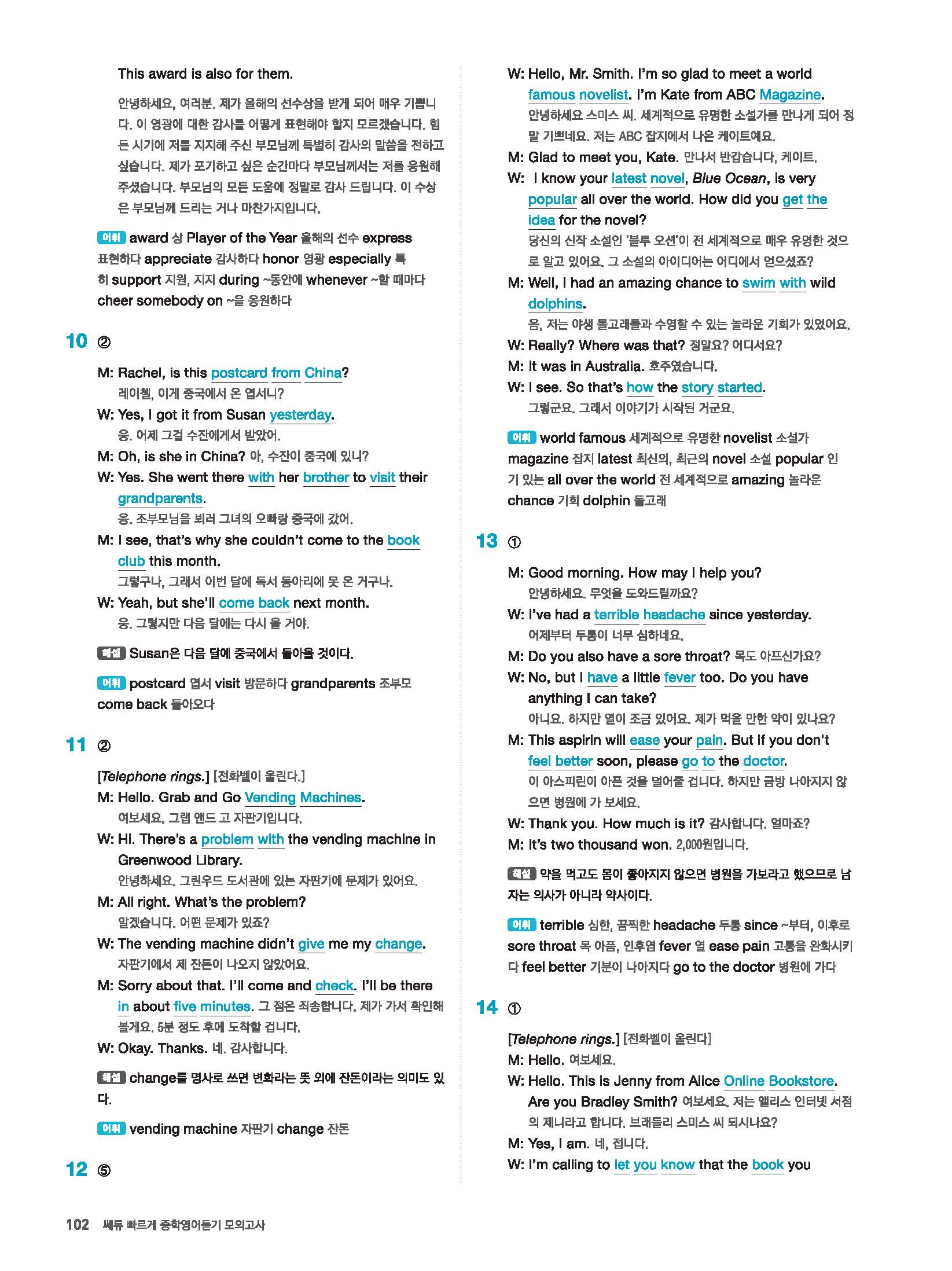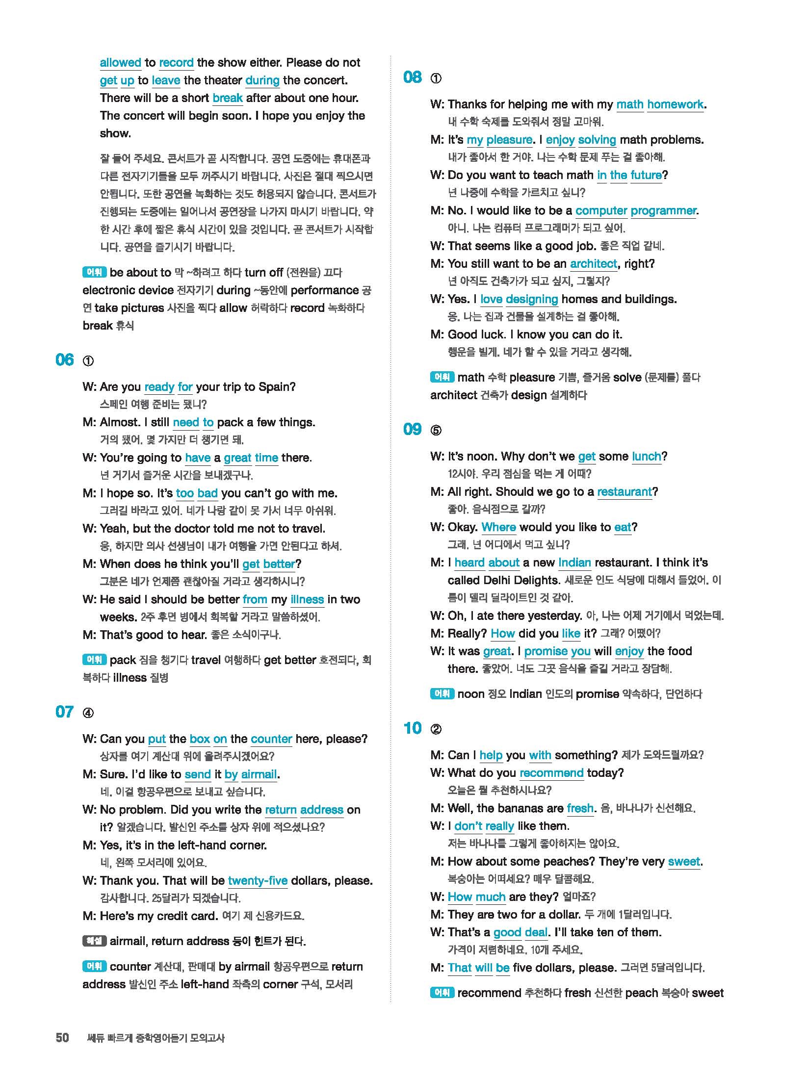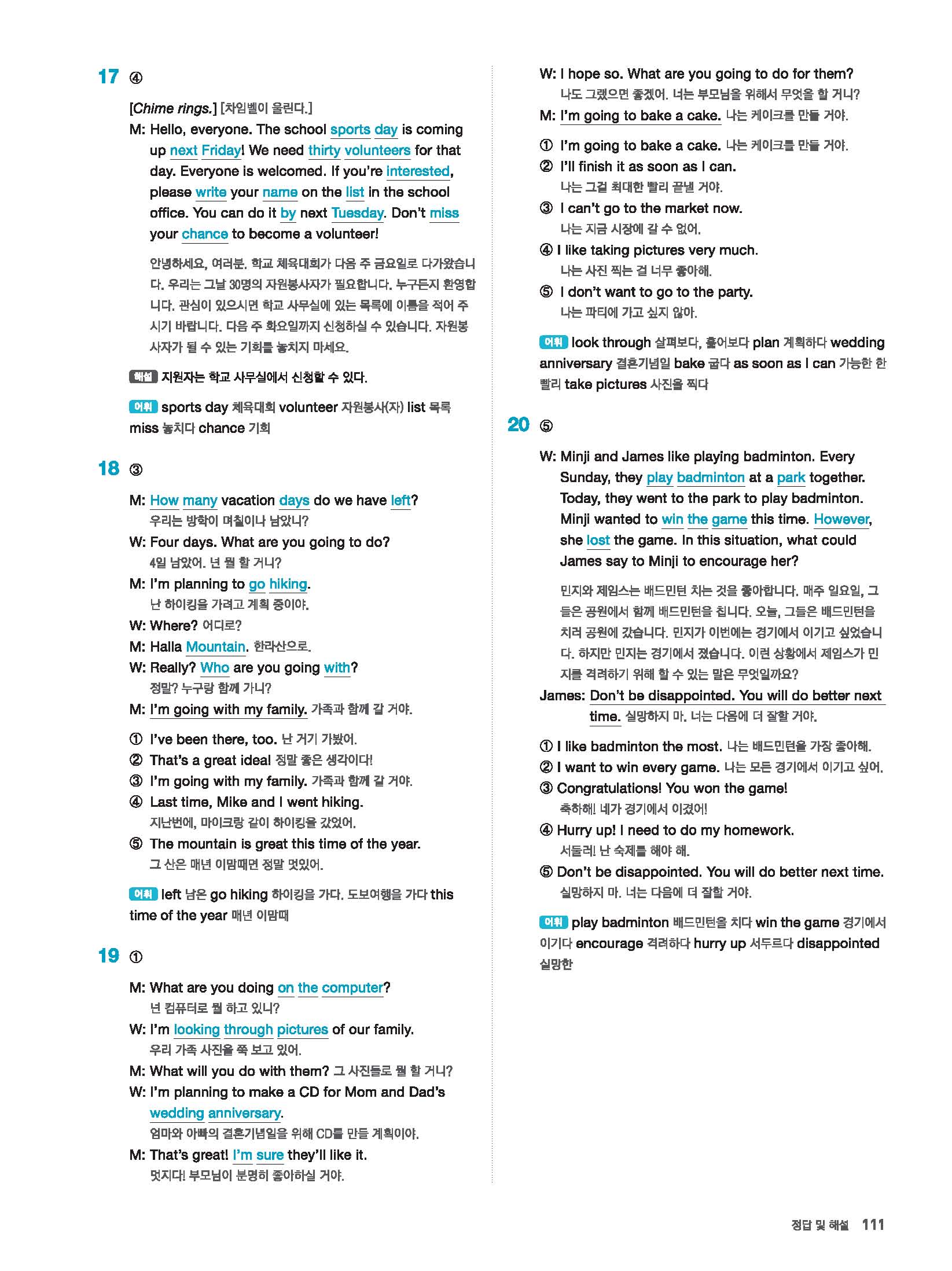 빠르게 중학 영어듣기 모의고사 20회 2 정답 및 해설 답지 빠른답지 사진답지 모바일최적화