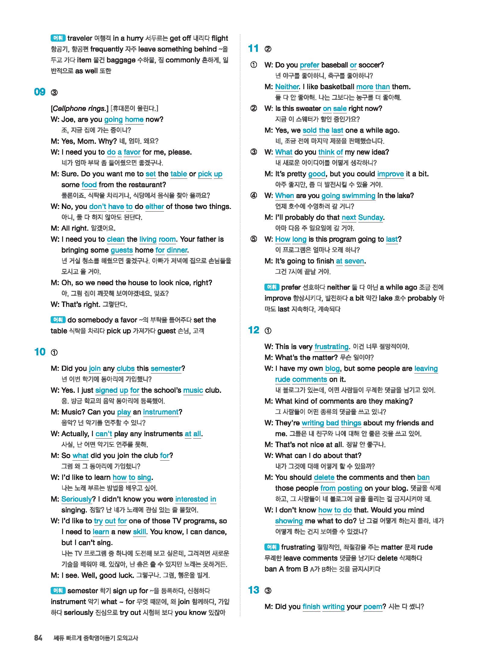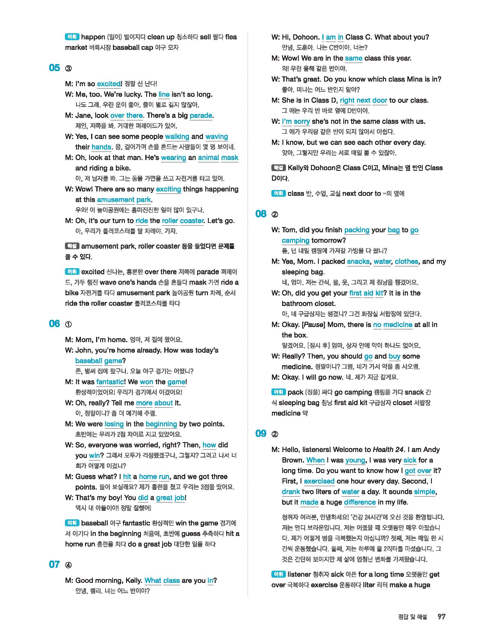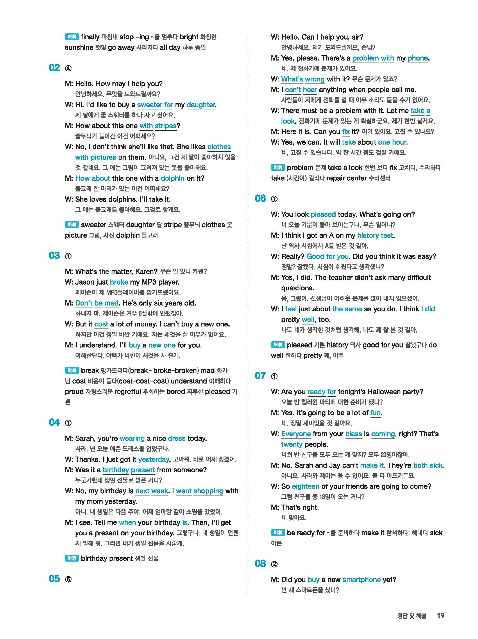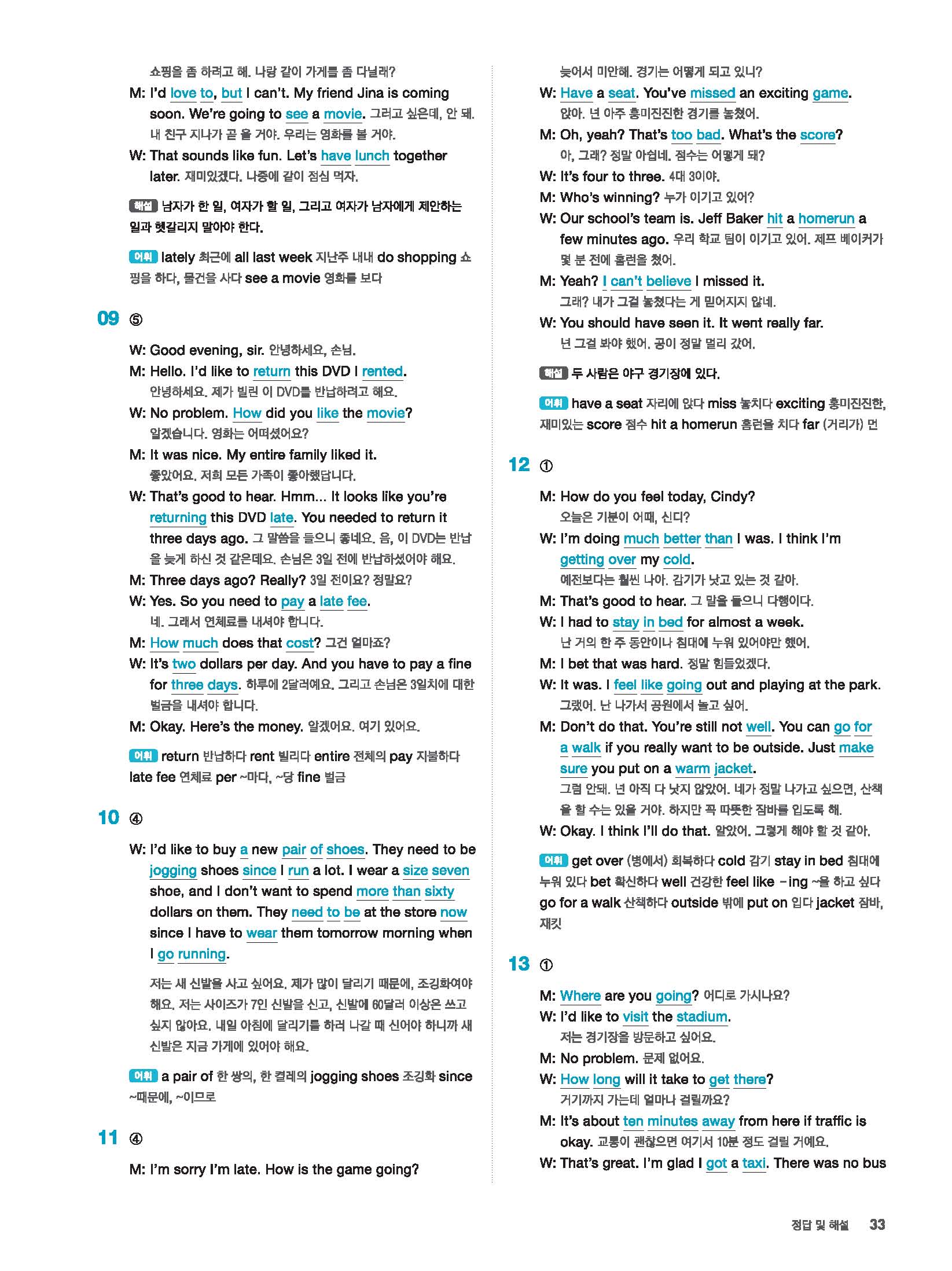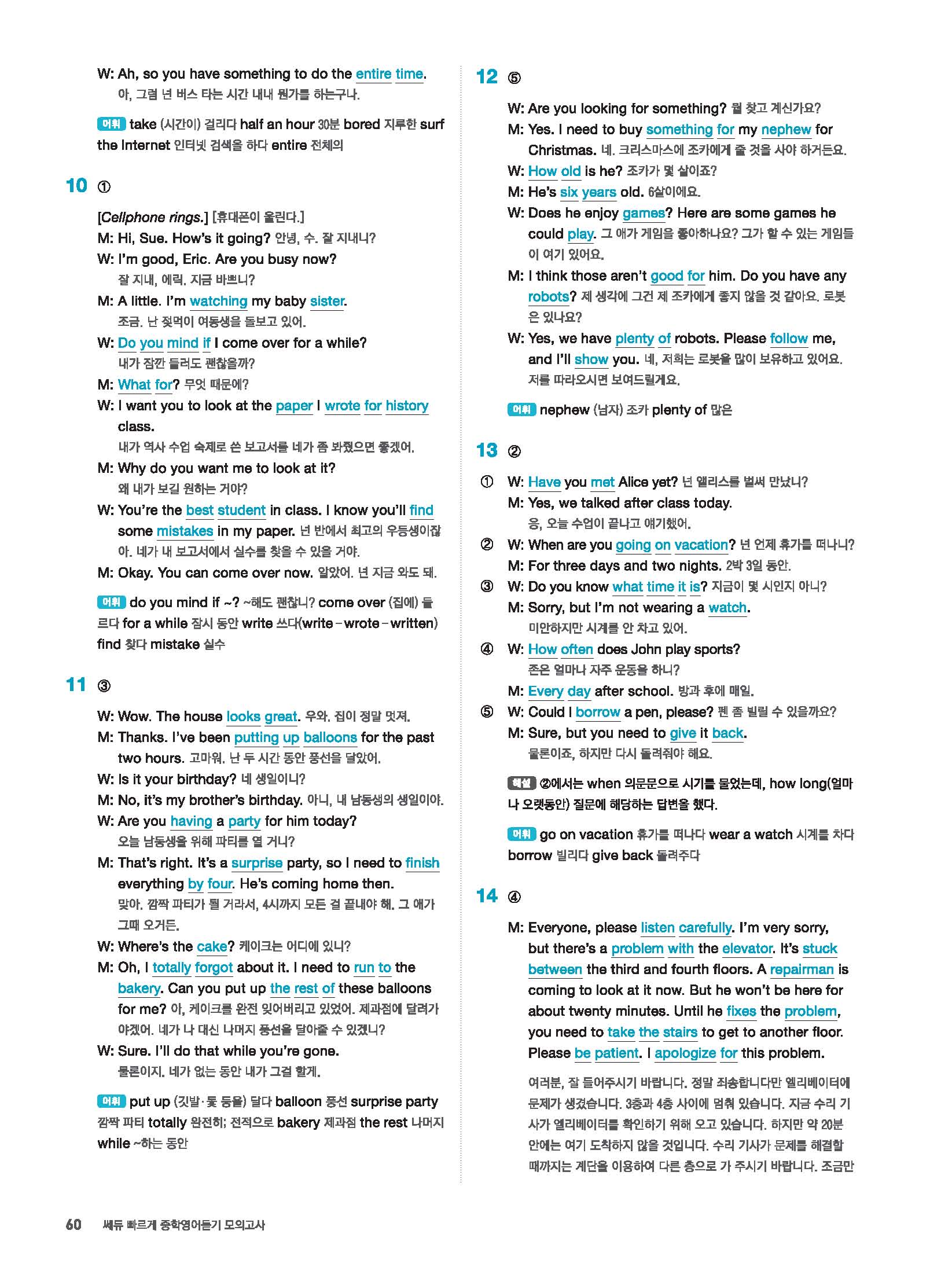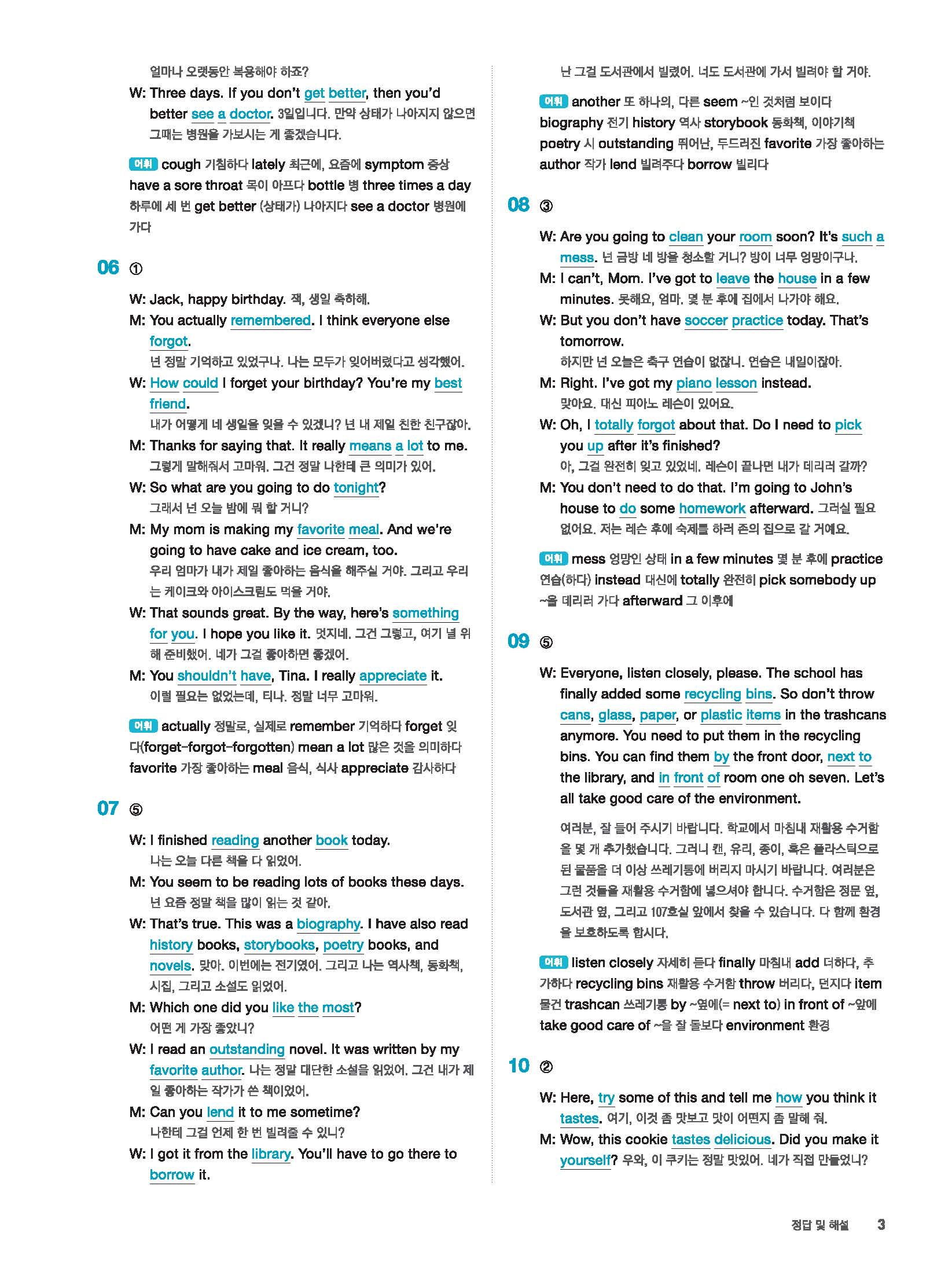빠르게 중학 영어듣기 모의고사 20회 2 정답 및 해설 답지 빠른답지 사진답지 모바일최적화