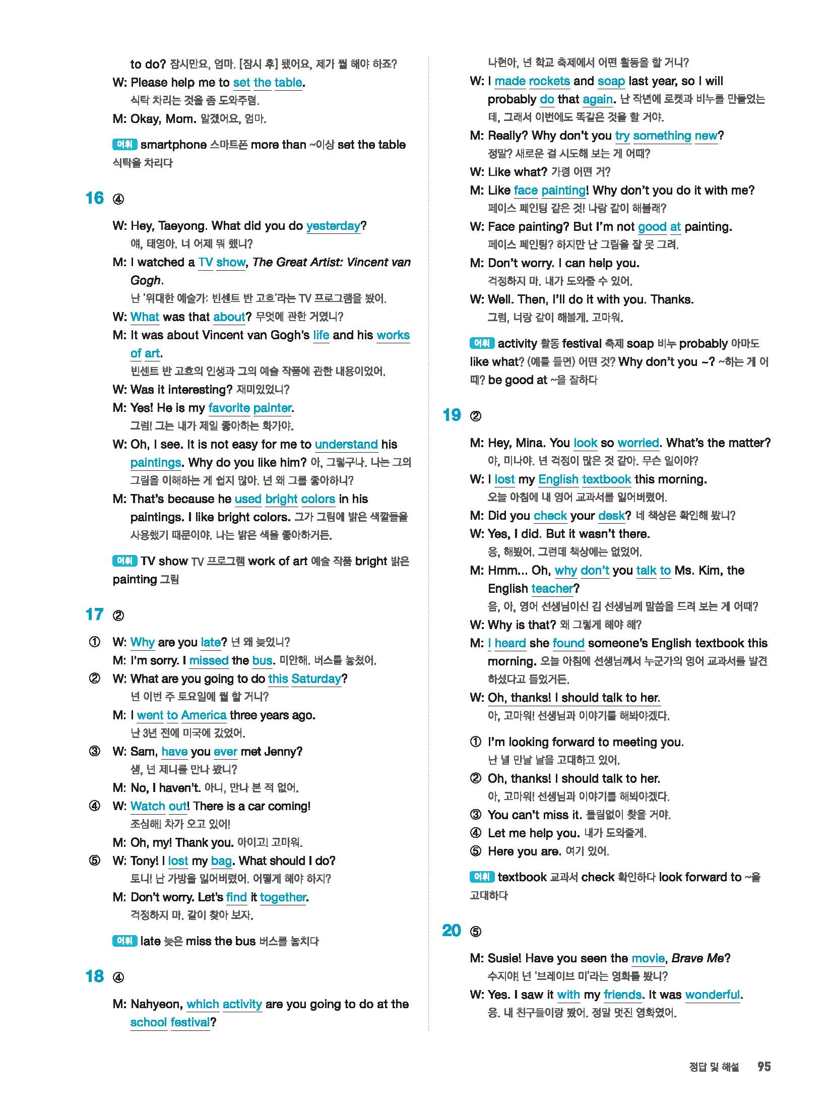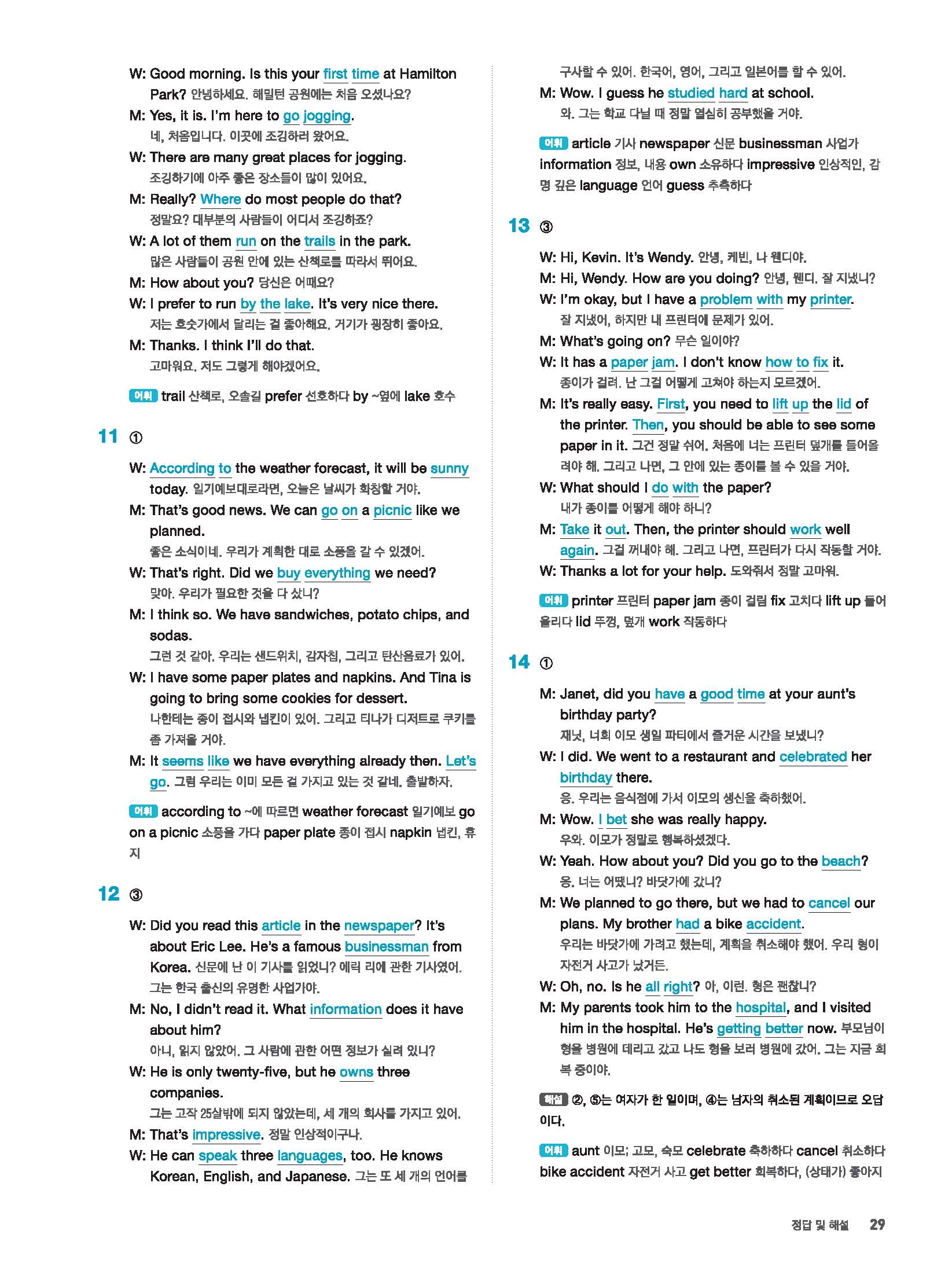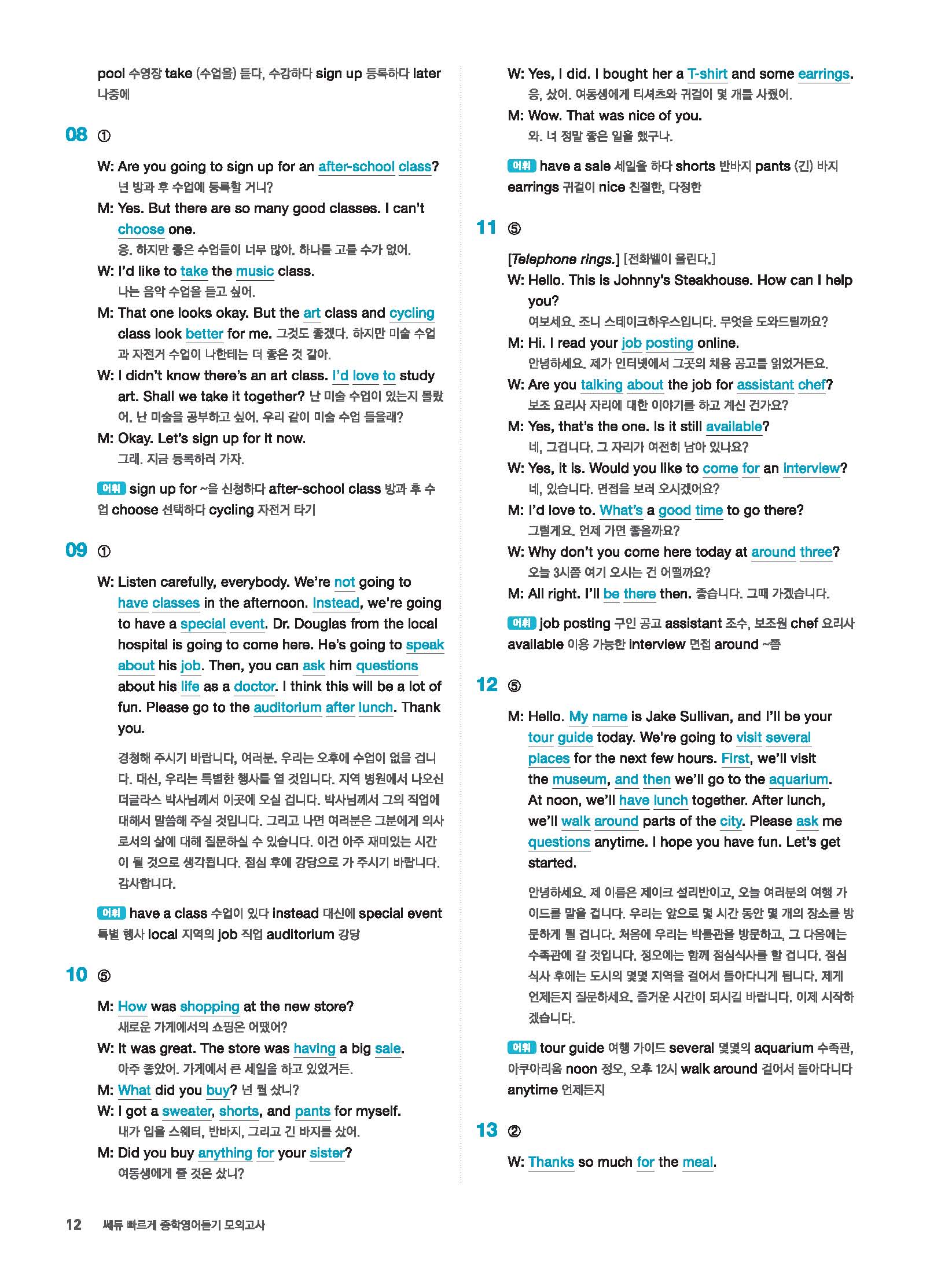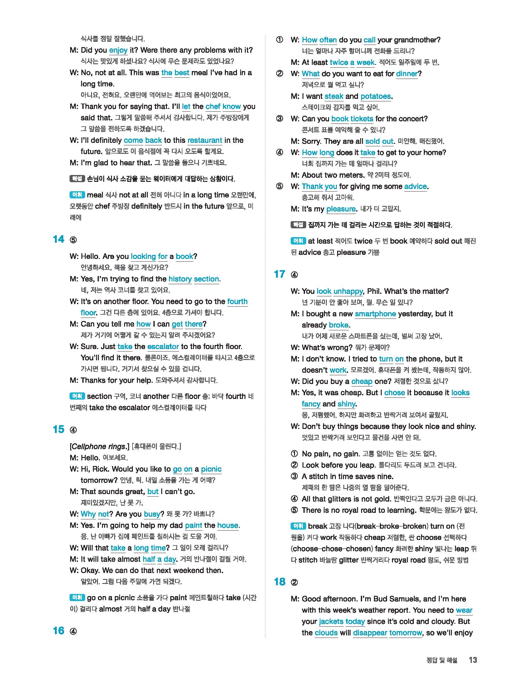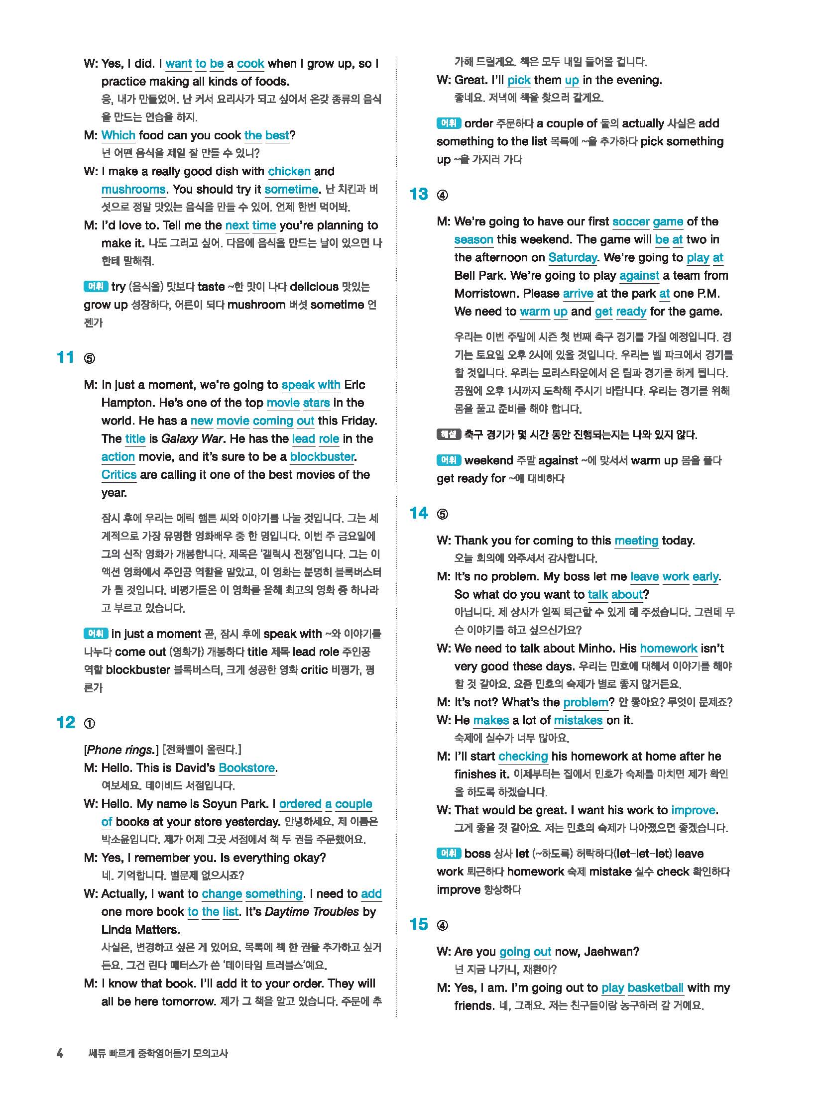 빠르게 중학 영어듣기 모의고사 20회 2 정답 및 해설 답지 빠른답지 사진답지 모바일최적화