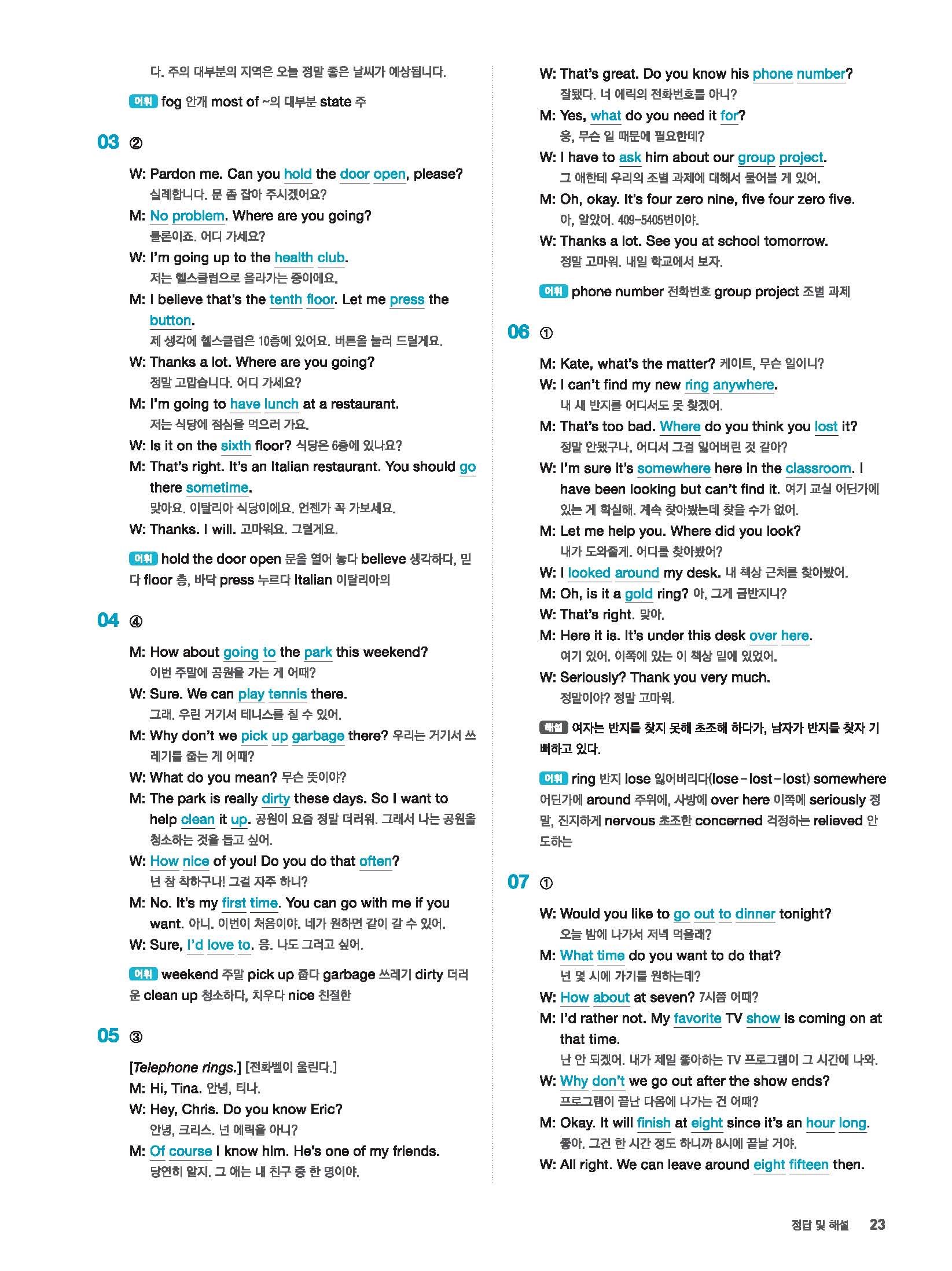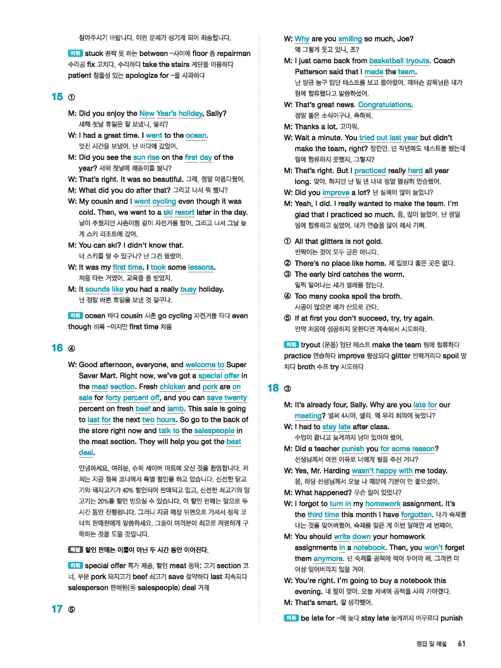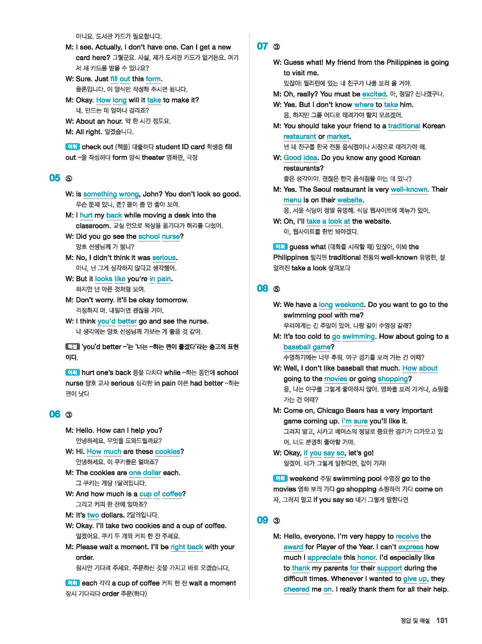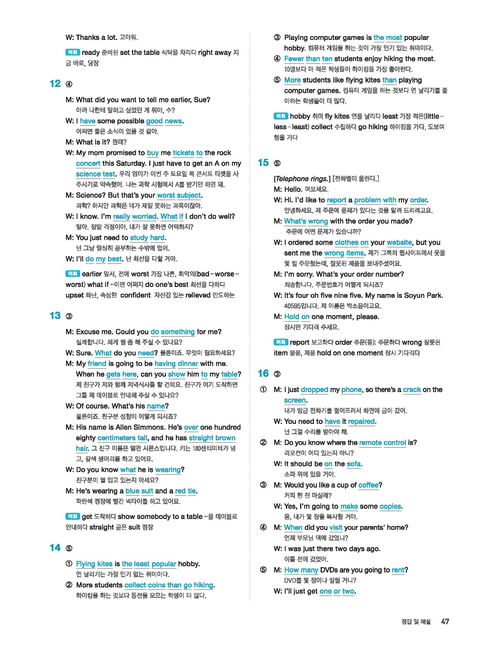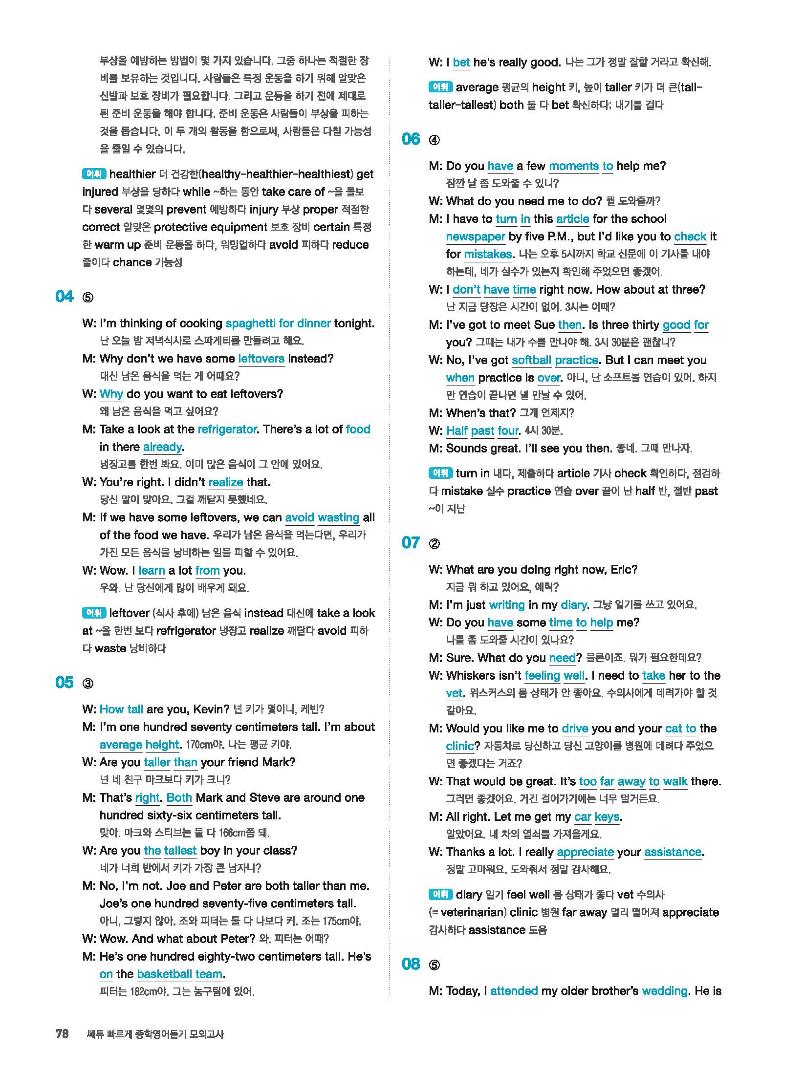 빠르게 중학 영어듣기 모의고사 20회 2 정답 및 해설 답지 빠른답지 사진답지 모바일최적화
