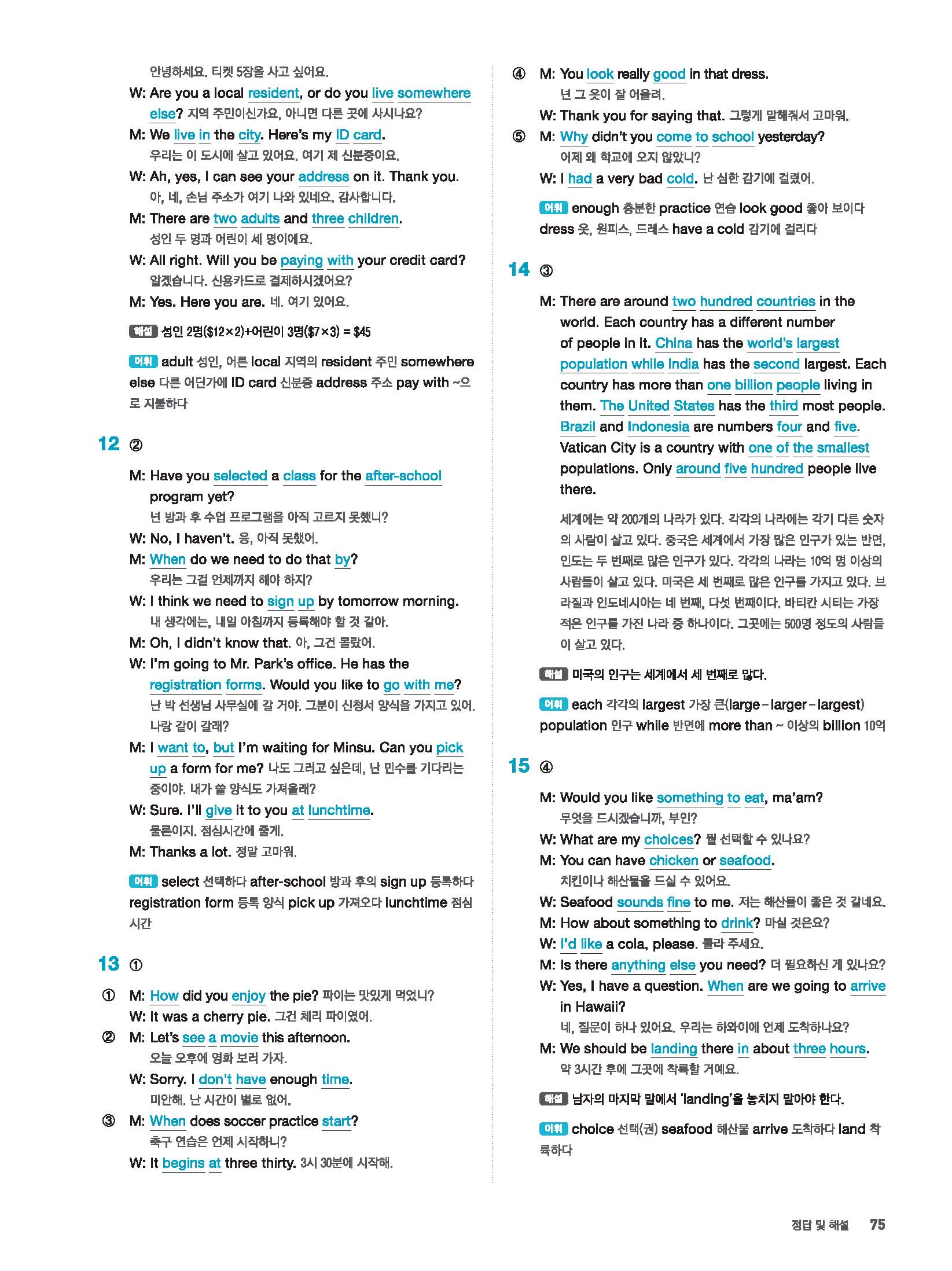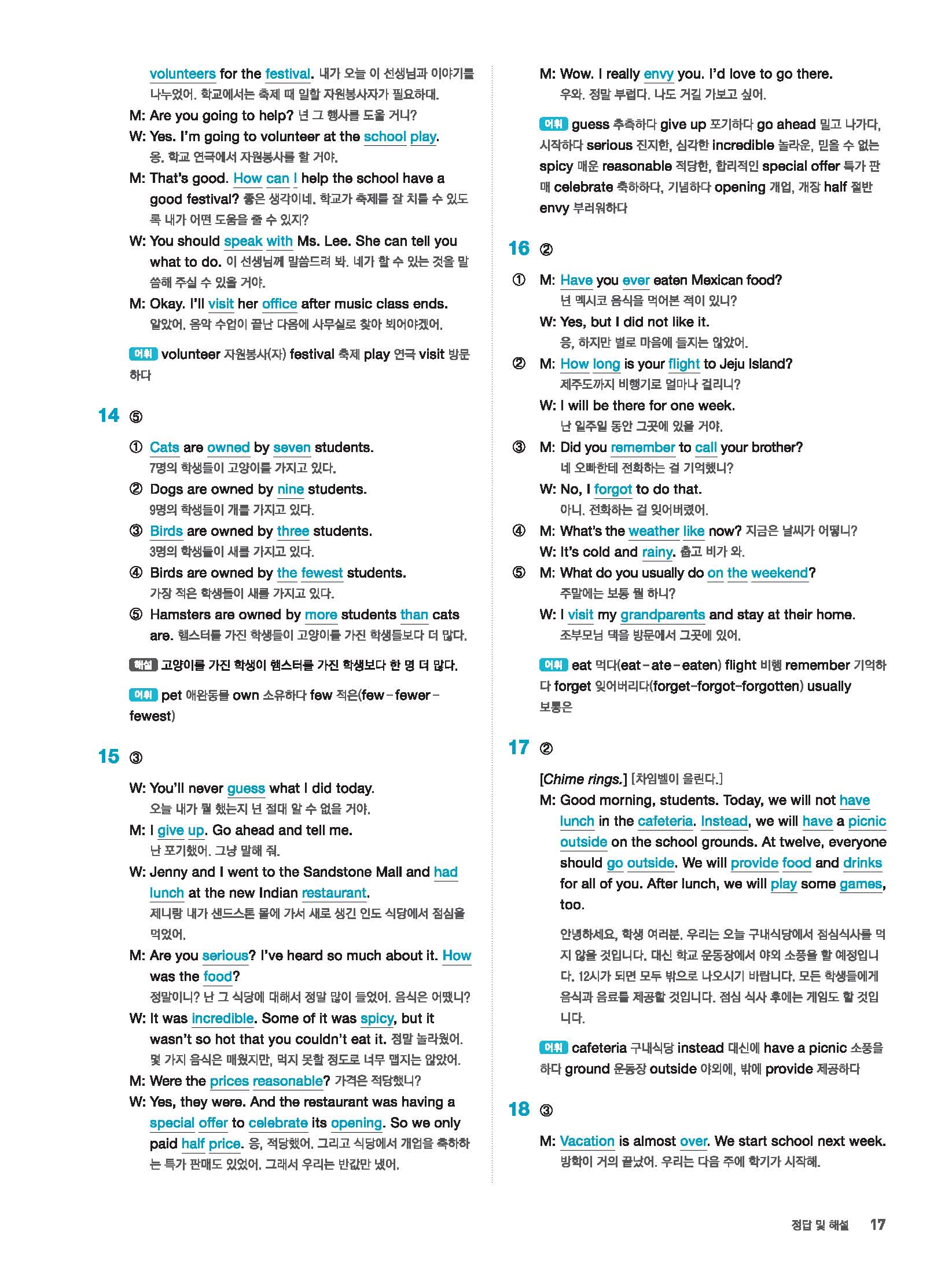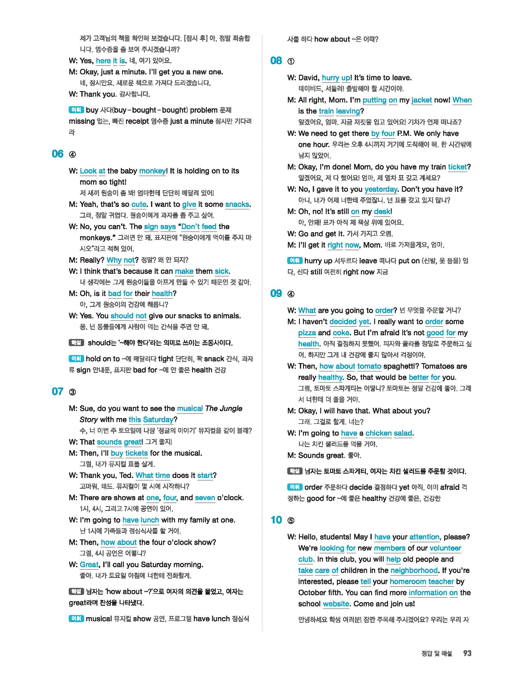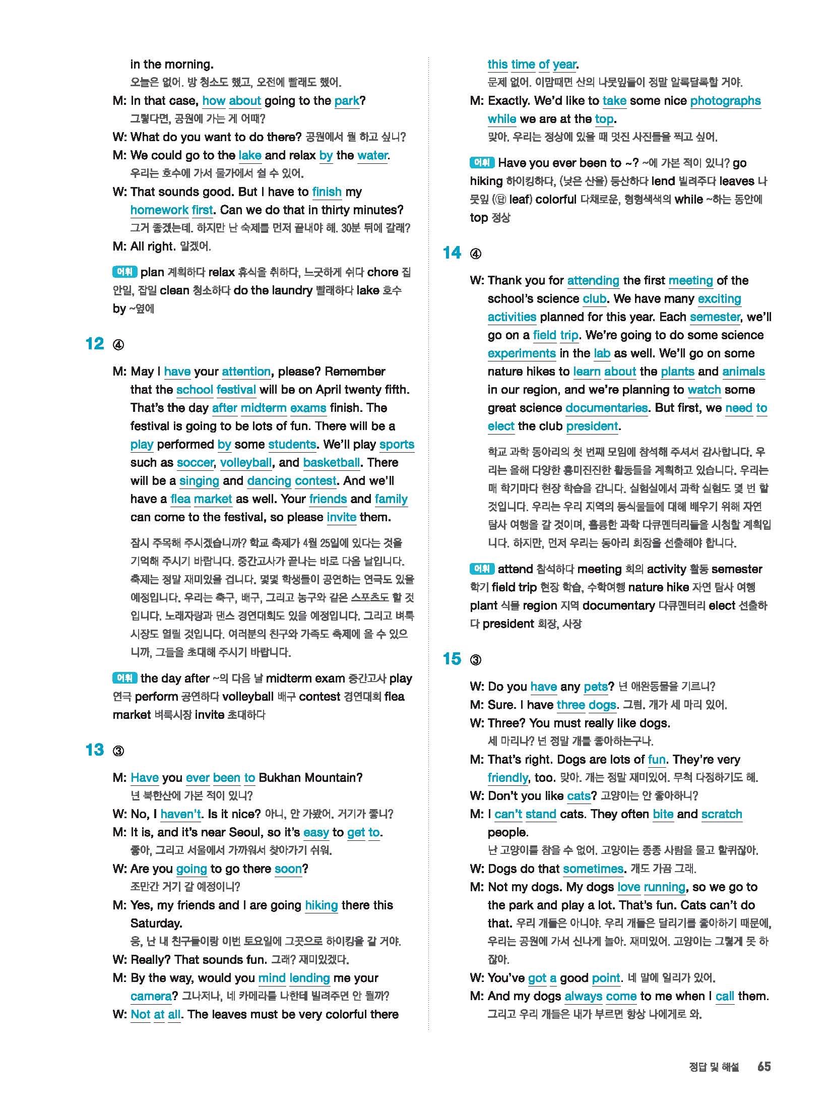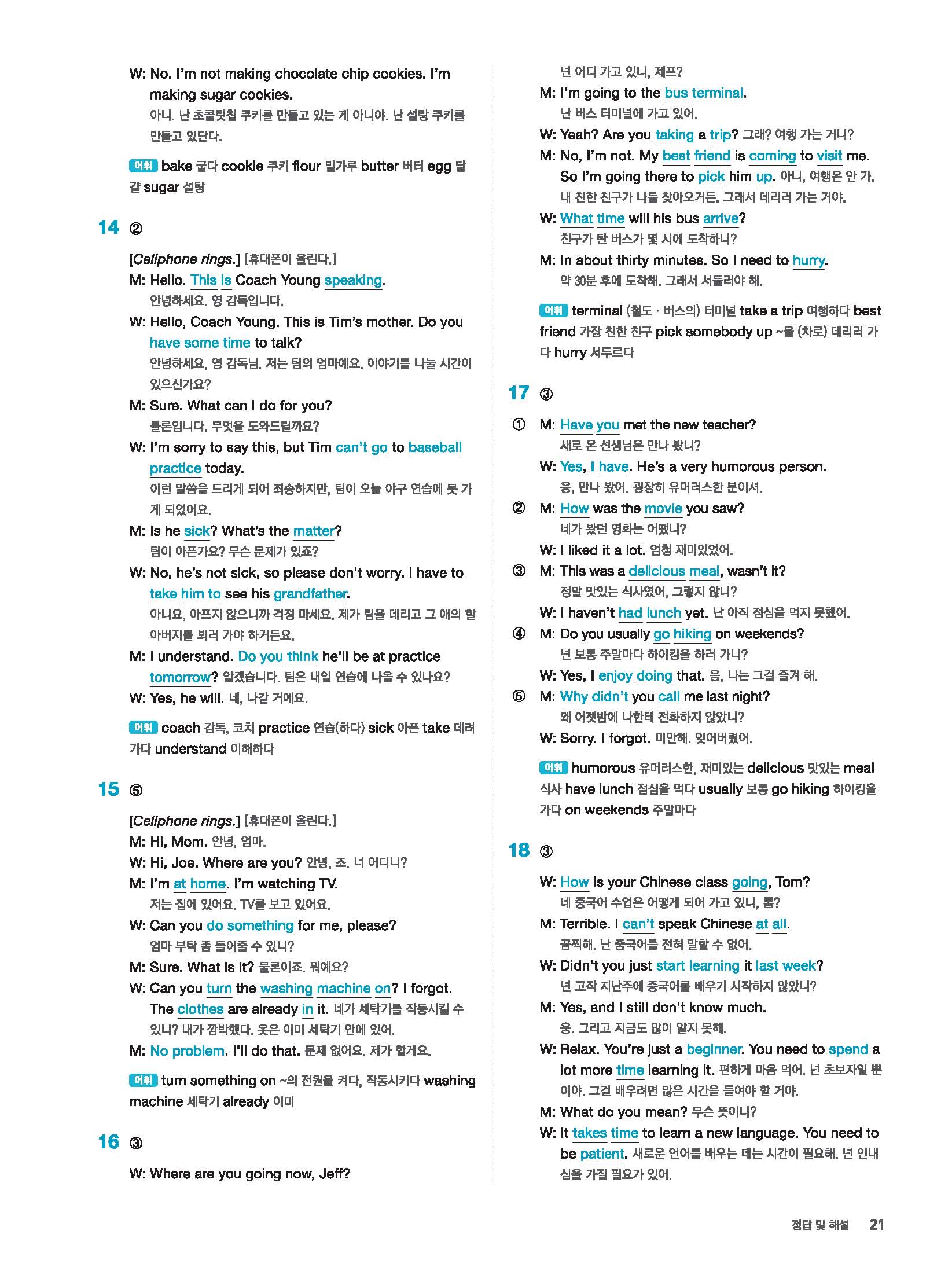 빠르게 중학 영어듣기 모의고사 20회 2 정답 및 해설 답지 빠른답지 사진답지 모바일최적화