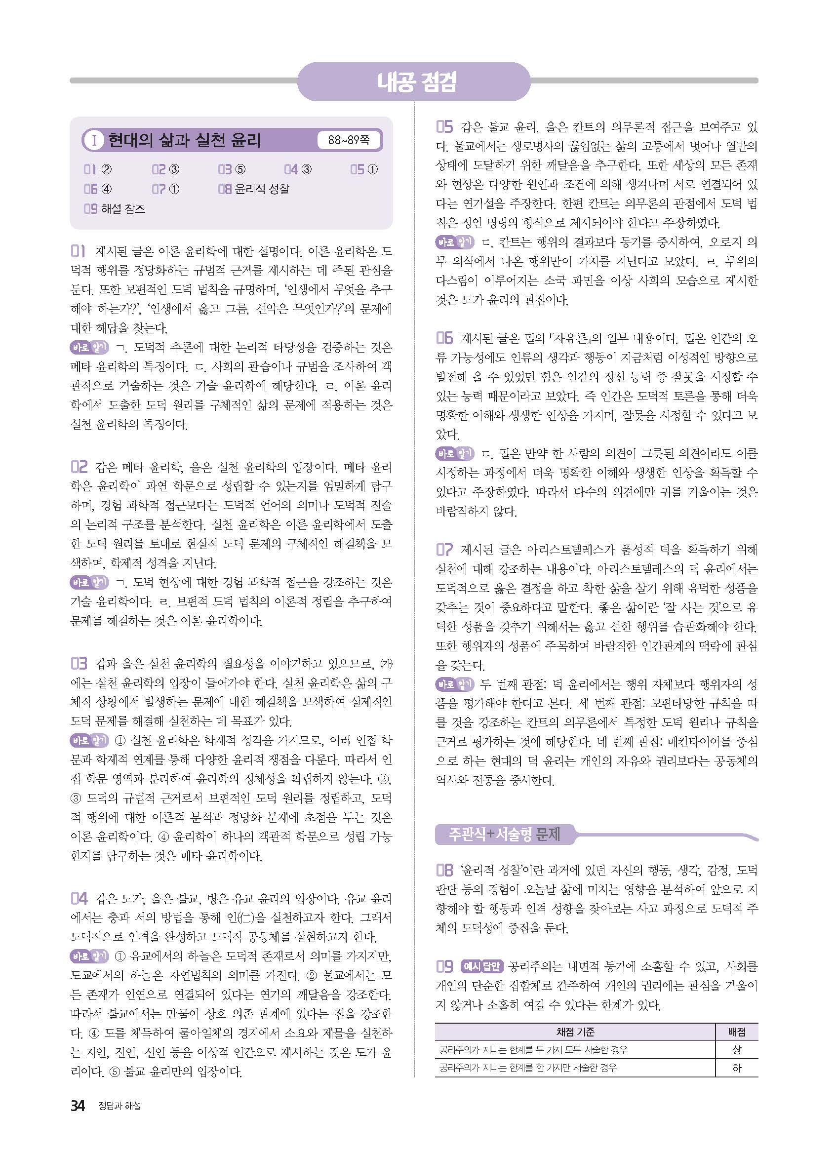내공의힘 생활과윤리 사진답지 빠른답지 모바일최적화