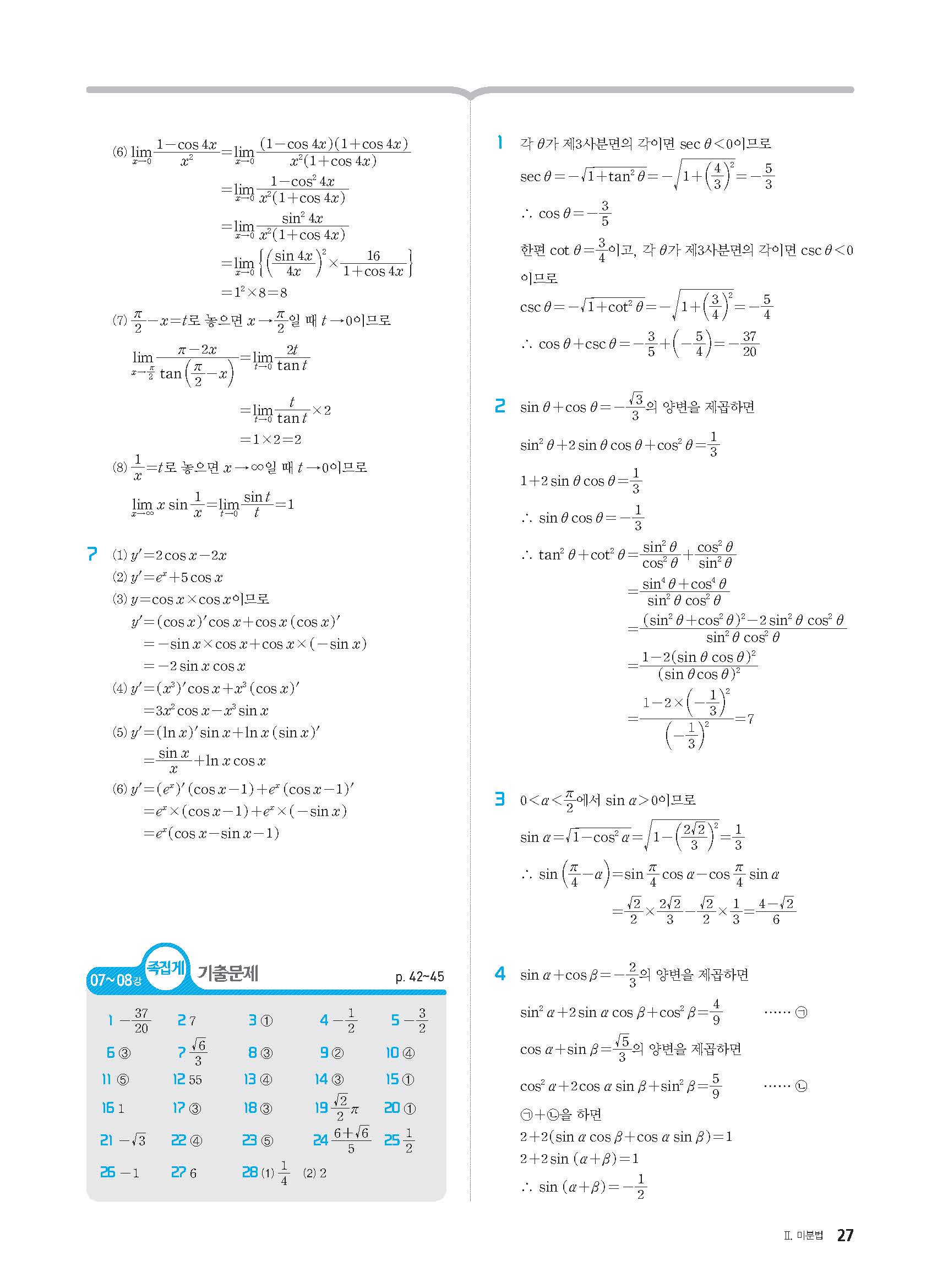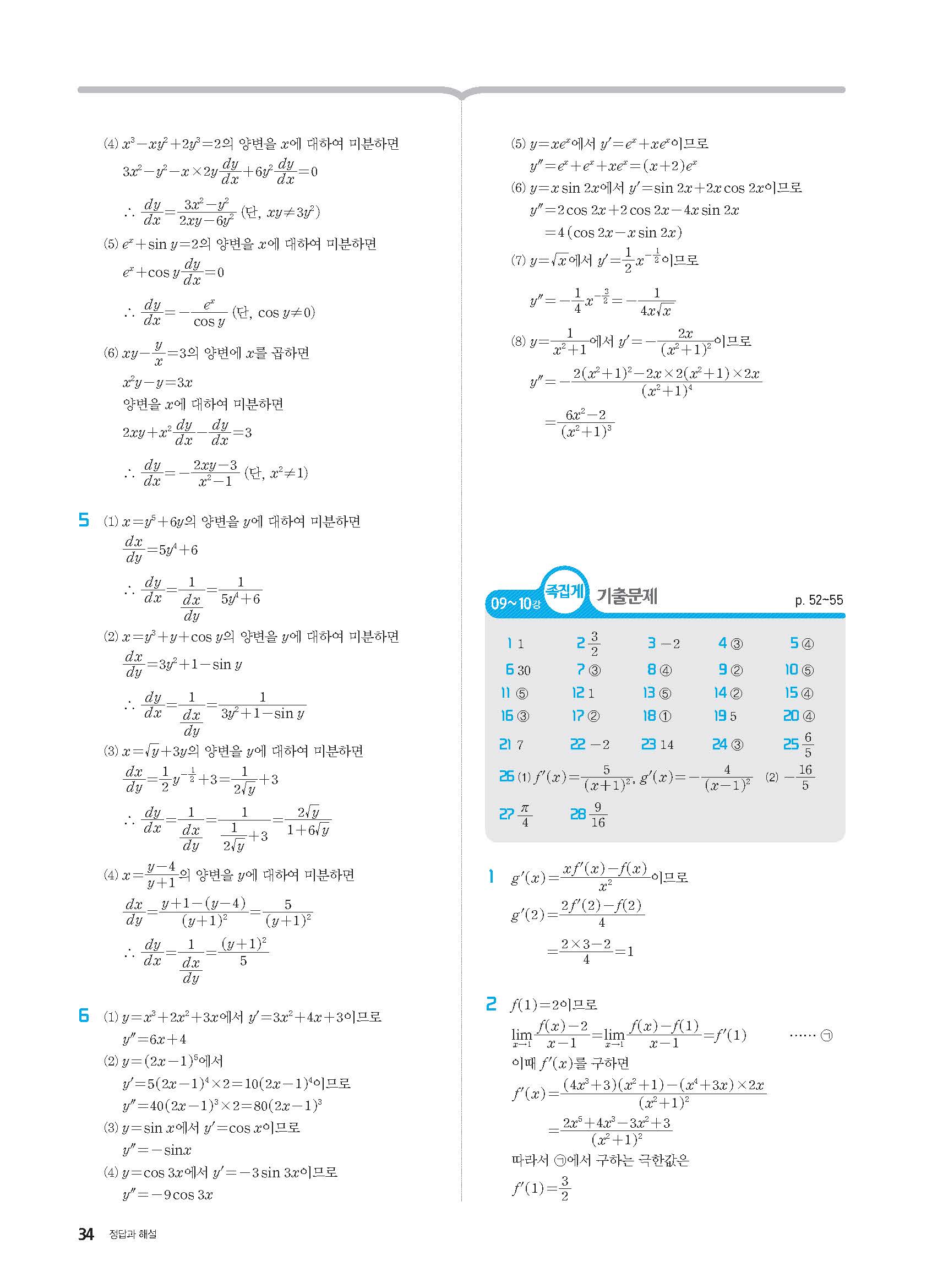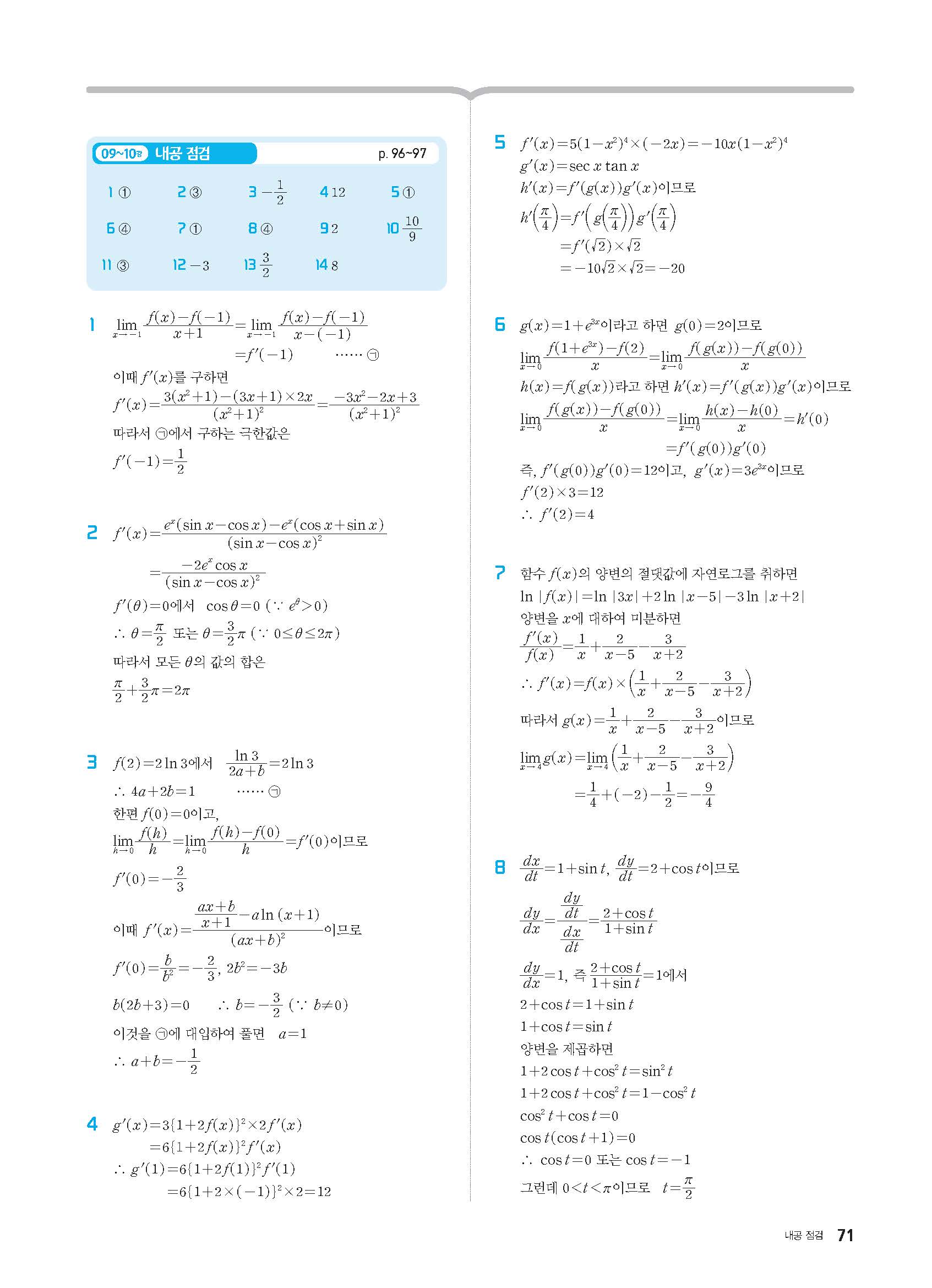 내공의힘 미적분 사진답지 빠른답지 모바일최적화