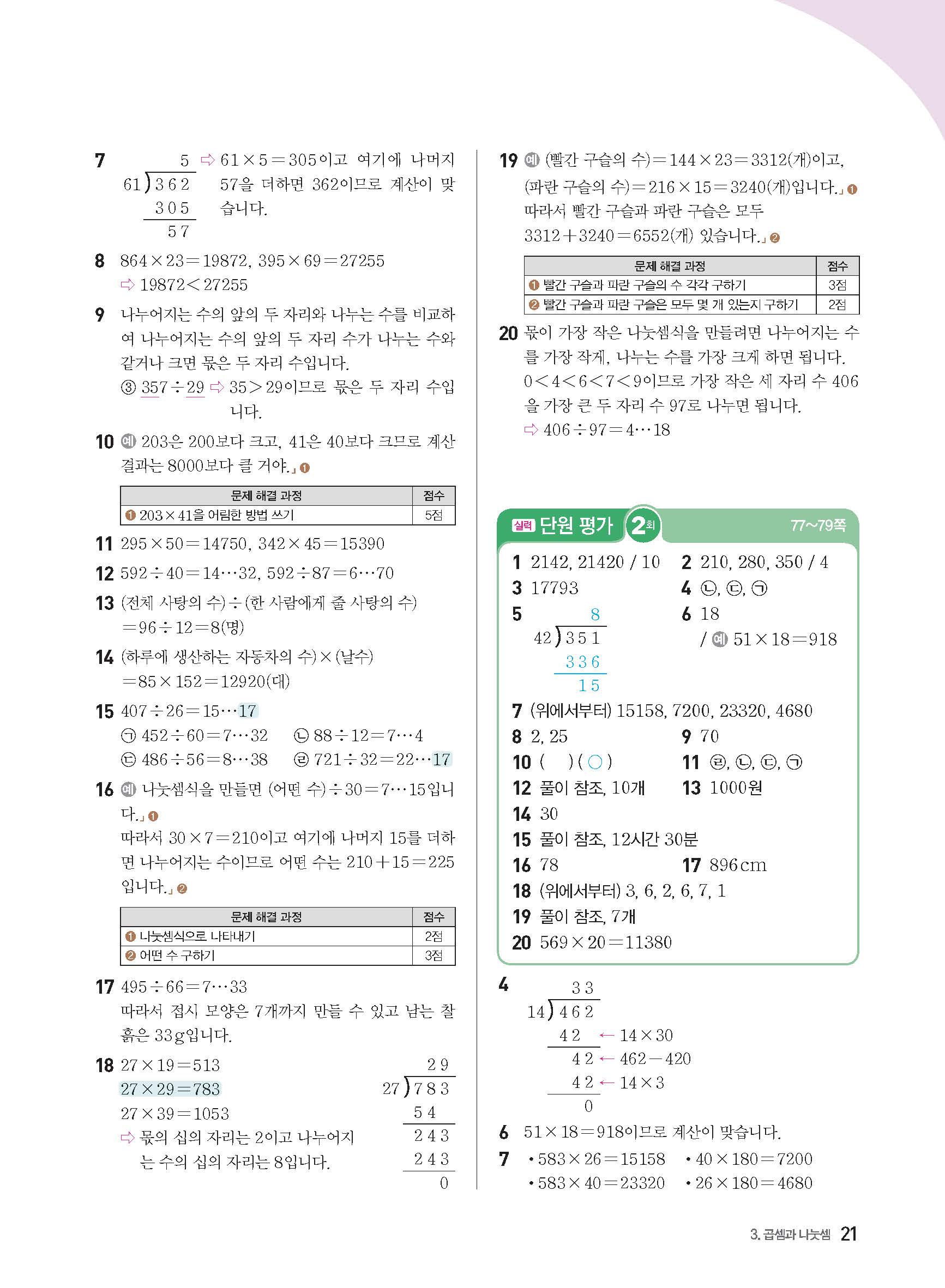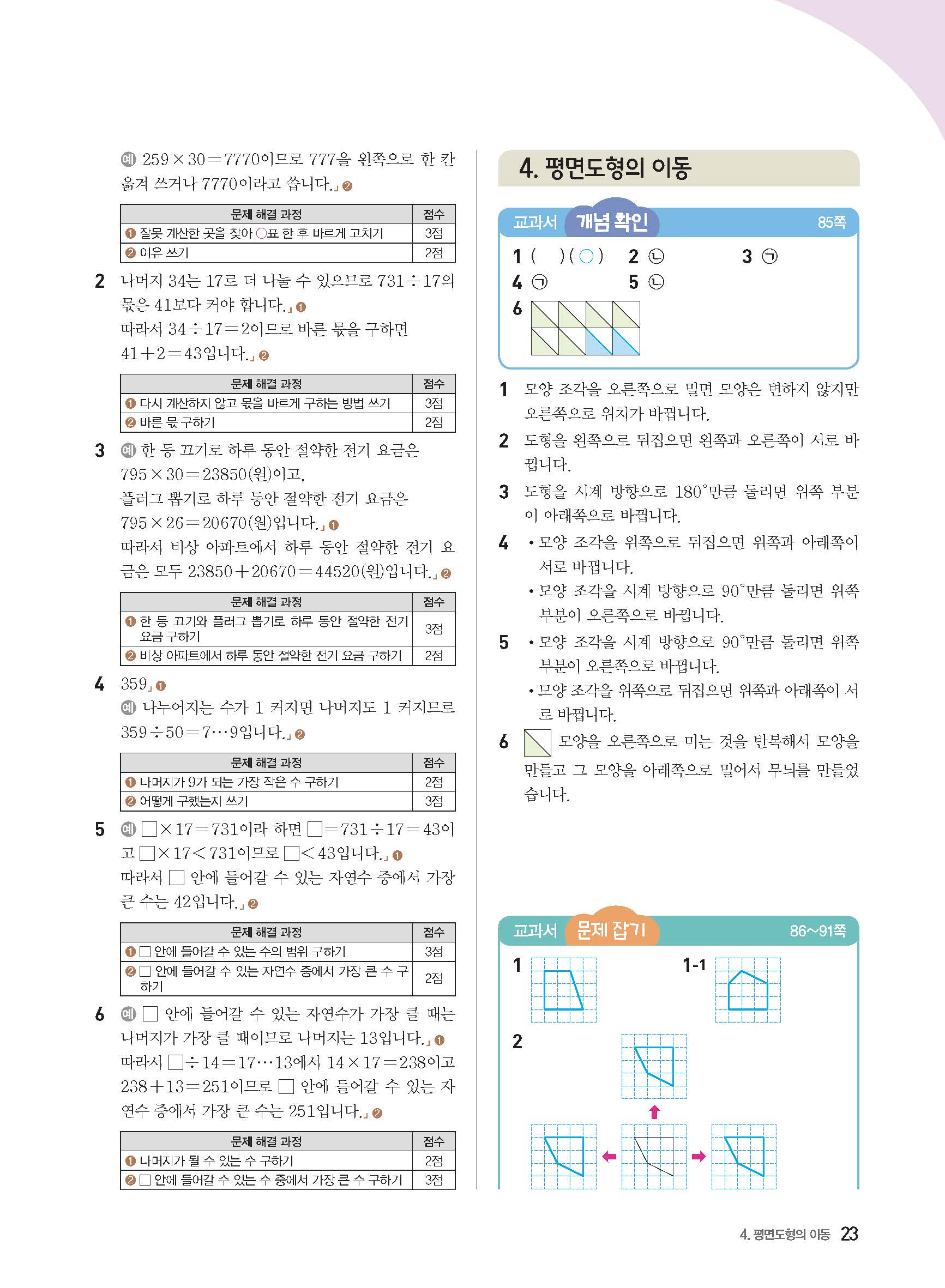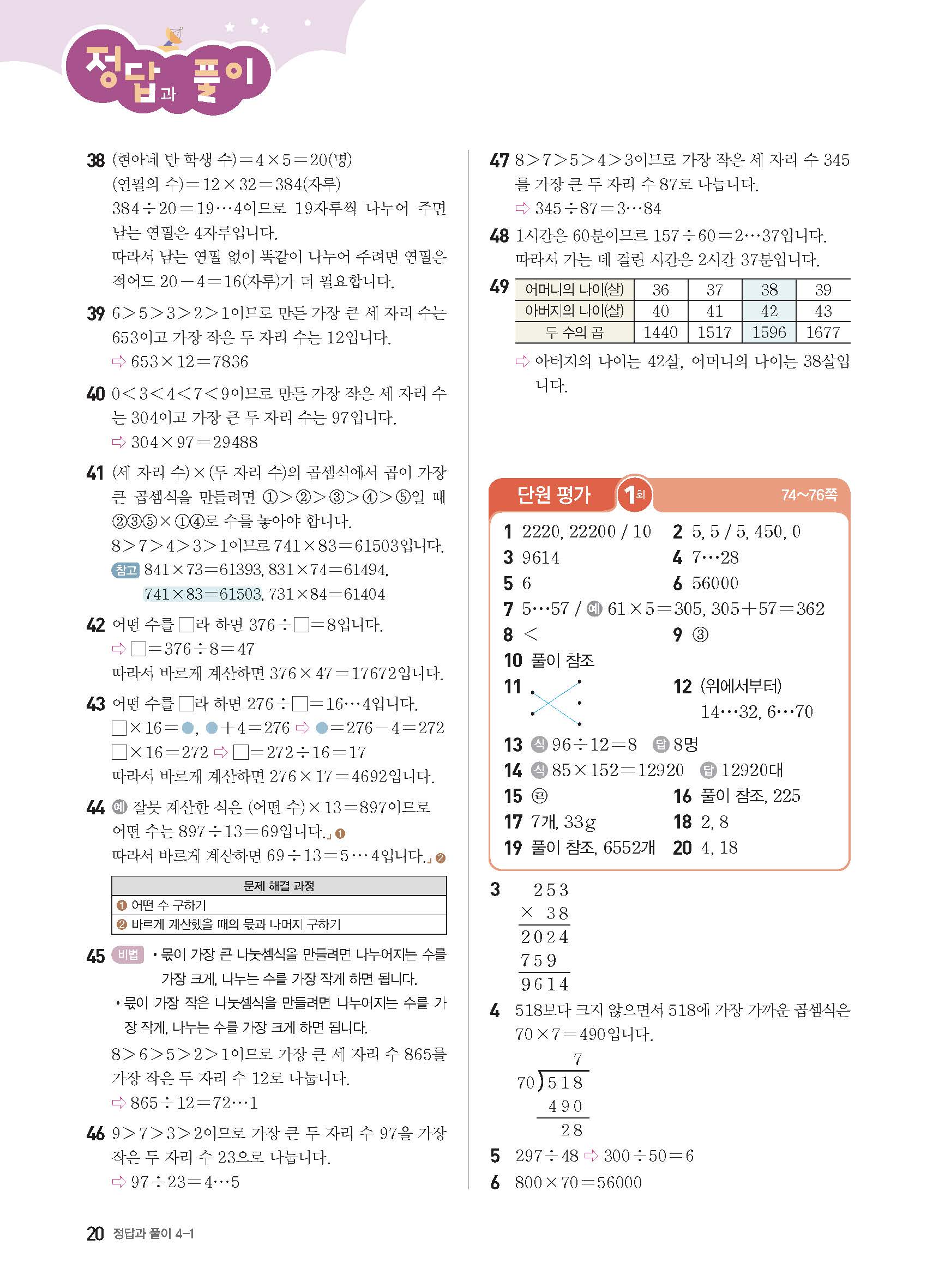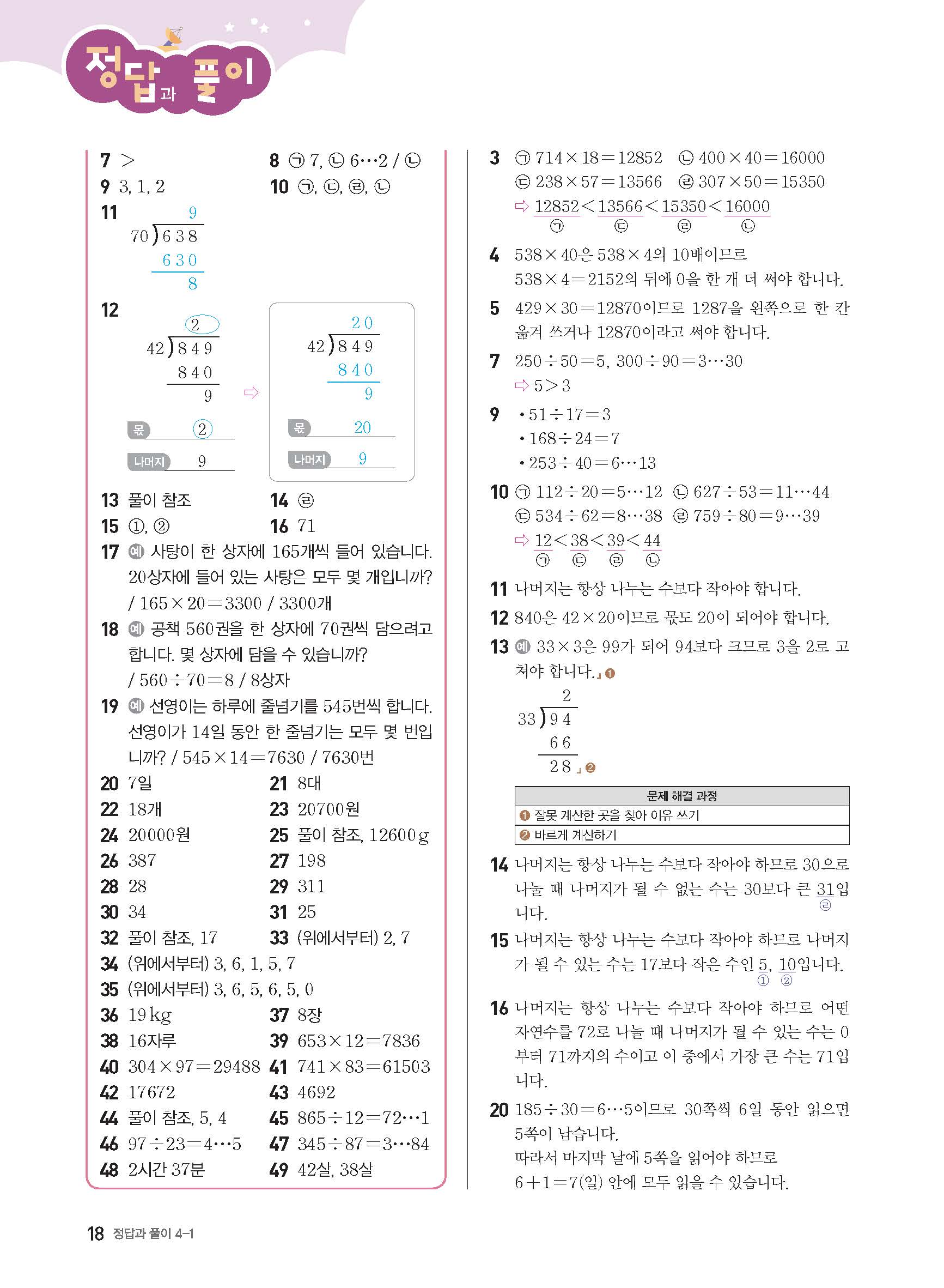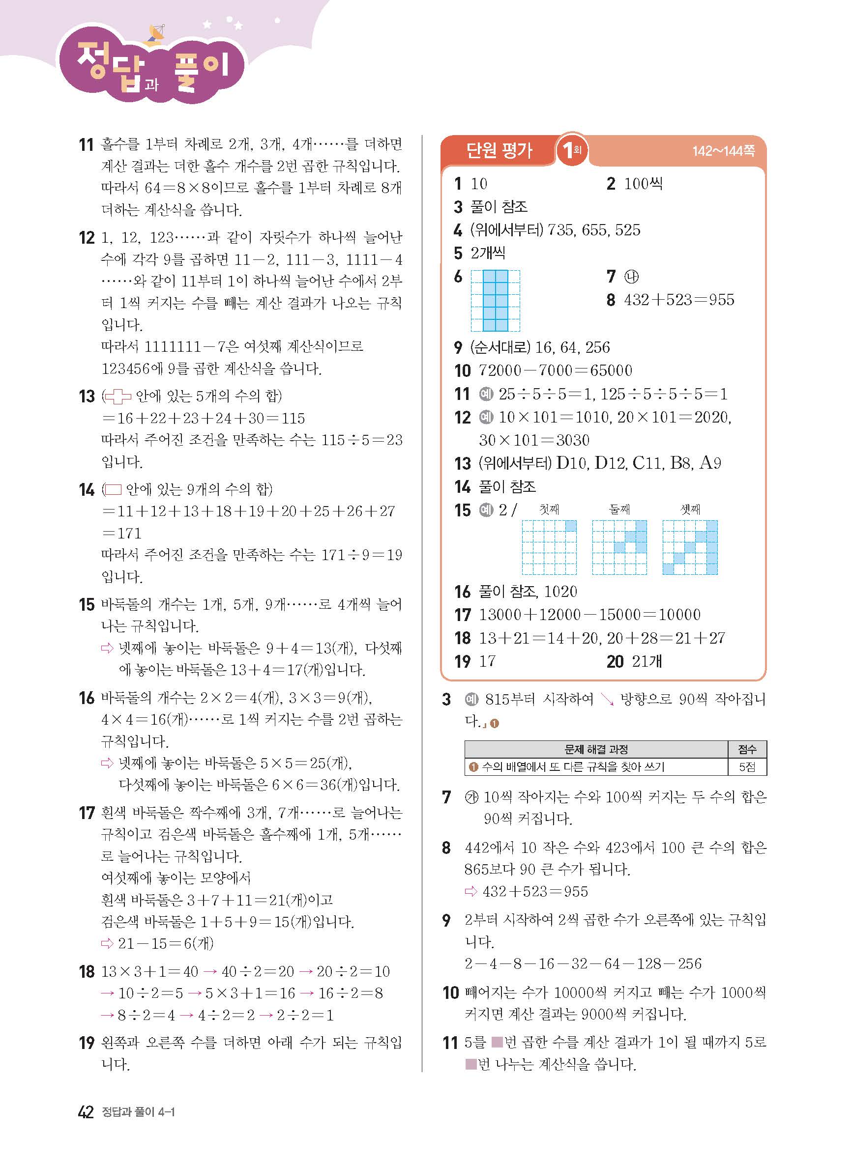 교과서유형잡기 초등수학 4-1 사진답지 빠른답지 모바일최적화