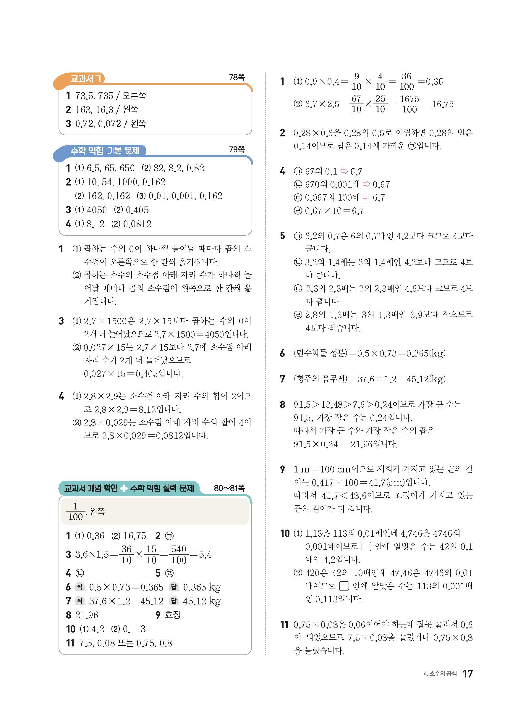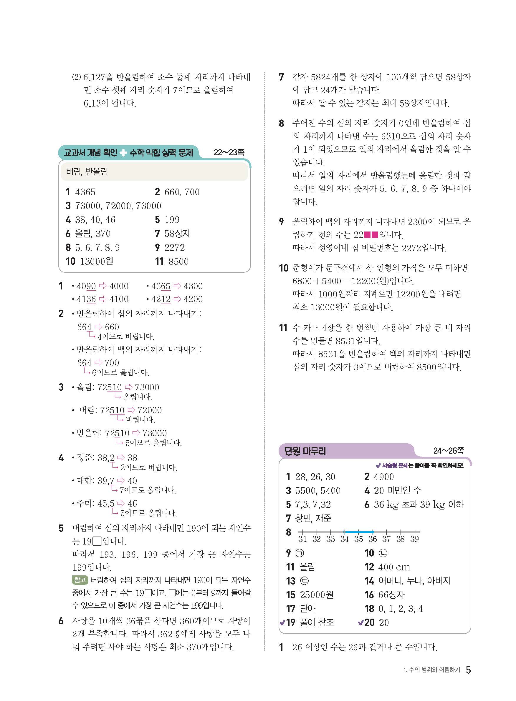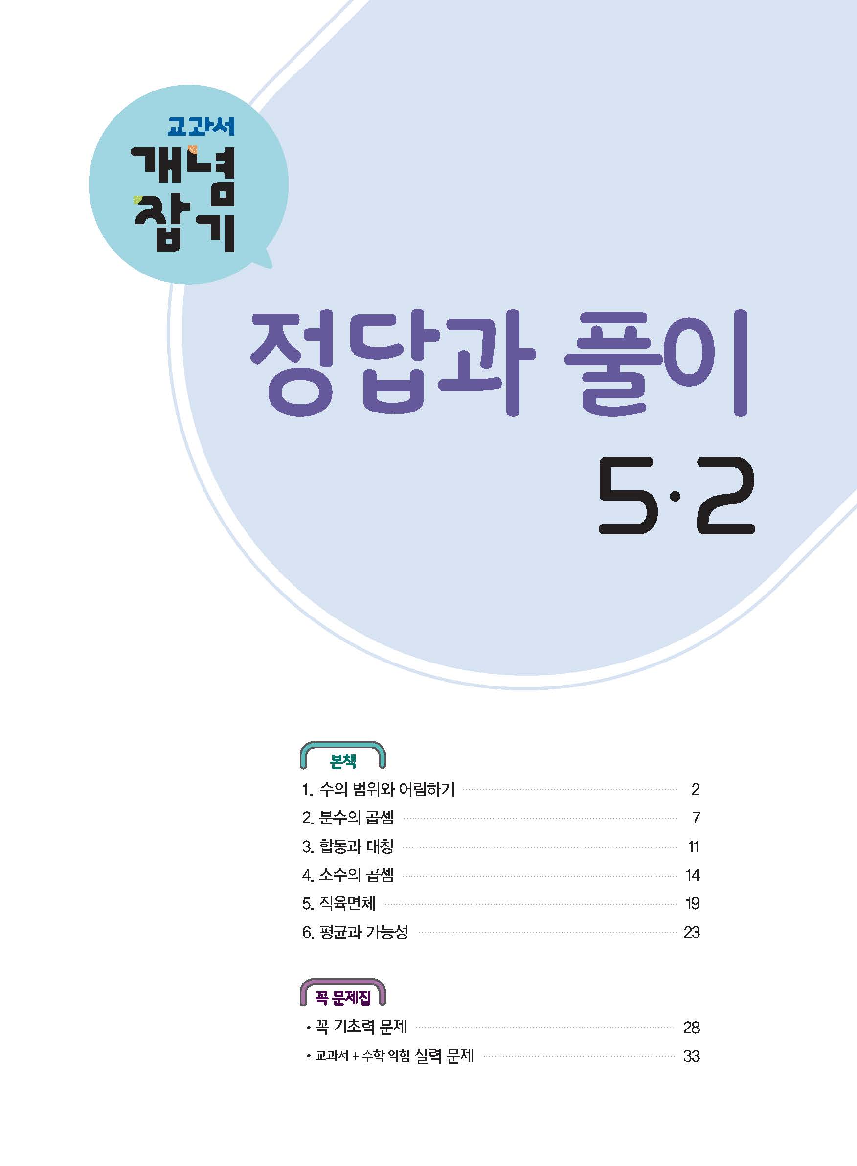 교과서개념잡기 초등수학 5-2 사진답지 빠른답지 모바일최적화