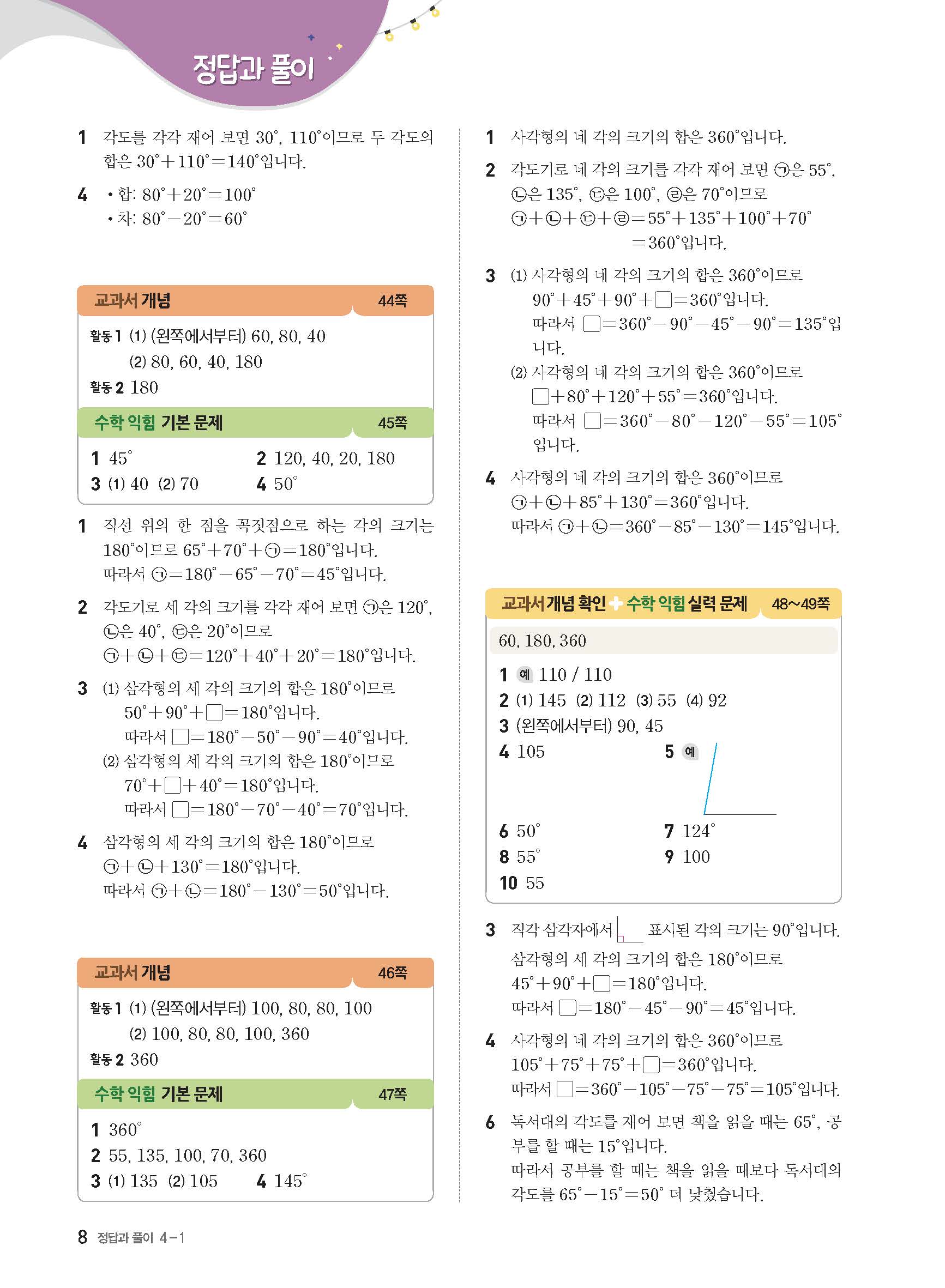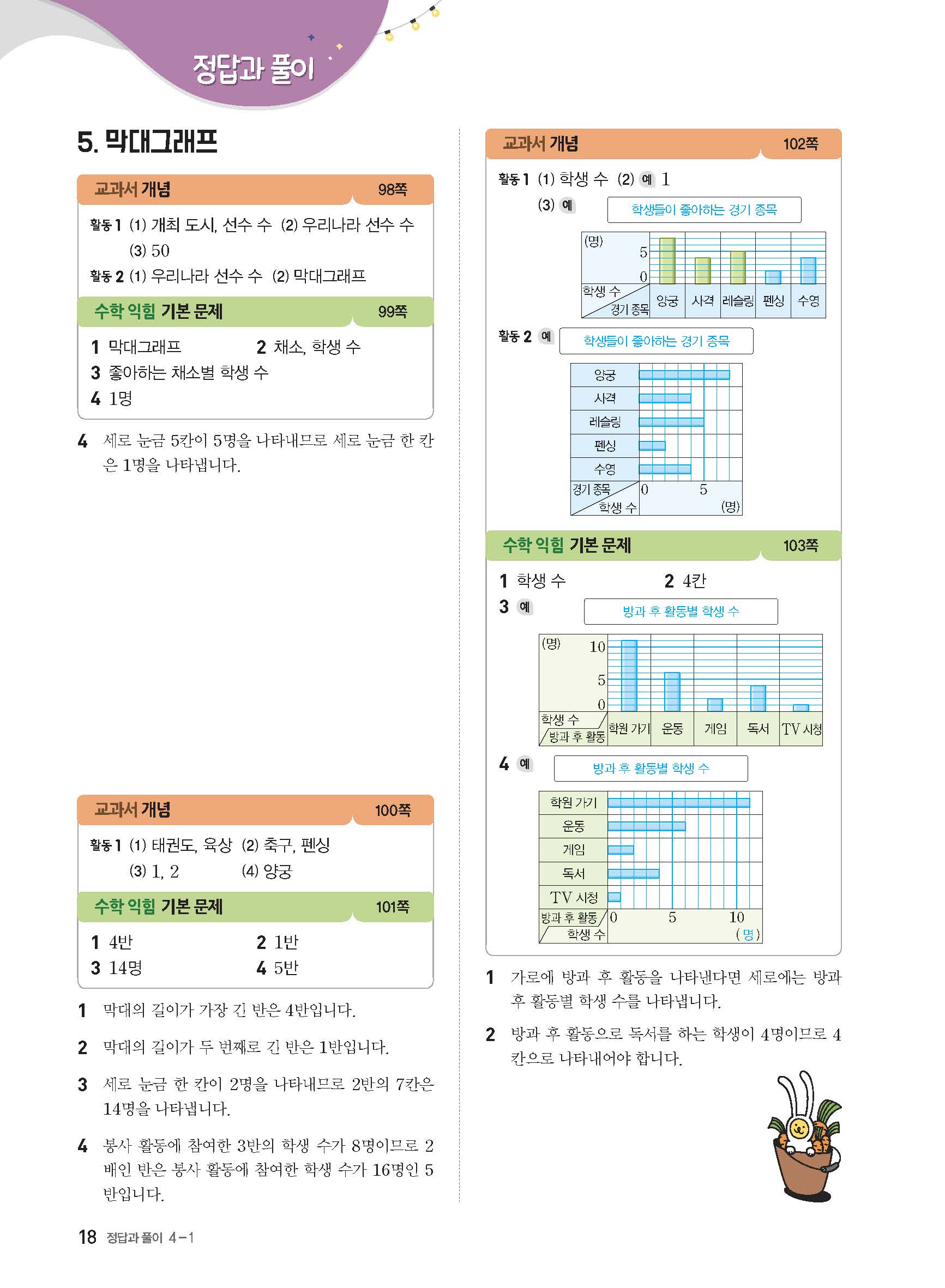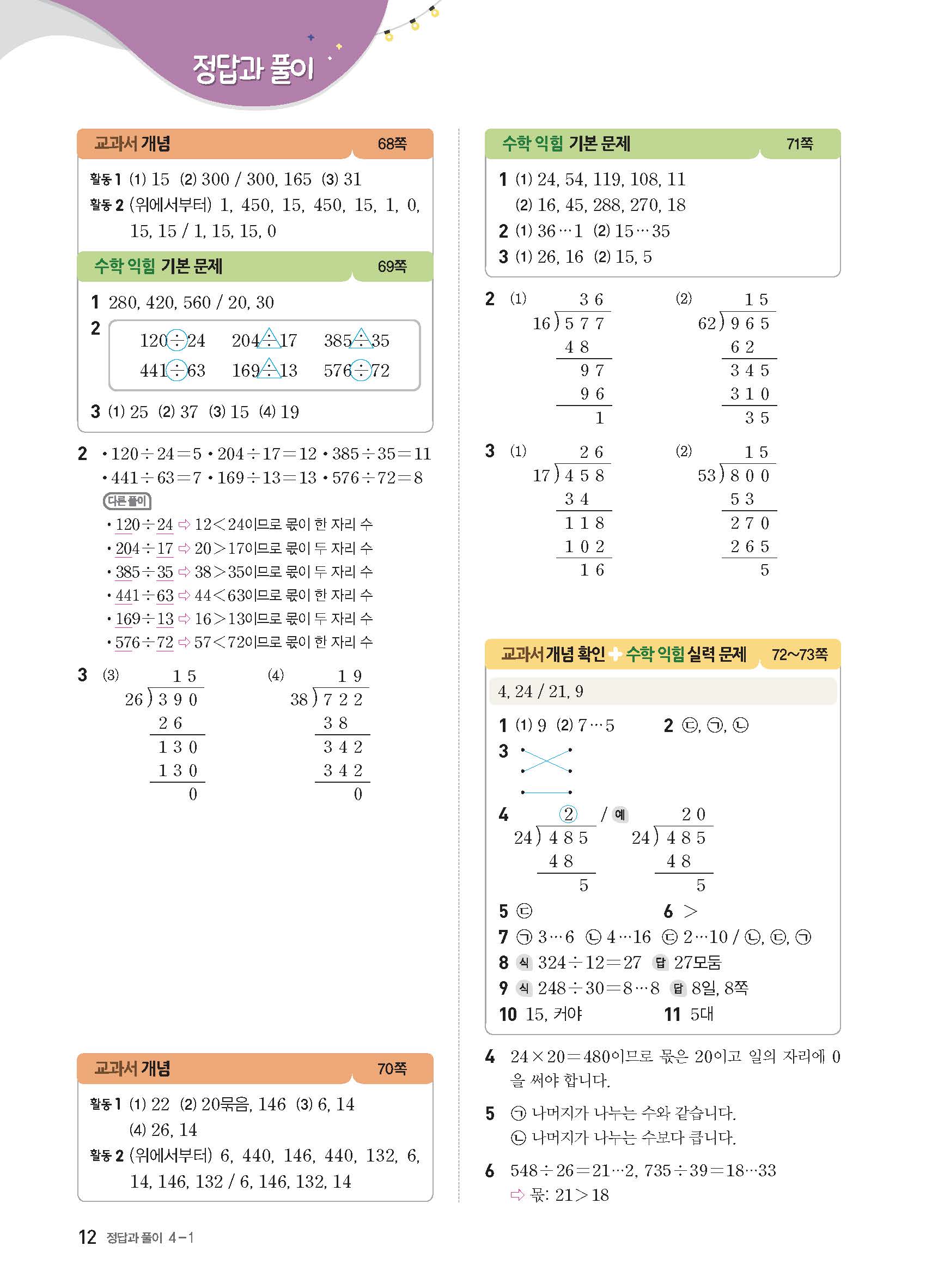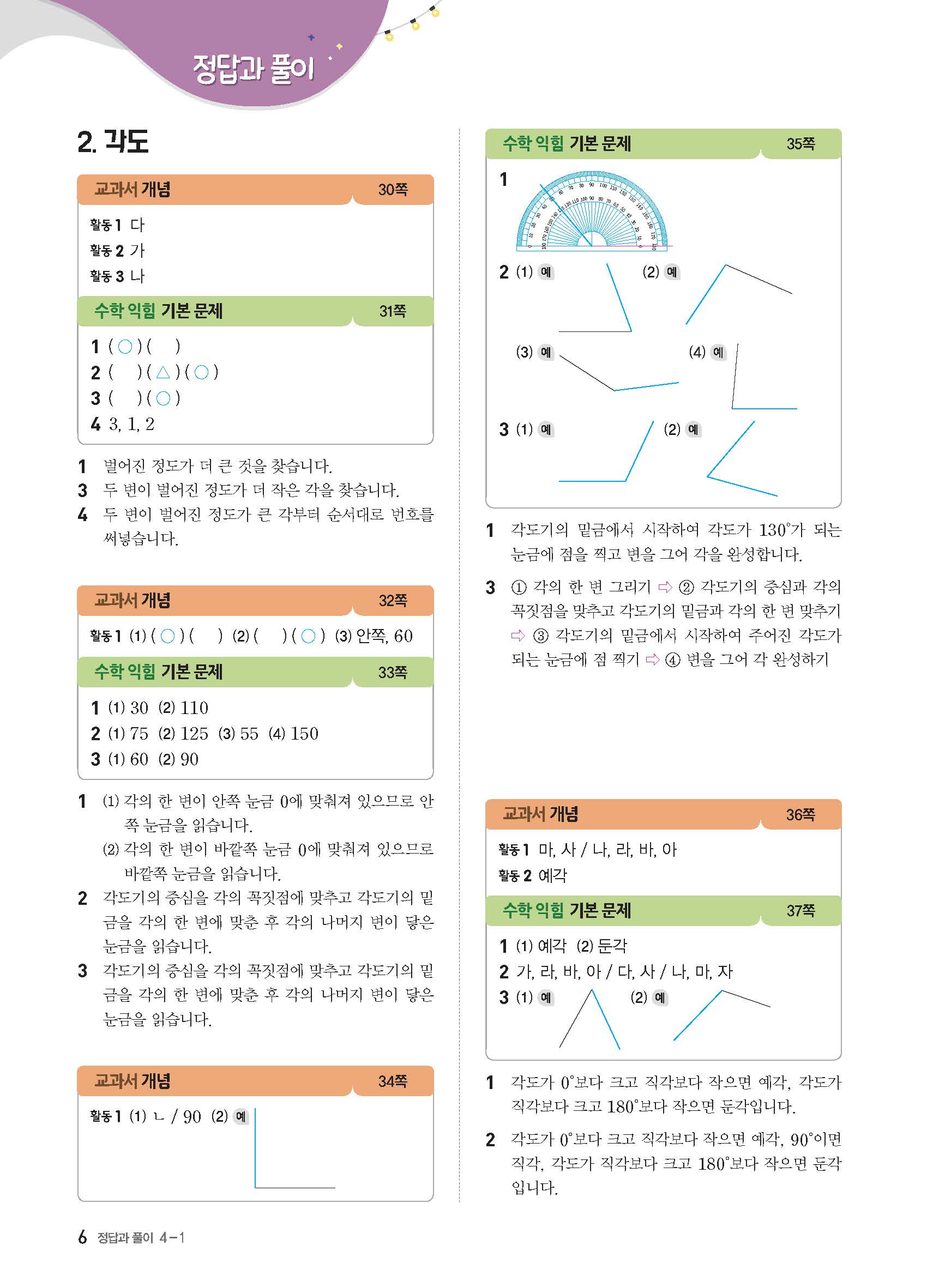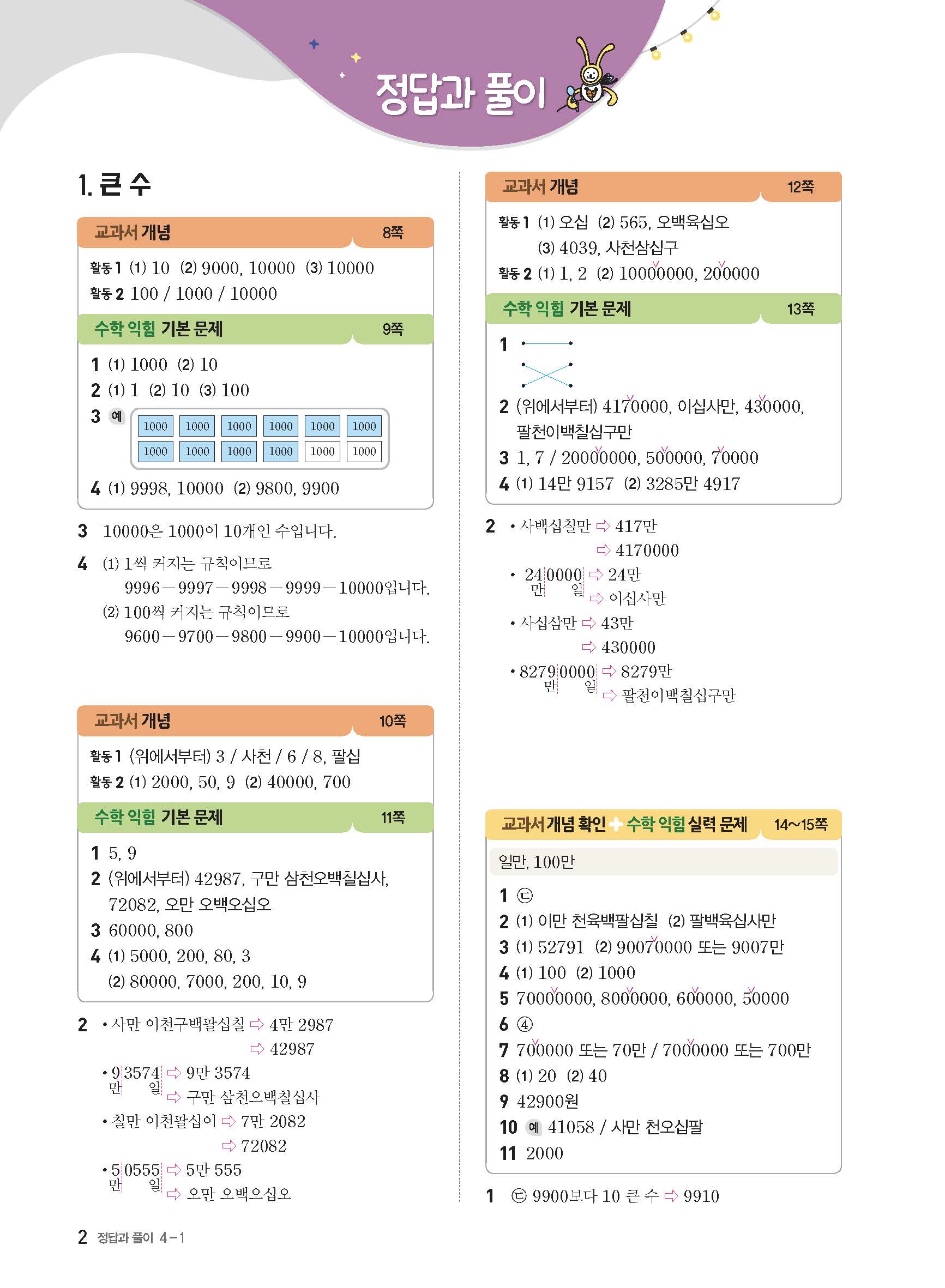 교과서개념잡기 초등수학 4-1 사진답지 빠른답지 모바일최적화