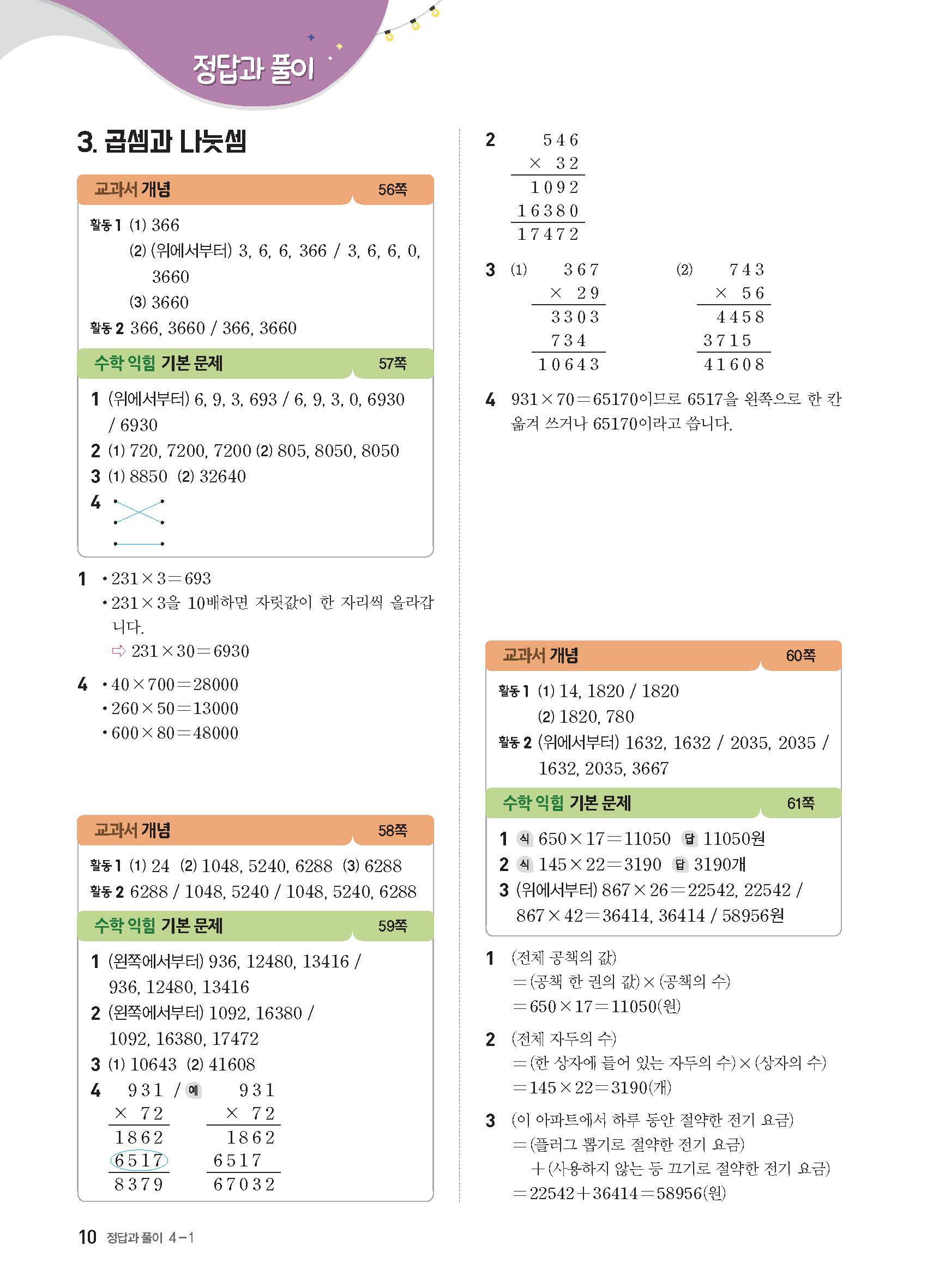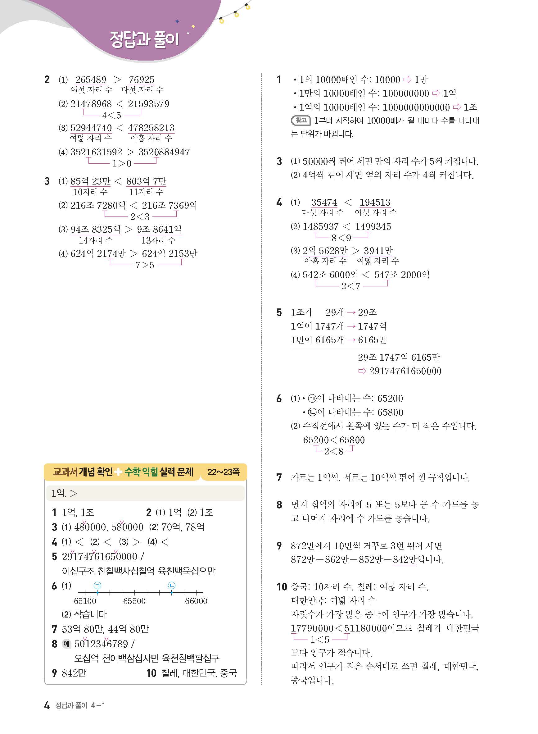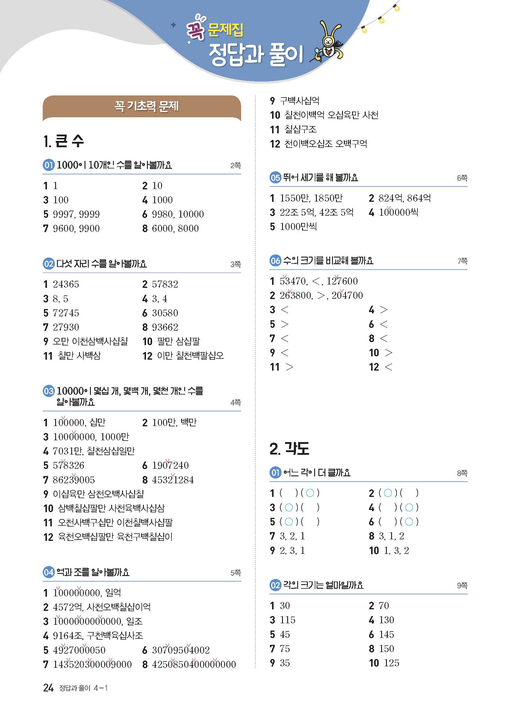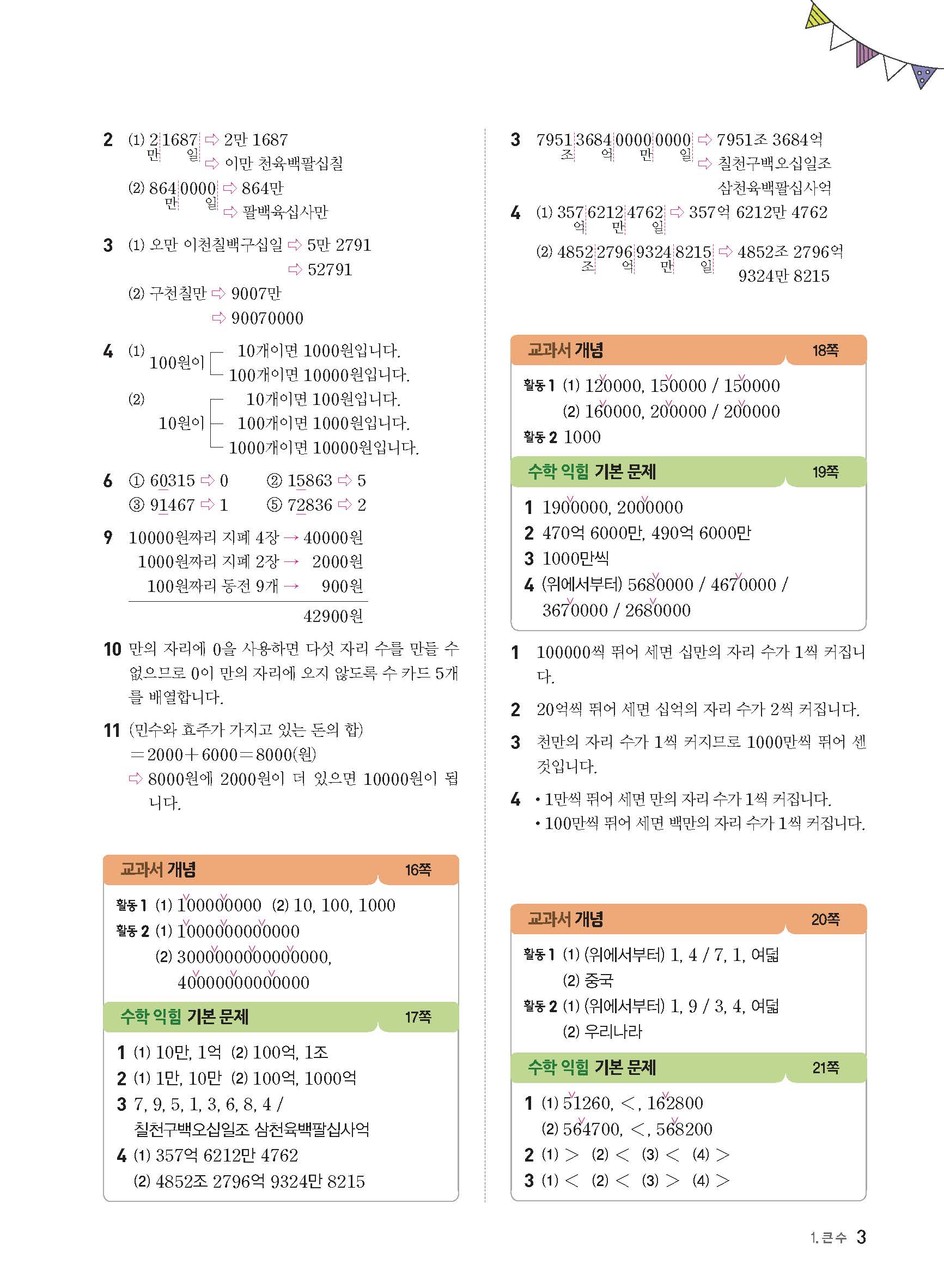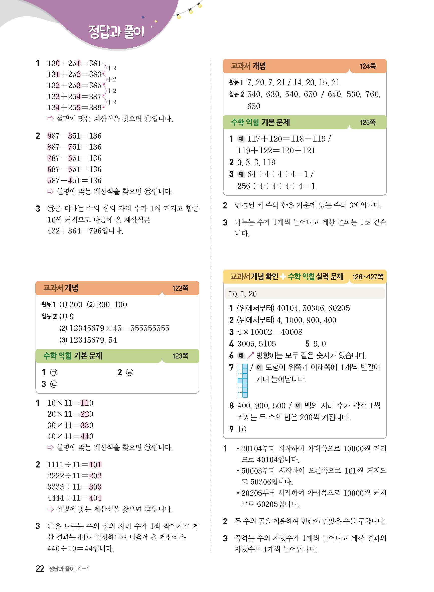 교과서개념잡기 초등수학 4-1 사진답지 빠른답지 모바일최적화