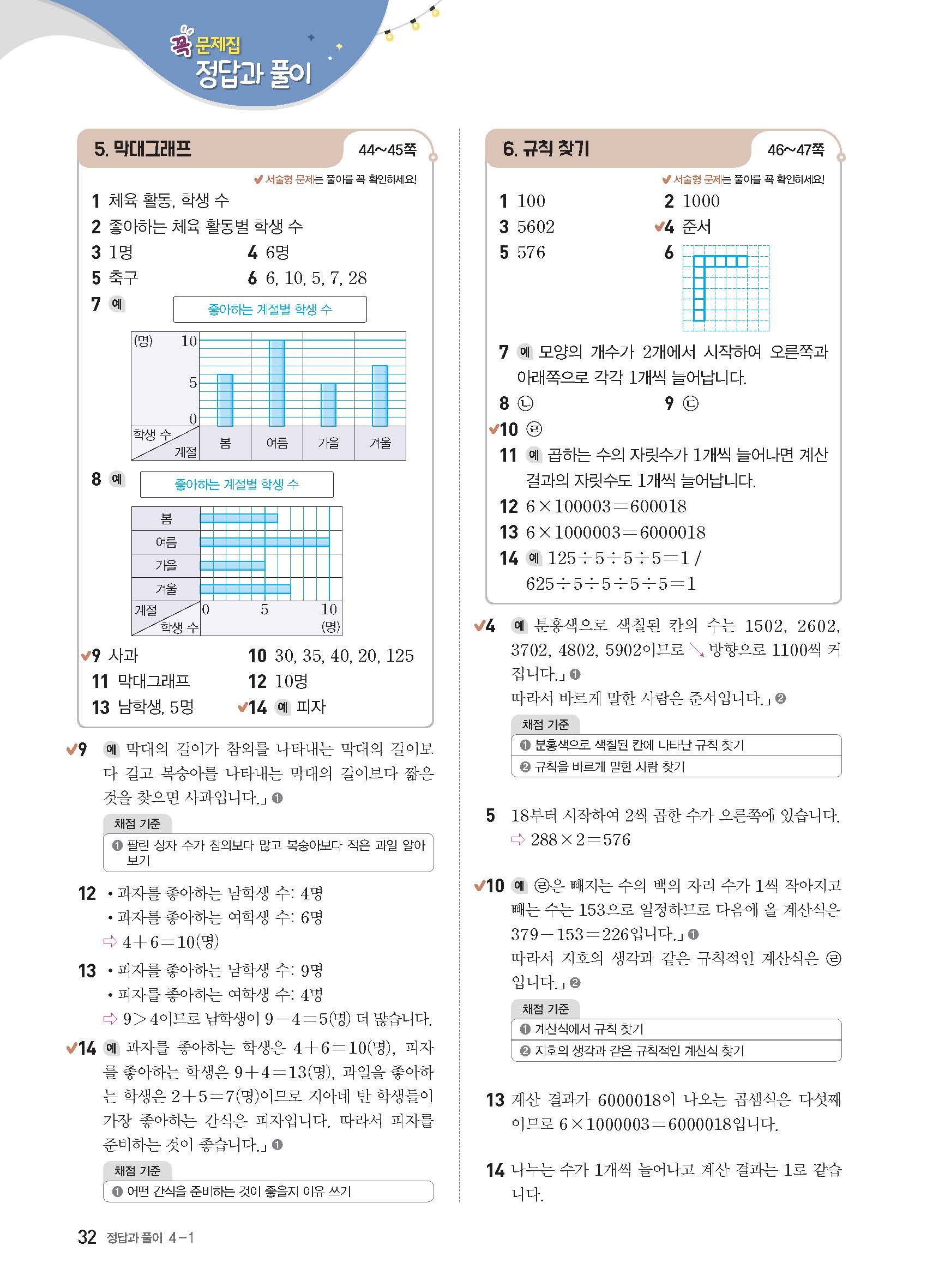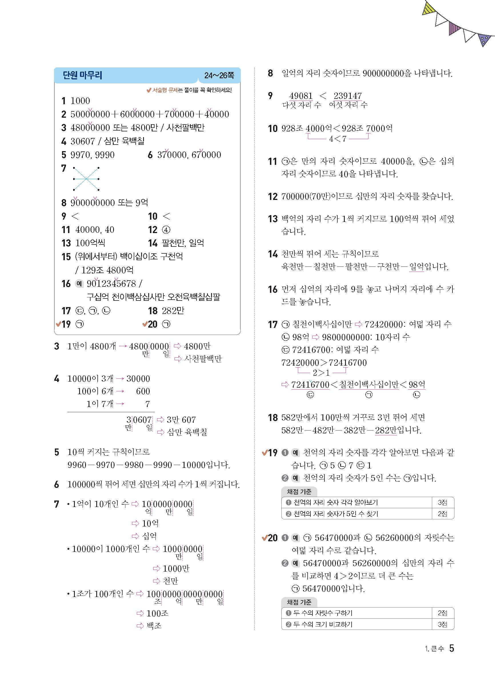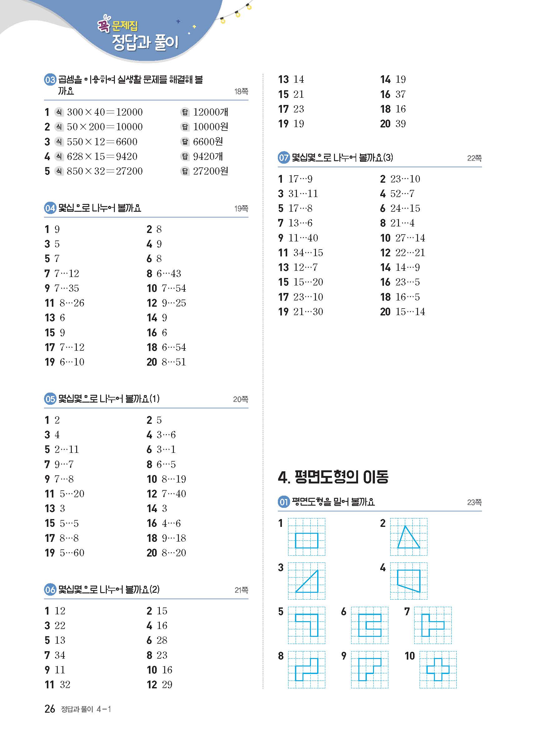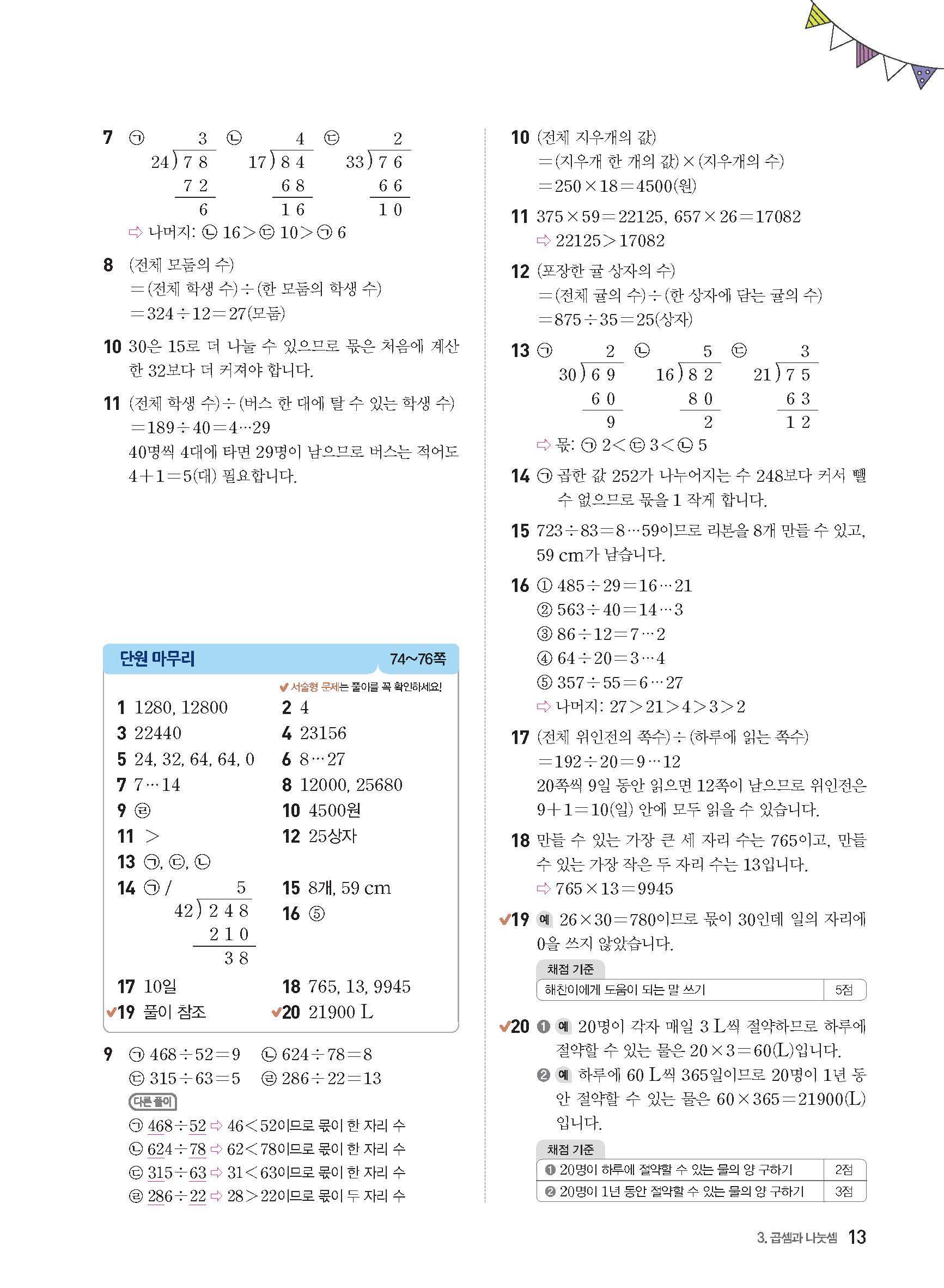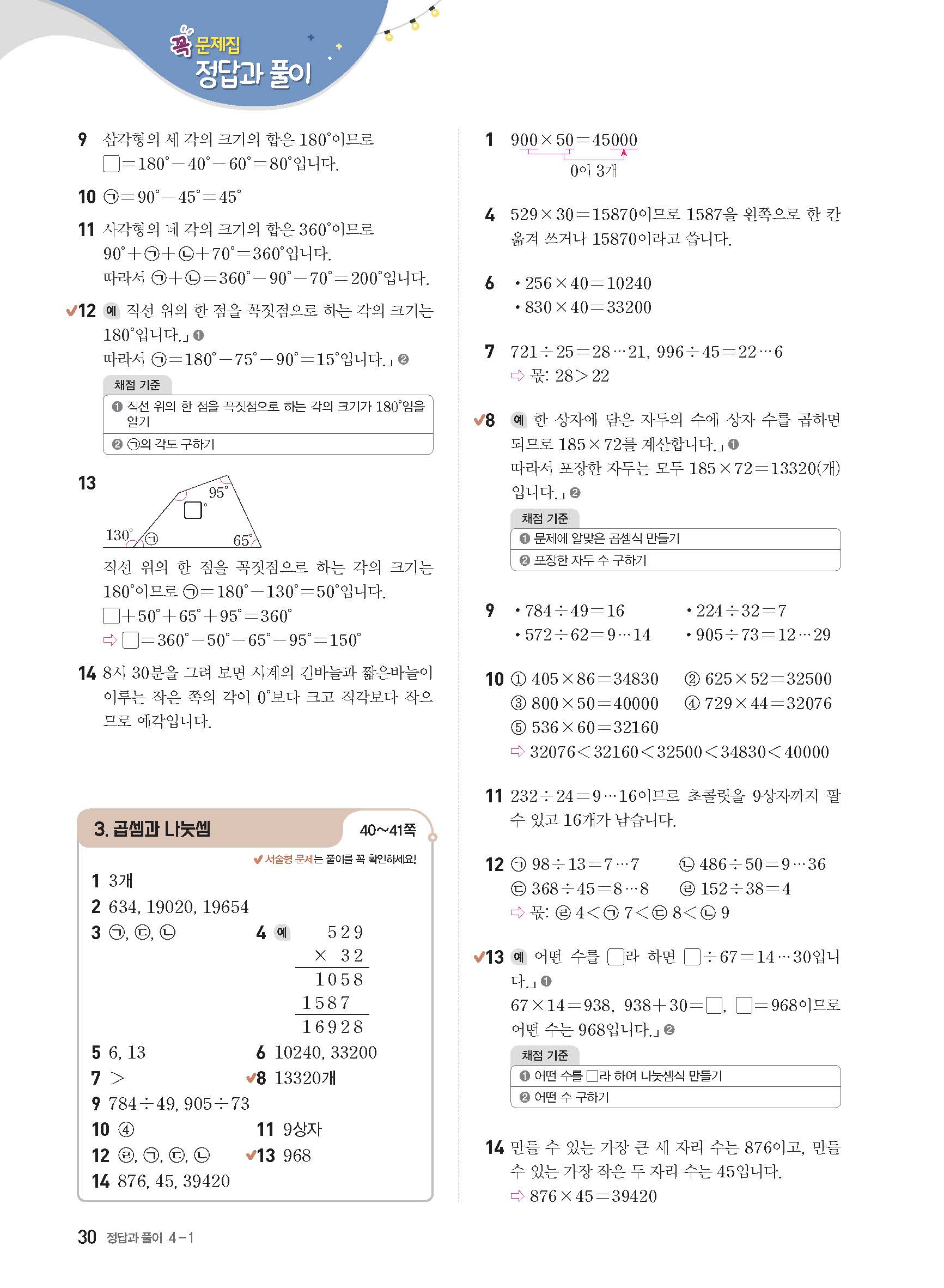 교과서개념잡기 초등수학 4-1 사진답지 빠른답지 모바일최적화