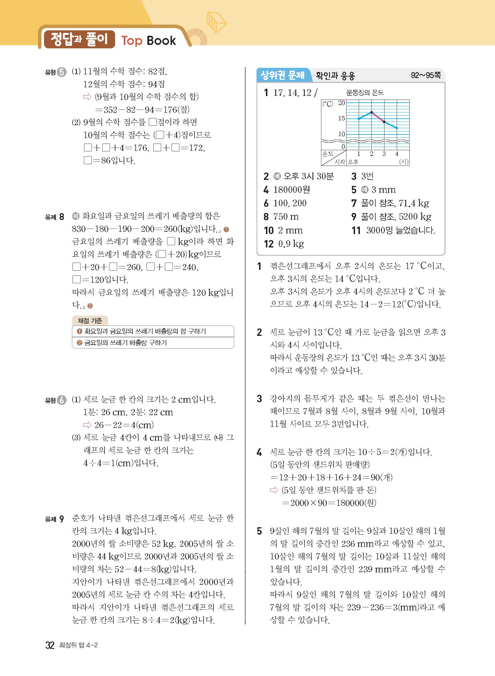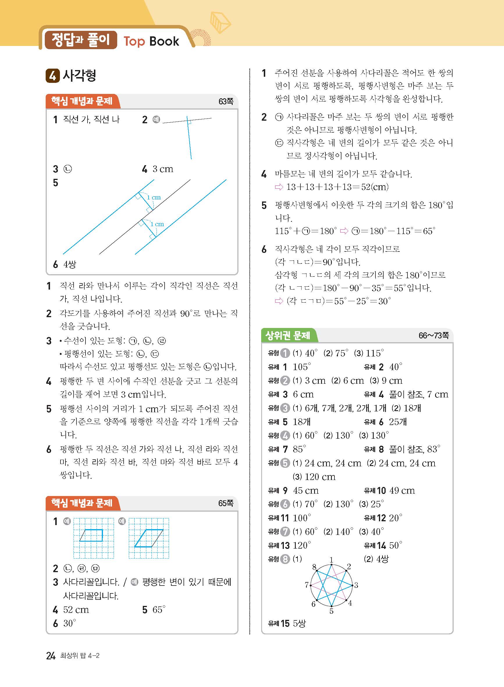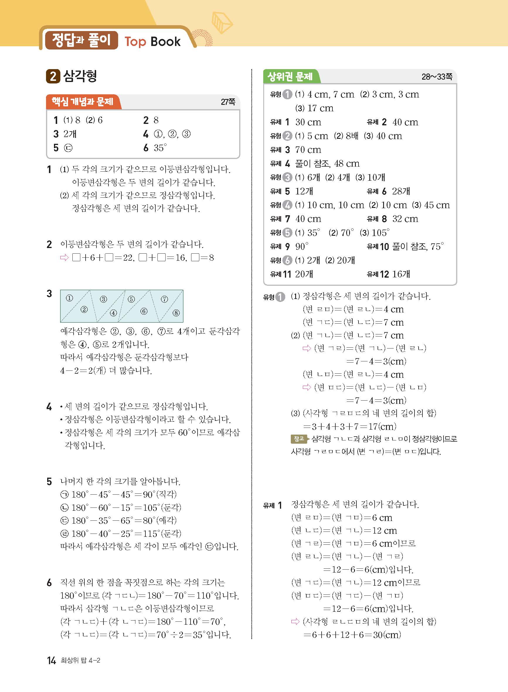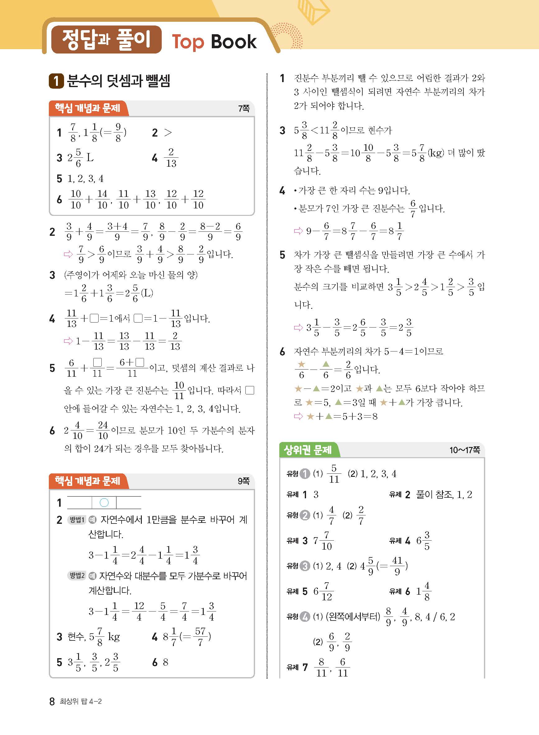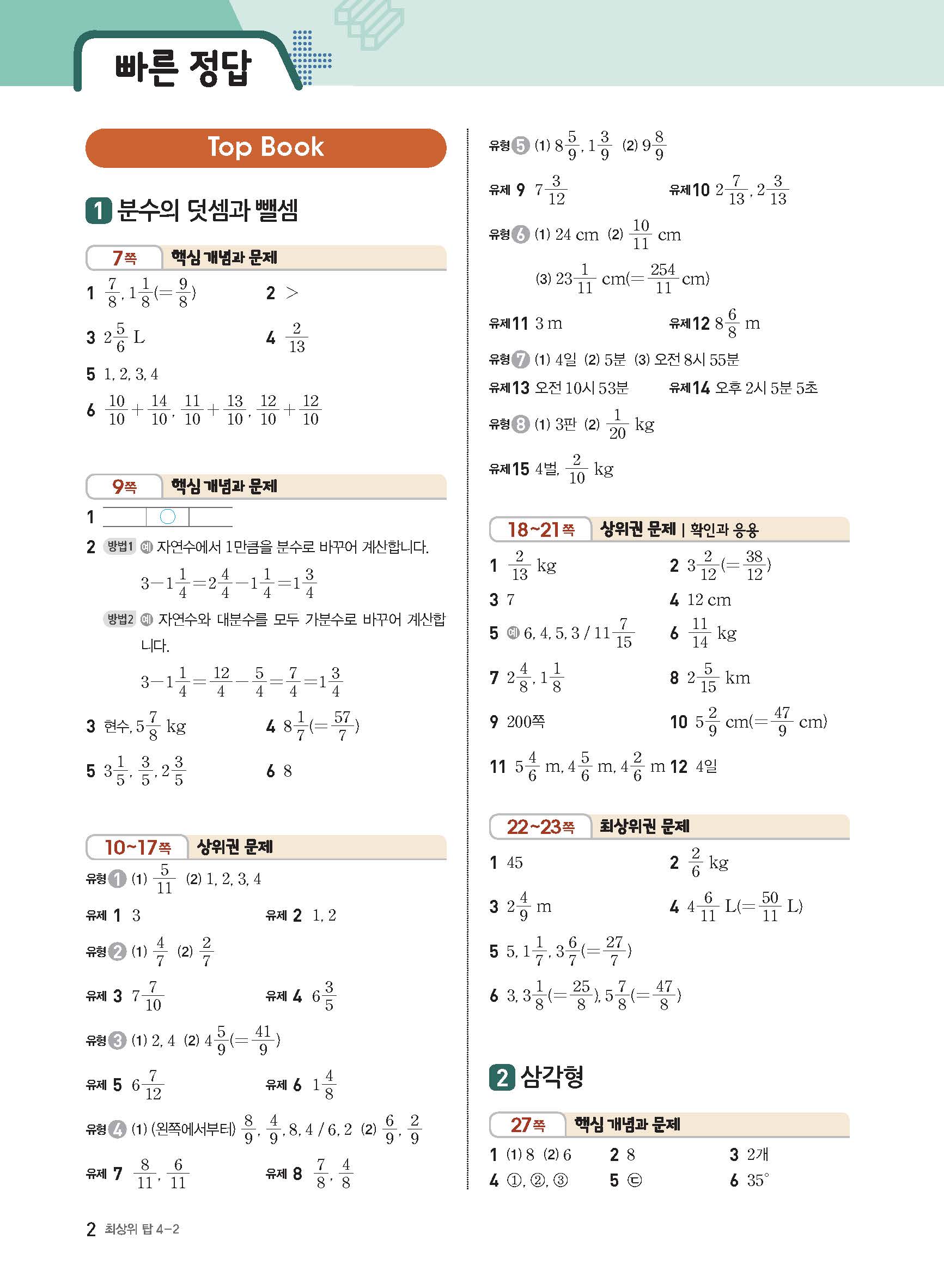개념플러스유형 최상위탑 초등수학 4-2 사진답지 빠른답지 모바일최적화