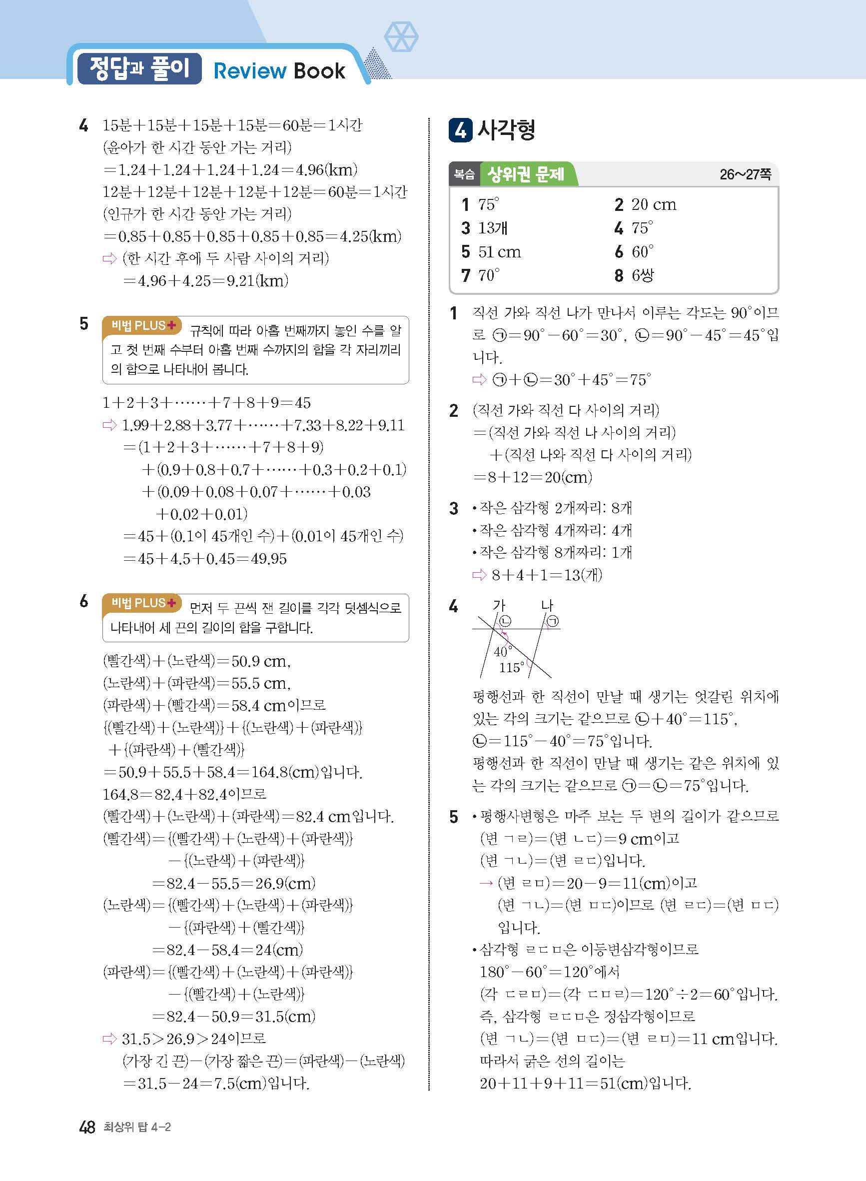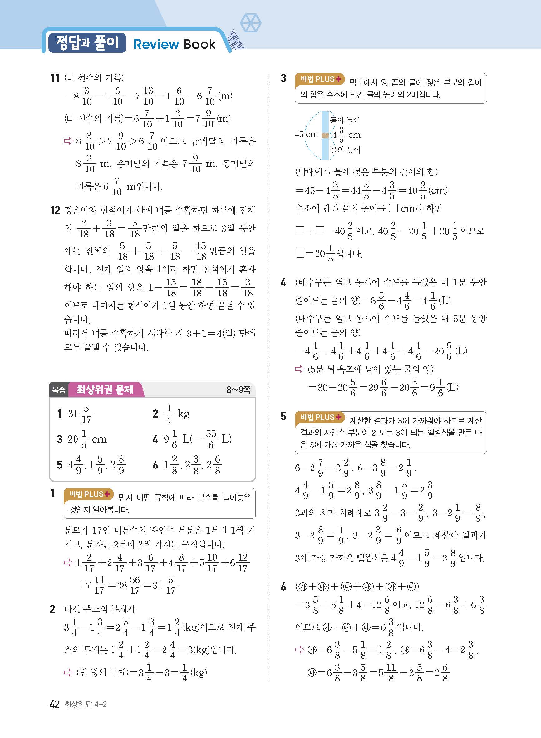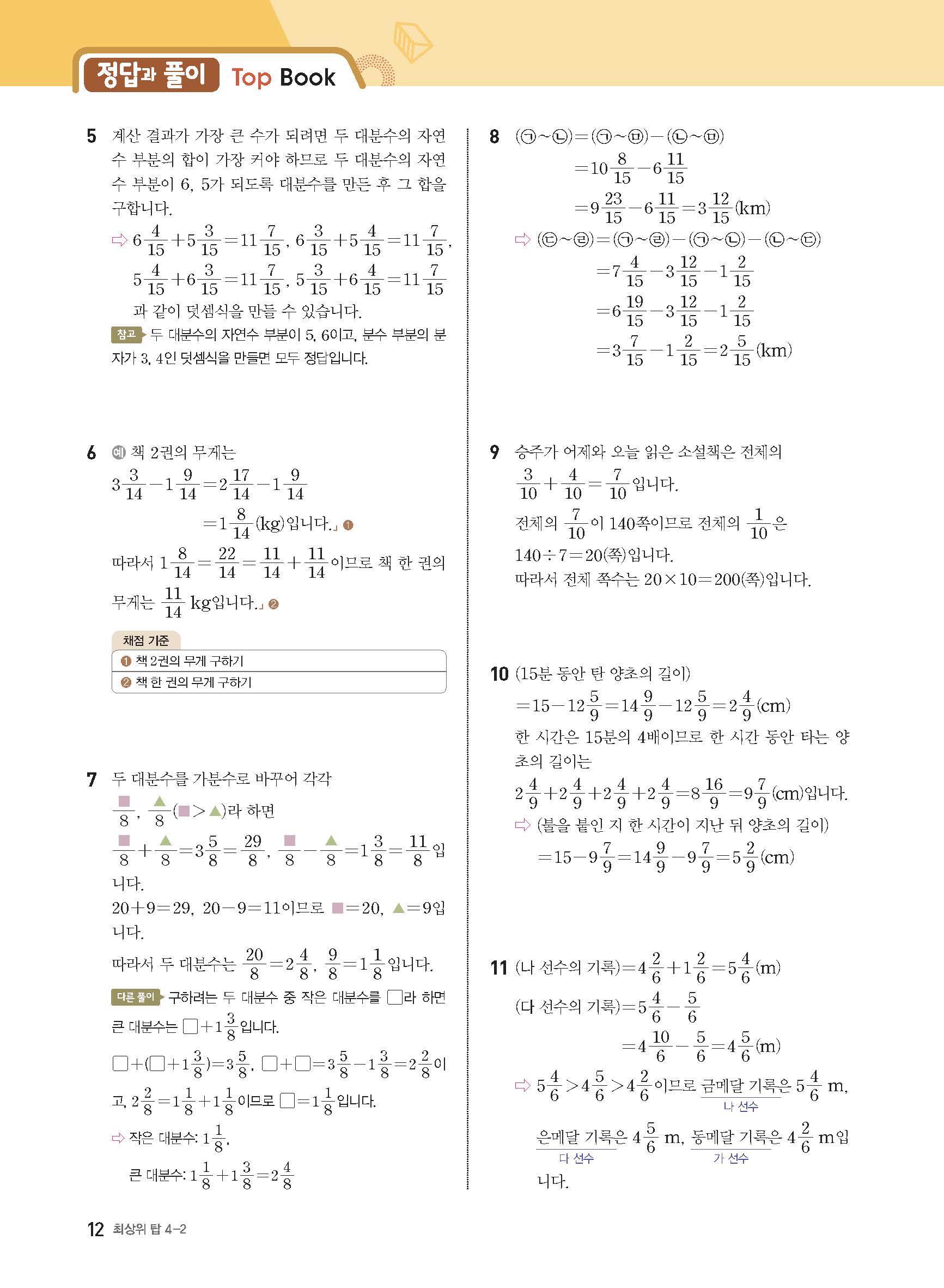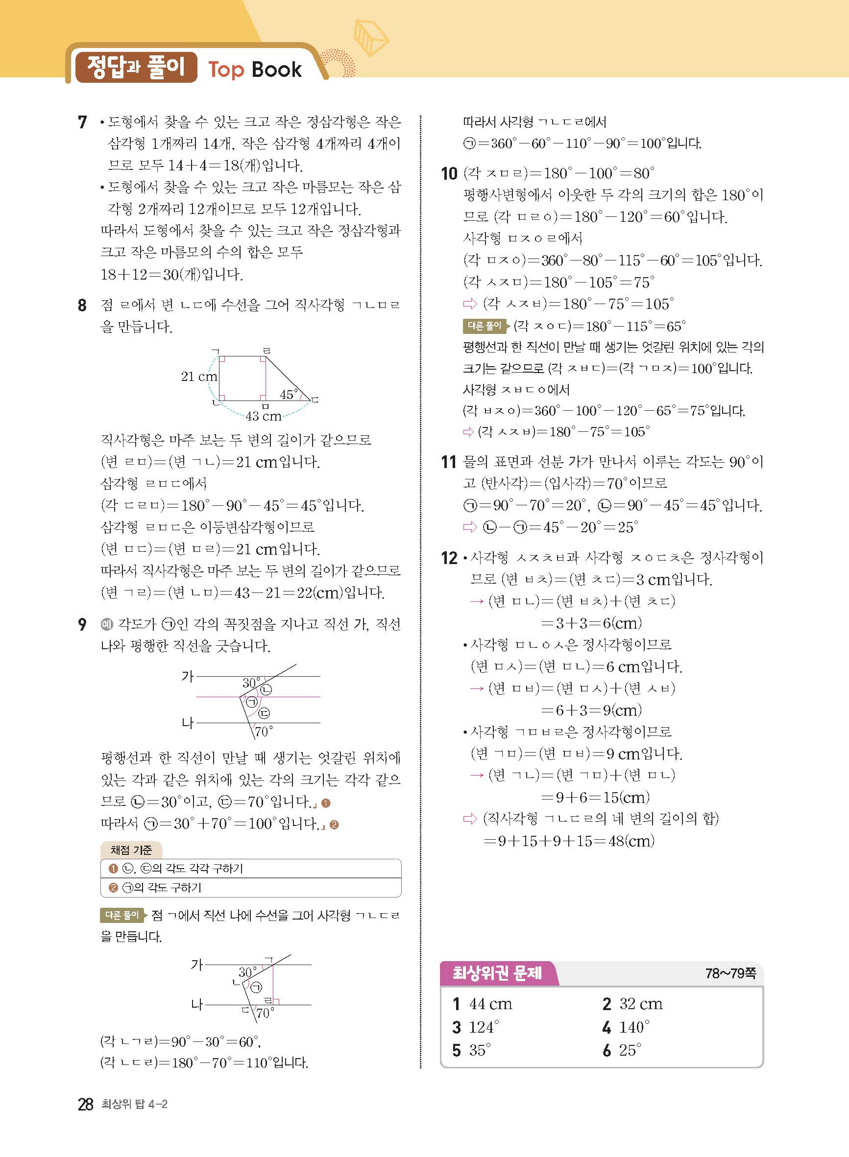 개념플러스유형 최상위탑 초등수학 4-2 사진답지 빠른답지 모바일최적화
