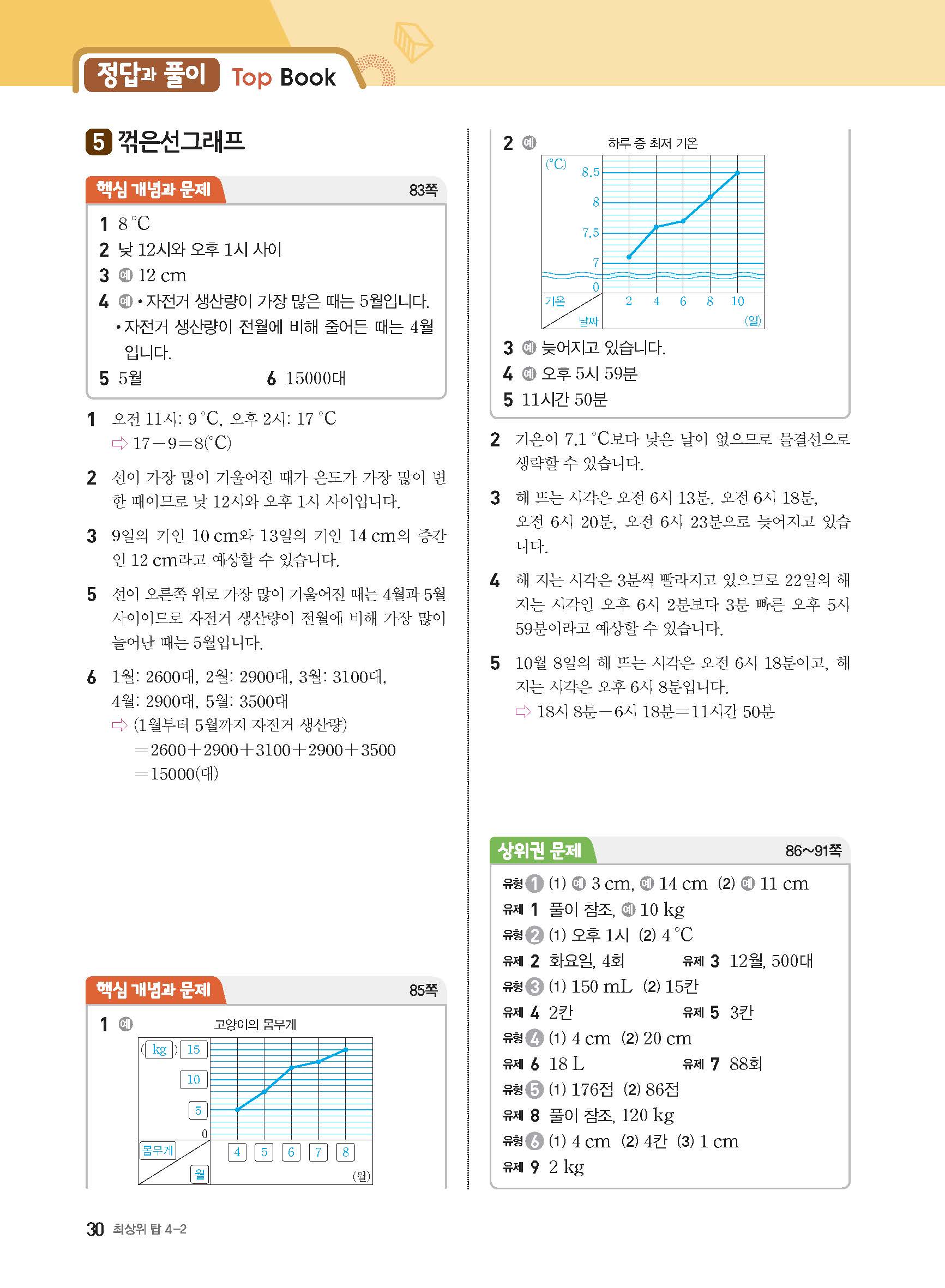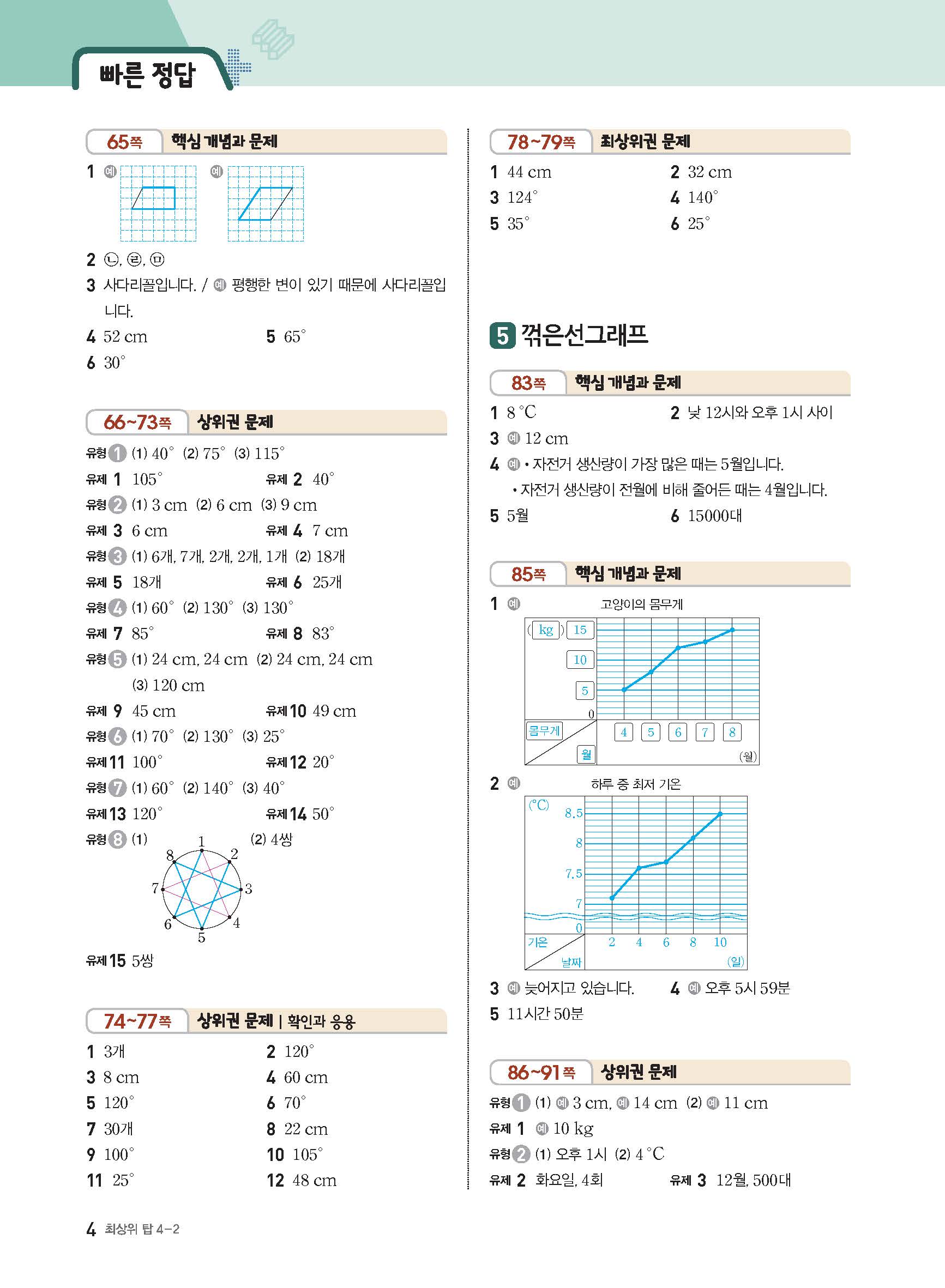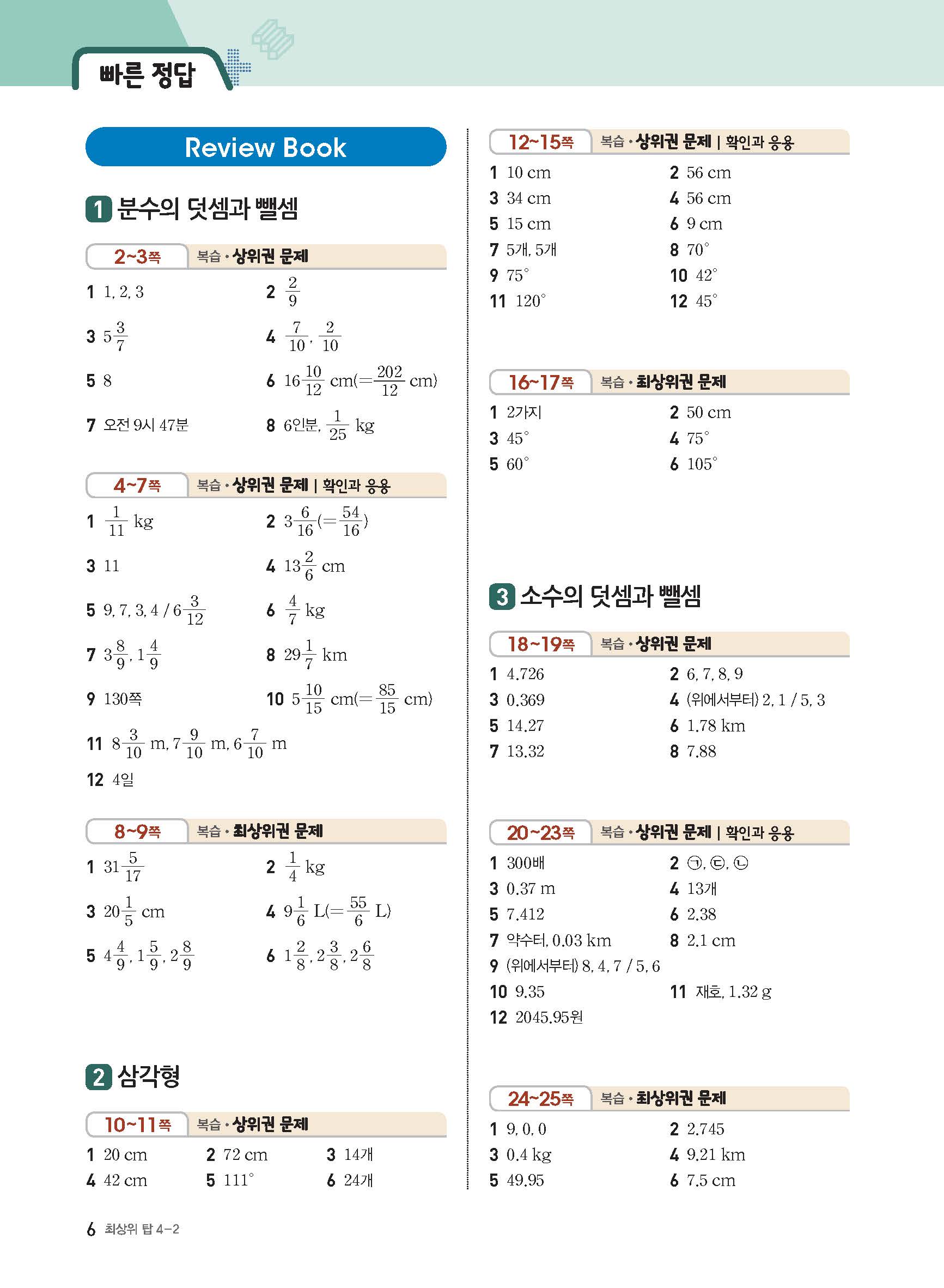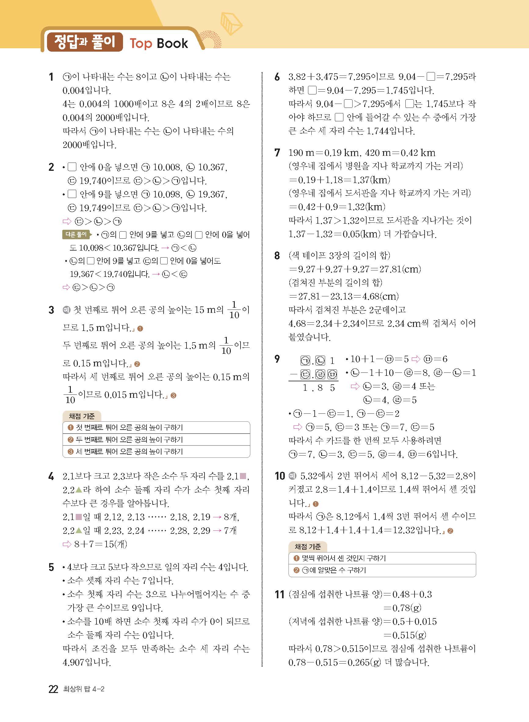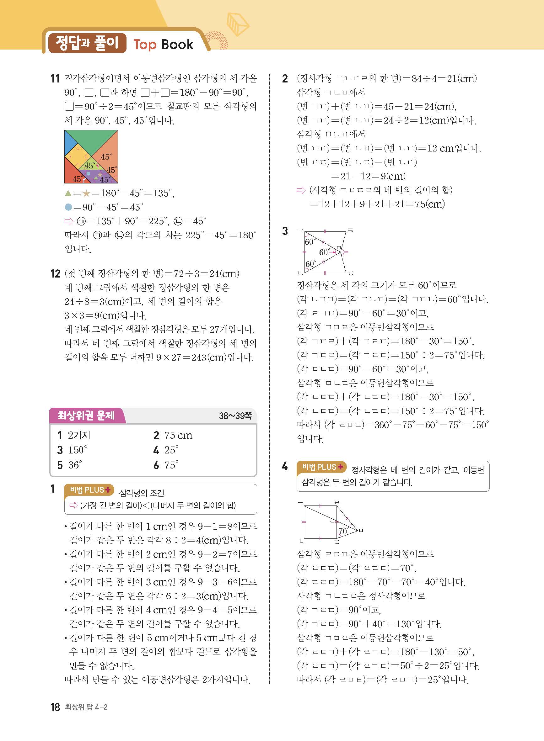 개념플러스유형 최상위탑 초등수학 4-2 사진답지 빠른답지 모바일최적화