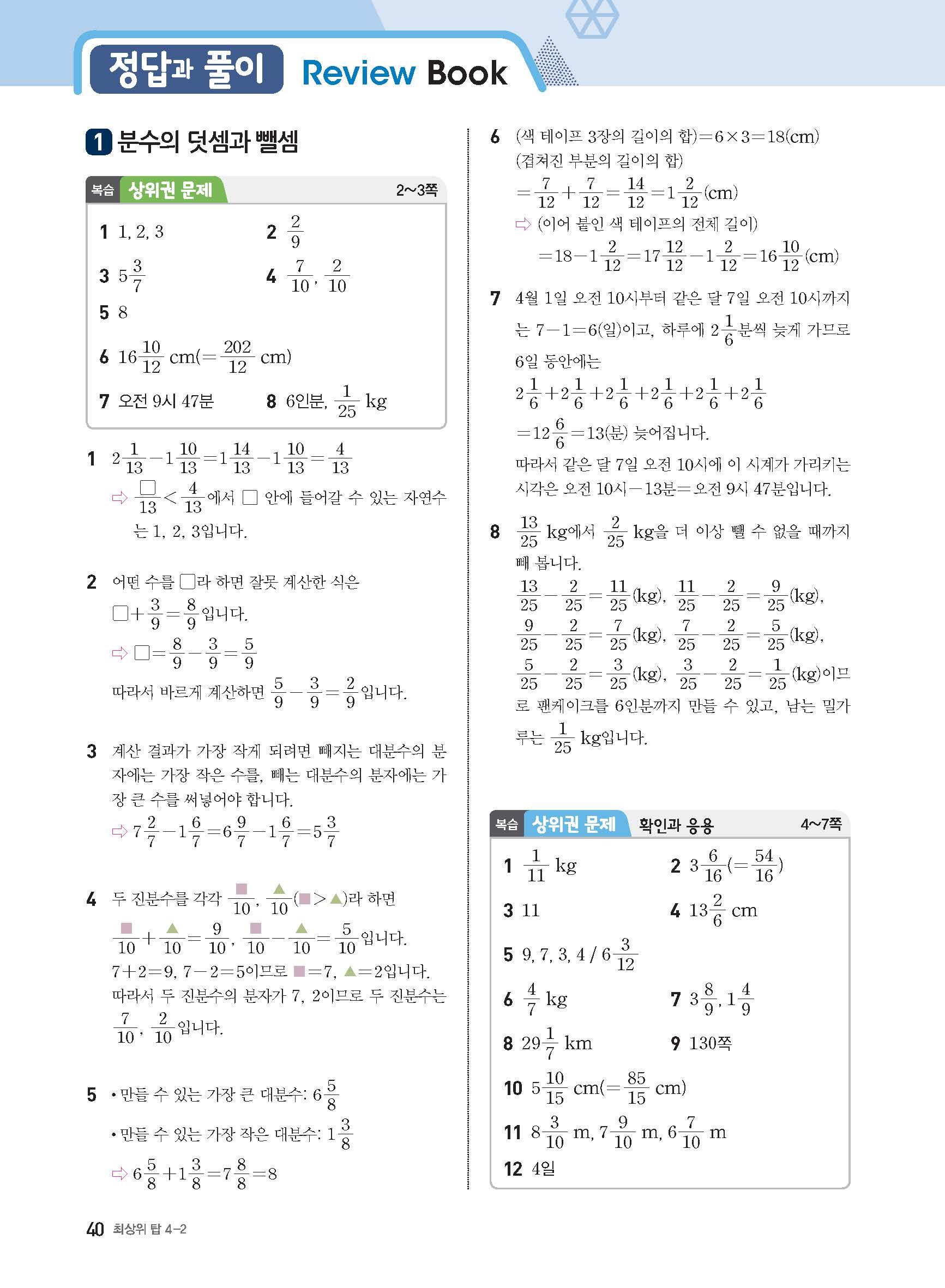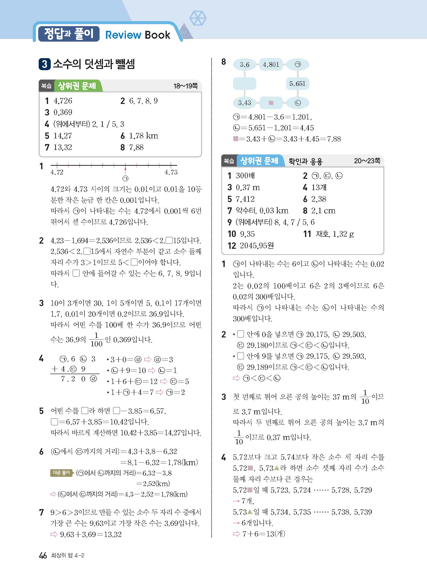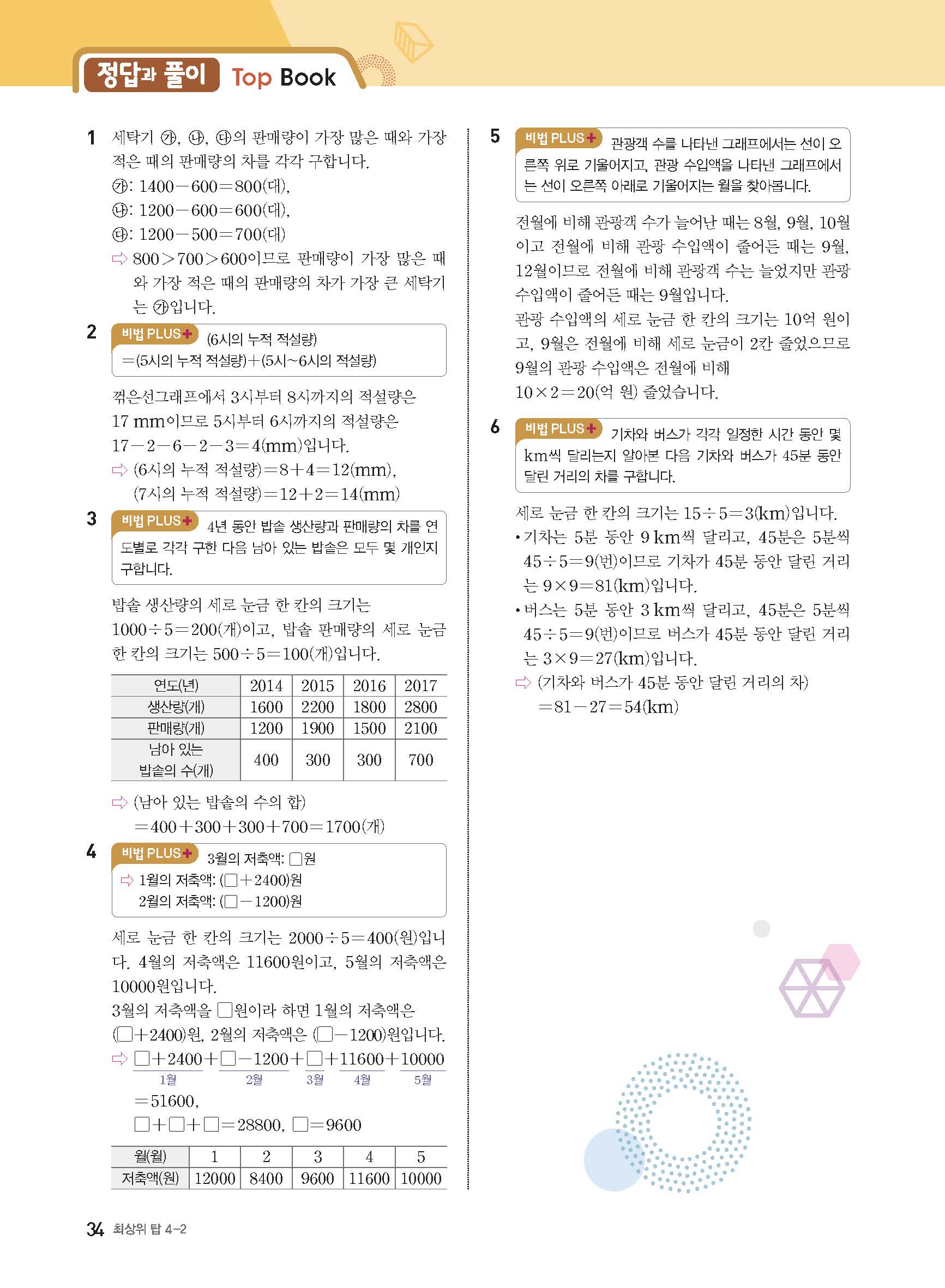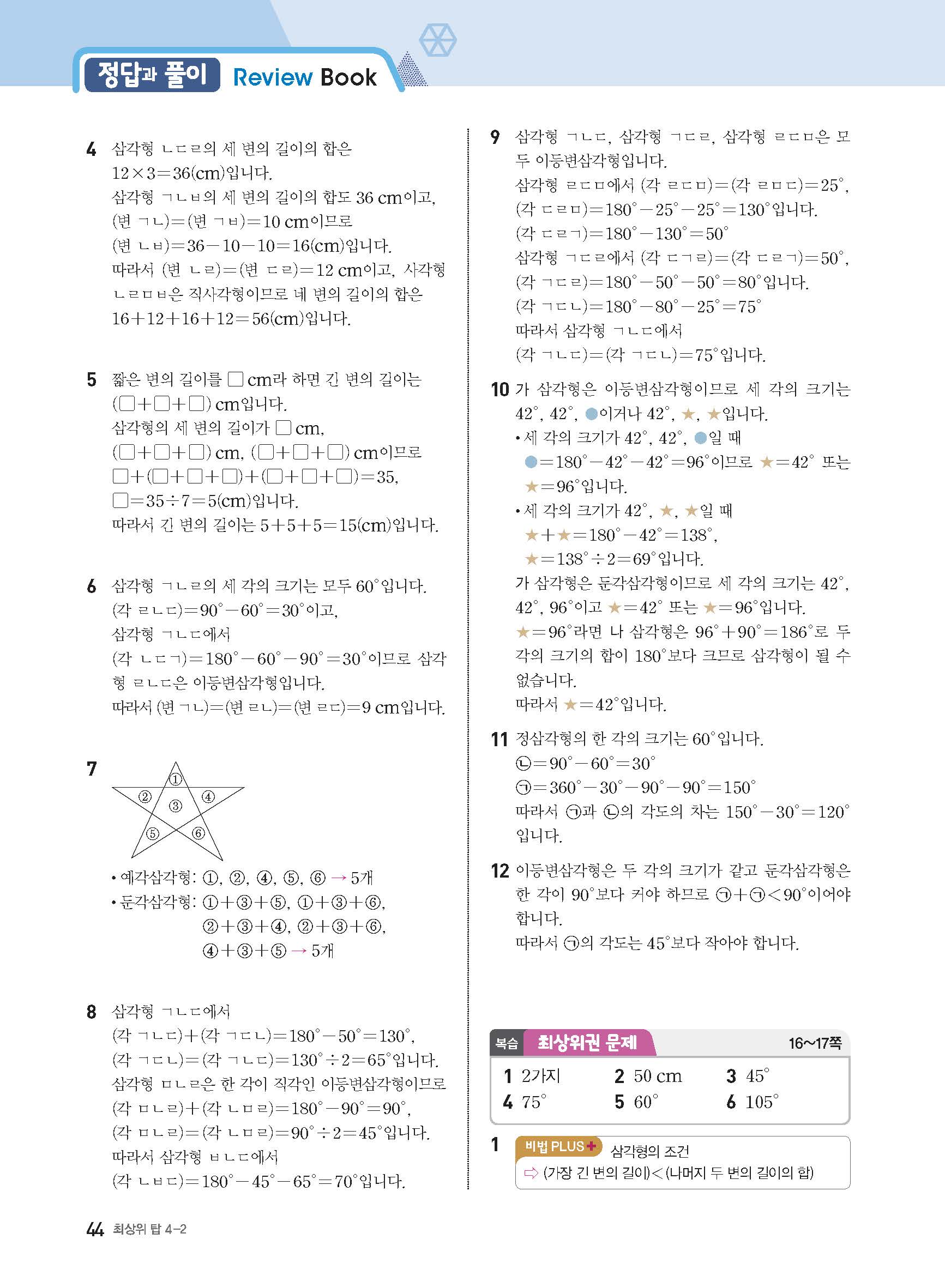 개념플러스유형 최상위탑 초등수학 4-2 사진답지 빠른답지 모바일최적화