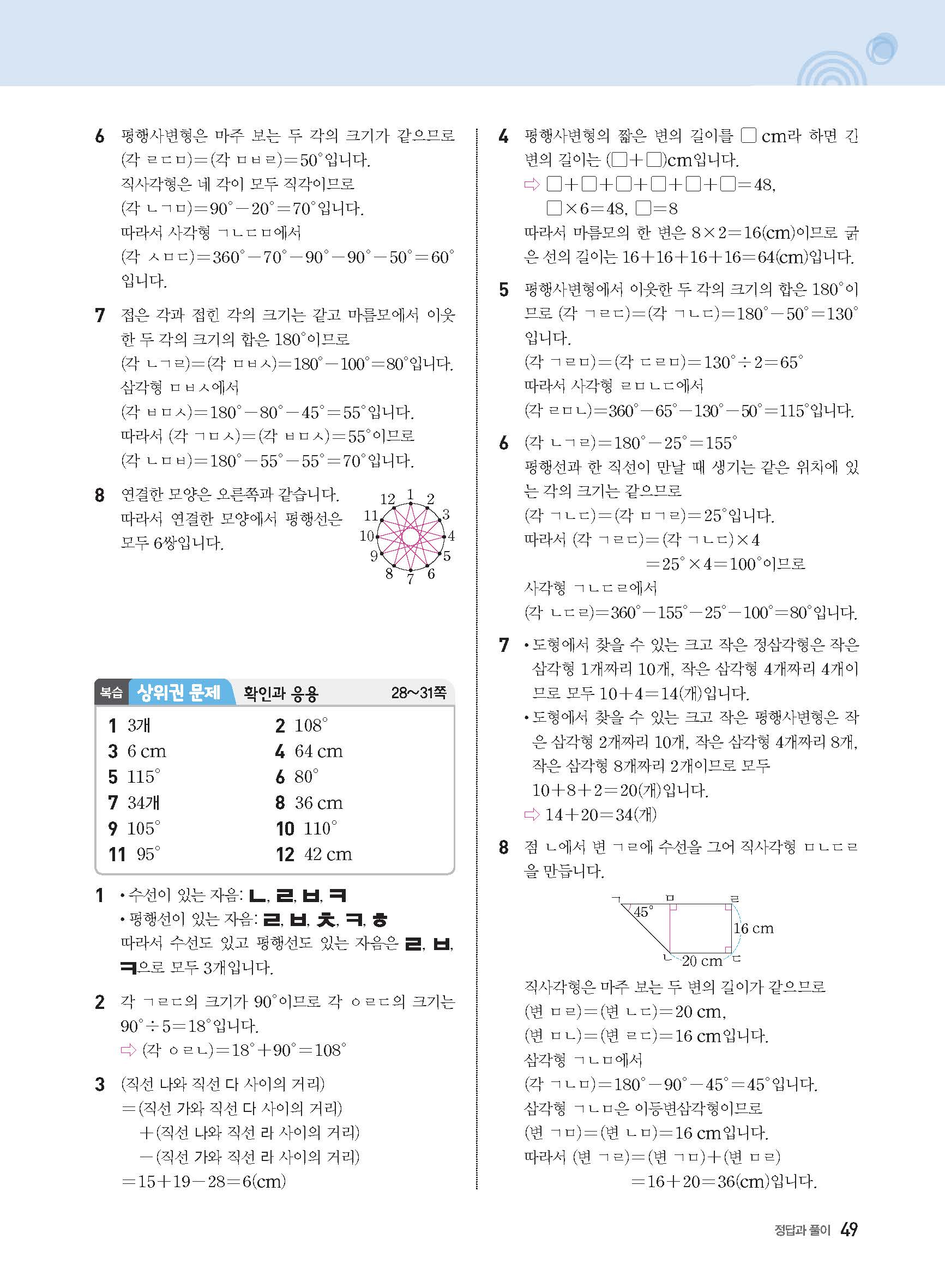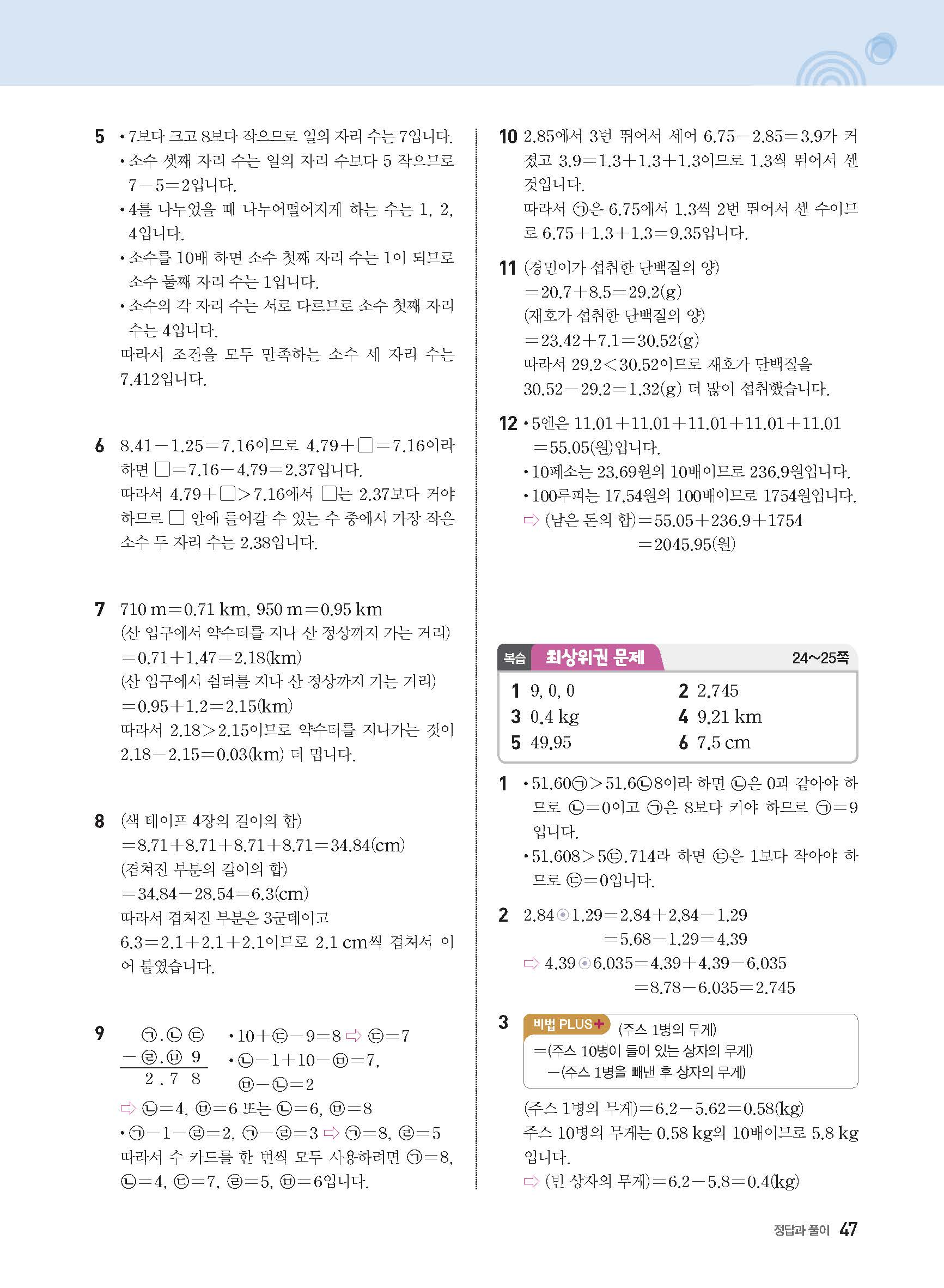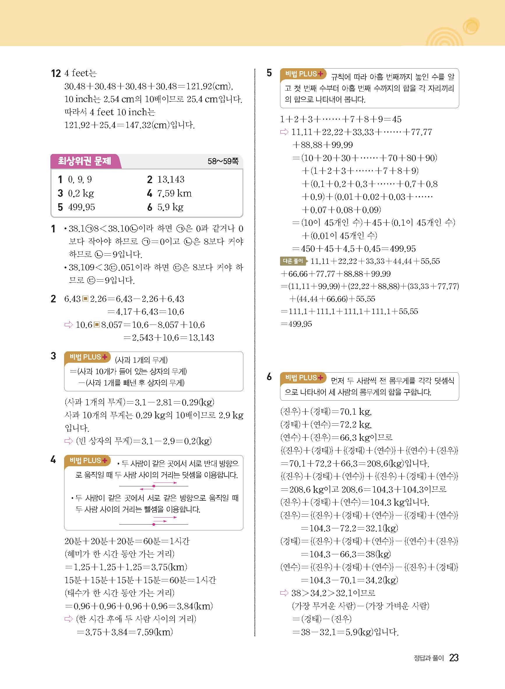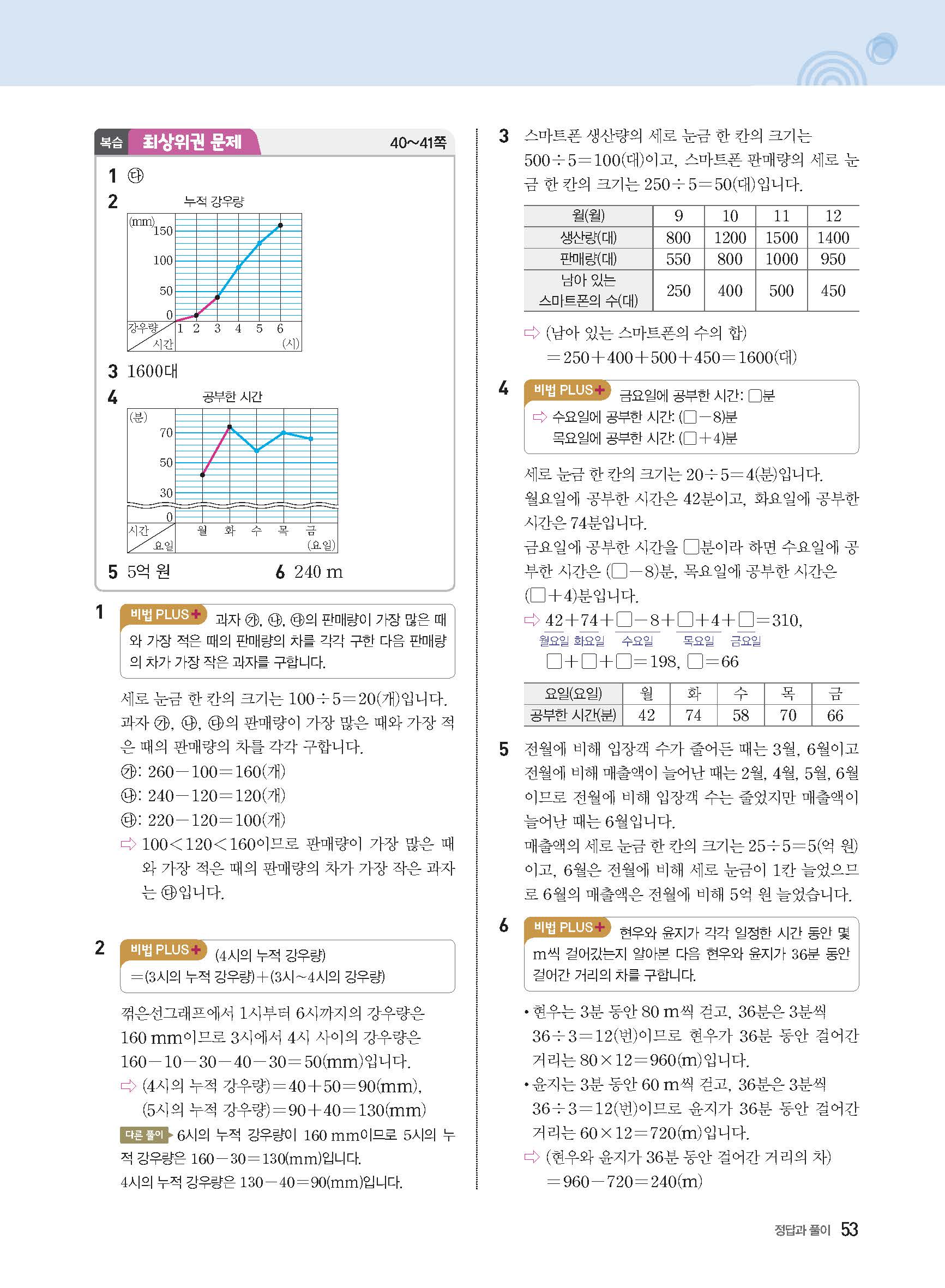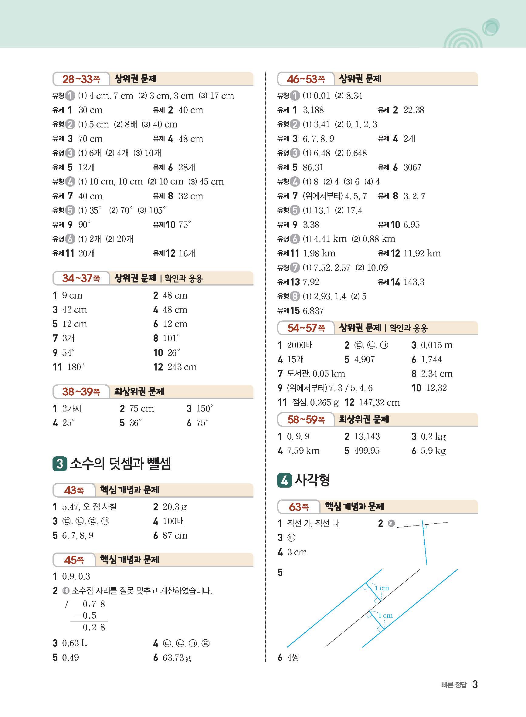 개념플러스유형 최상위탑 초등수학 4-2 사진답지 빠른답지 모바일최적화