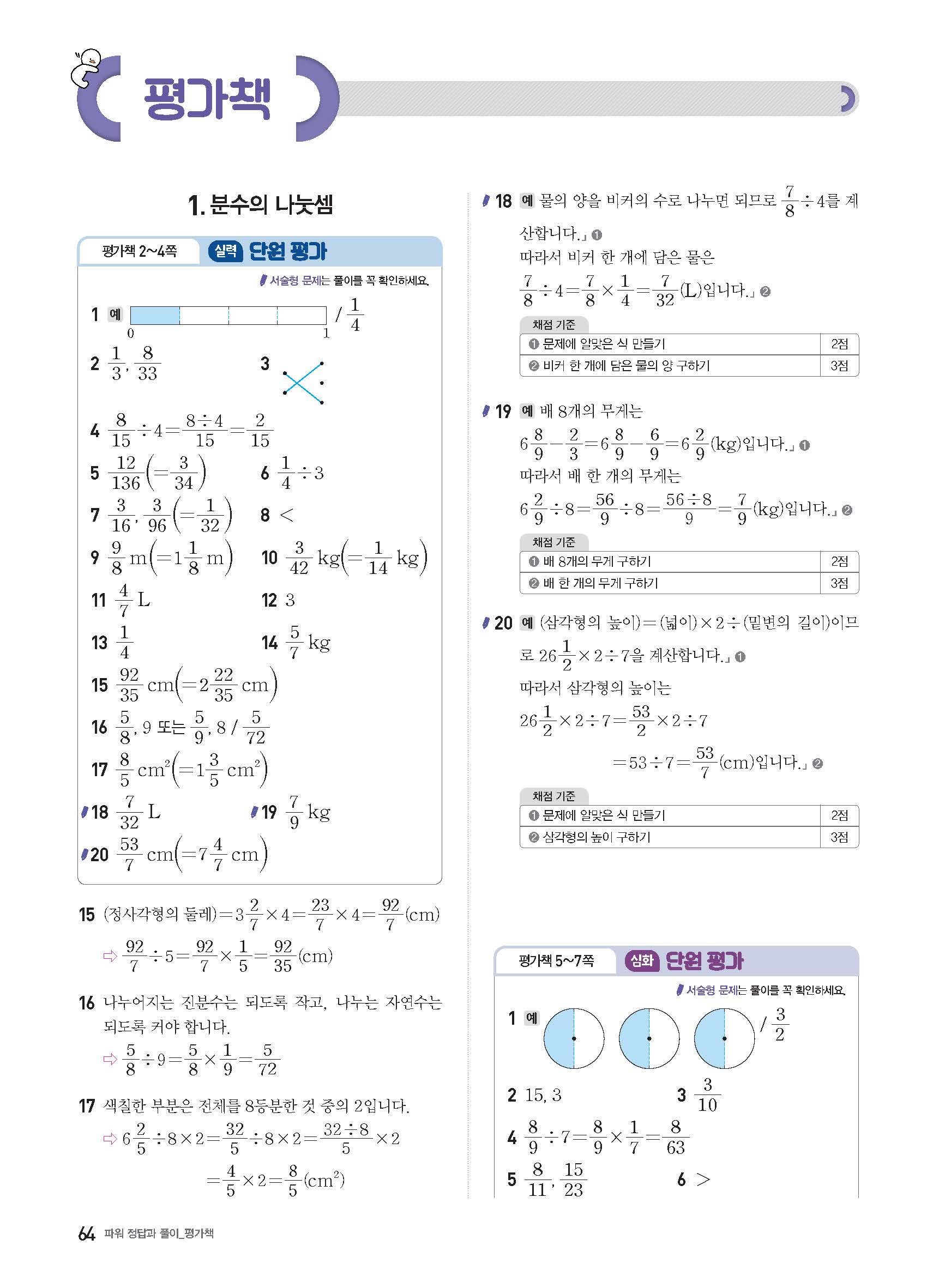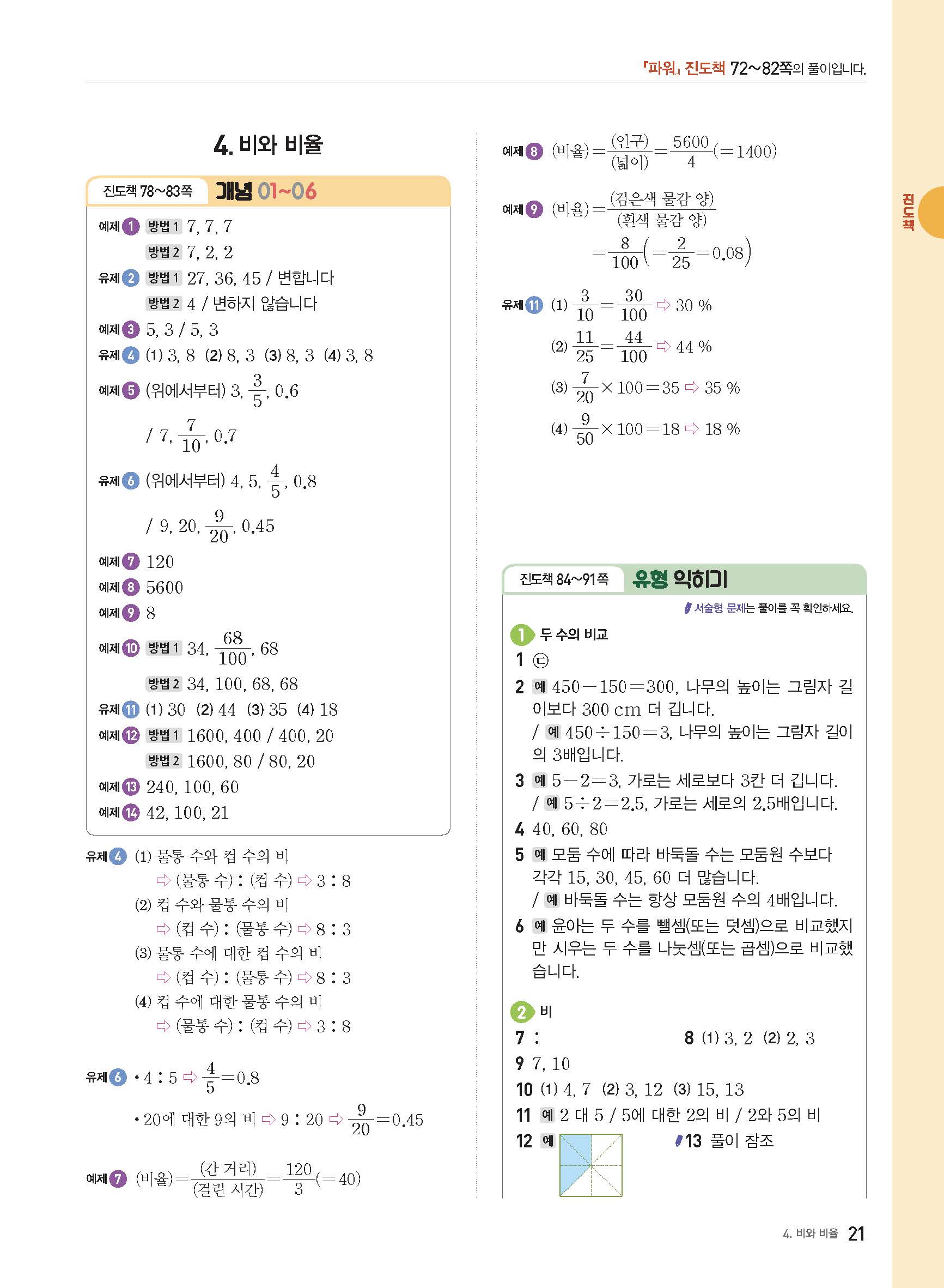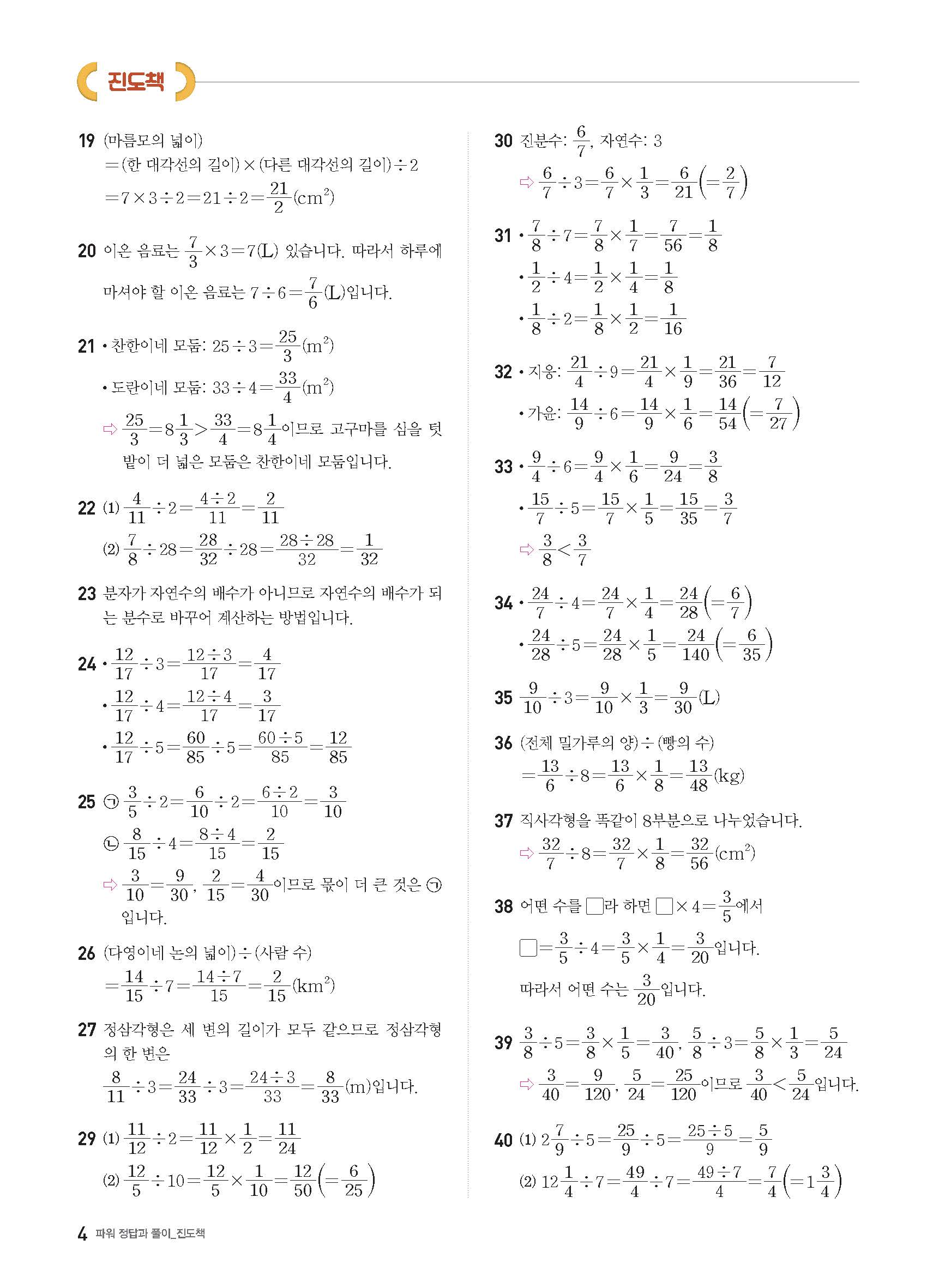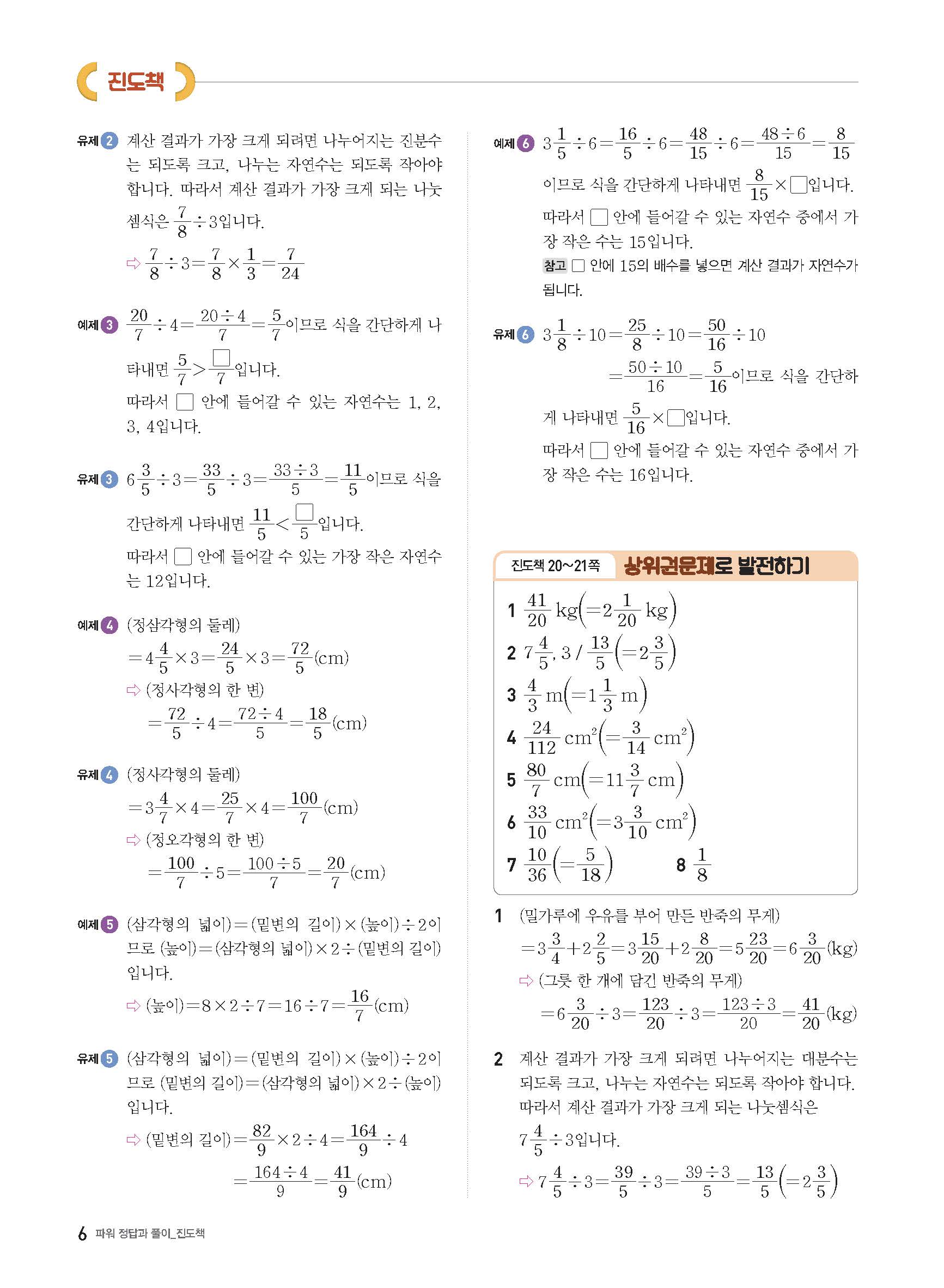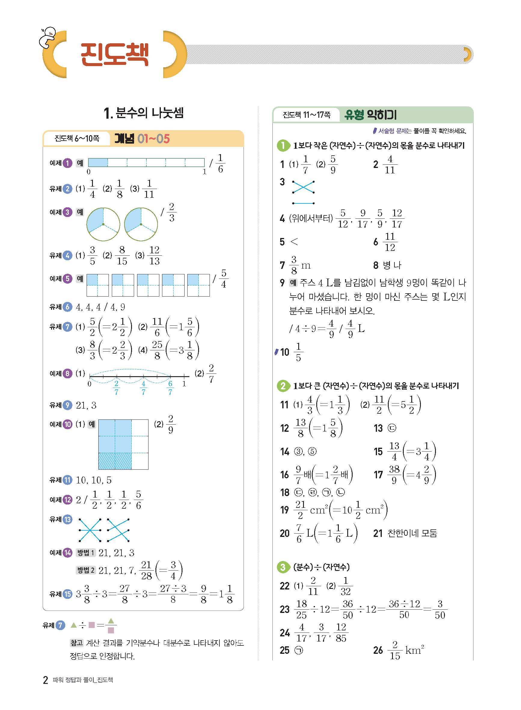개념플러스연산 초등수학 파워 6-1 사진답지 빠른답지 모바일최적화