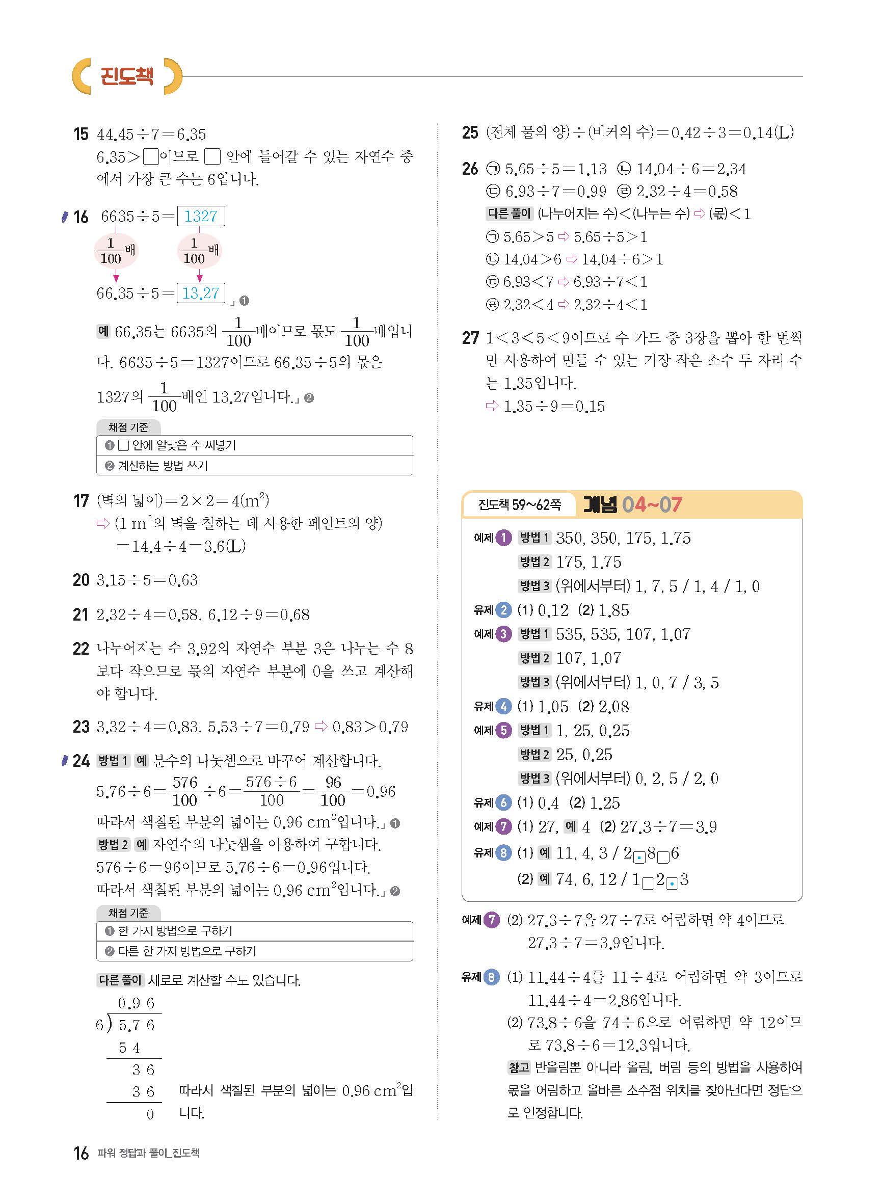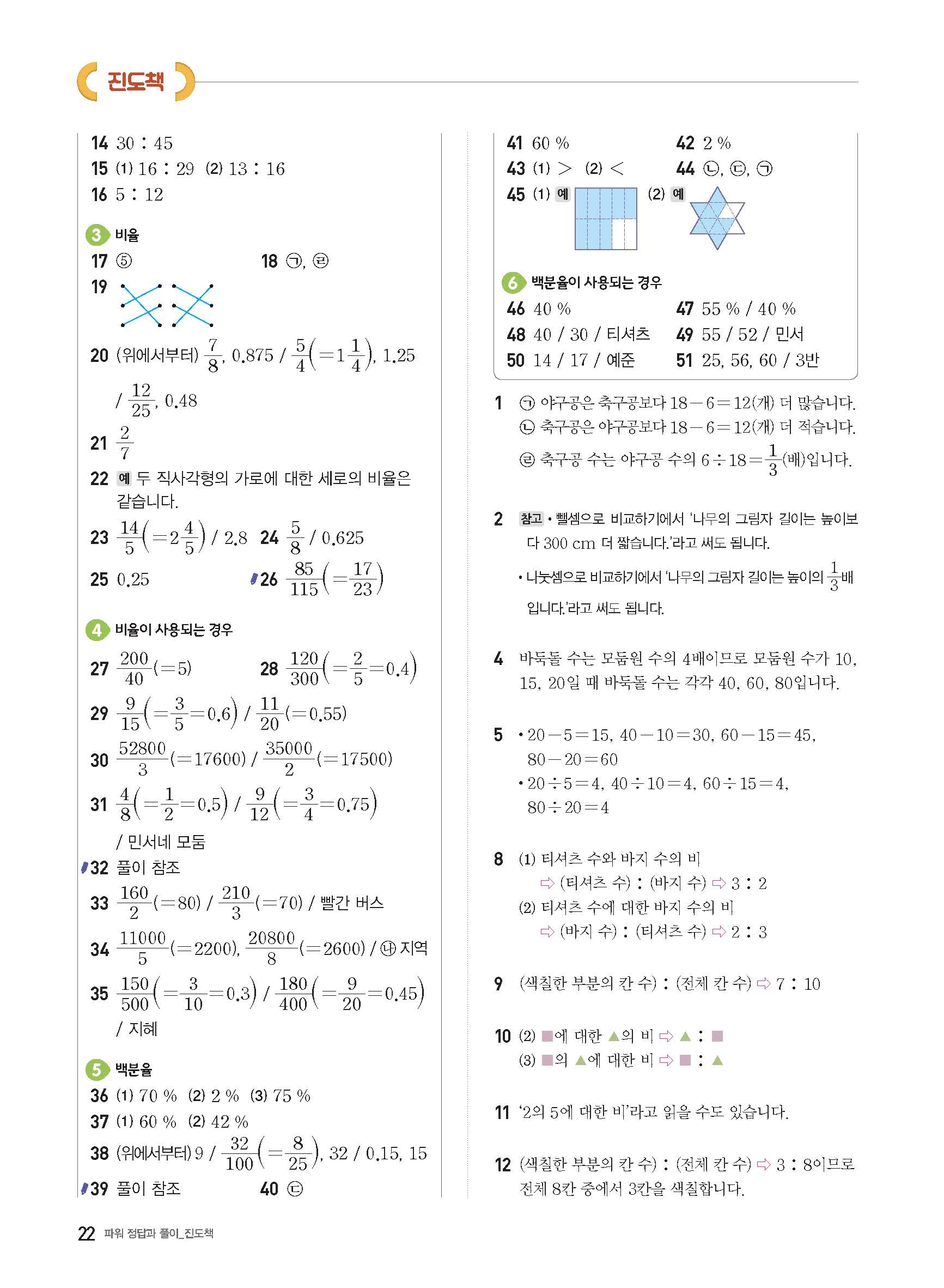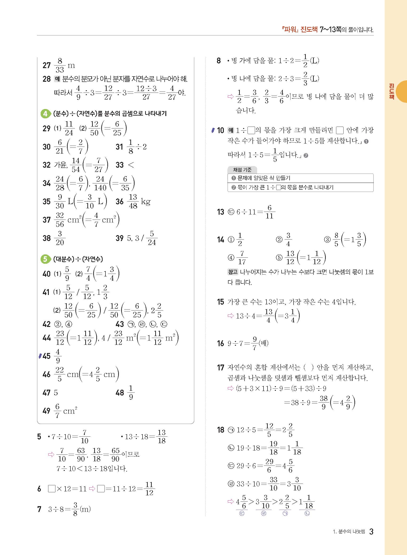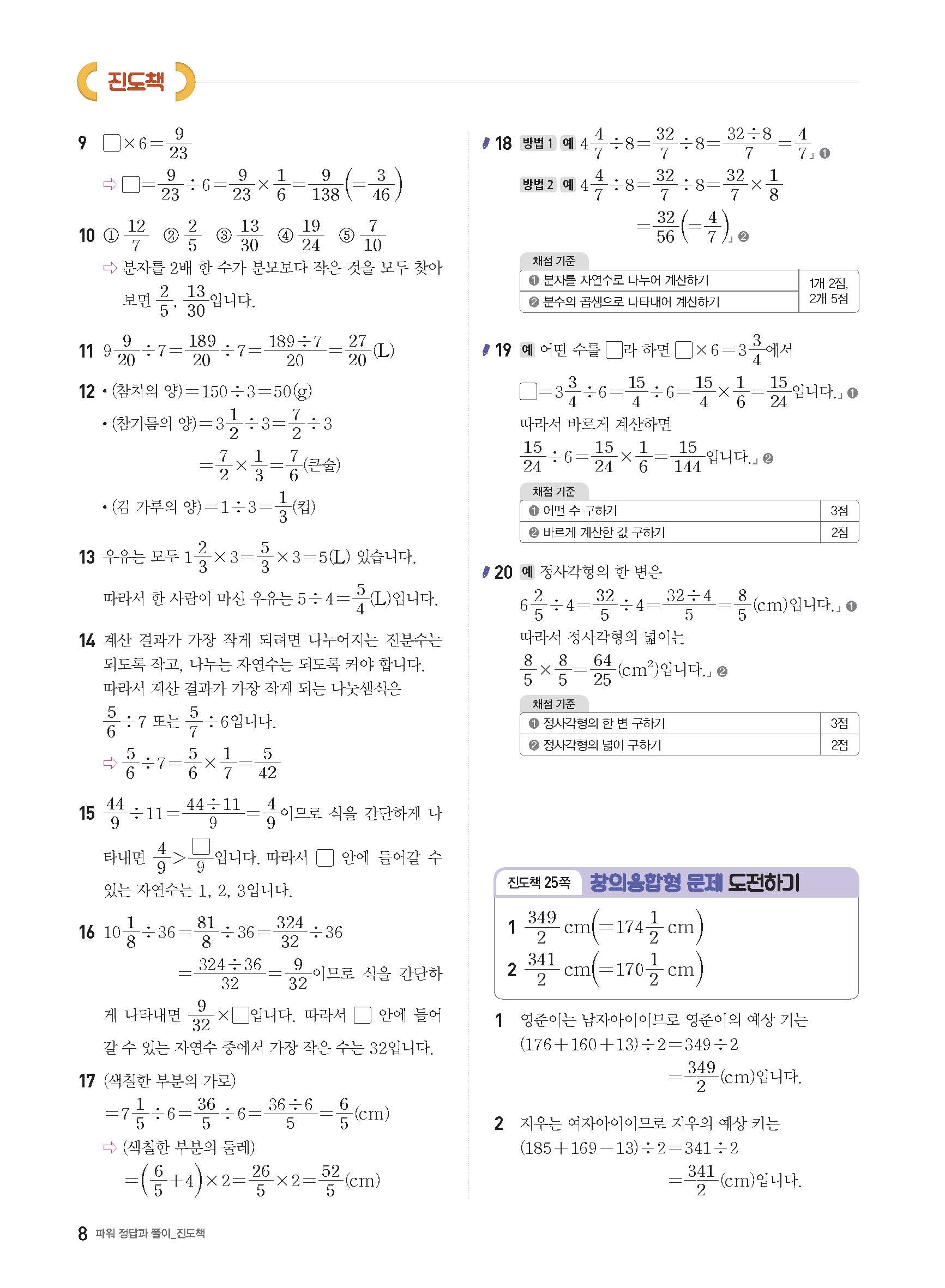 개념플러스연산 초등수학 파워 6-1 사진답지 빠른답지 모바일최적화