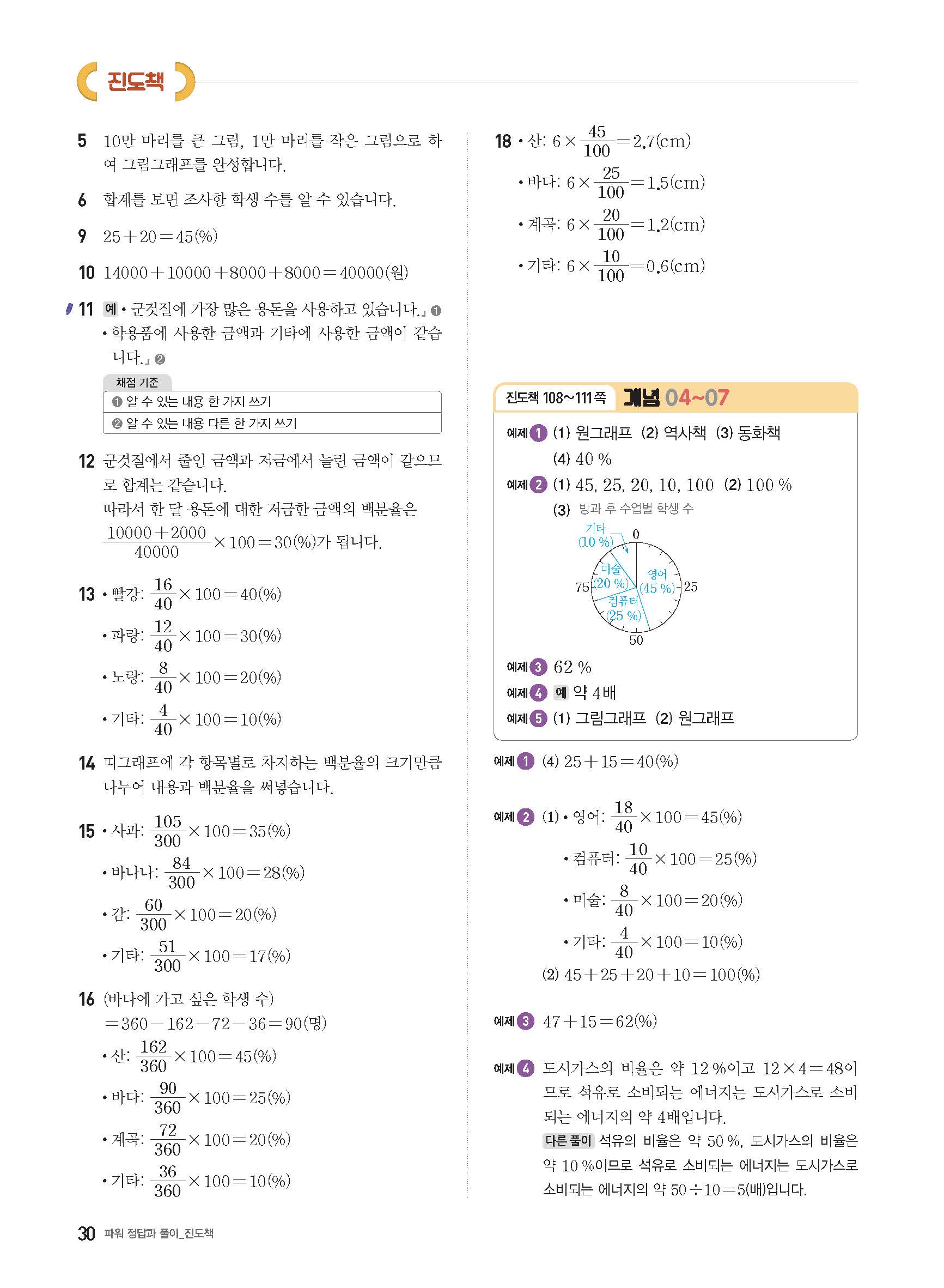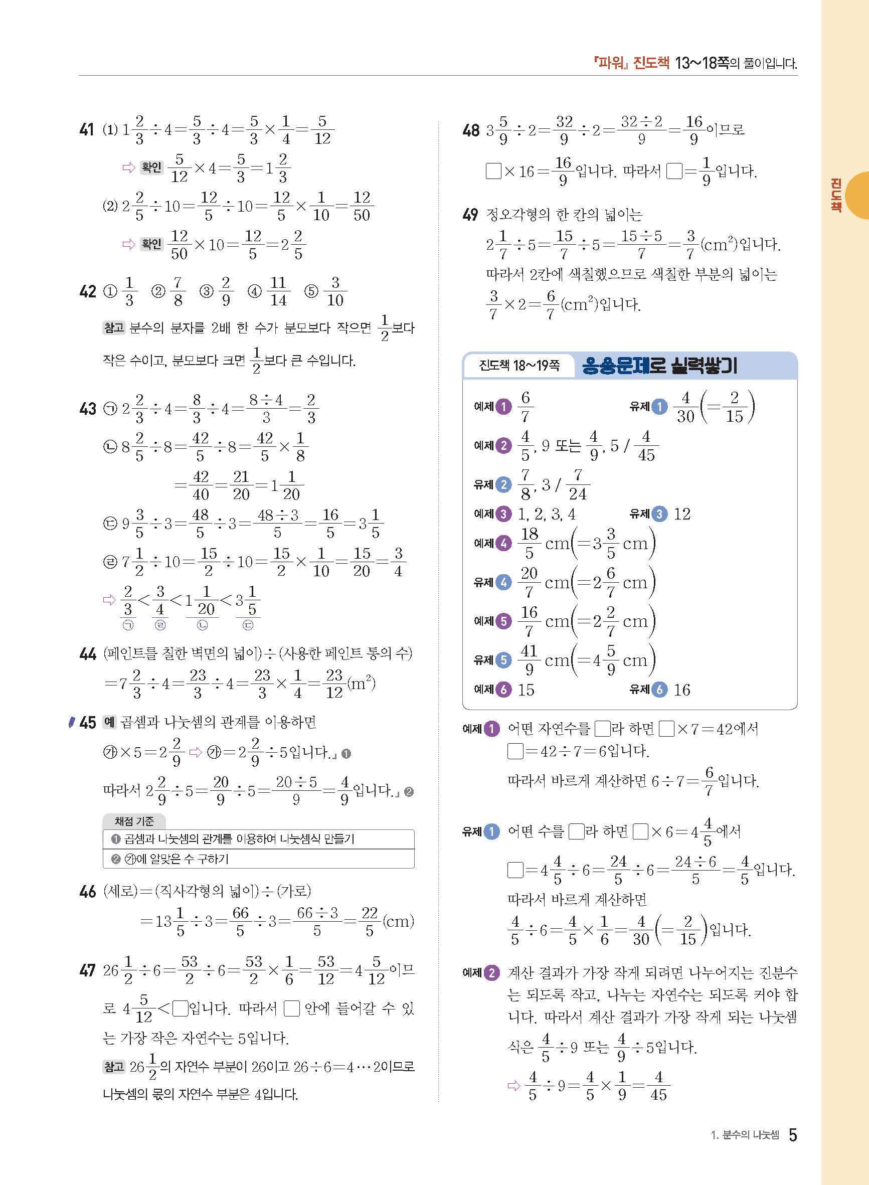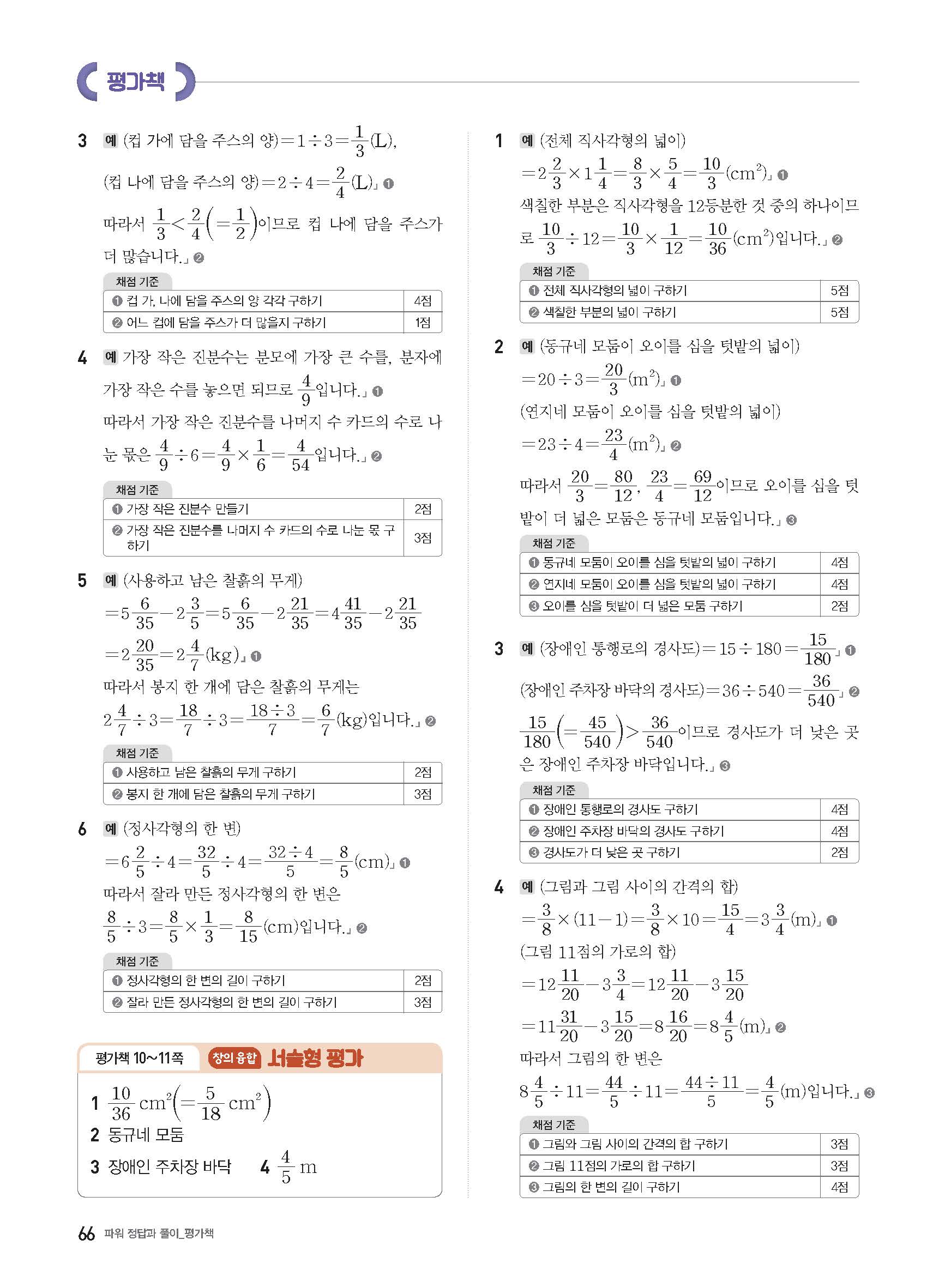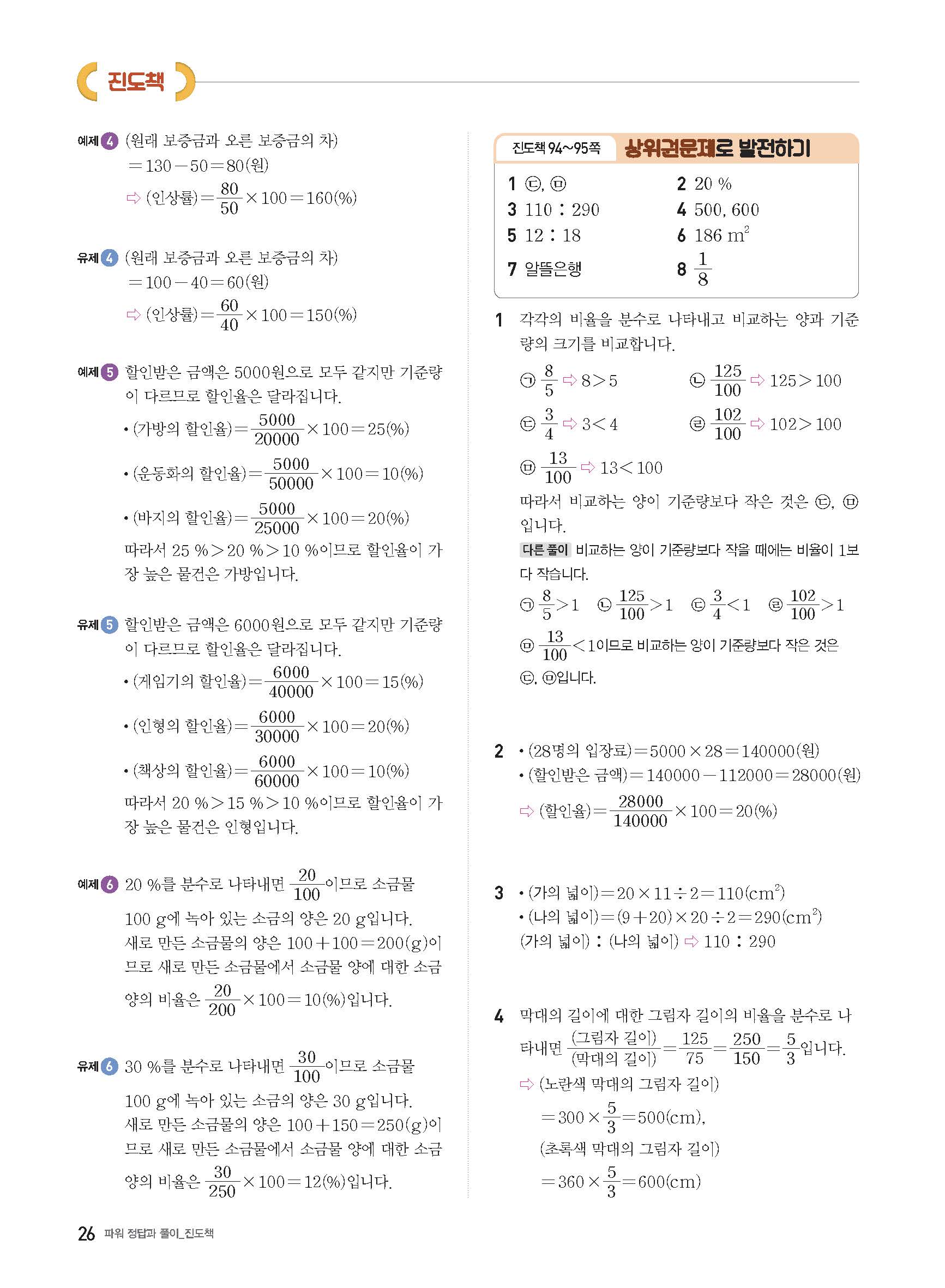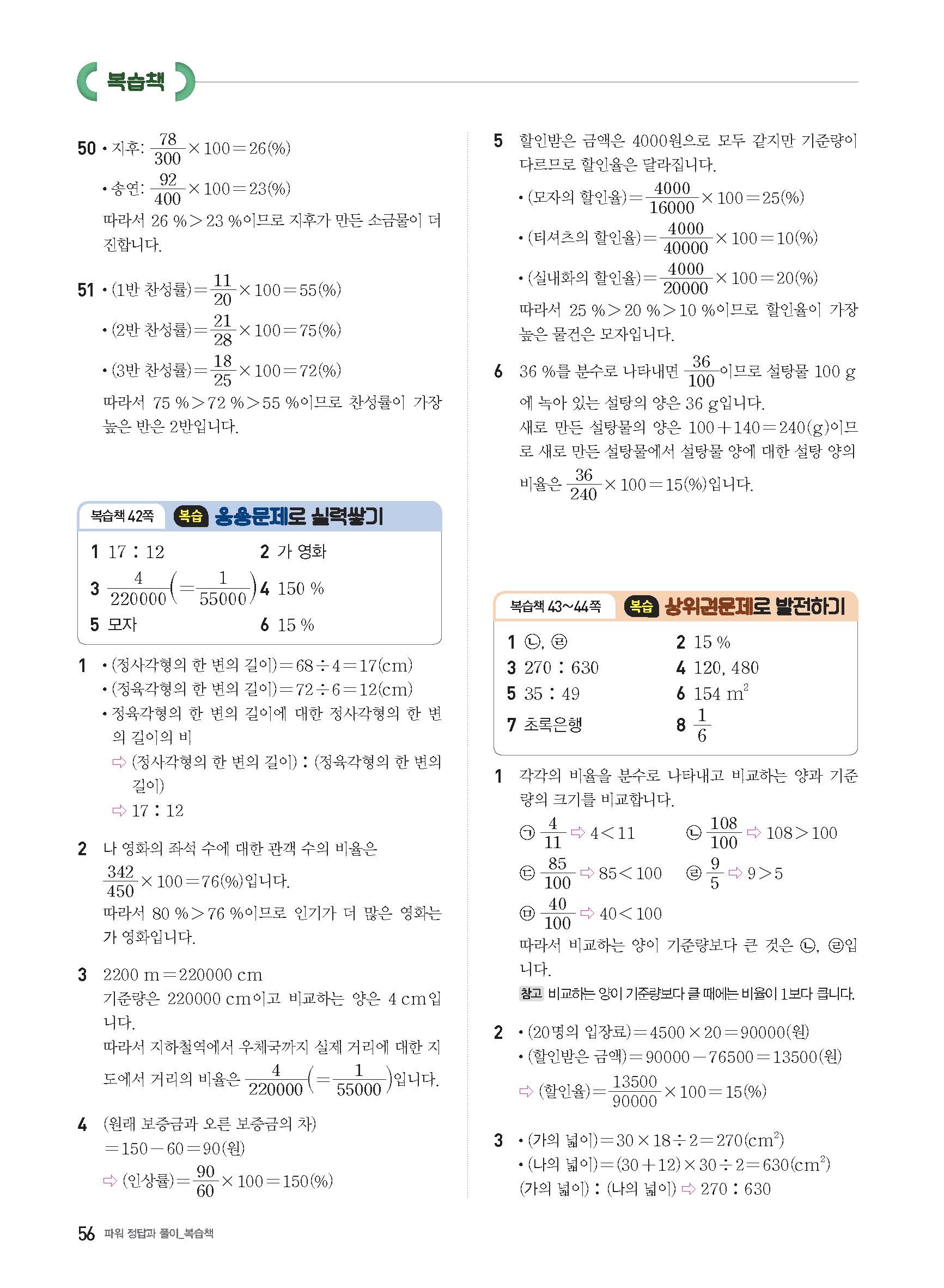 개념플러스연산 초등수학 파워 6-1 사진답지 빠른답지 모바일최적화
