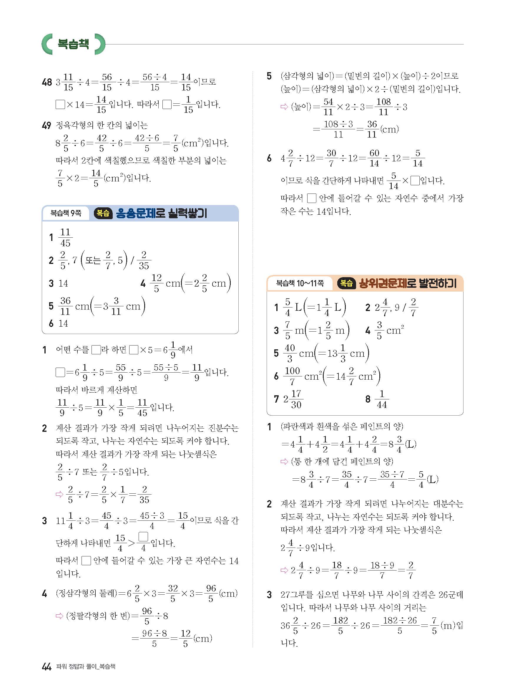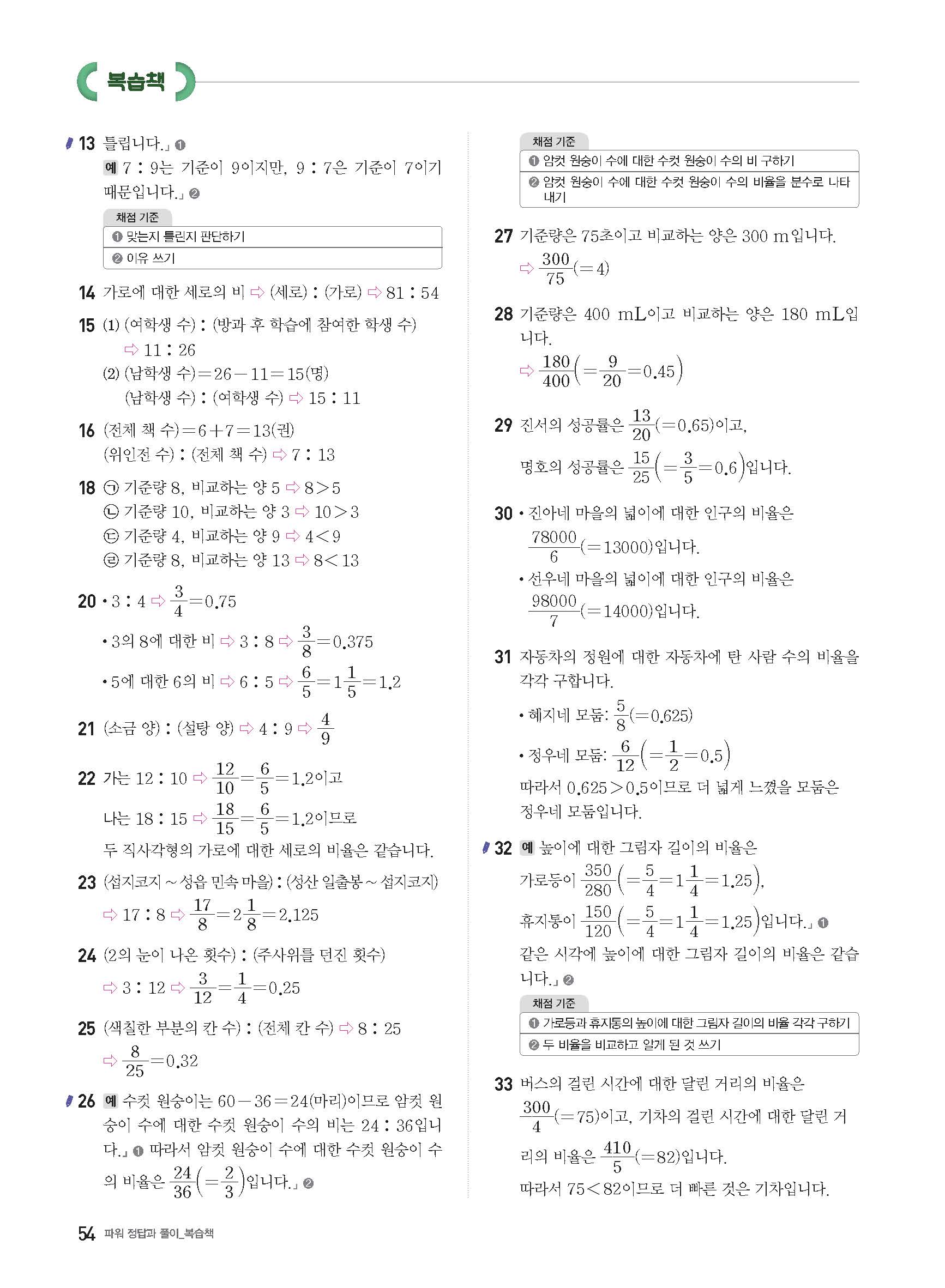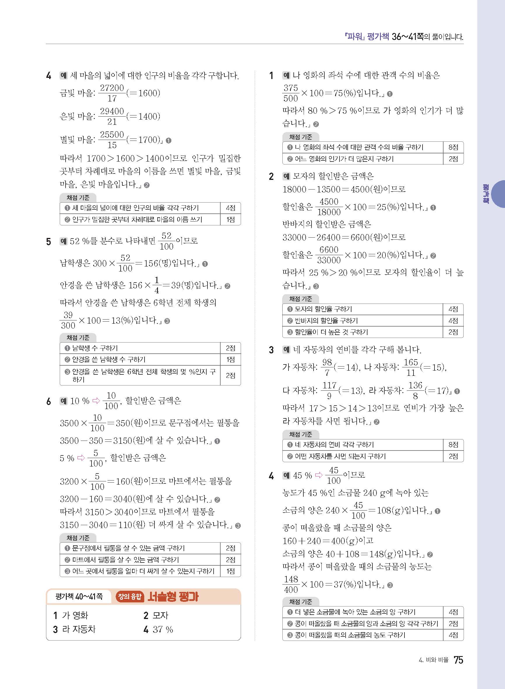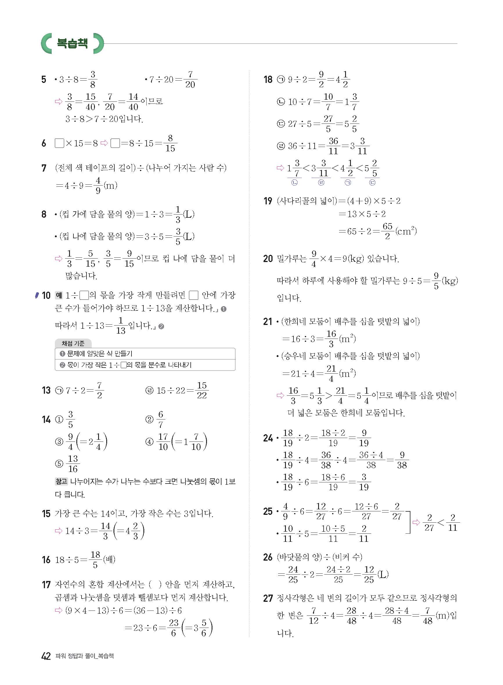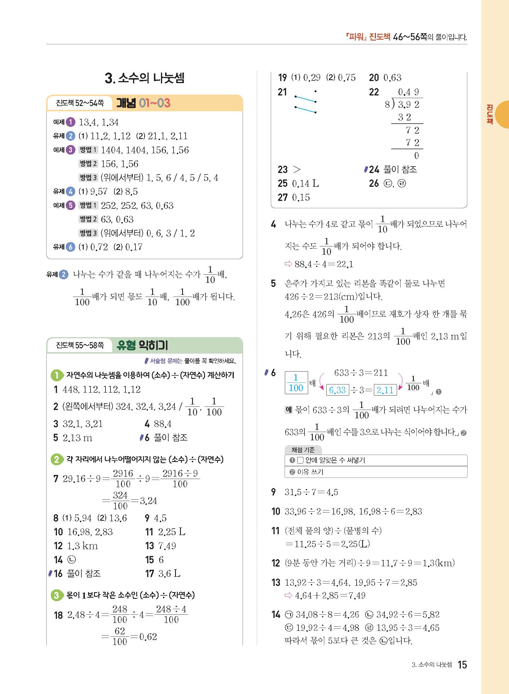 개념플러스연산 초등수학 파워 6-1 사진답지 빠른답지 모바일최적화