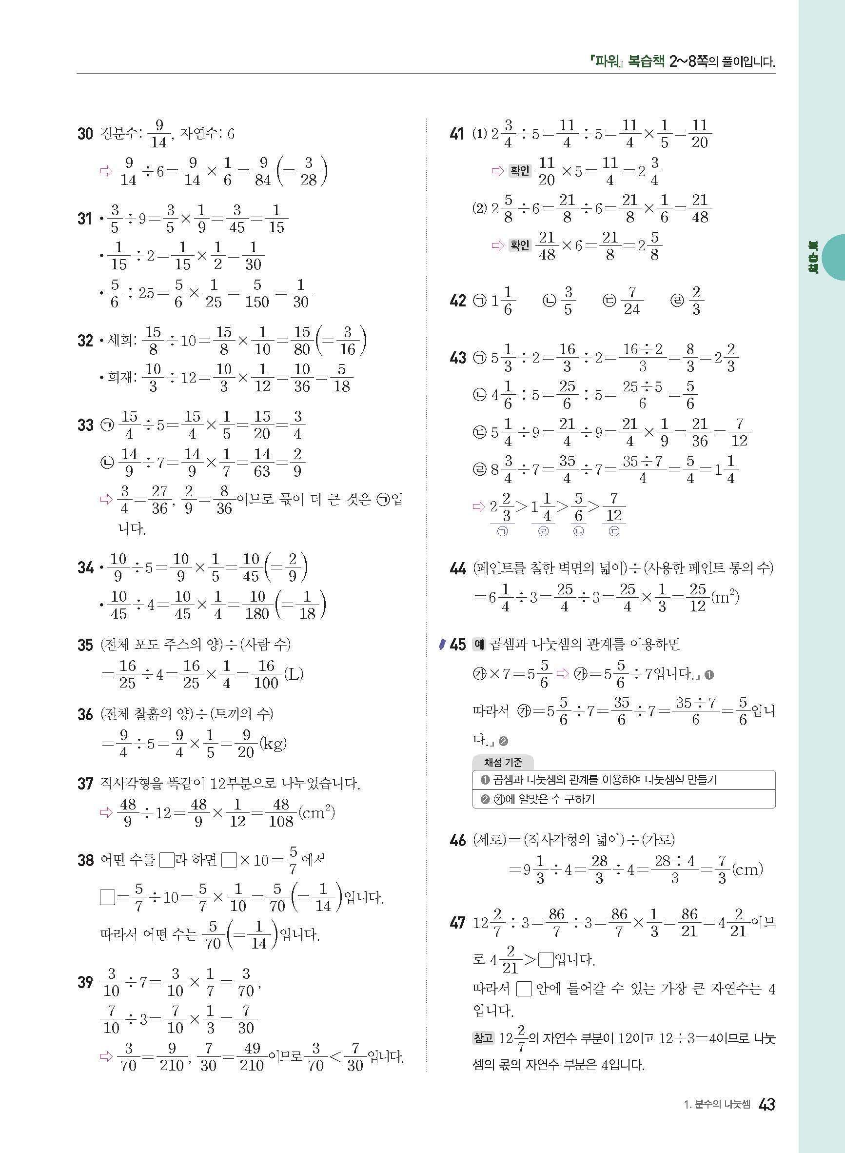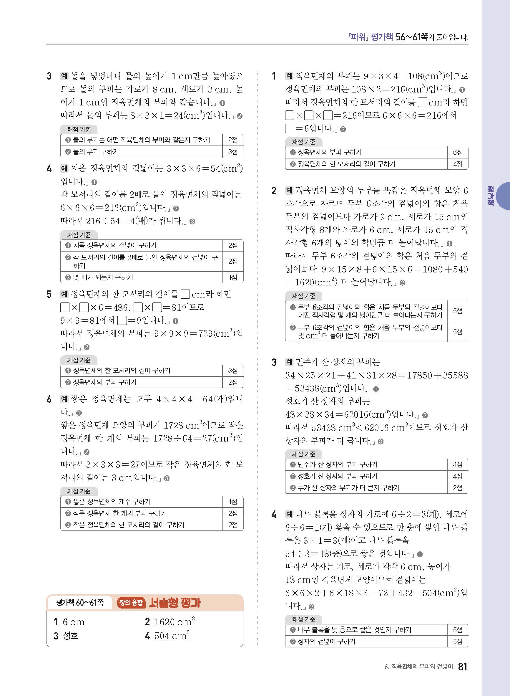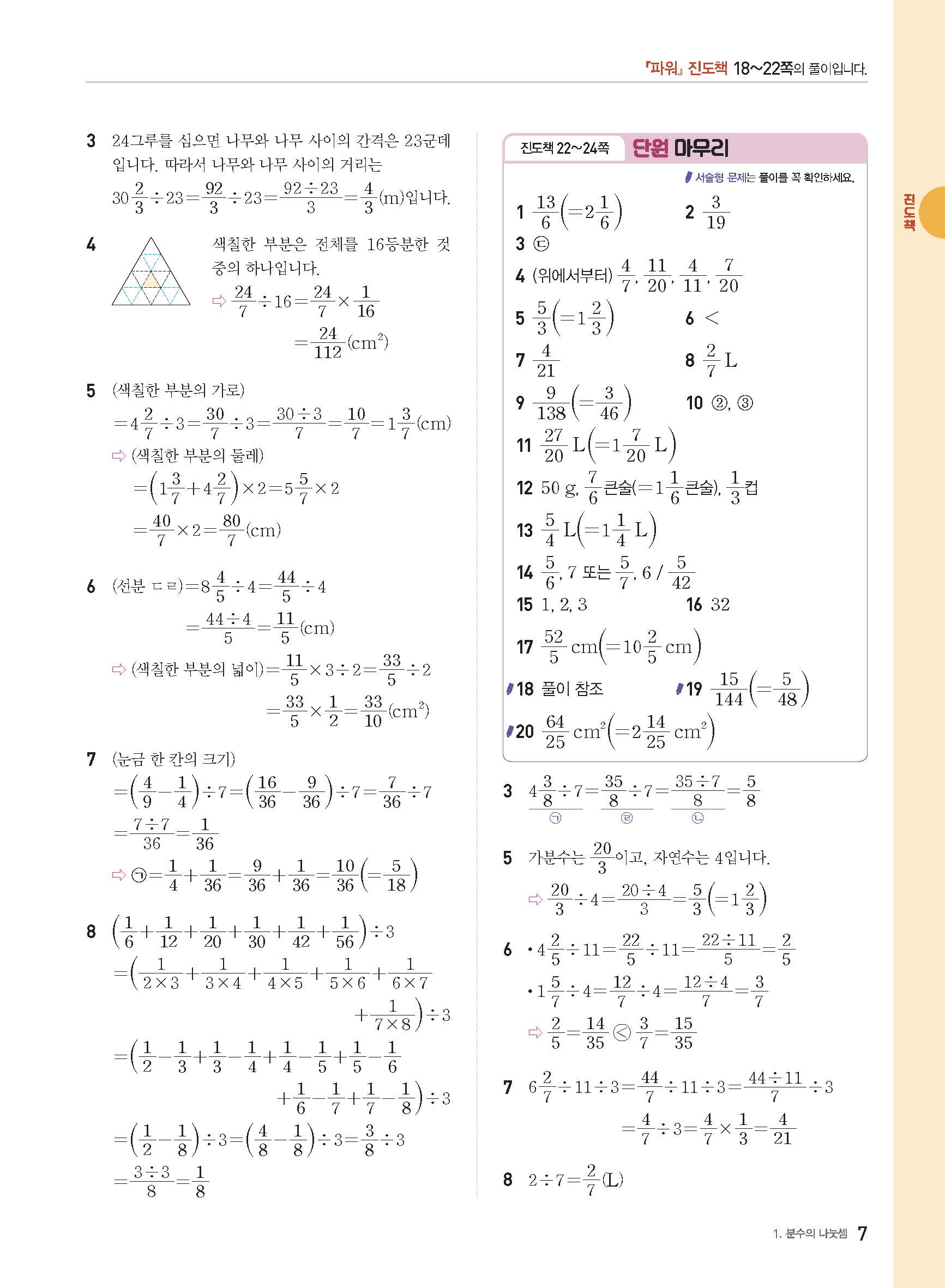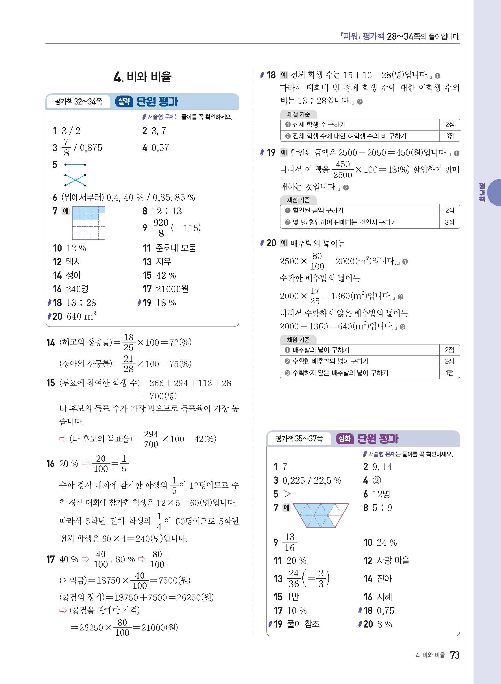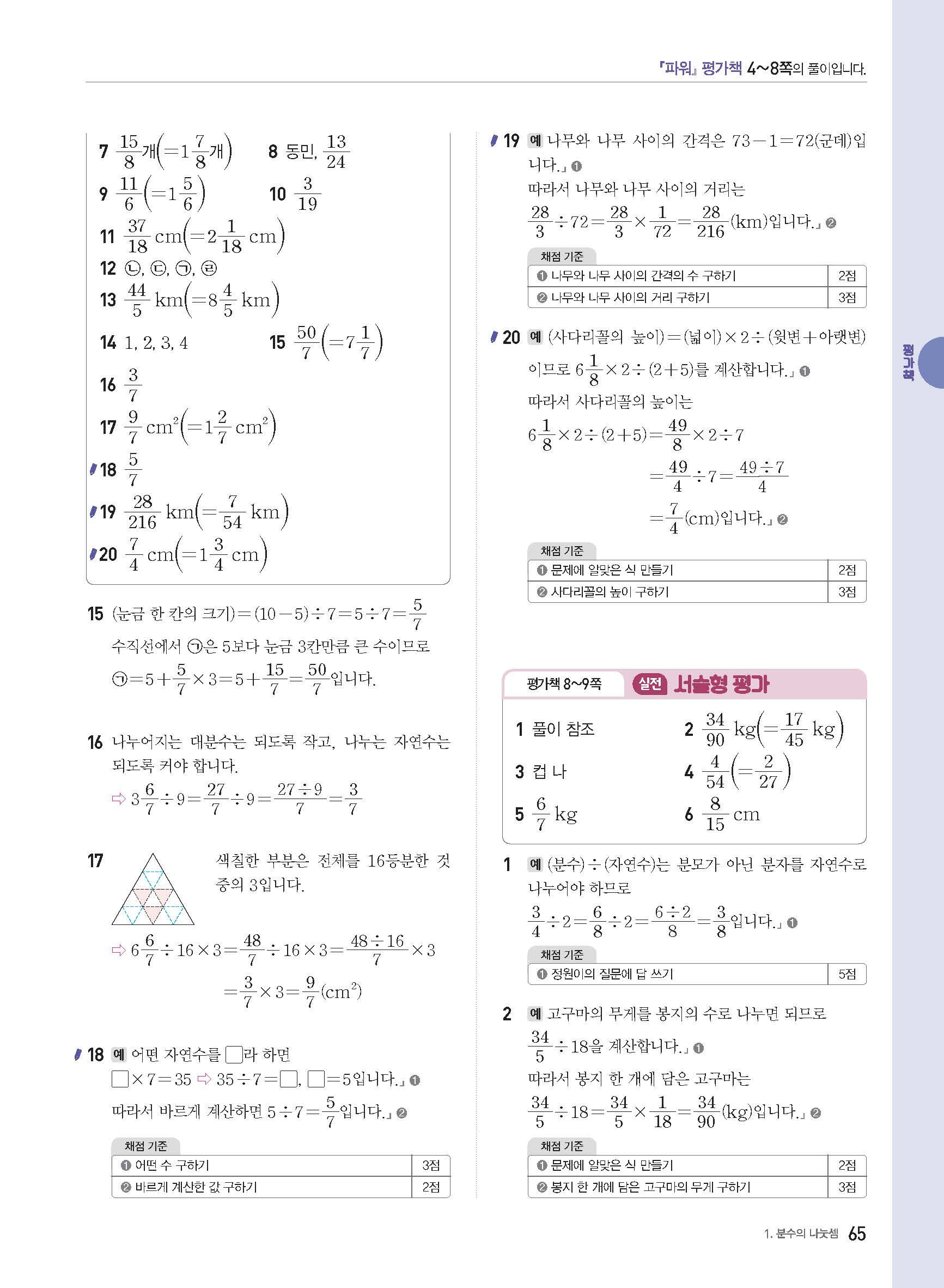 개념플러스연산 초등수학 파워 6-1 사진답지 빠른답지 모바일최적화