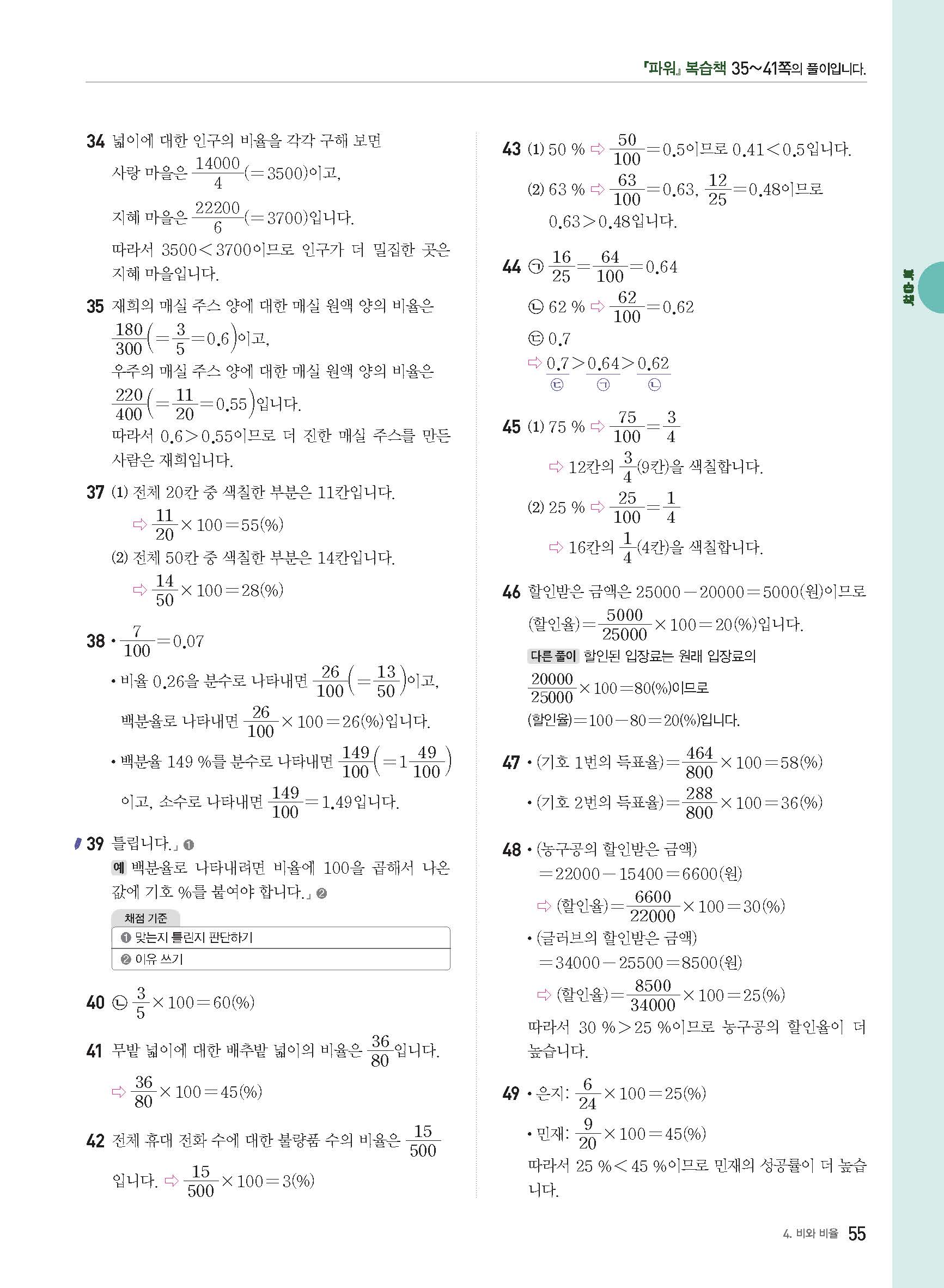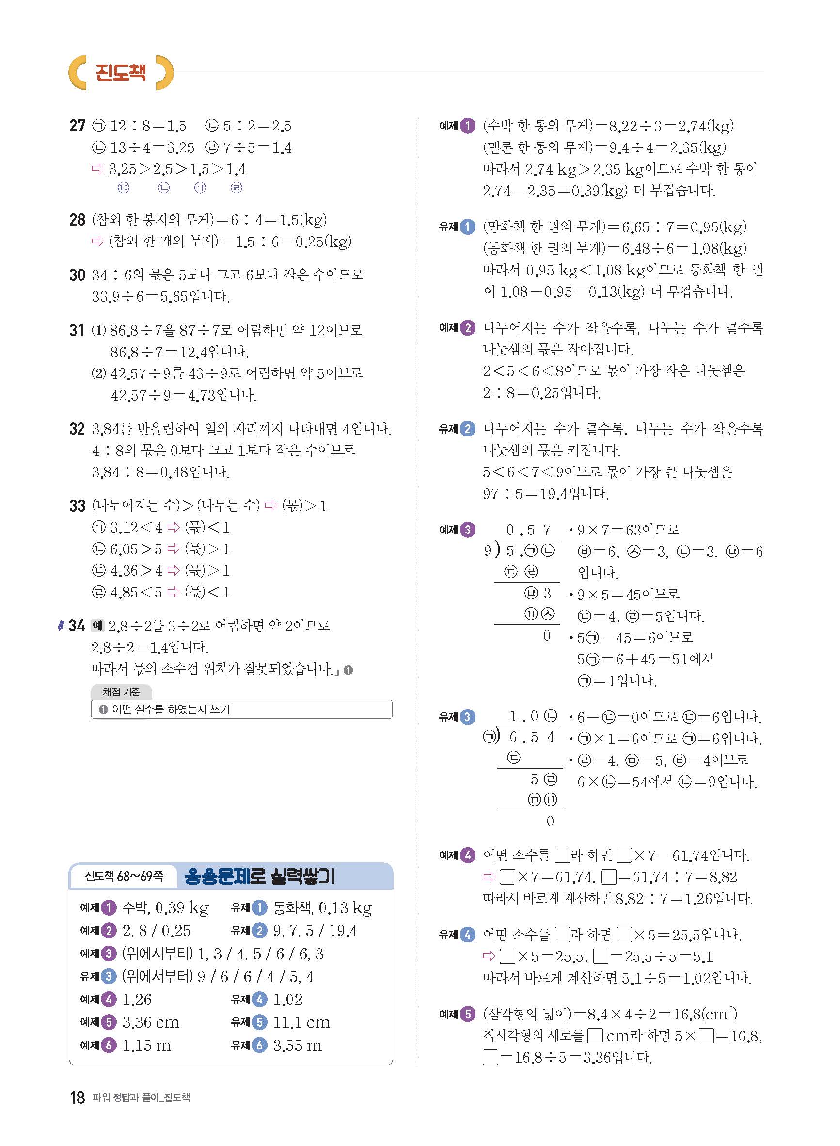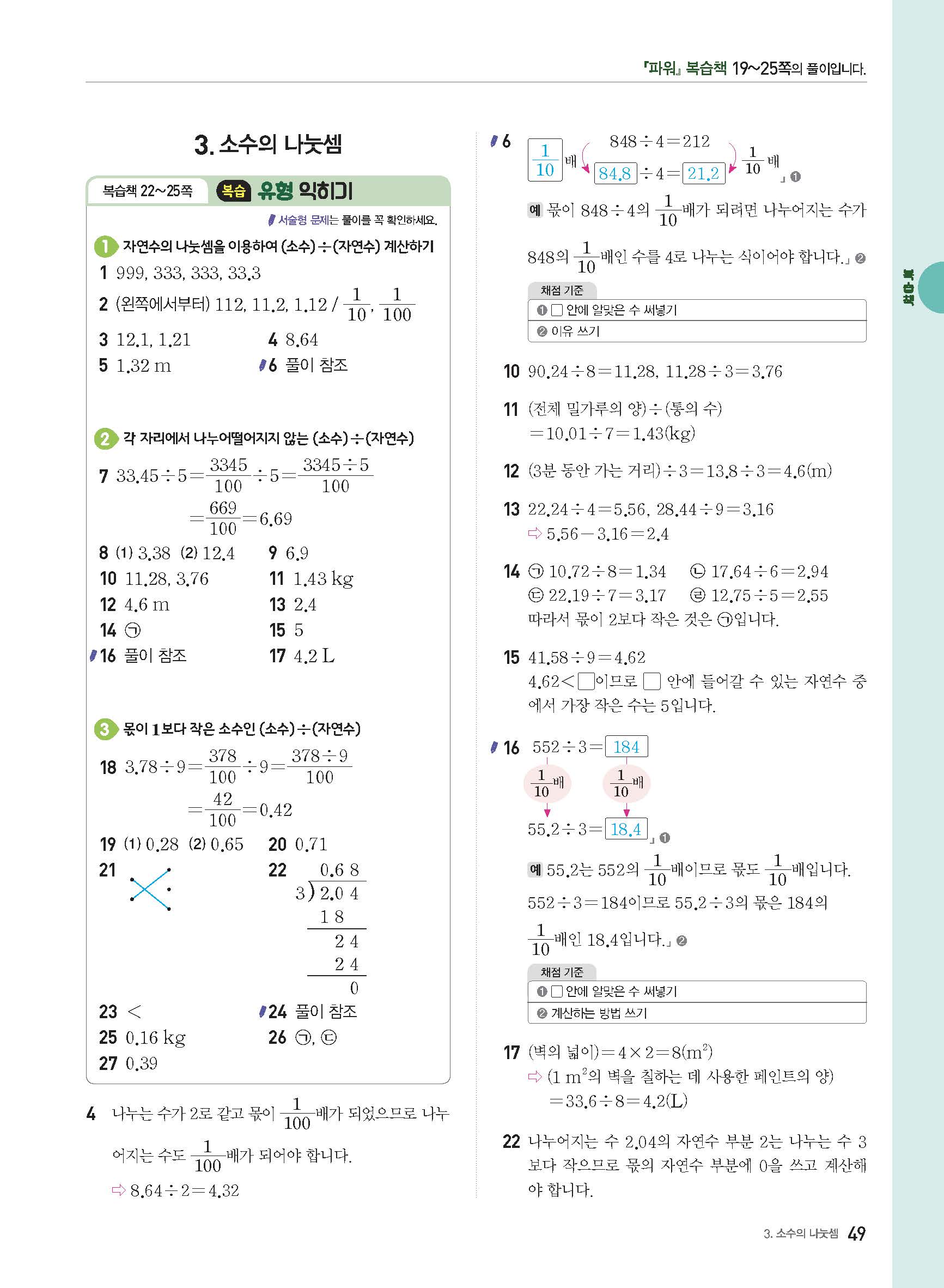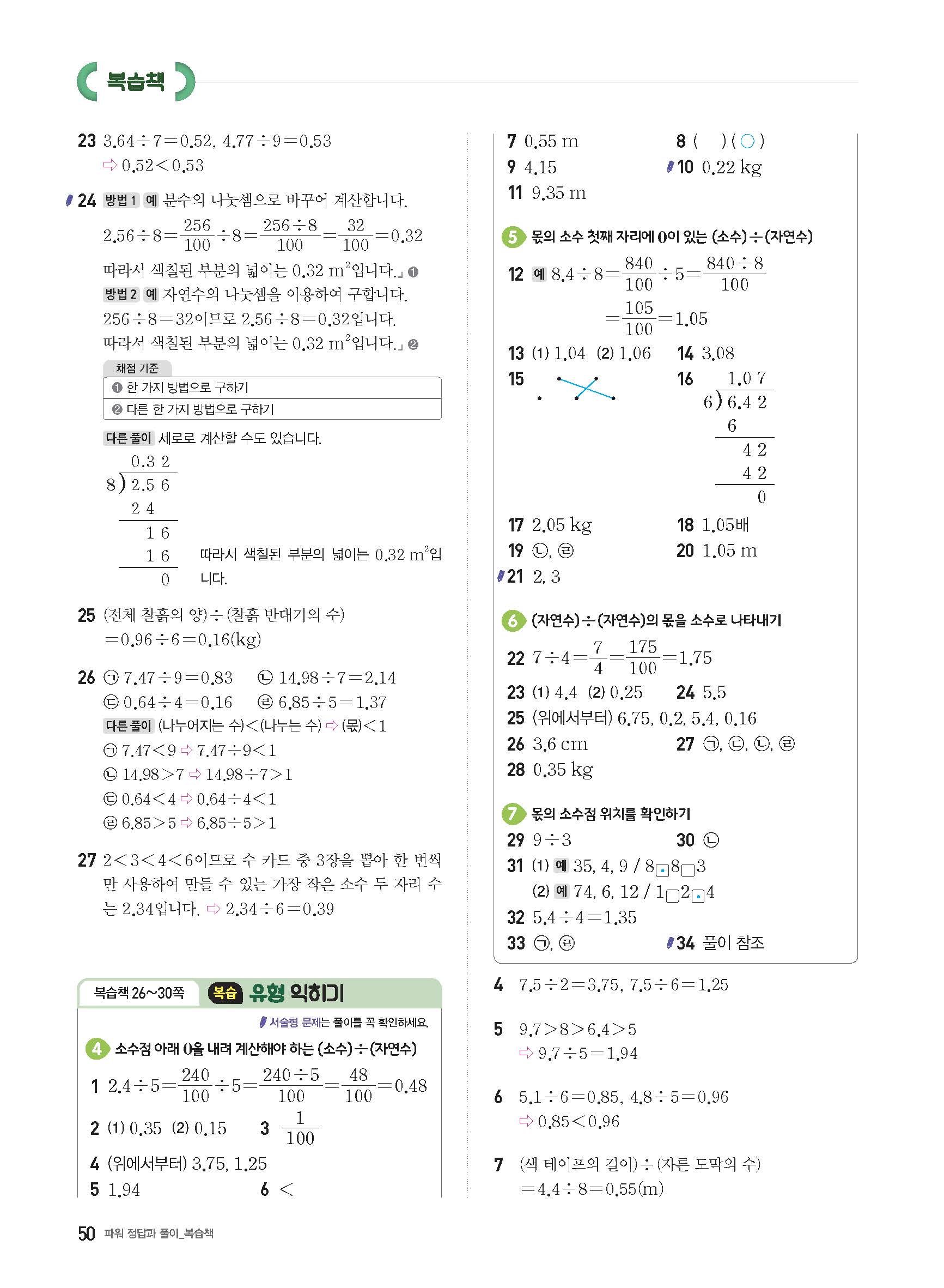 개념플러스연산 초등수학 파워 6-1 사진답지 빠른답지 모바일최적화