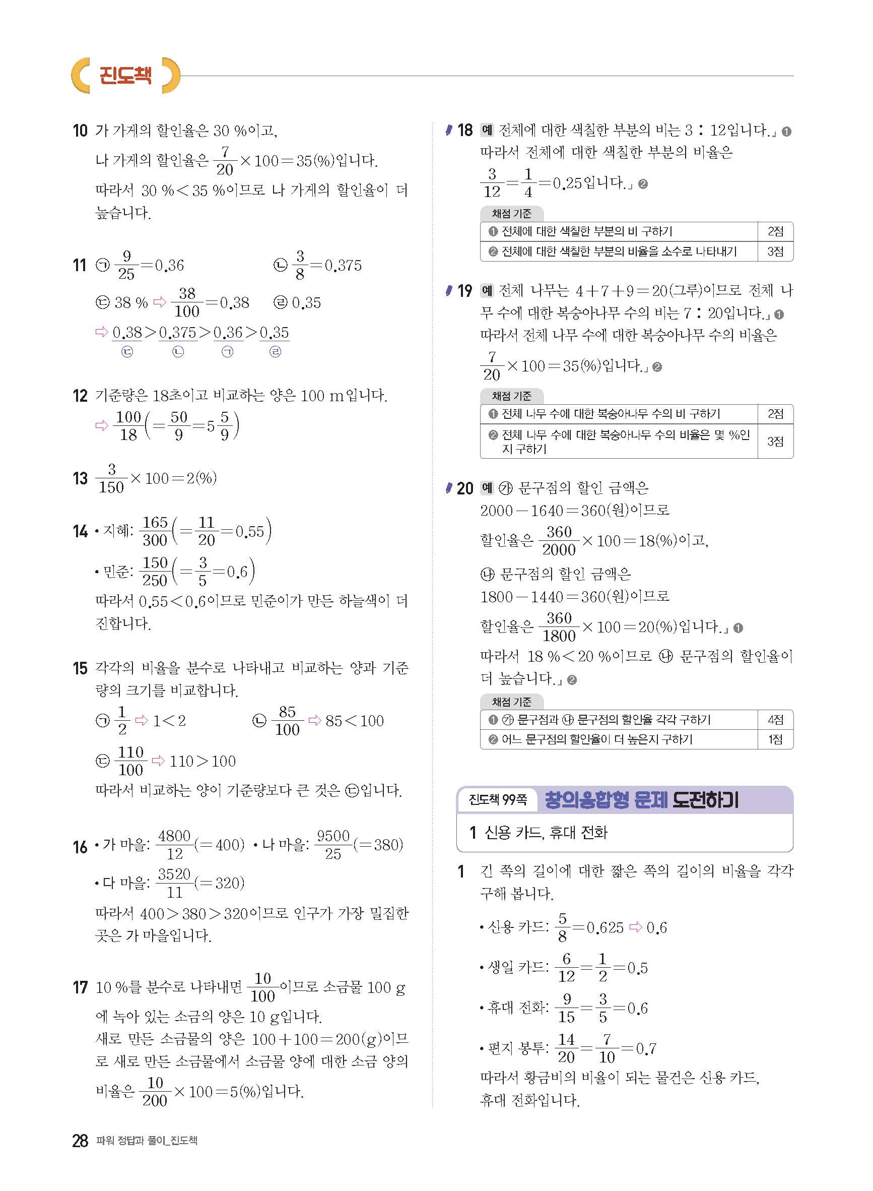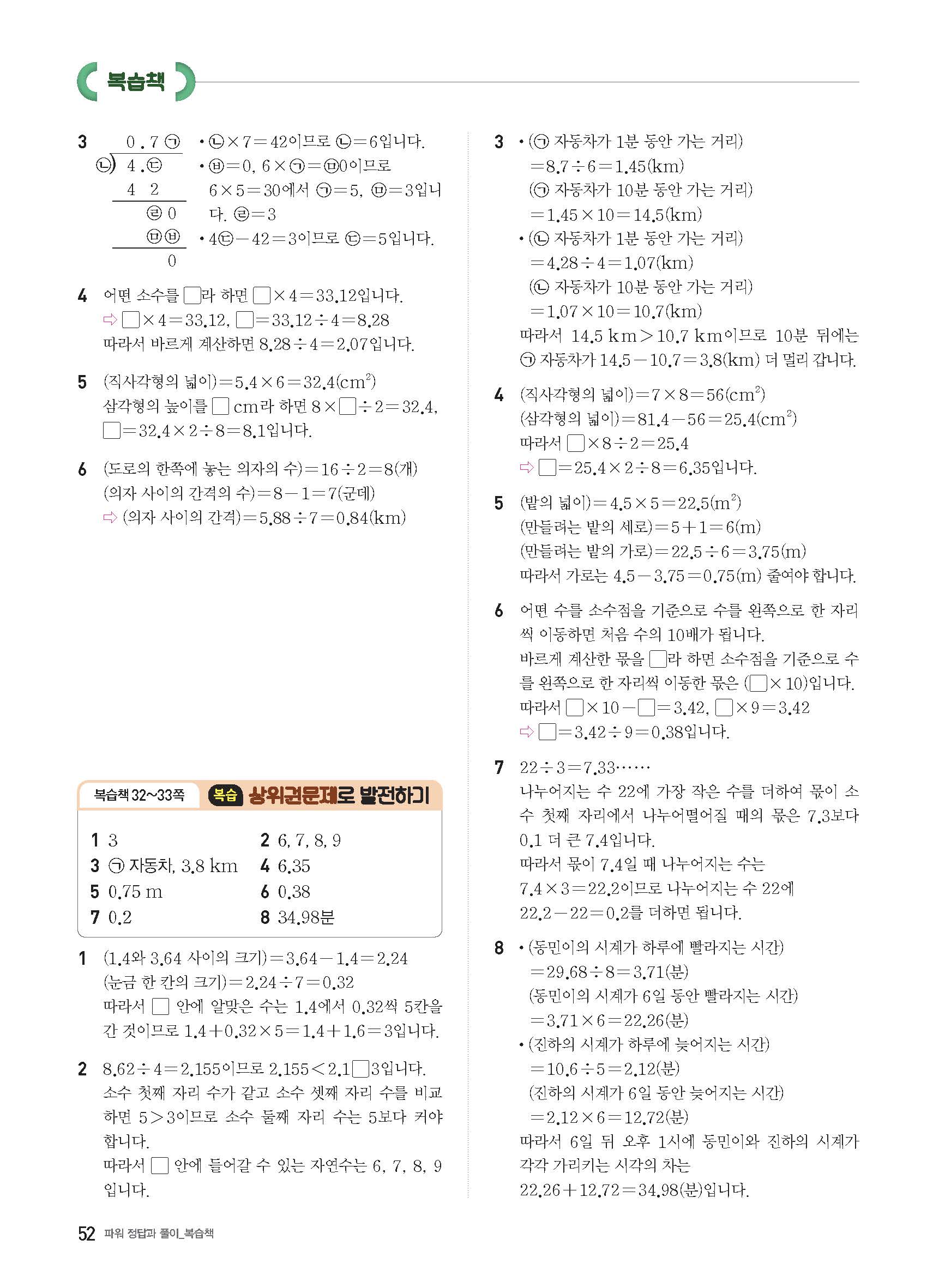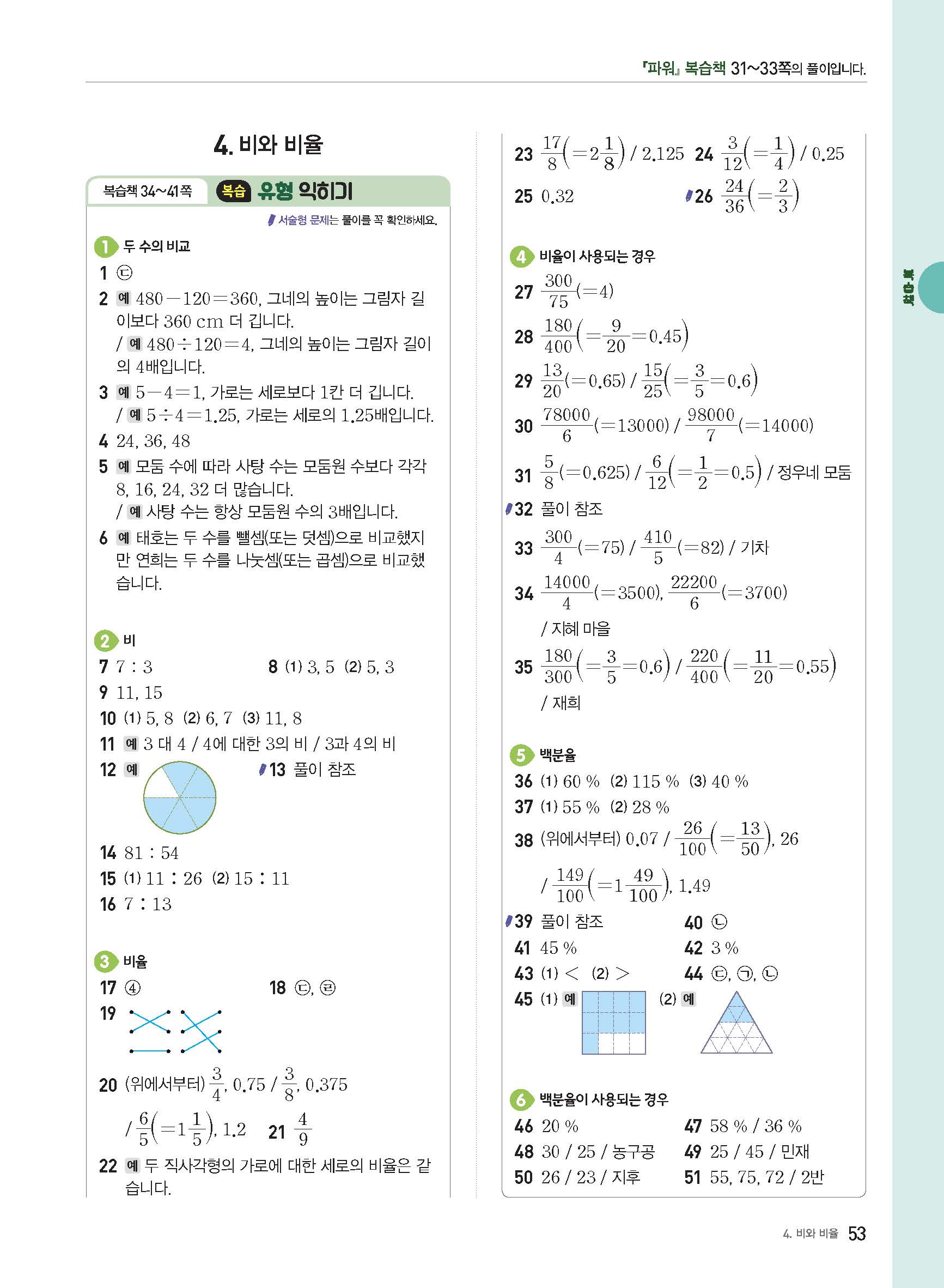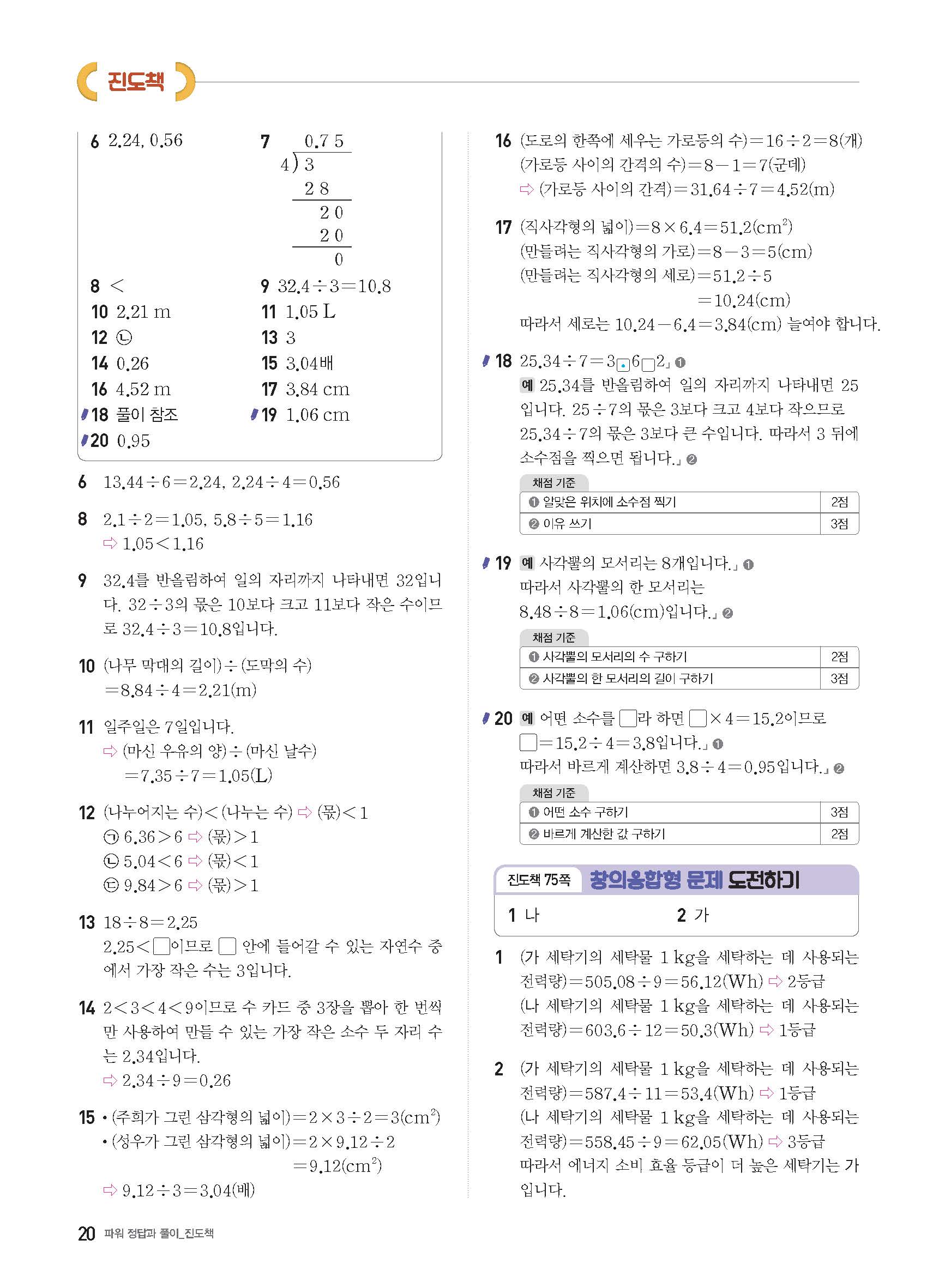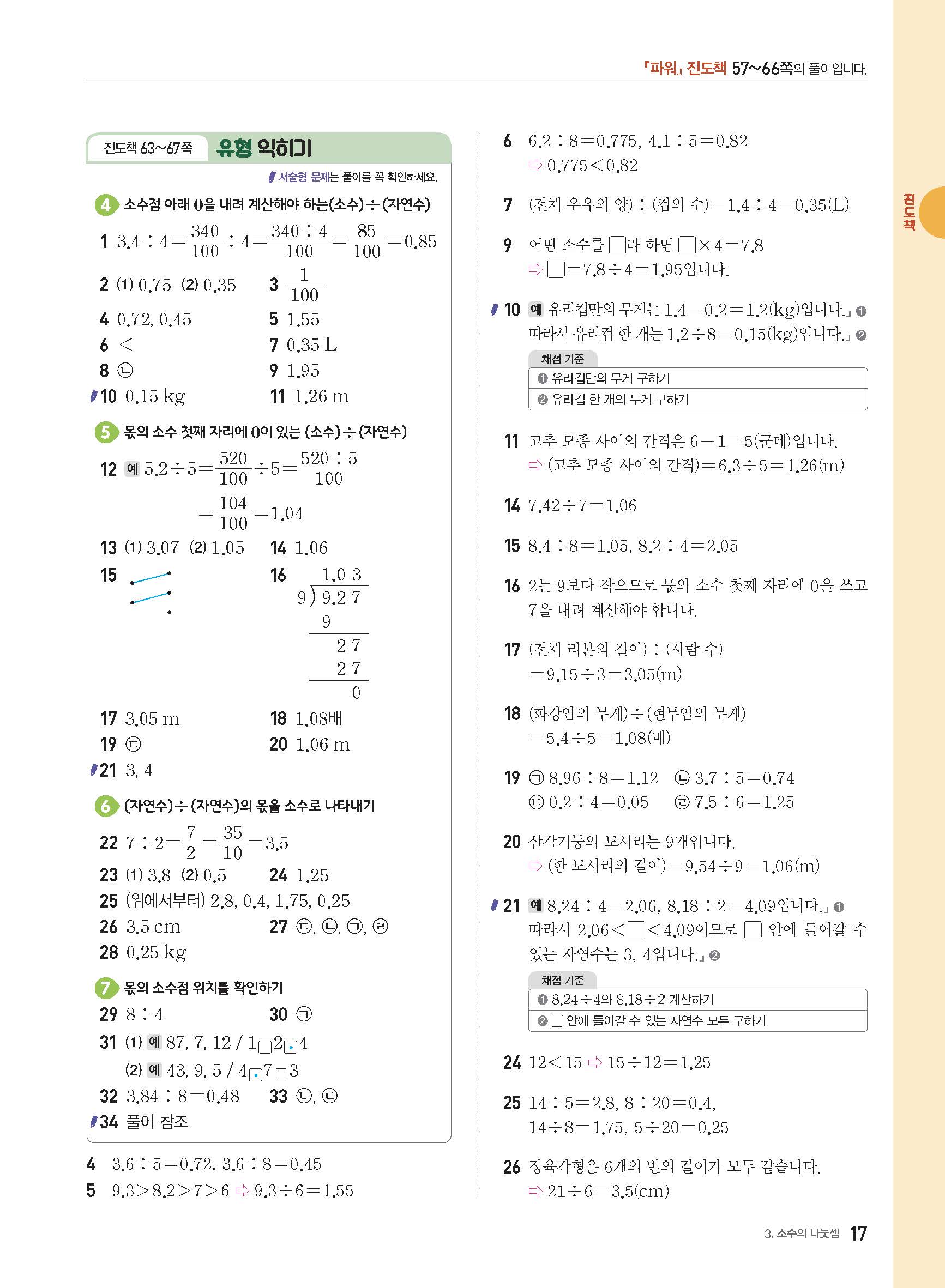 개념플러스연산 초등수학 파워 6-1 사진답지 빠른답지 모바일최적화
