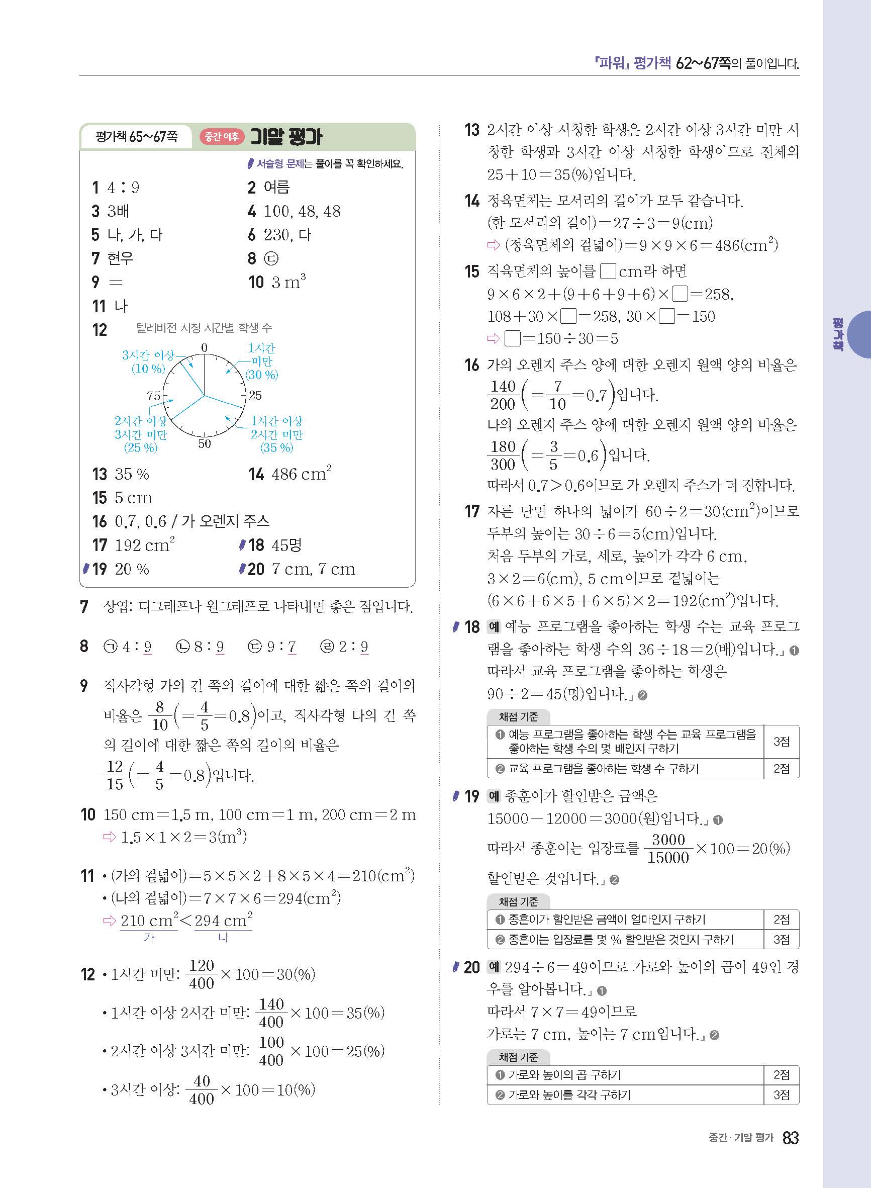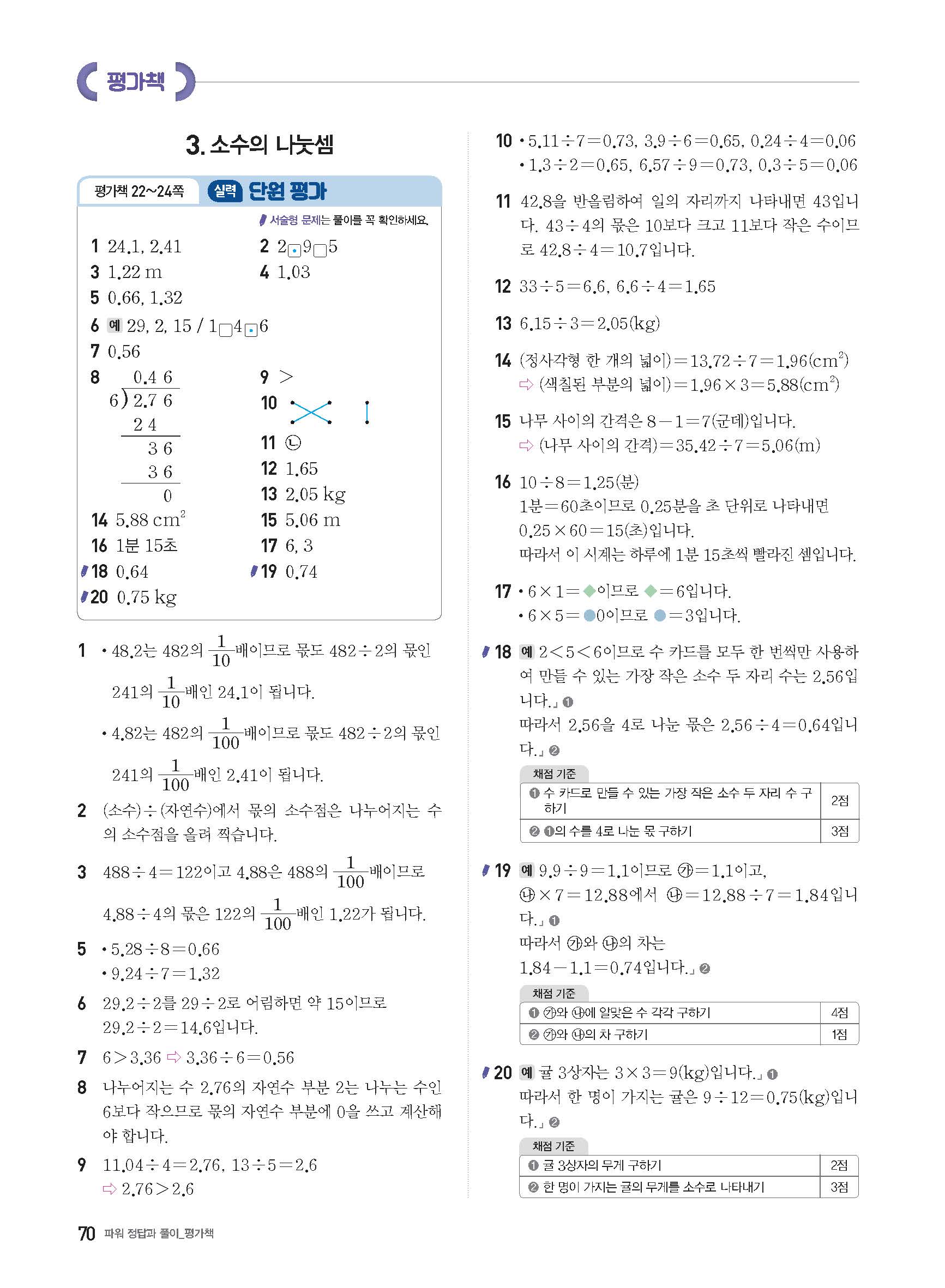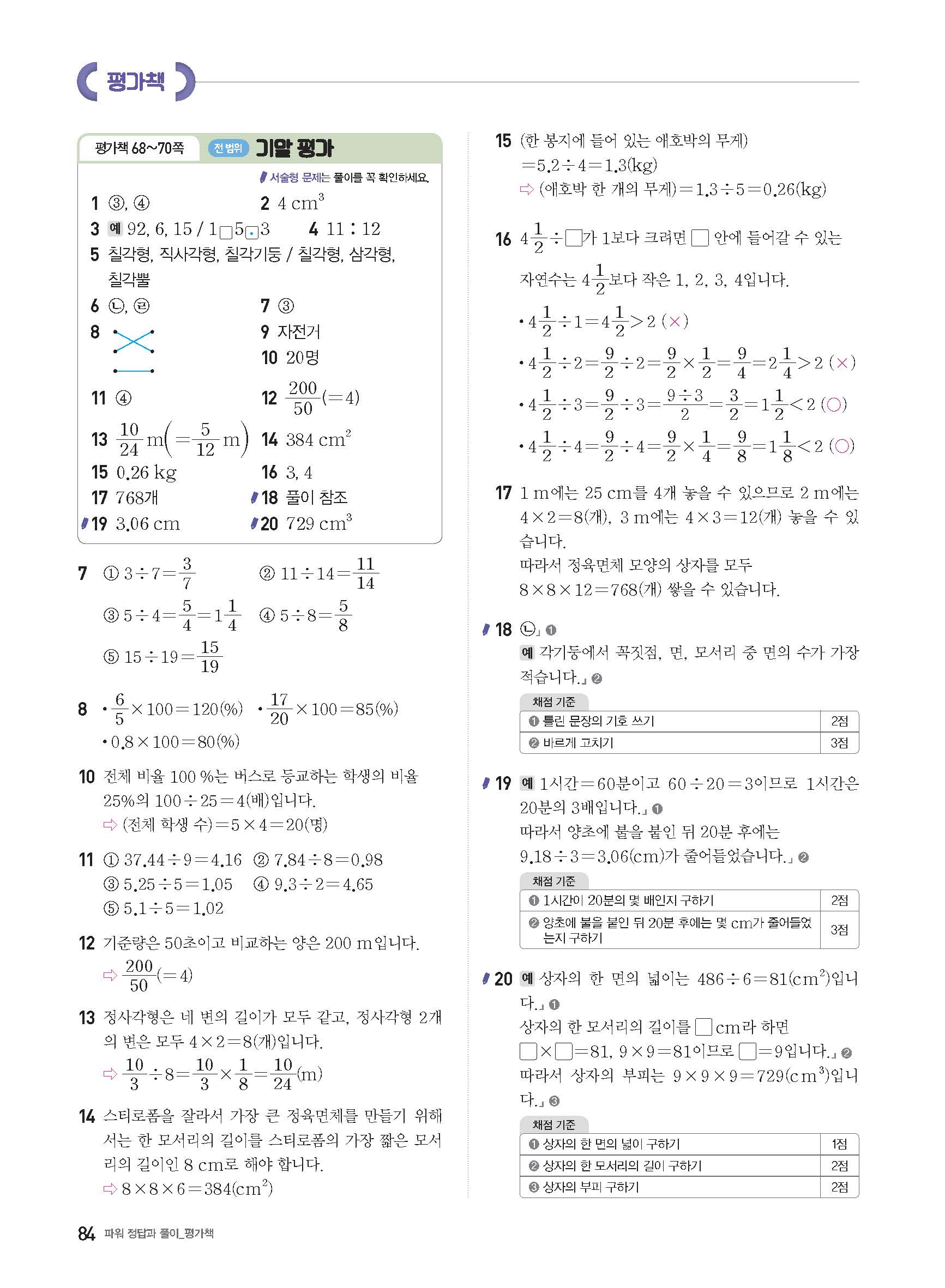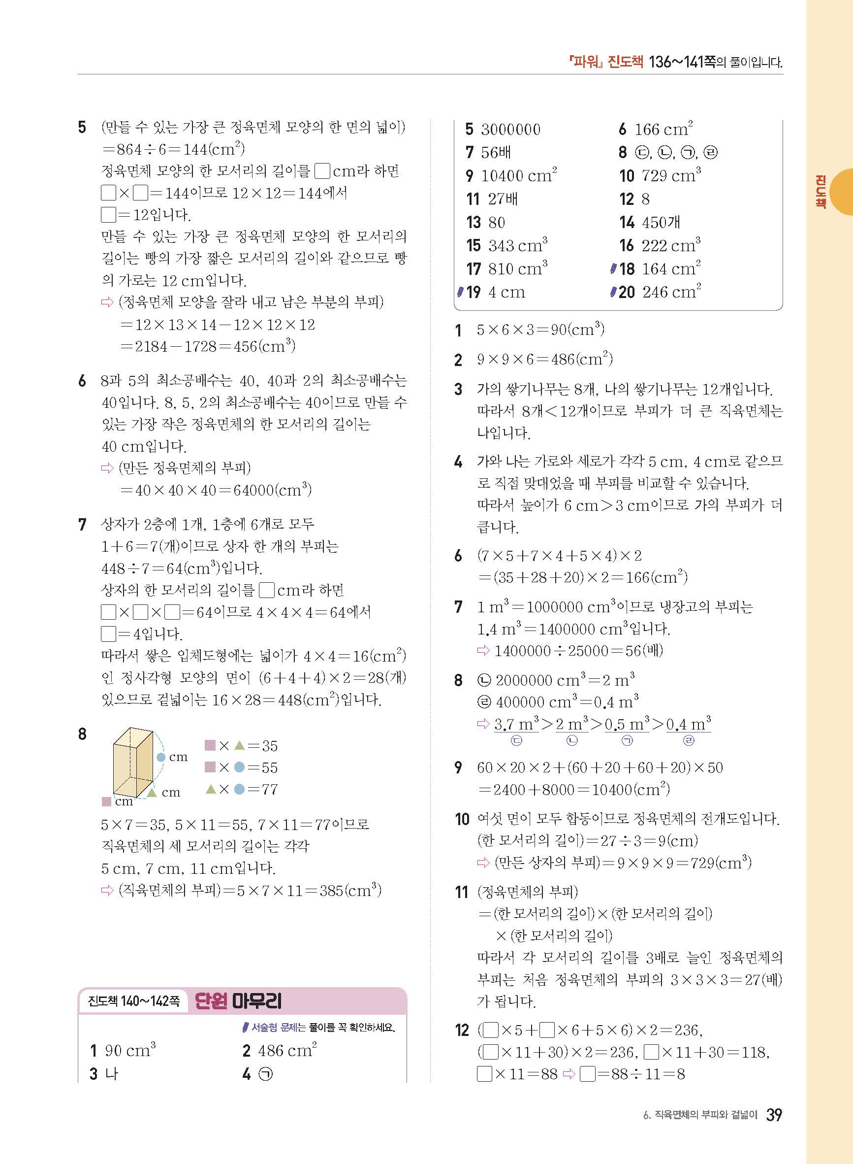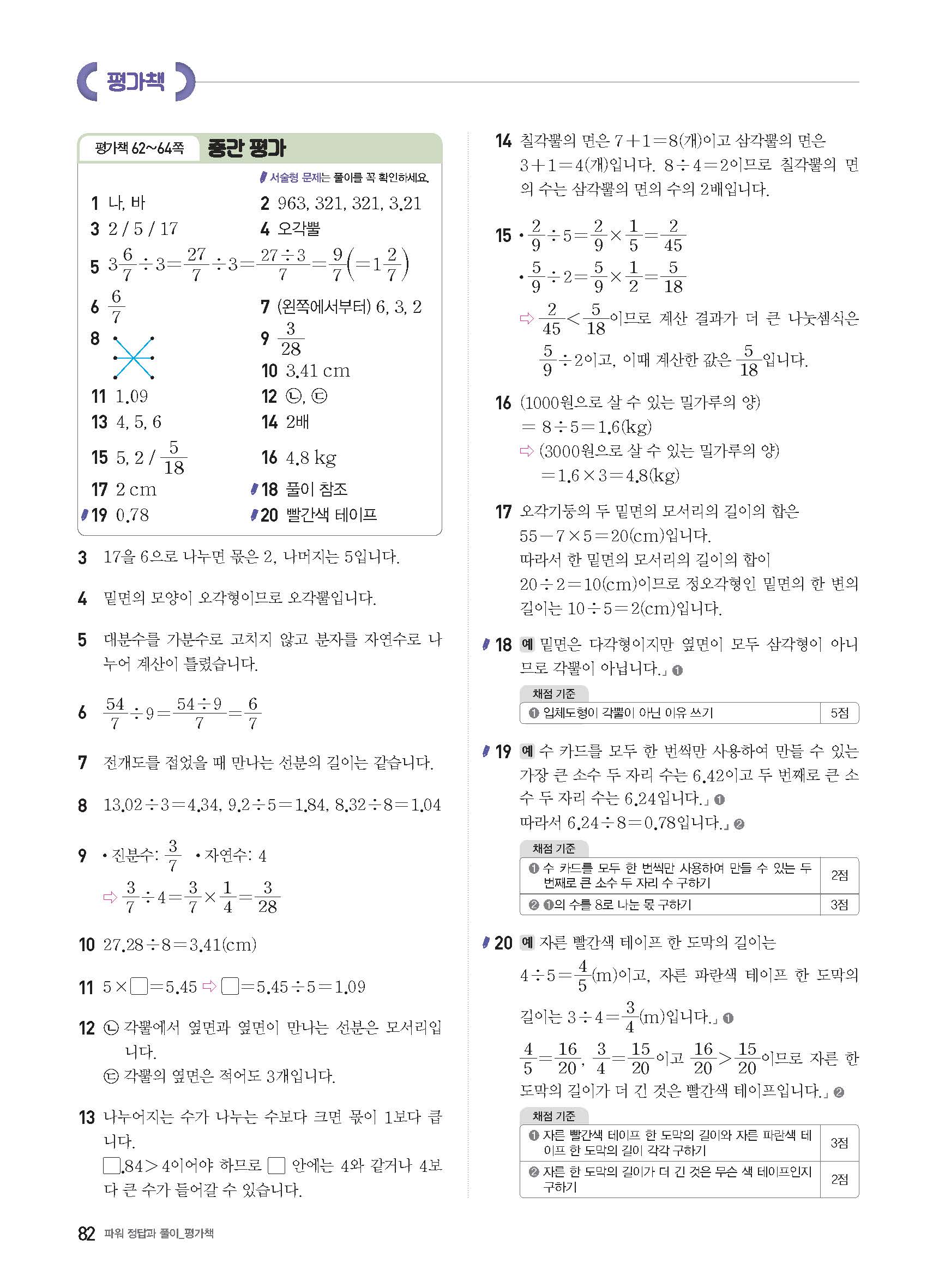 개념플러스연산 초등수학 파워 6-1 사진답지 빠른답지 모바일최적화