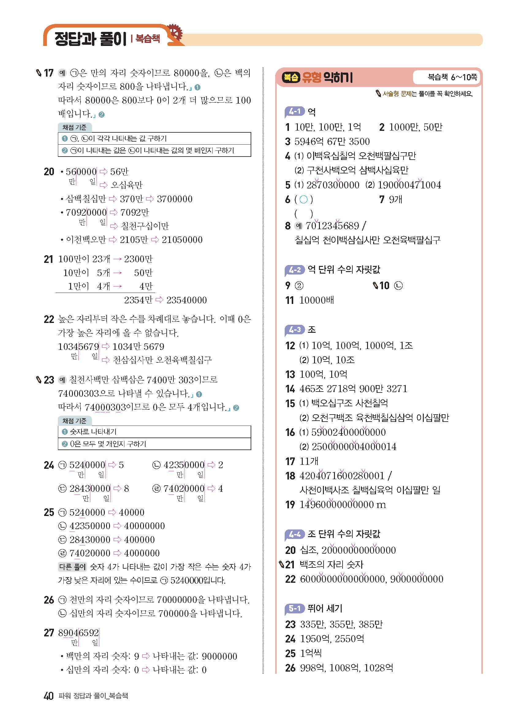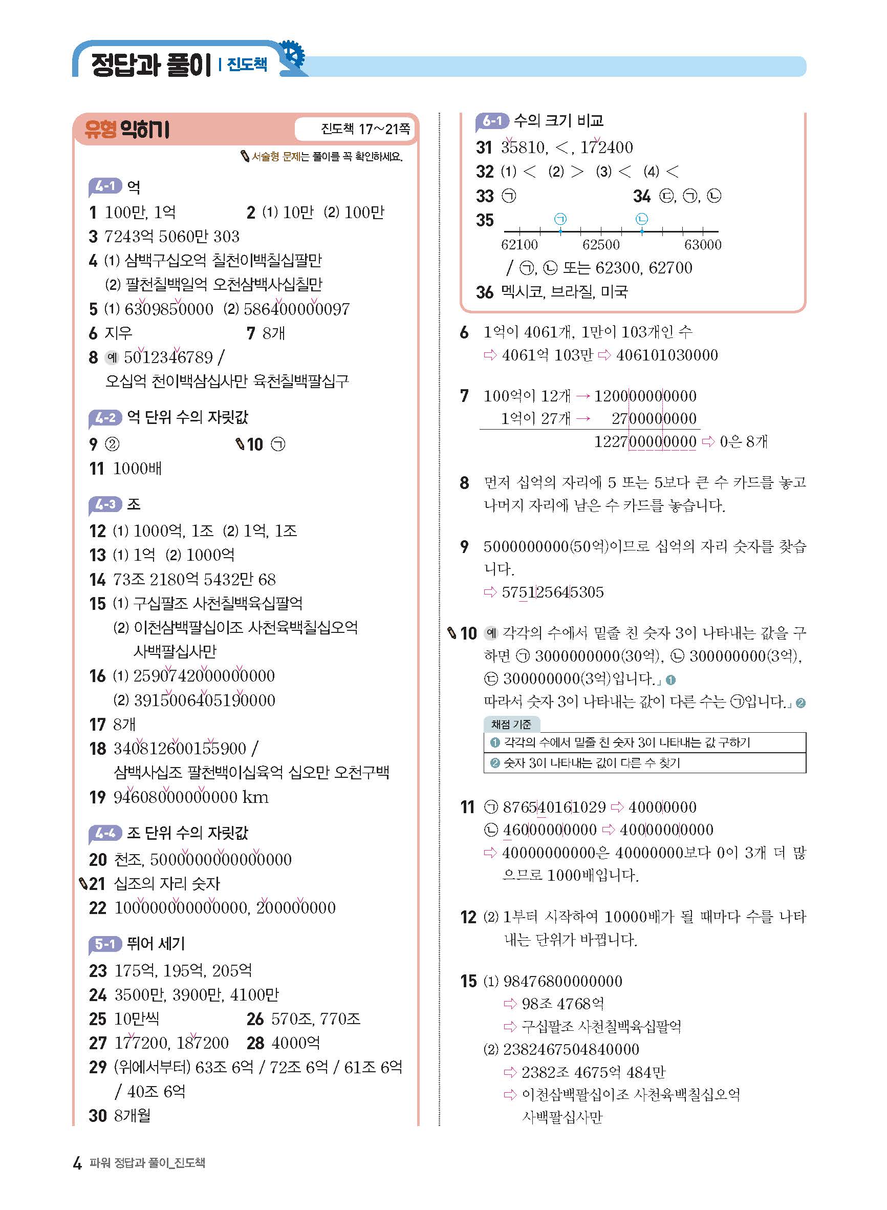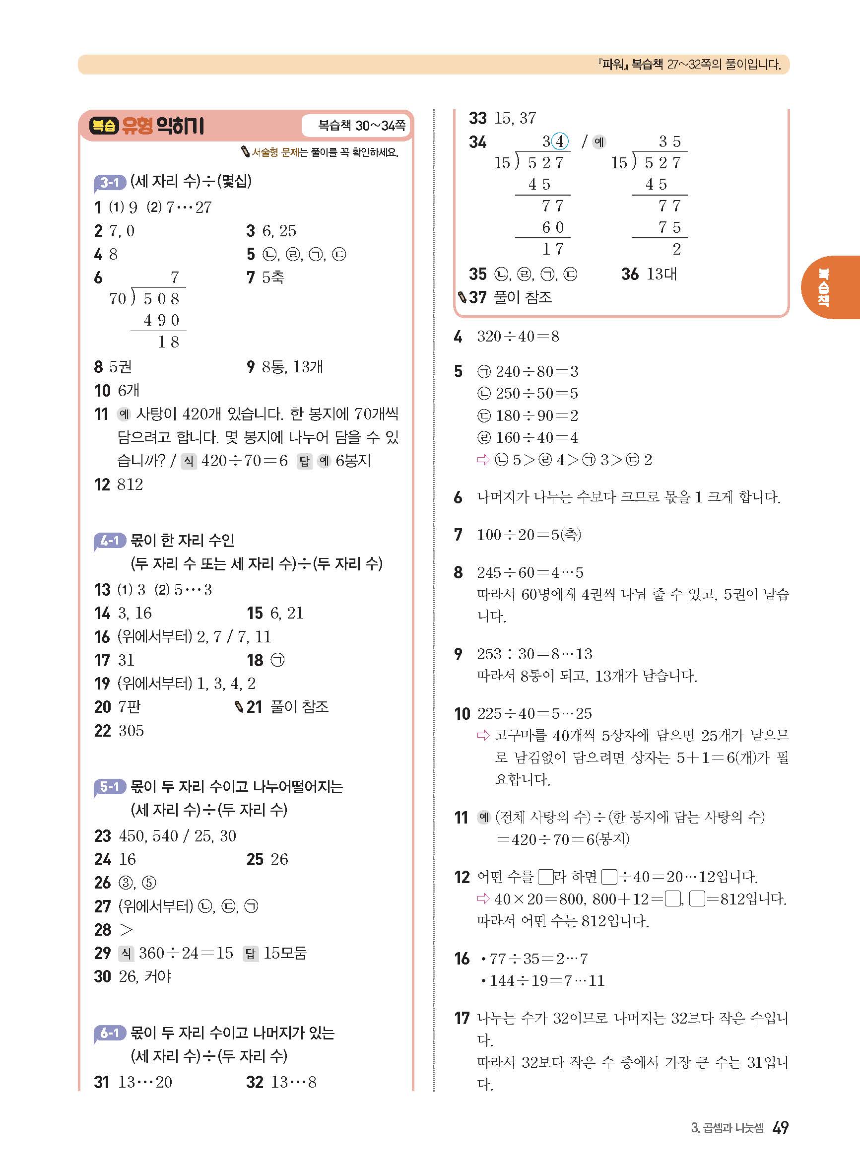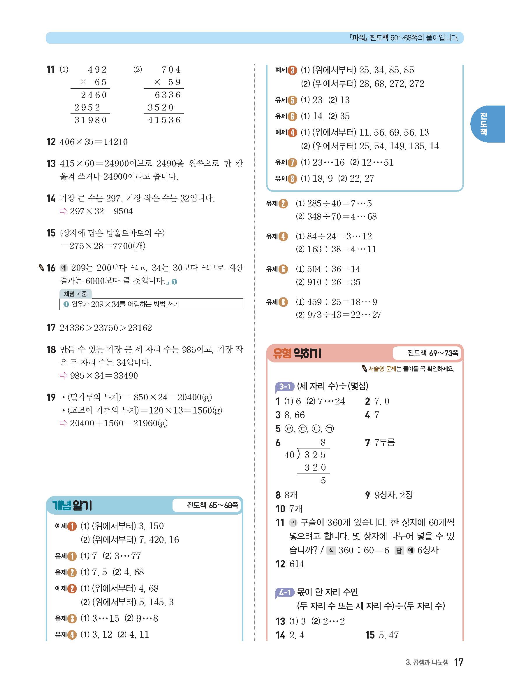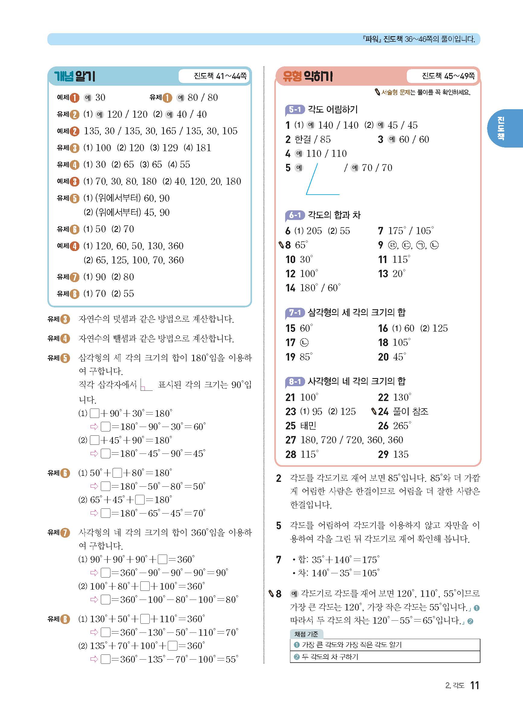 개념플러스유형 초등수학 4-1 파워 사진답지 빠른답지 모바일최적화