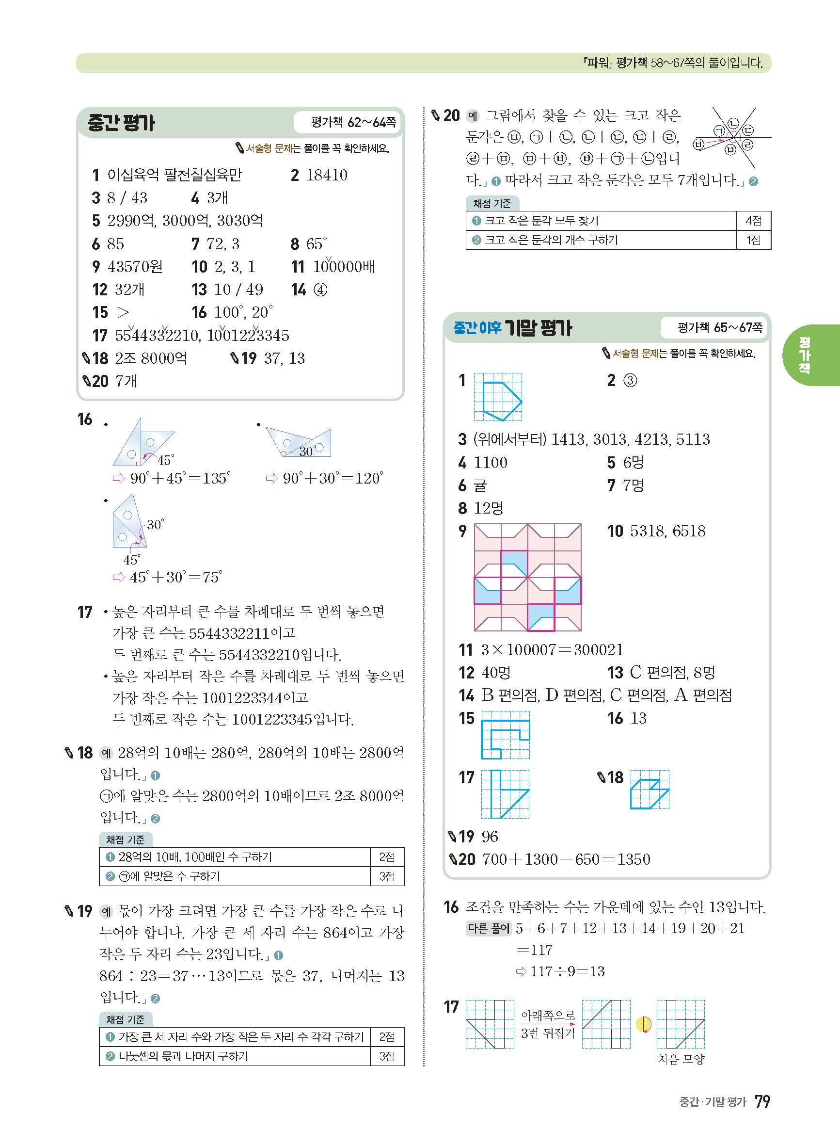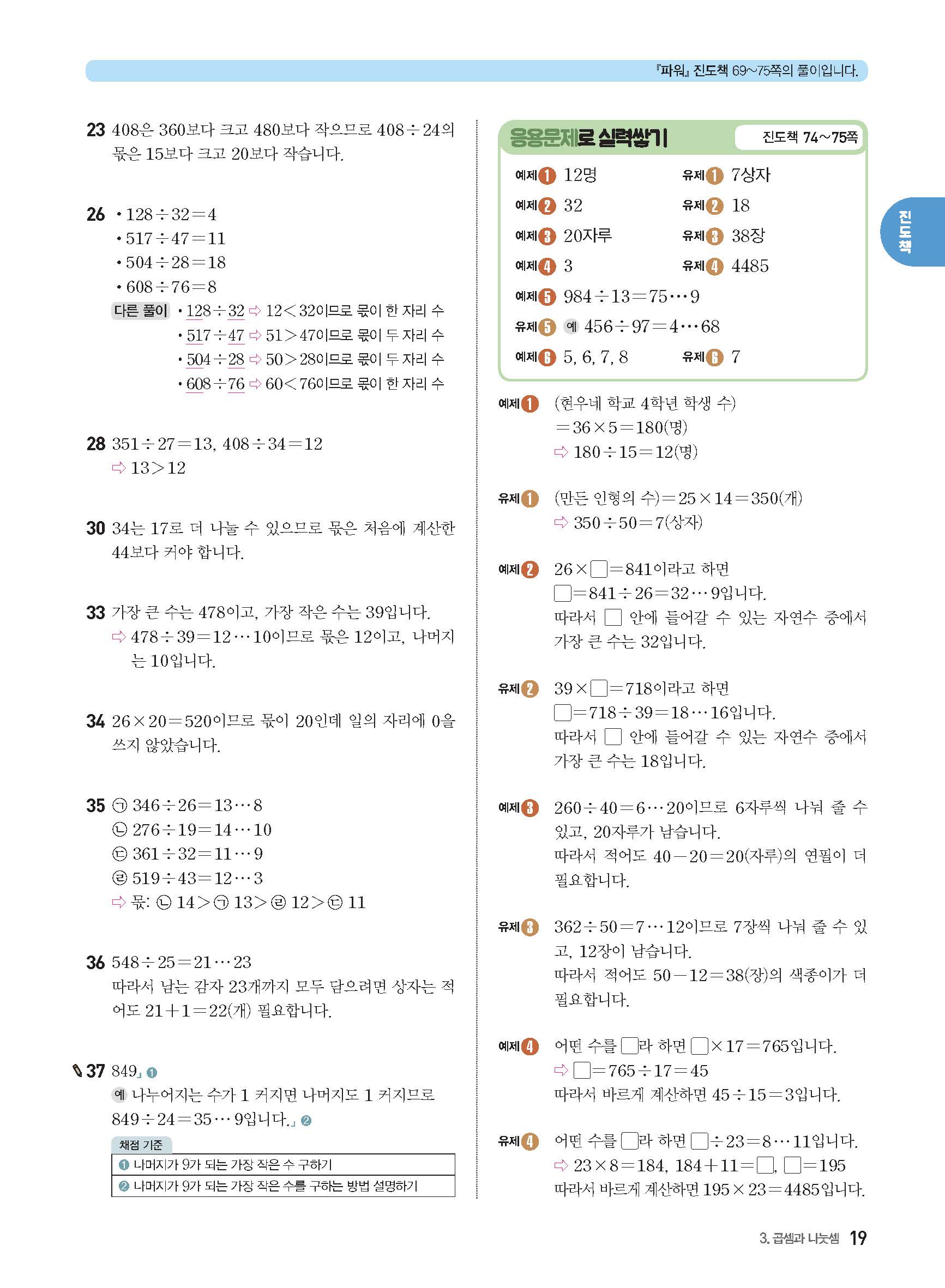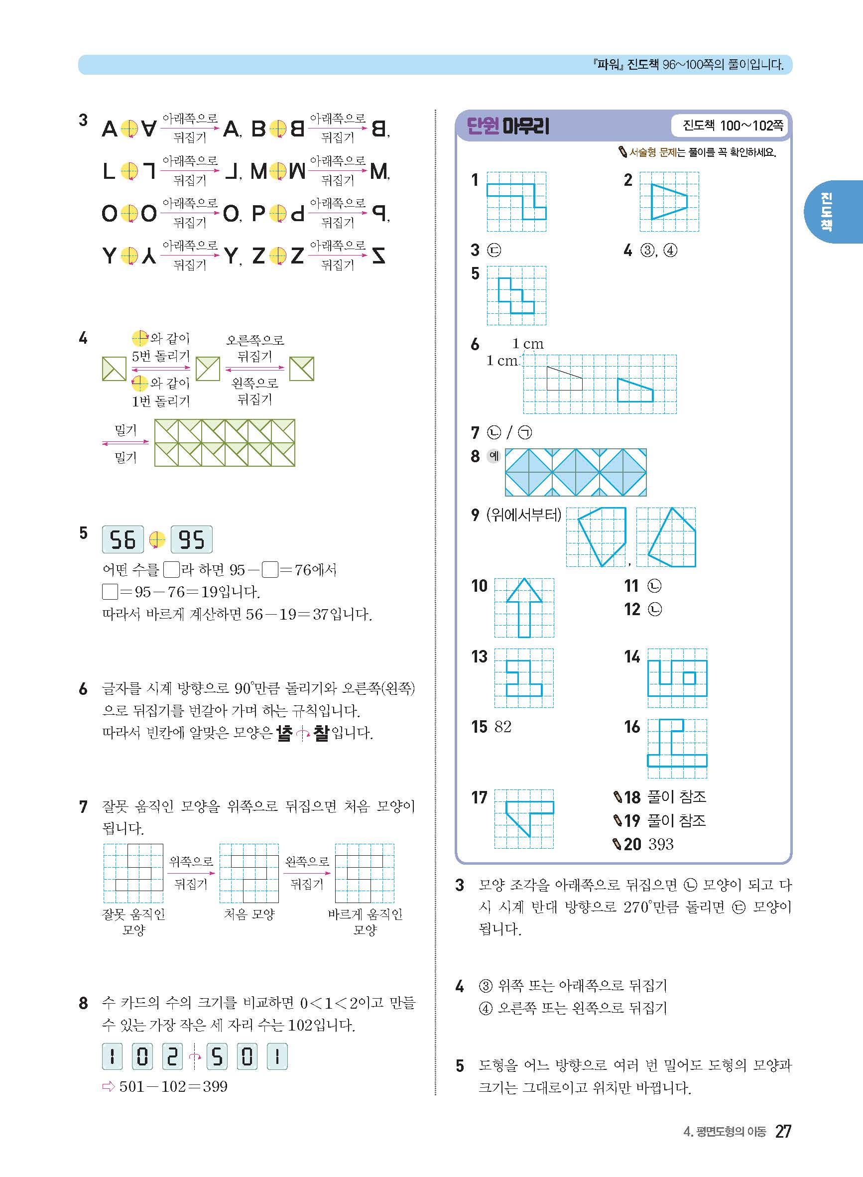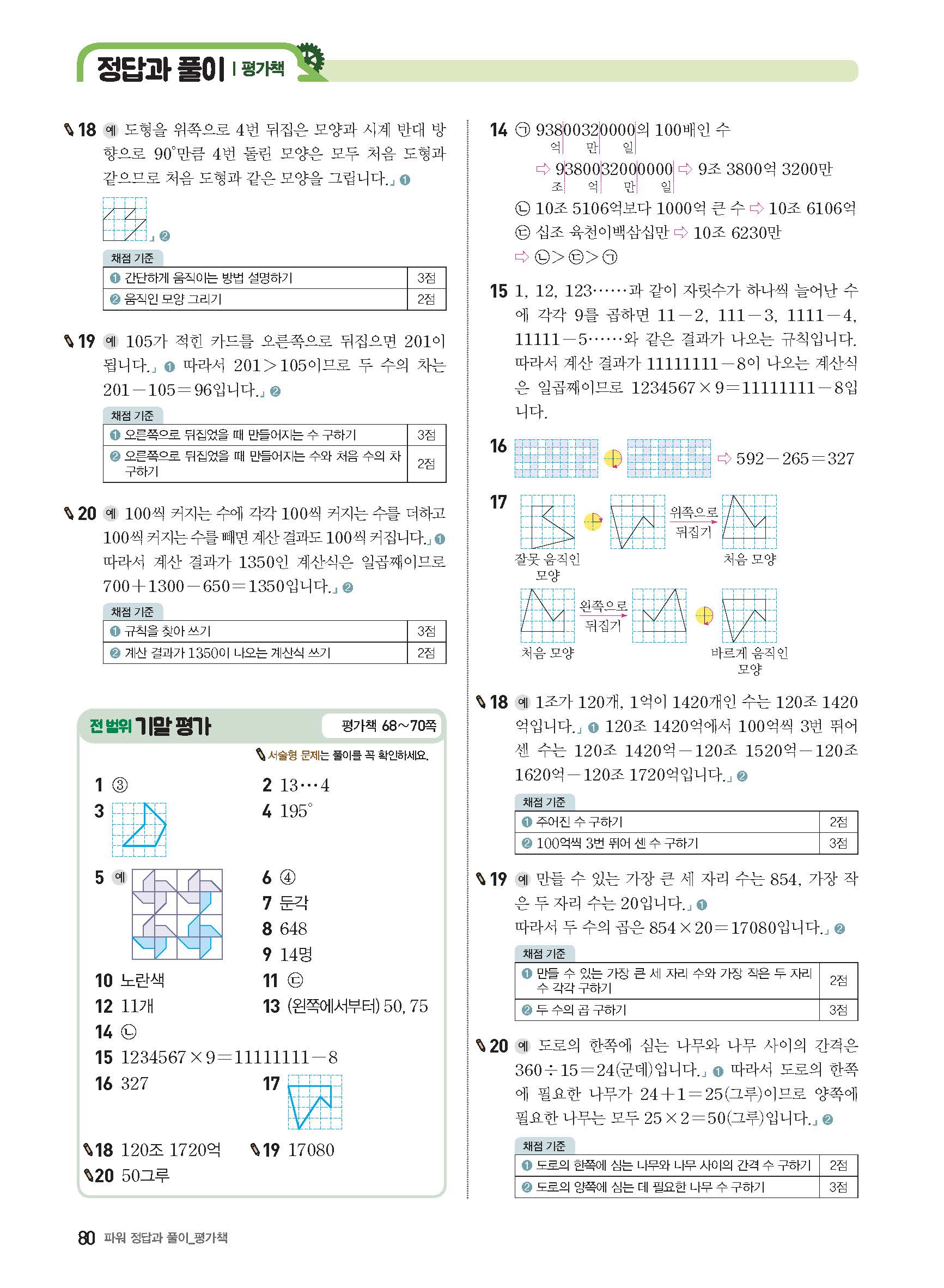개념플러스유형 초등수학 4-1 파워 사진답지 빠른답지 모바일최적화