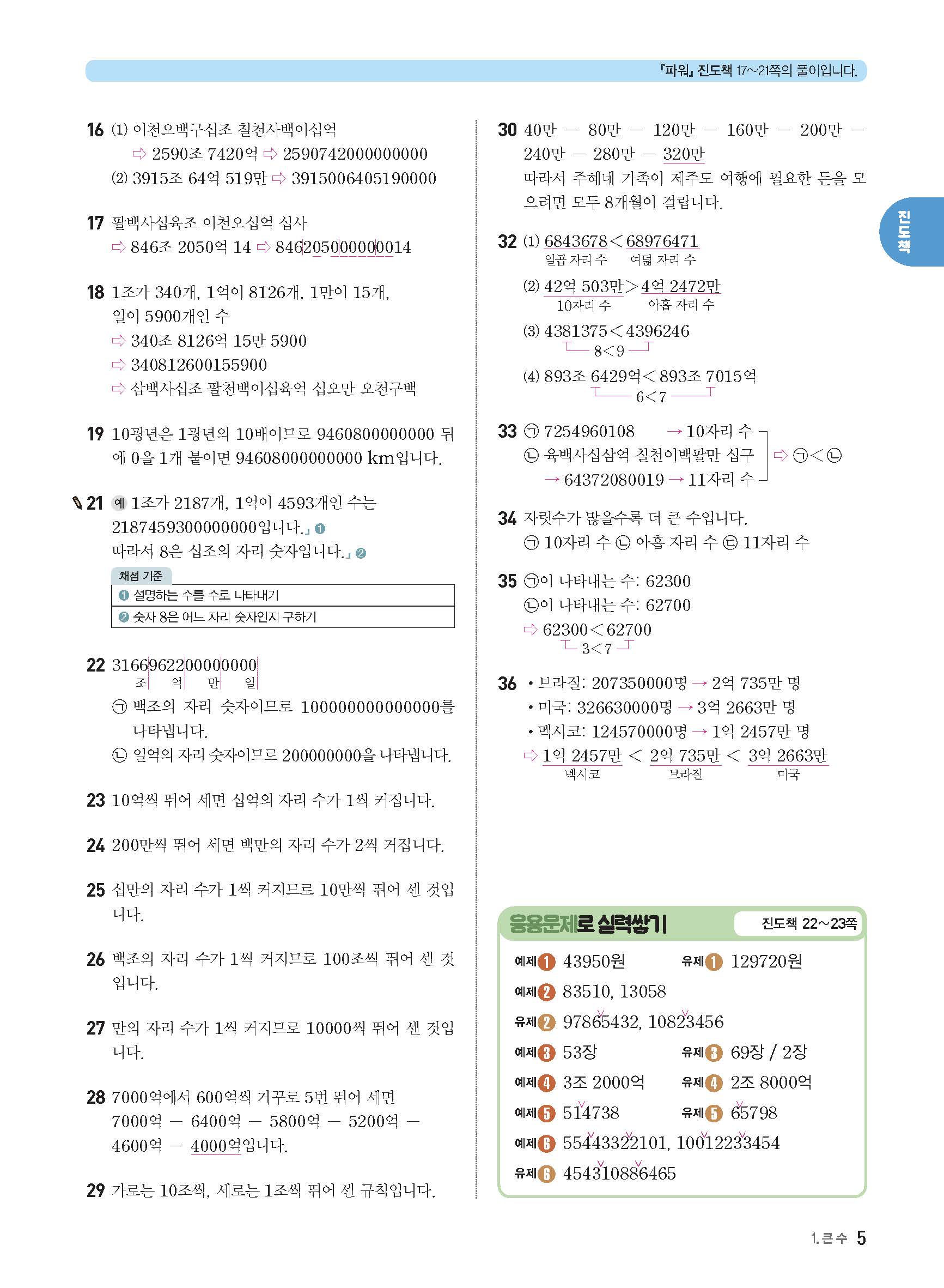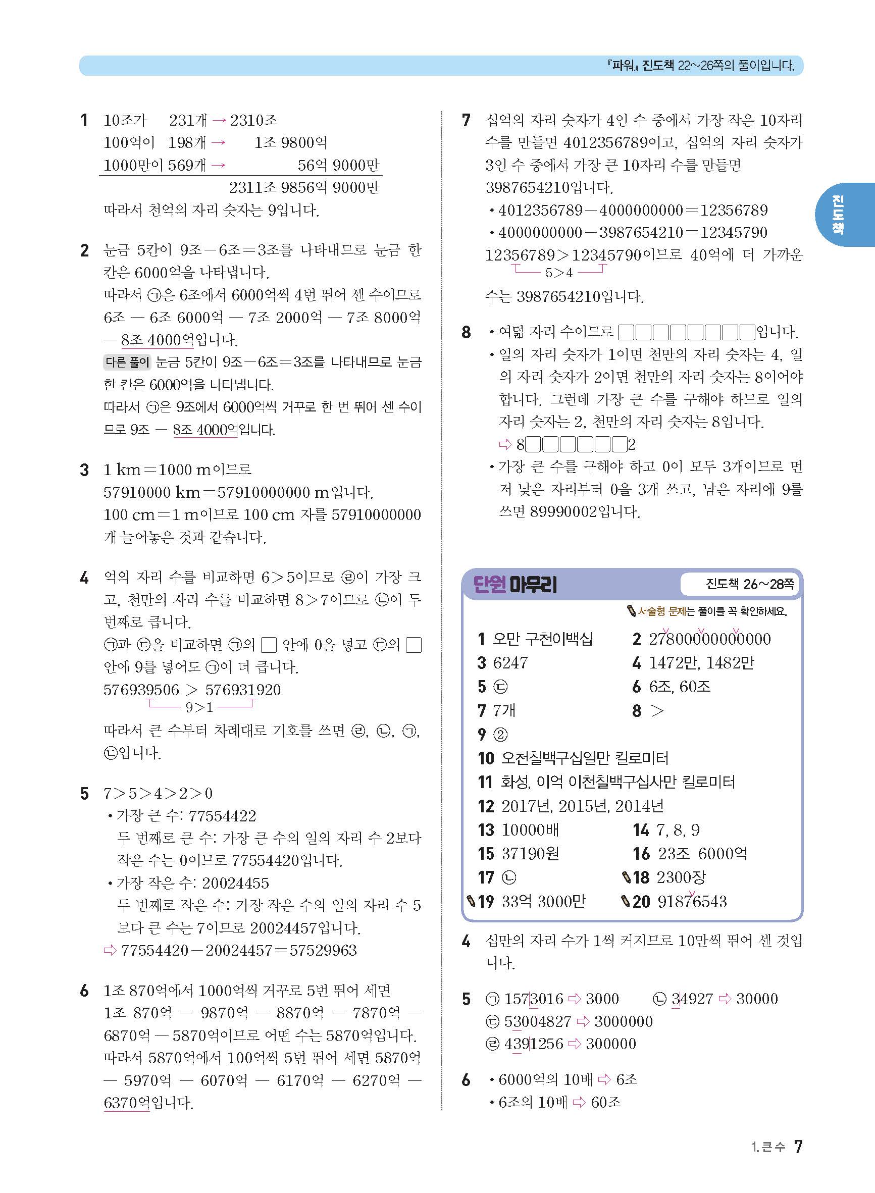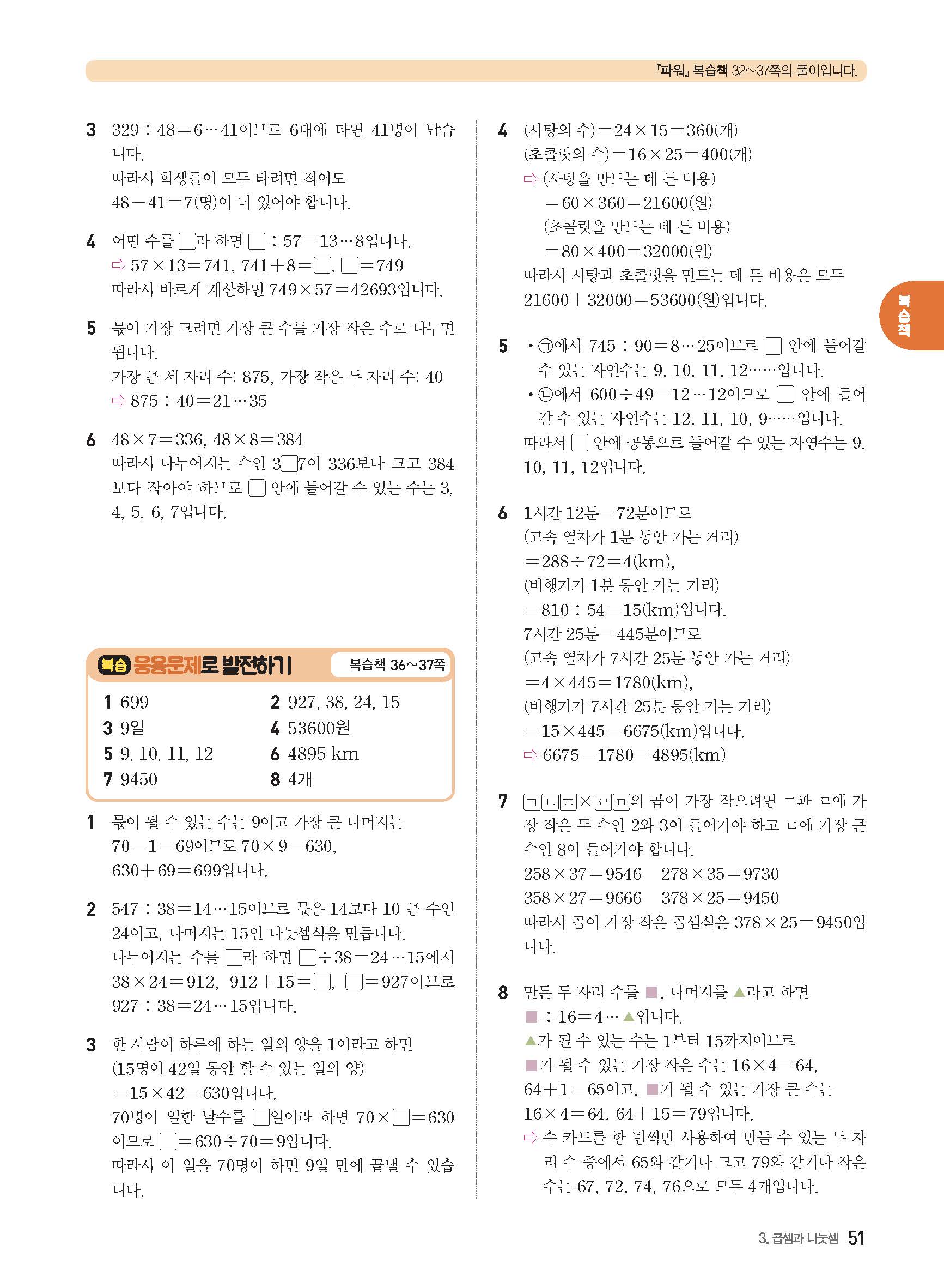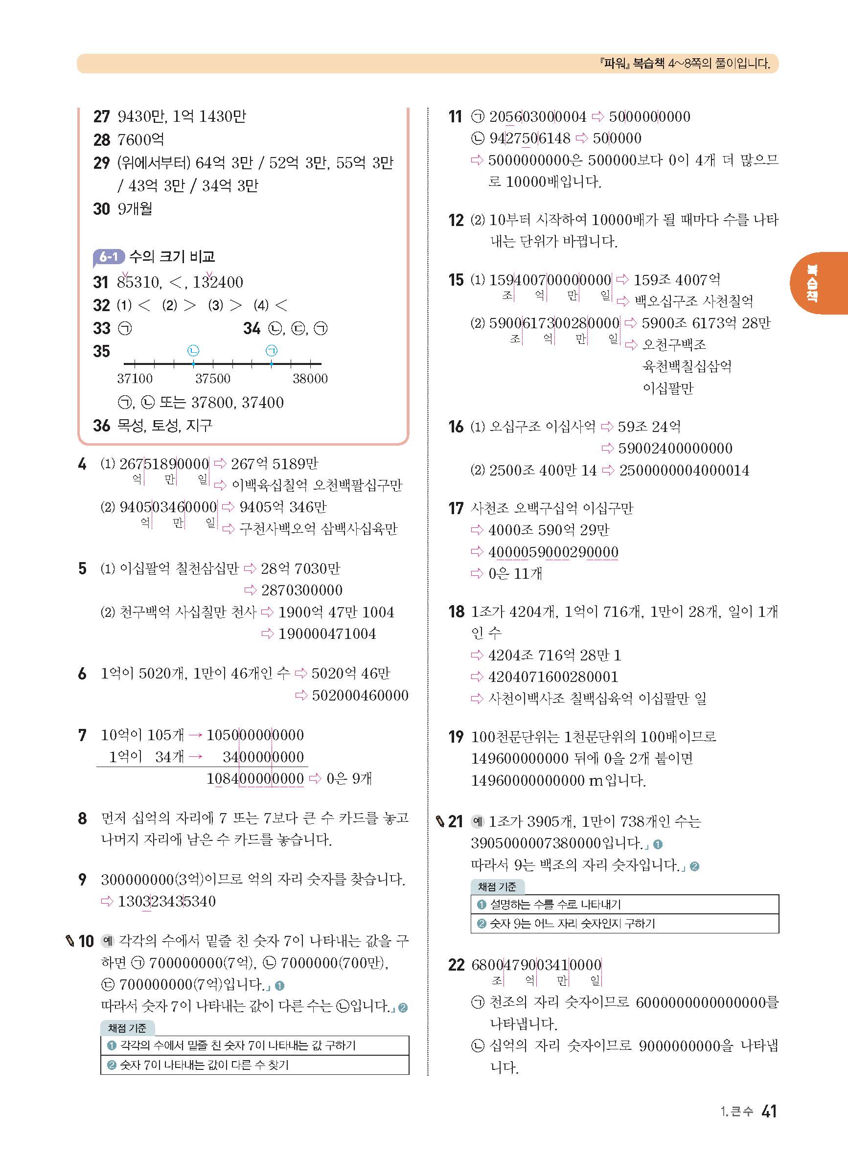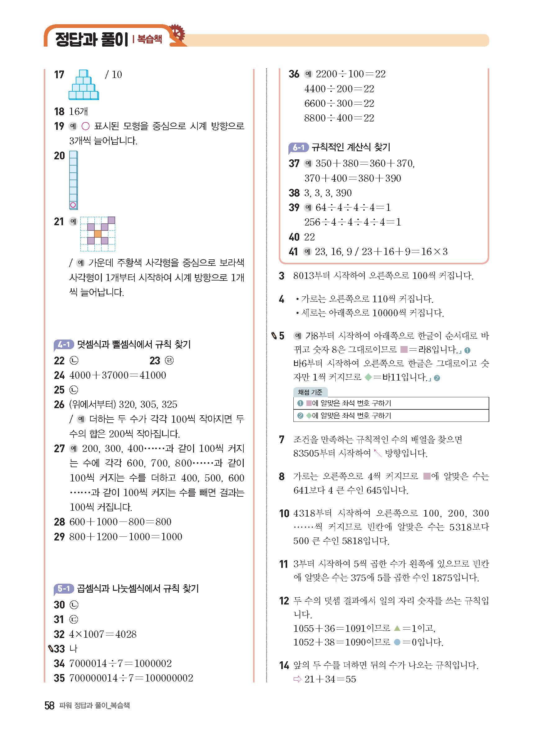개념플러스유형 초등수학 4-1 파워 사진답지 빠른답지 모바일최적화