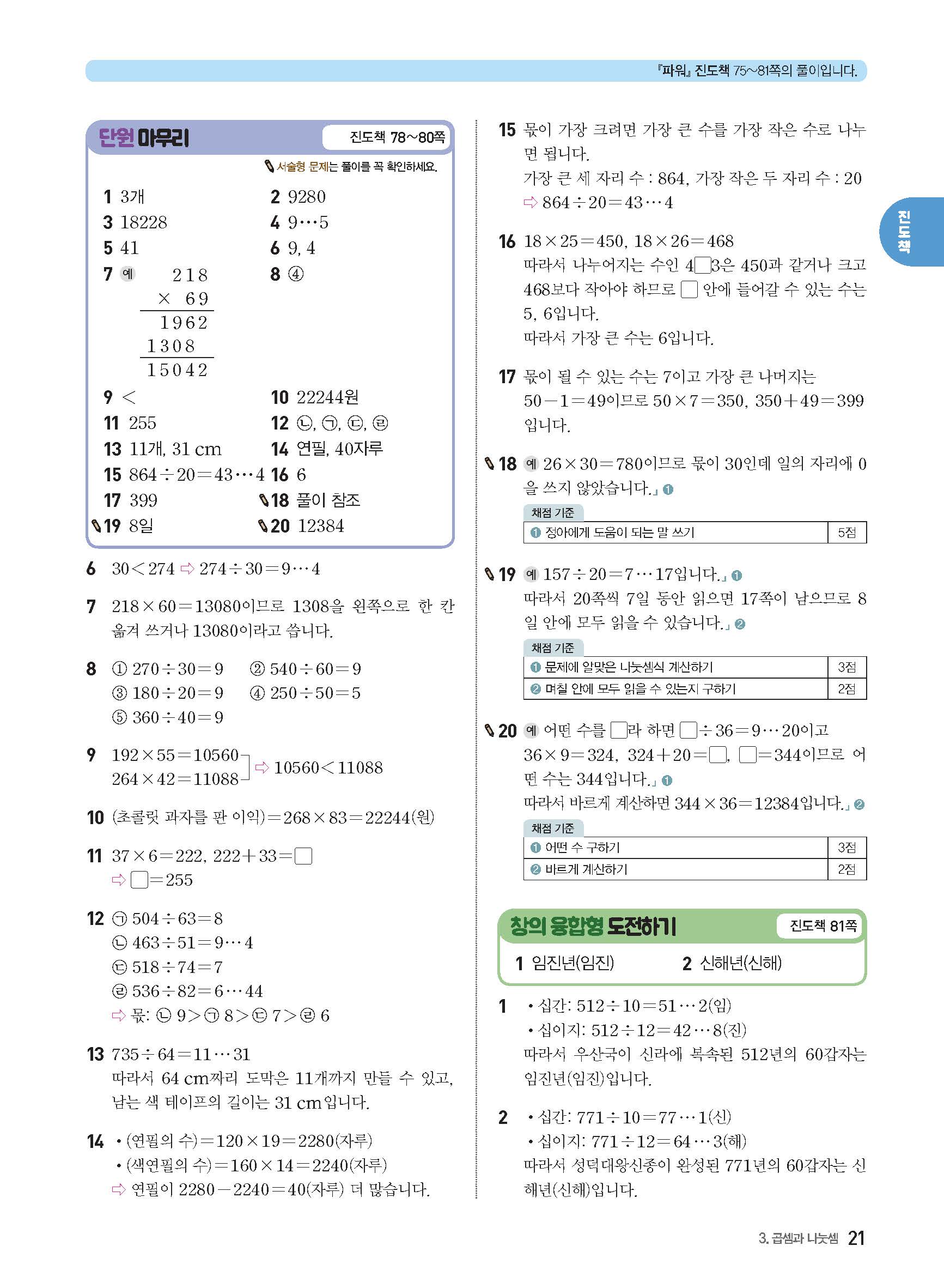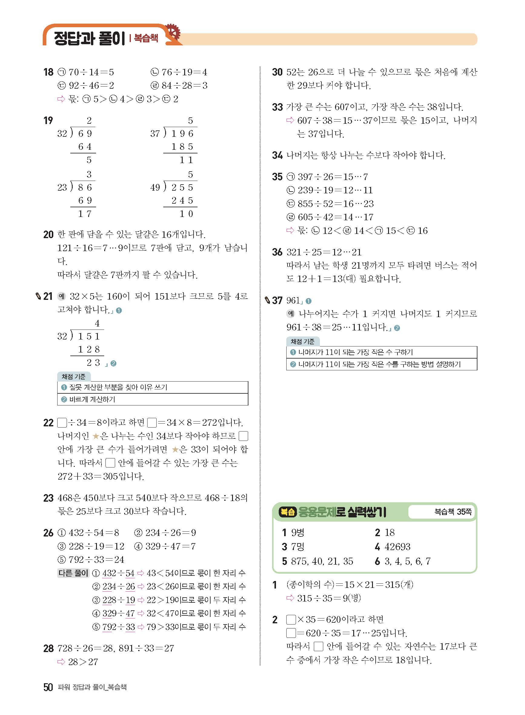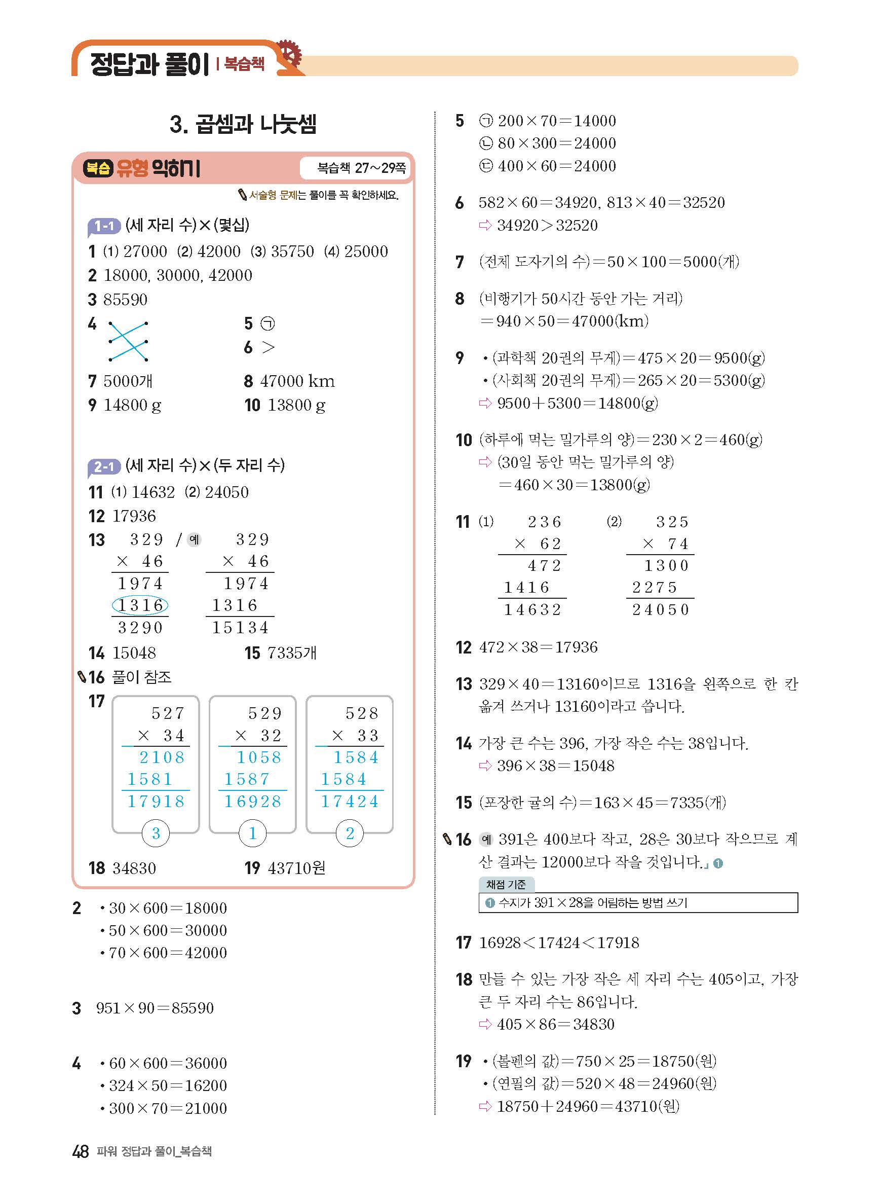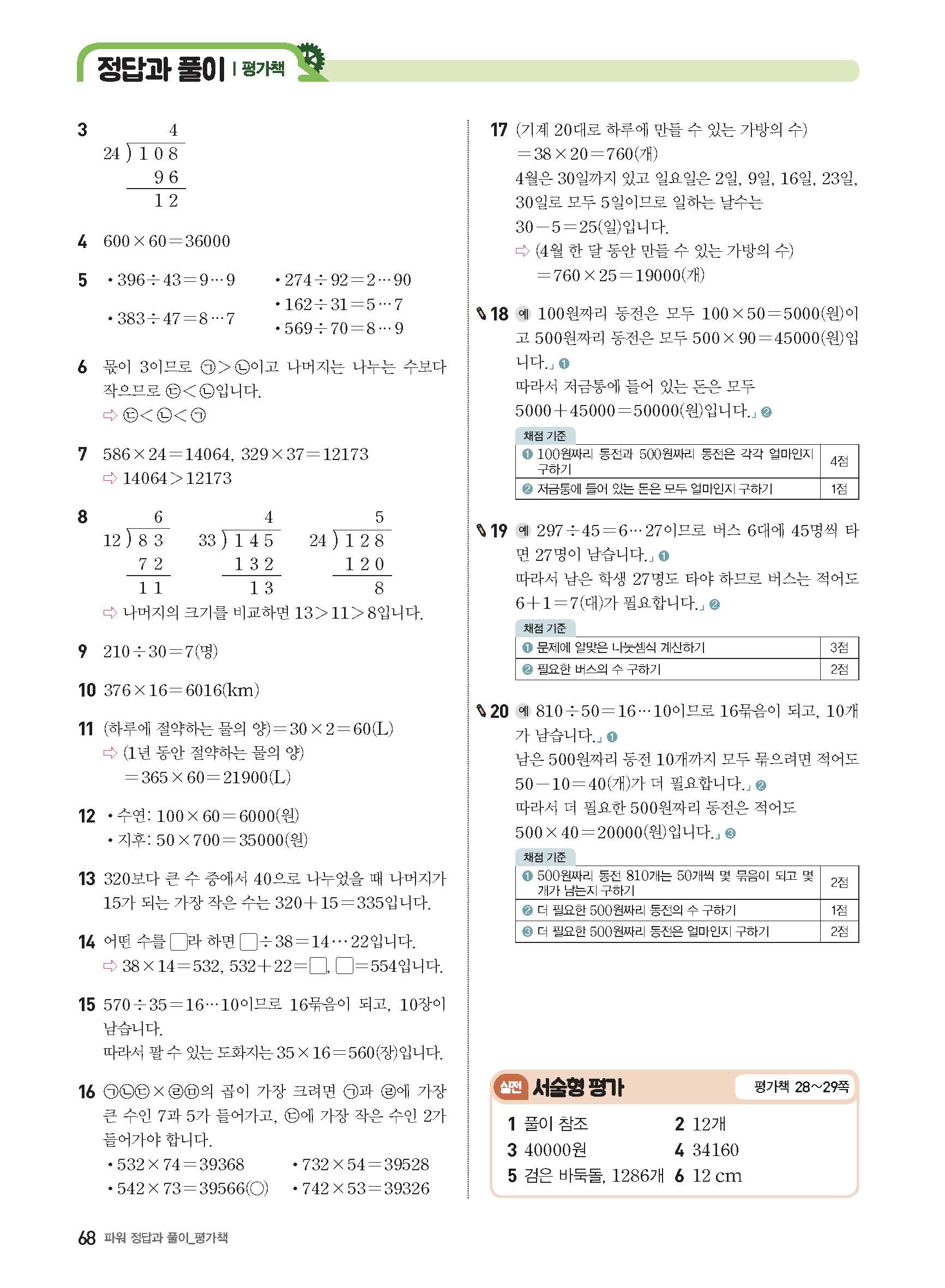 개념플러스유형 초등수학 4-1 파워 사진답지 빠른답지 모바일최적화