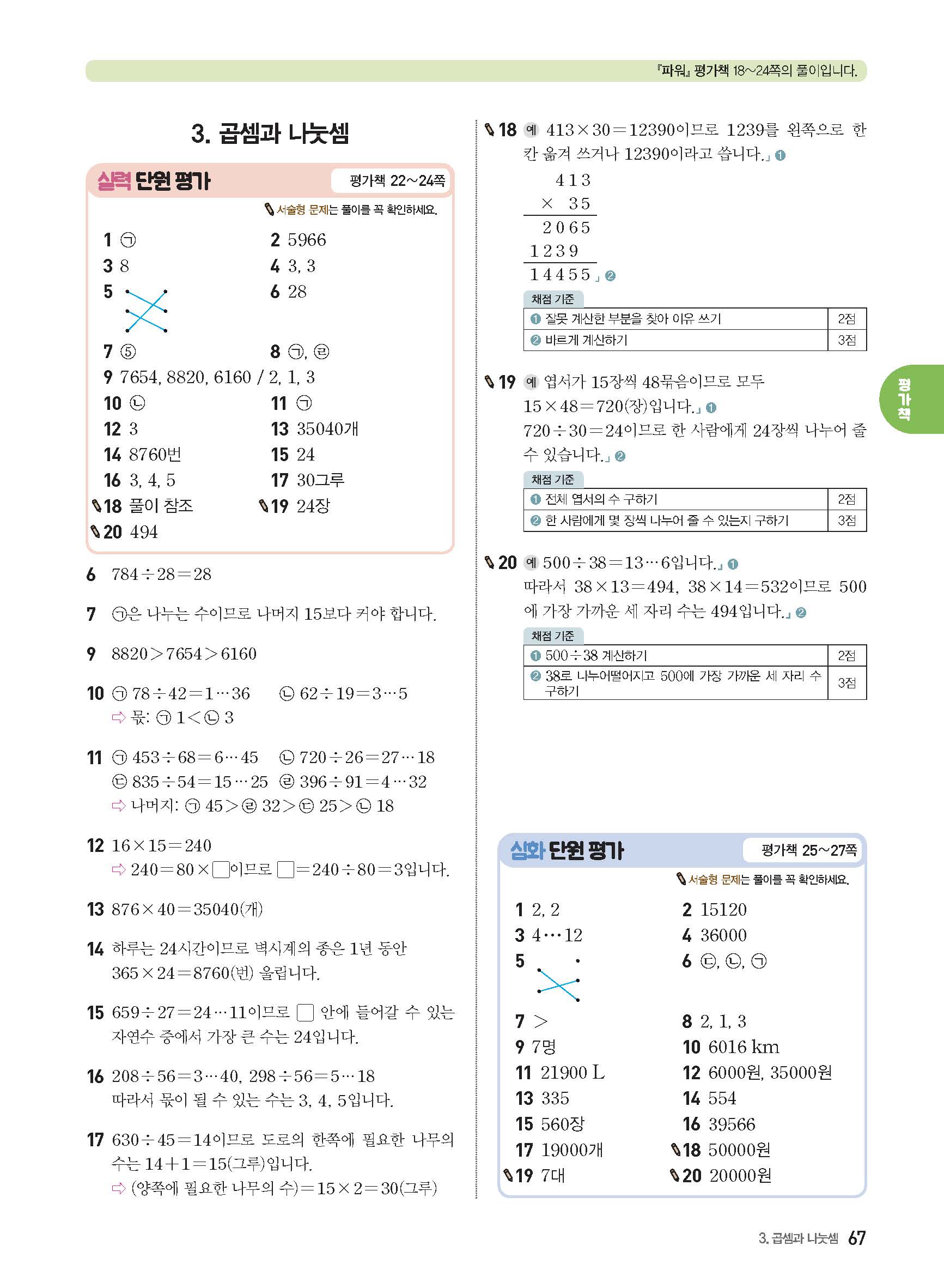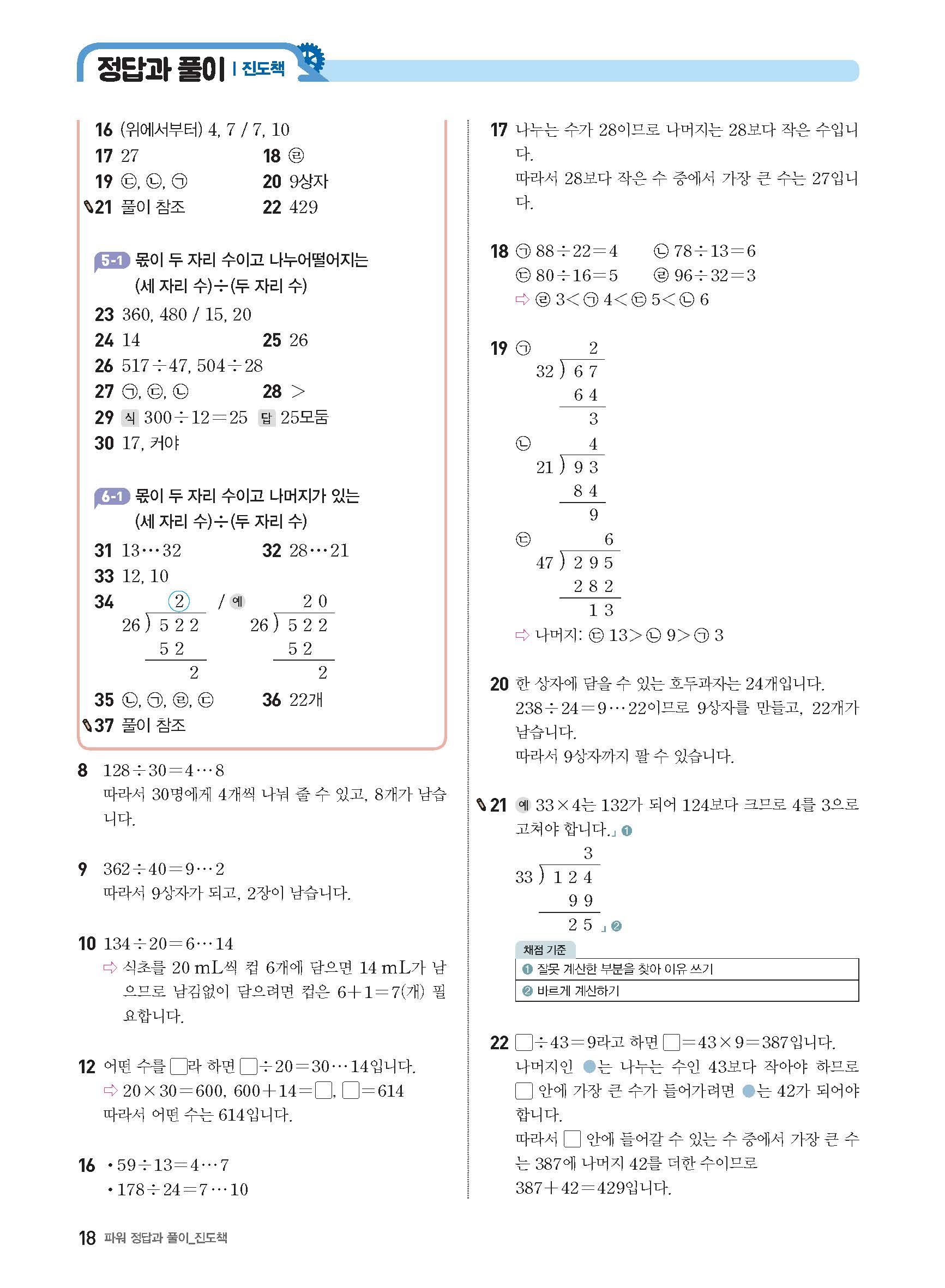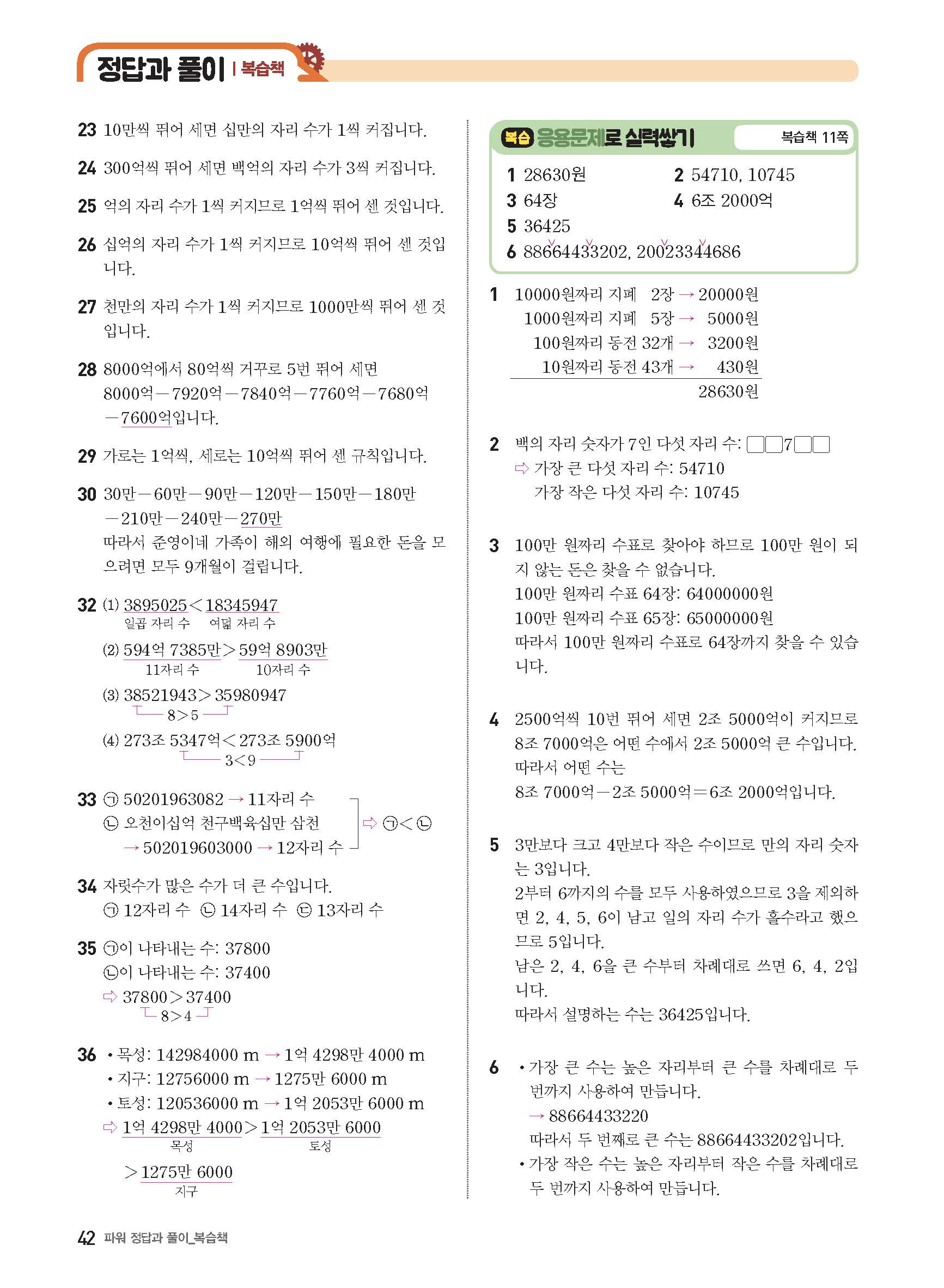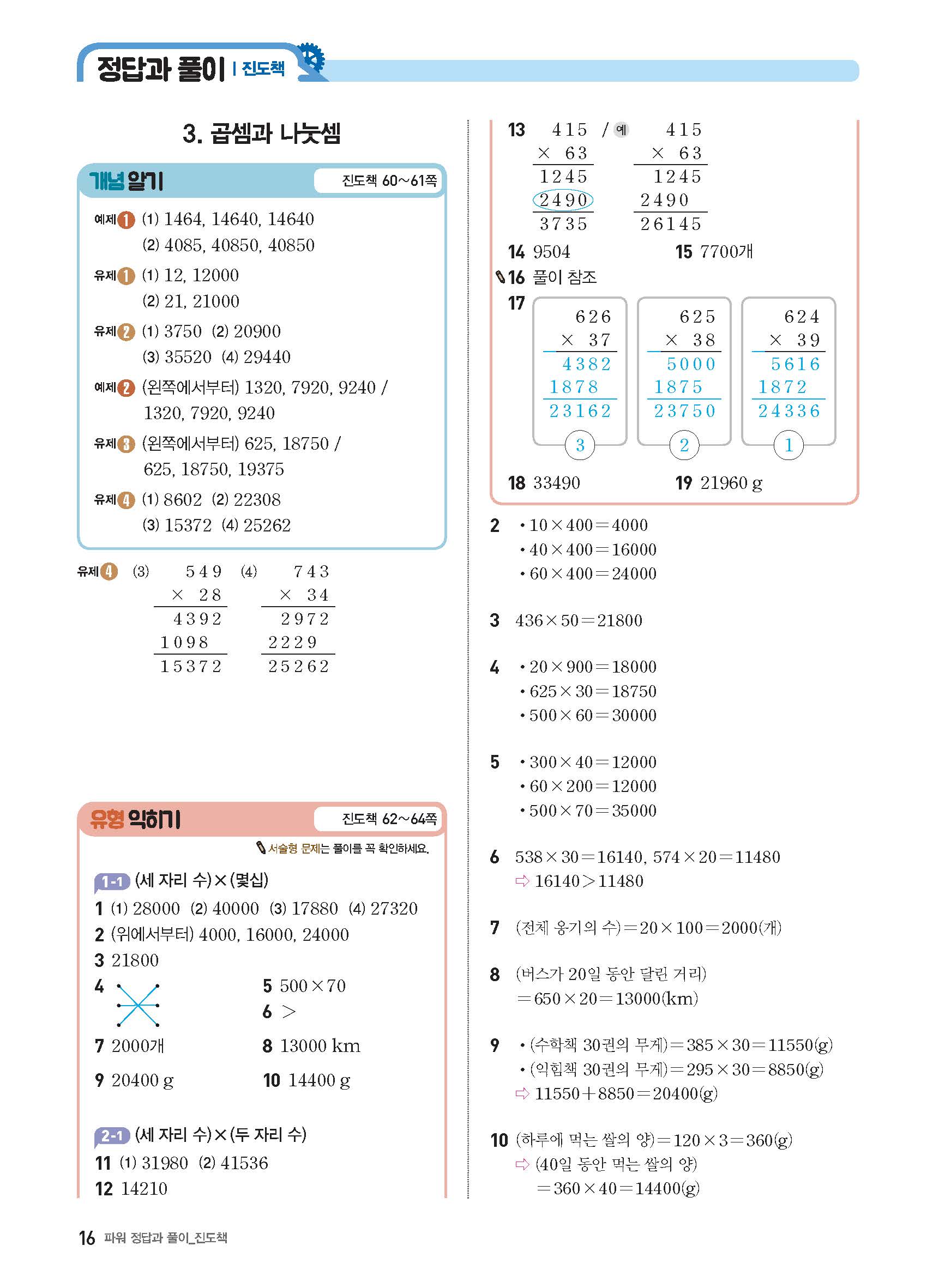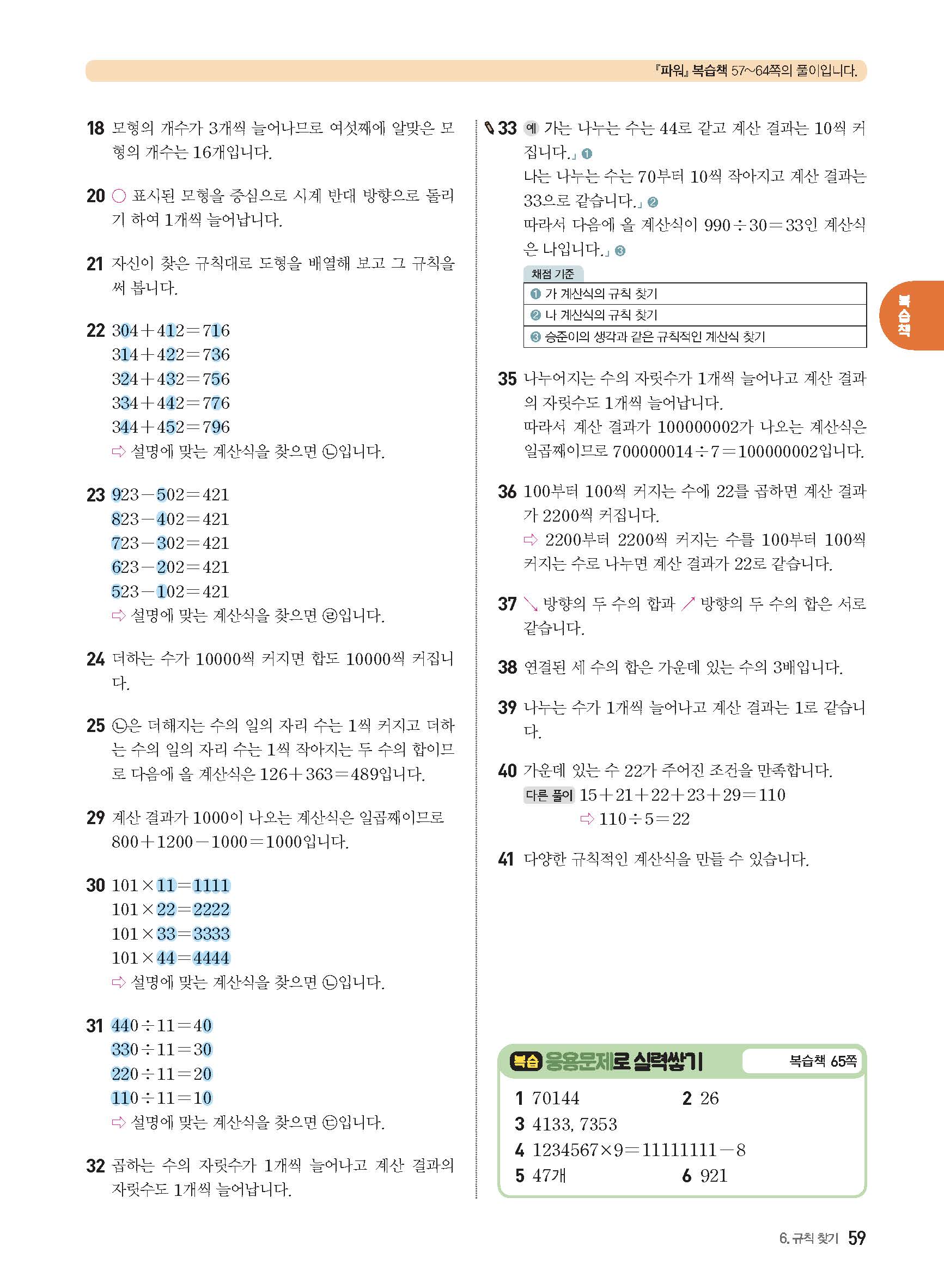 개념플러스유형 초등수학 4-1 파워 사진답지 빠른답지 모바일최적화