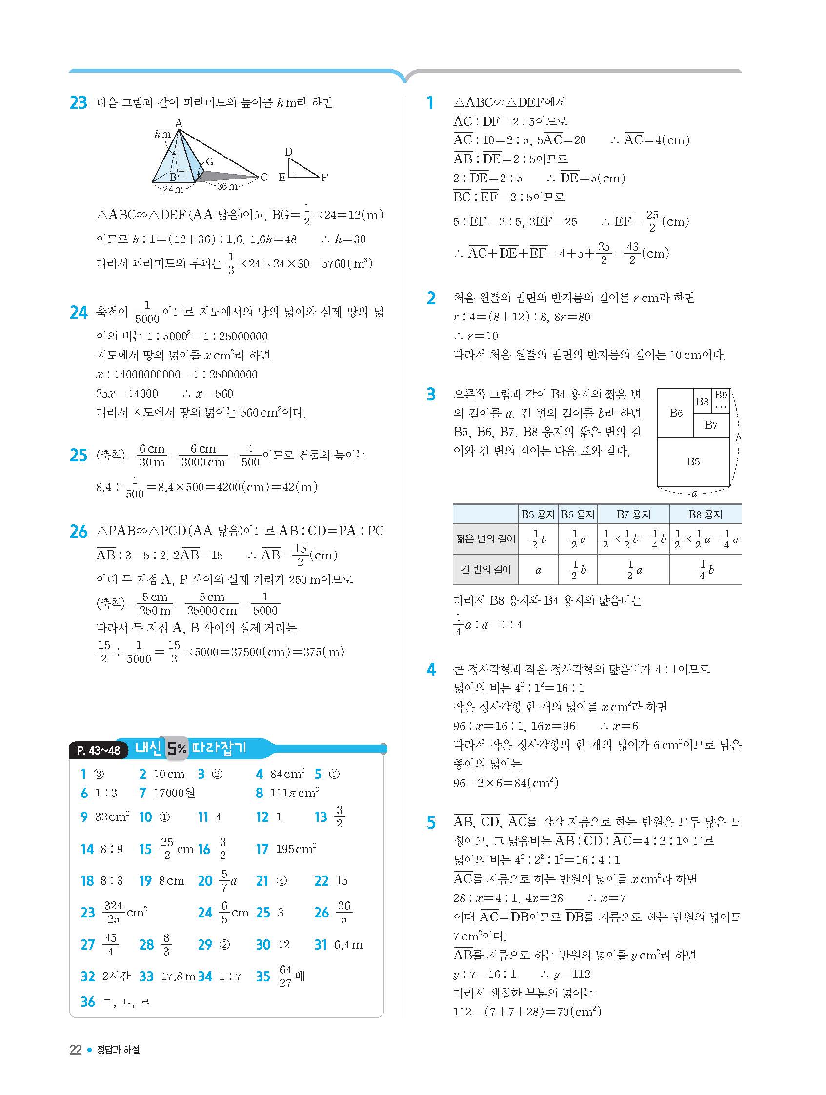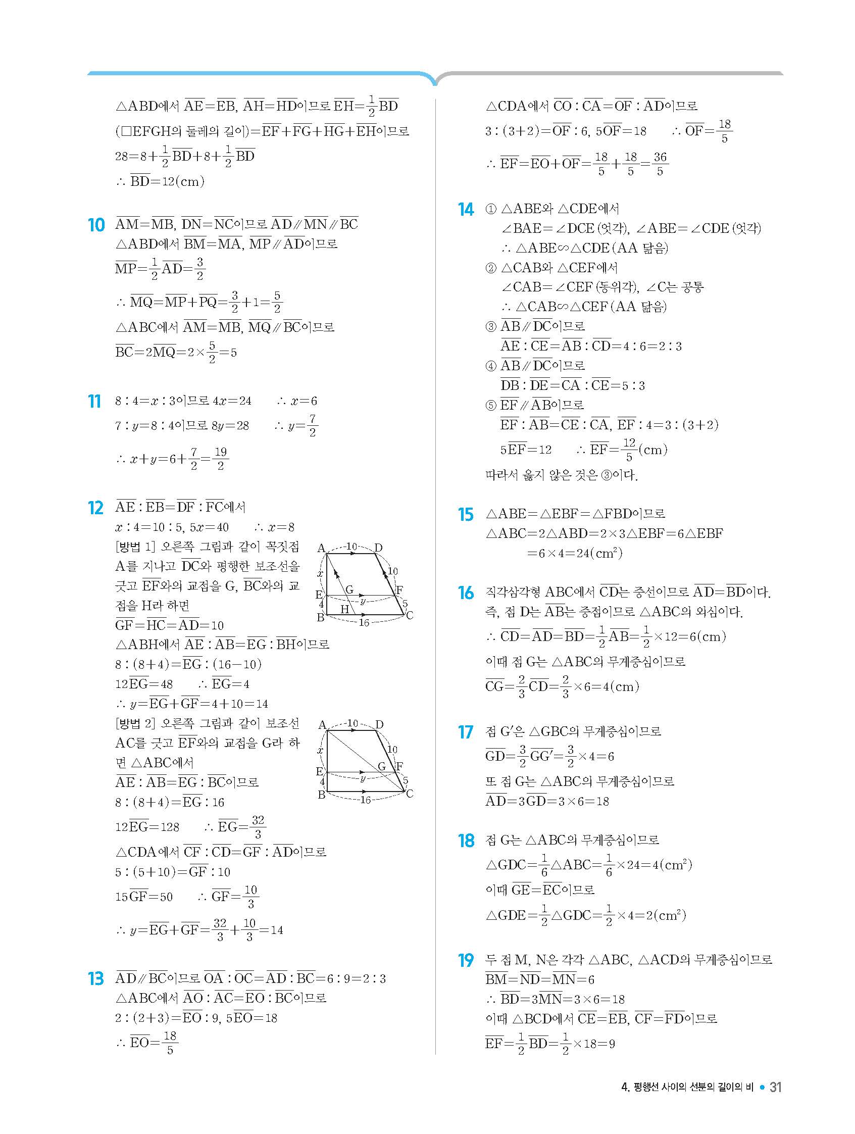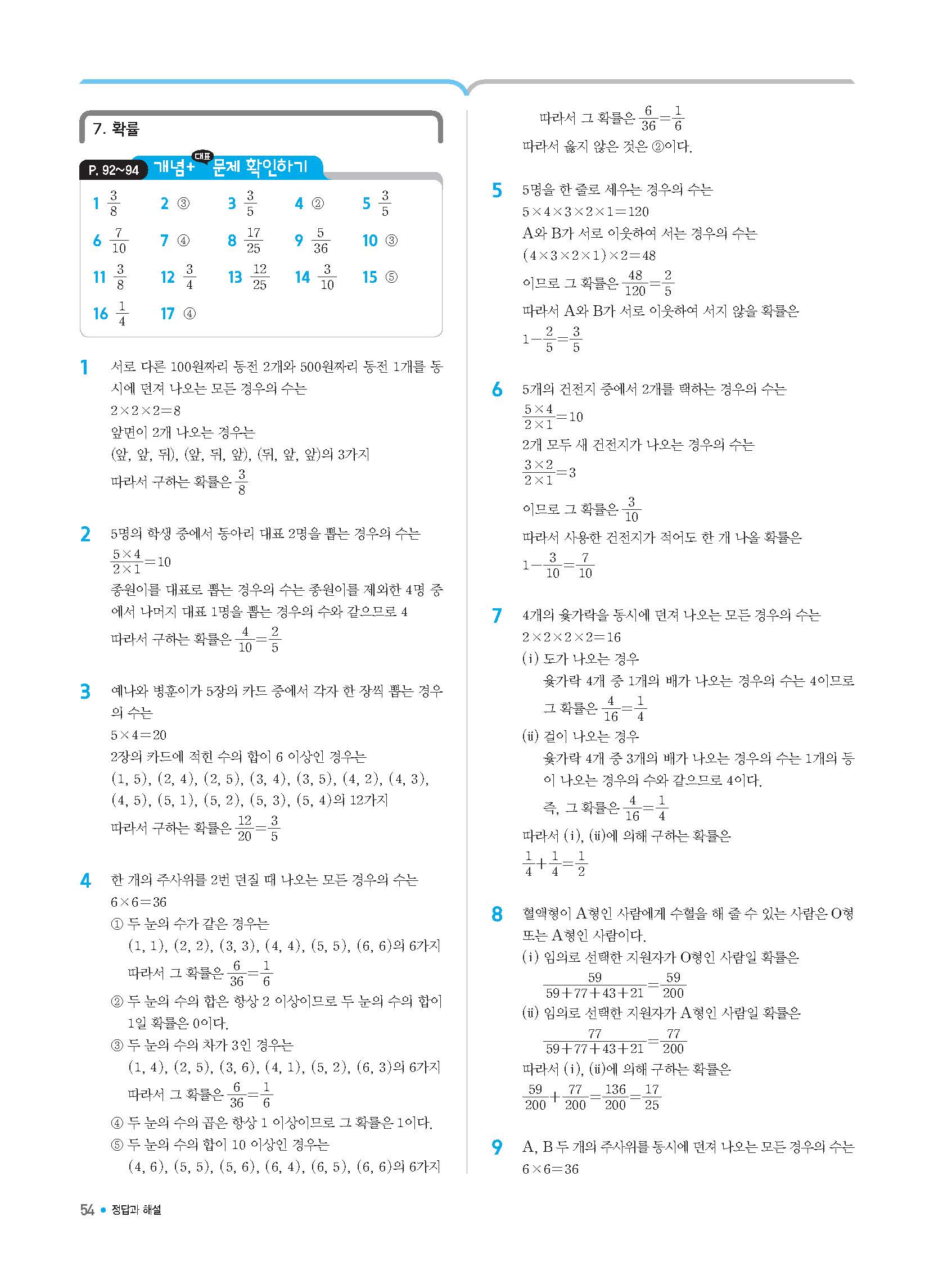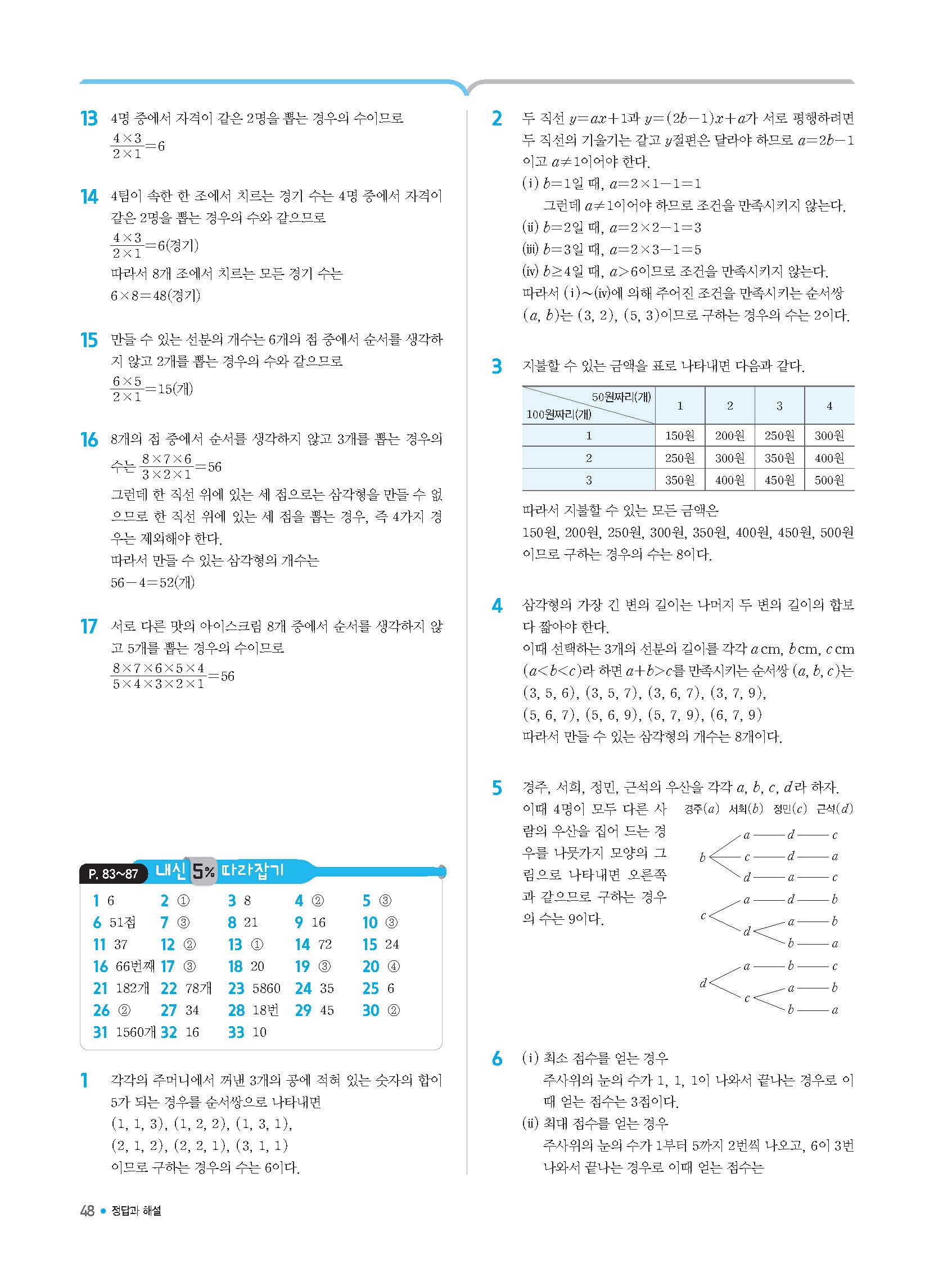 개념플러스유형 중등수학 탑 중2하 2-2 사진답지 빠른답지 모바일최적화