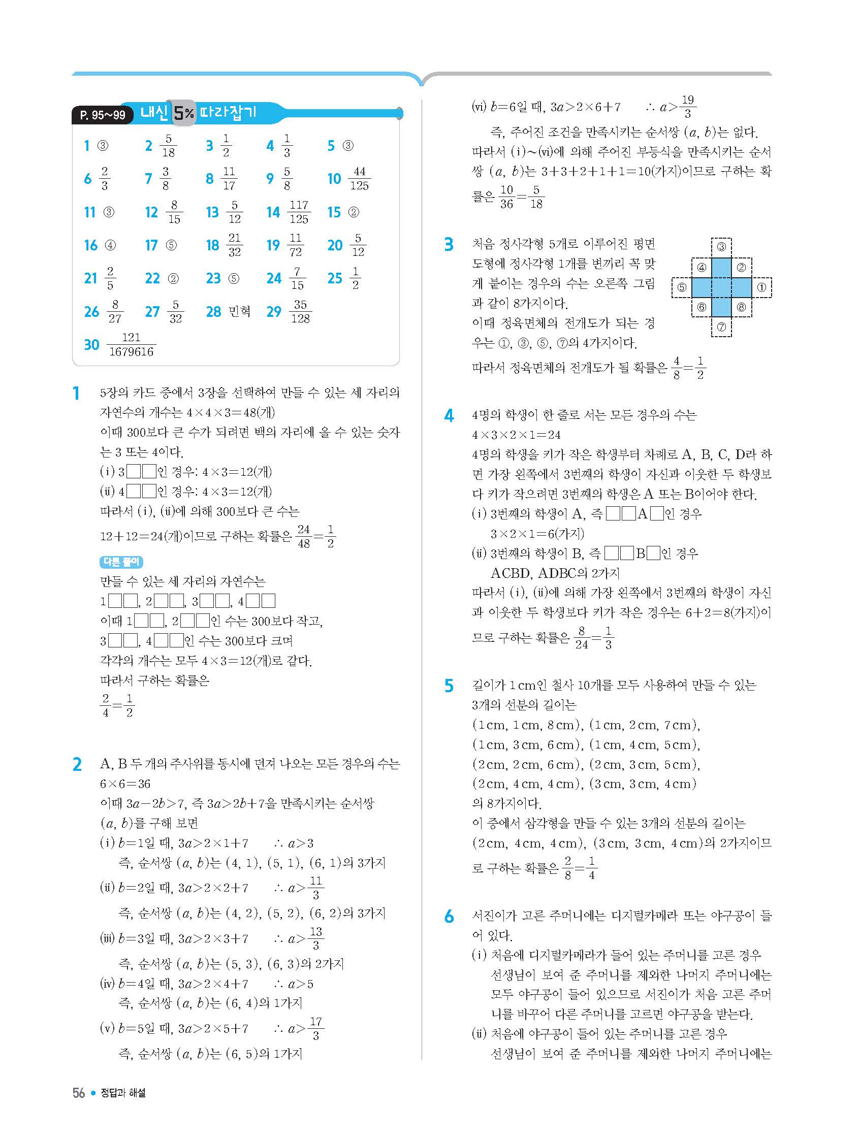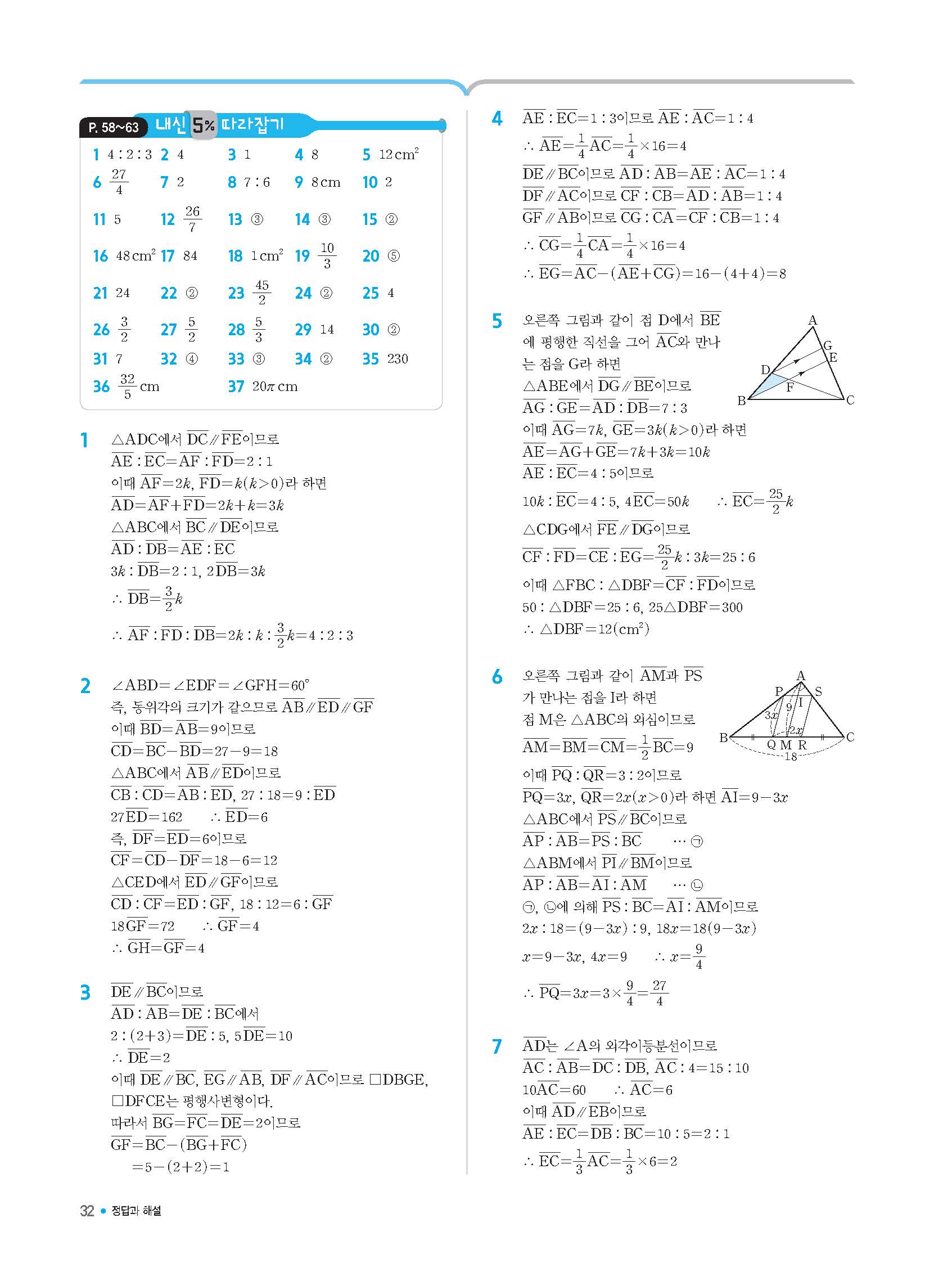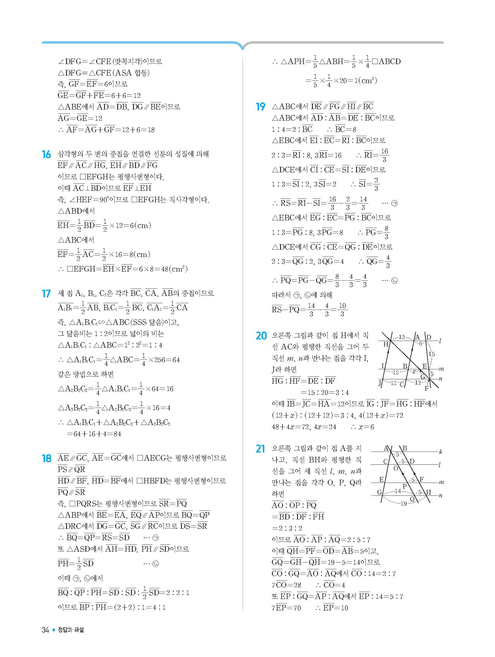 개념플러스유형 중등수학 탑 중2하 2-2 사진답지 빠른답지 모바일최적화