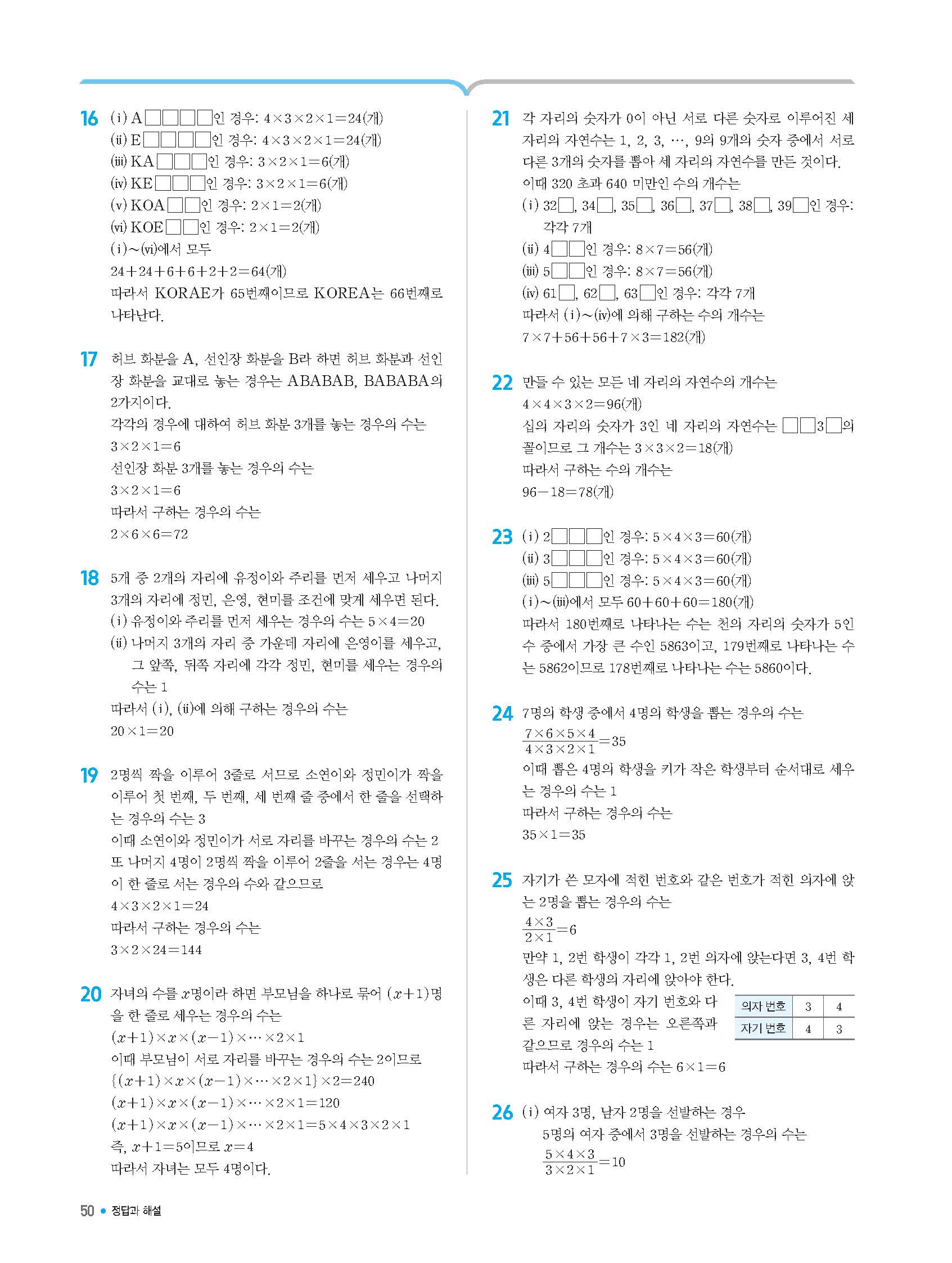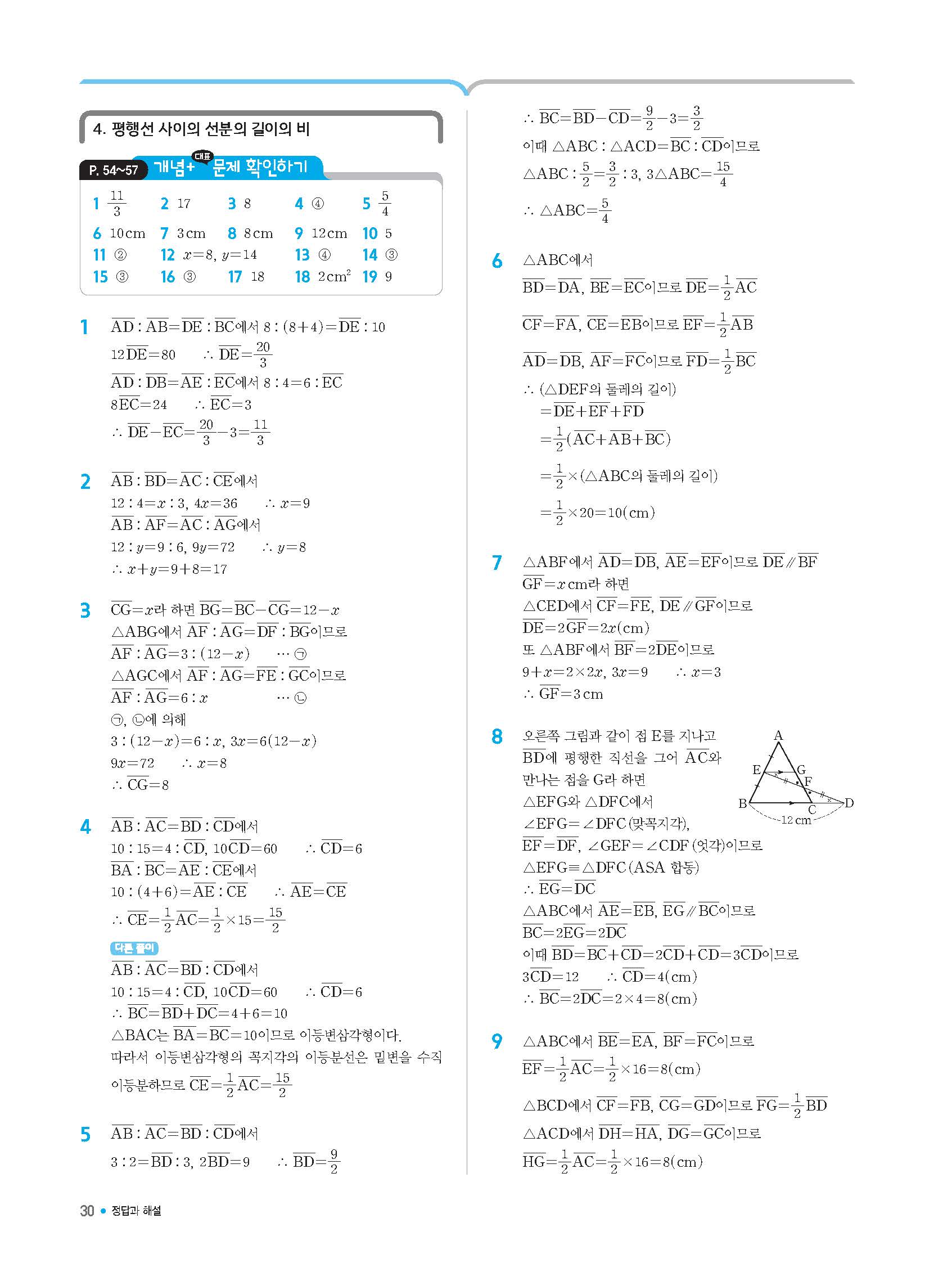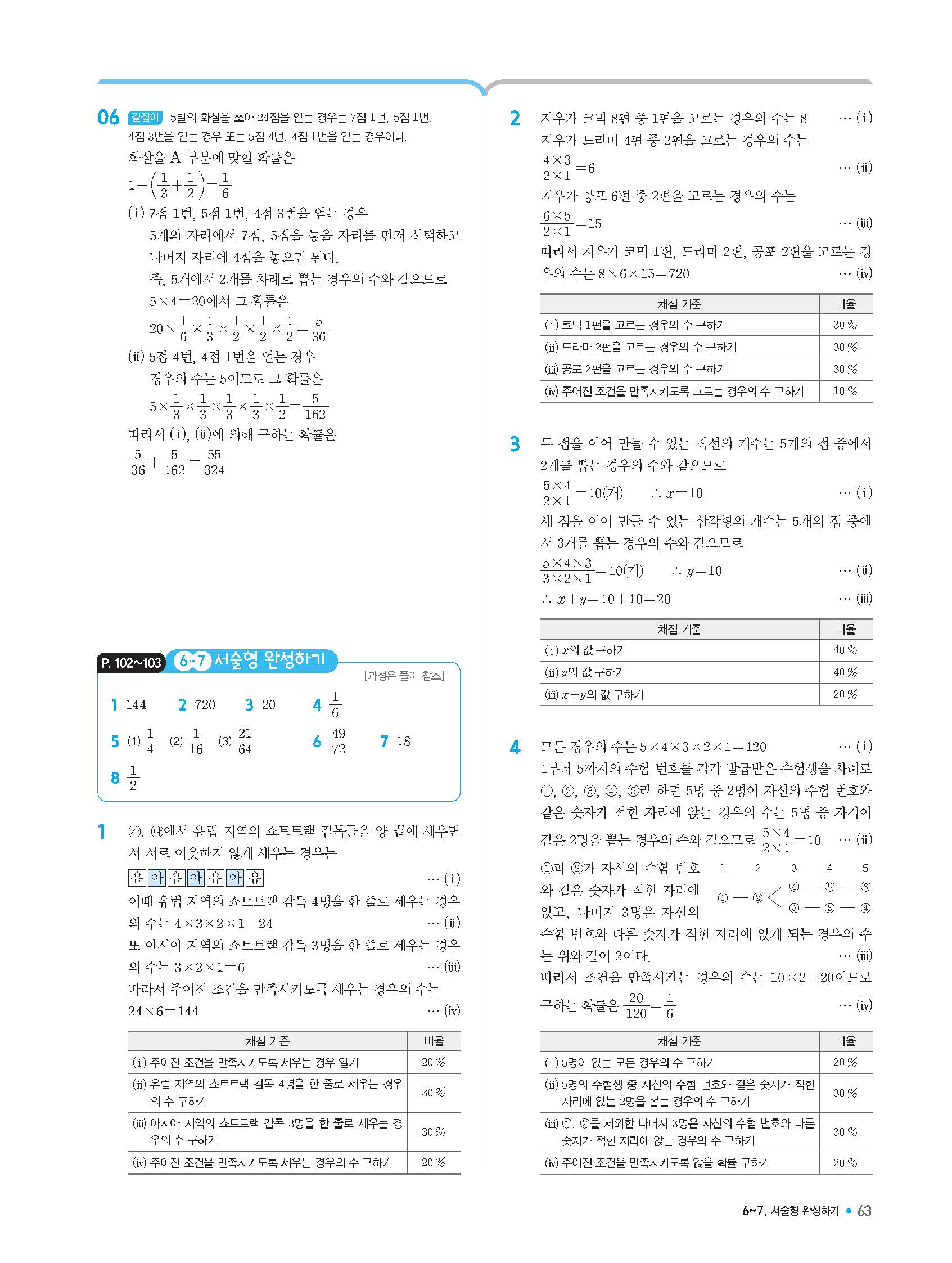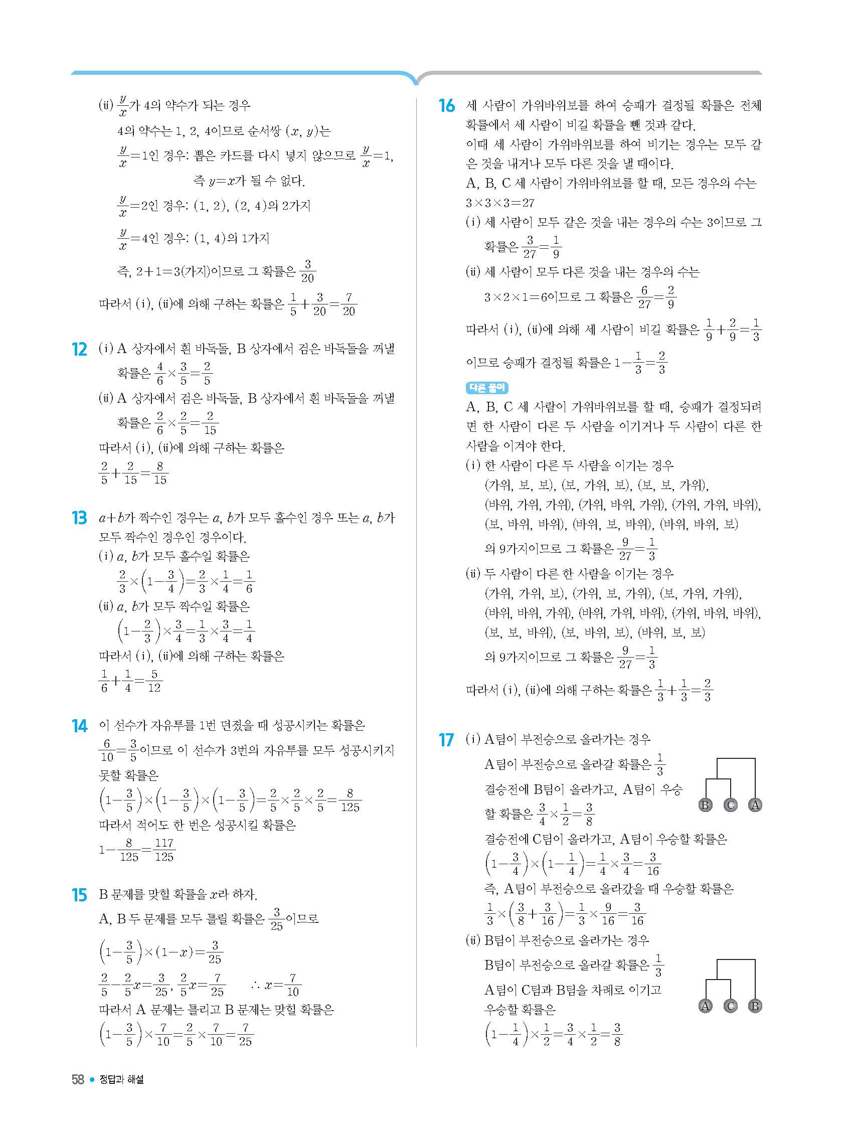 개념플러스유형 중등수학 탑 중2하 2-2 사진답지 빠른답지 모바일최적화