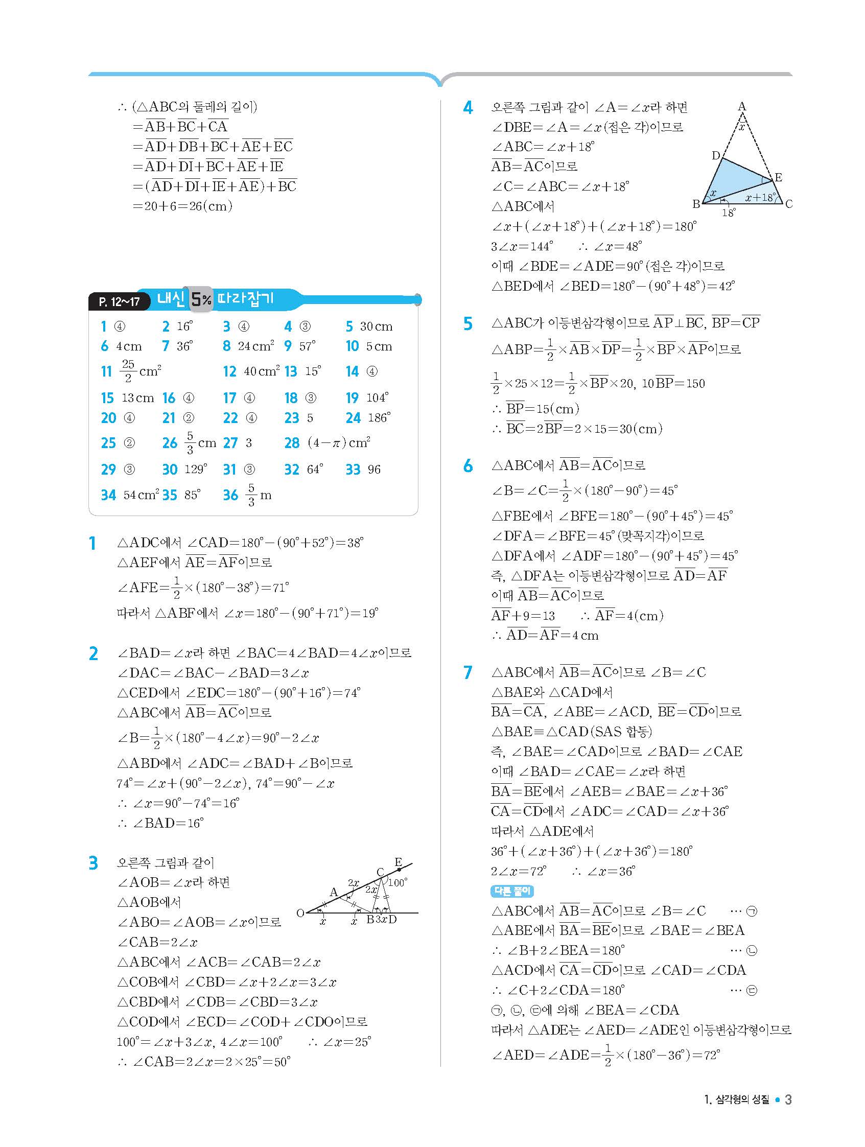 | 천재교육 이준열 중2 수학교과서 답지 | |