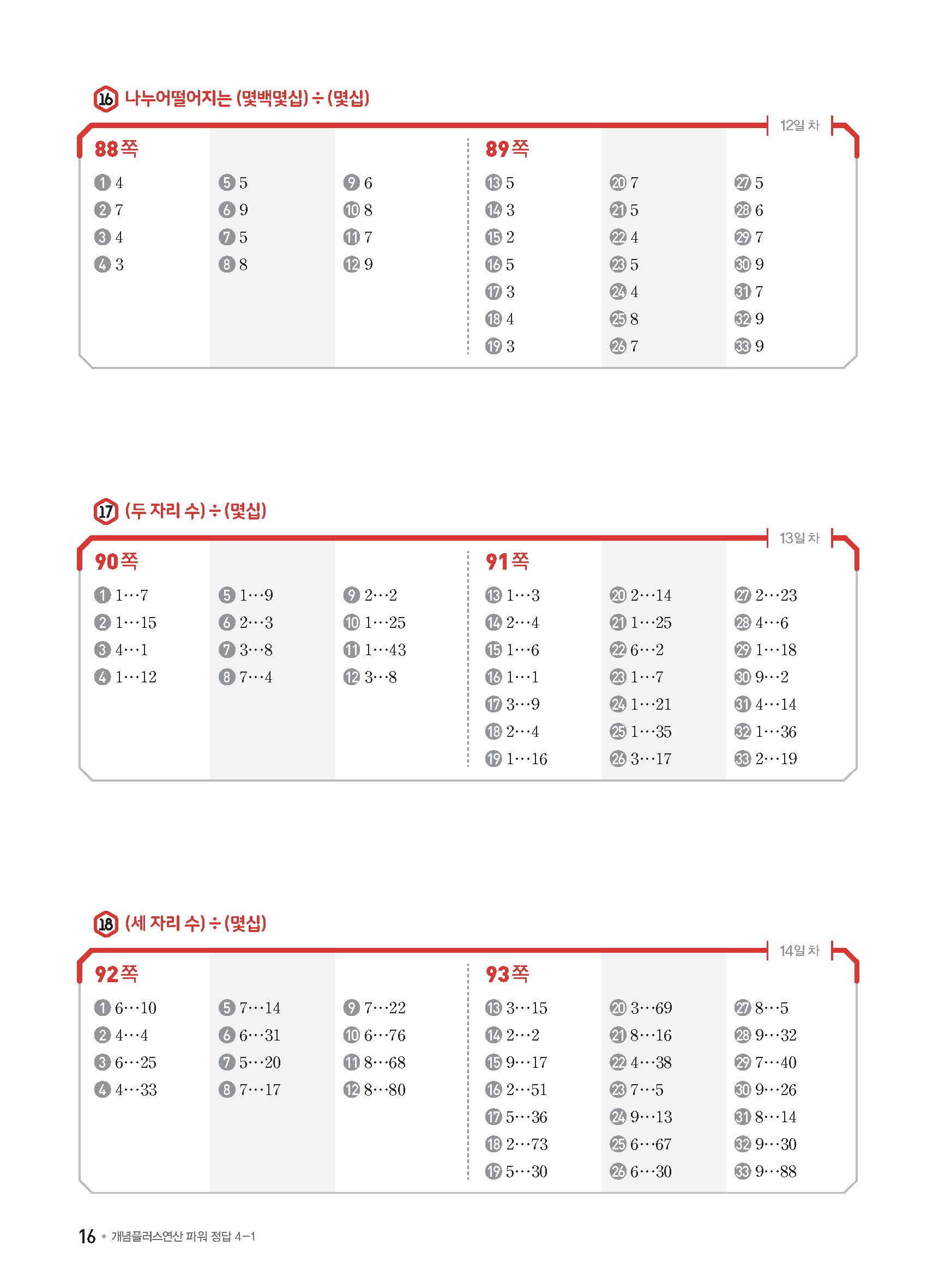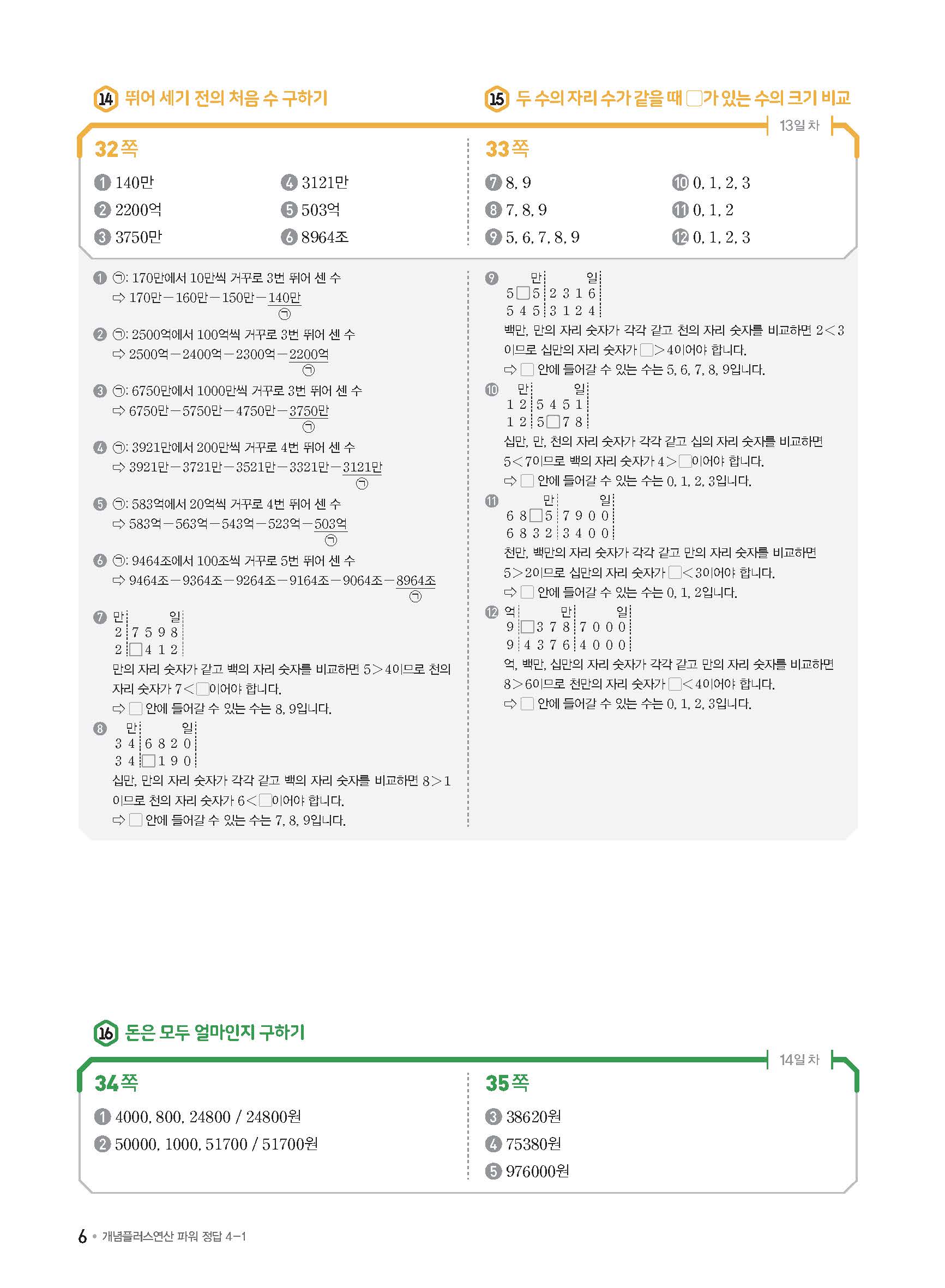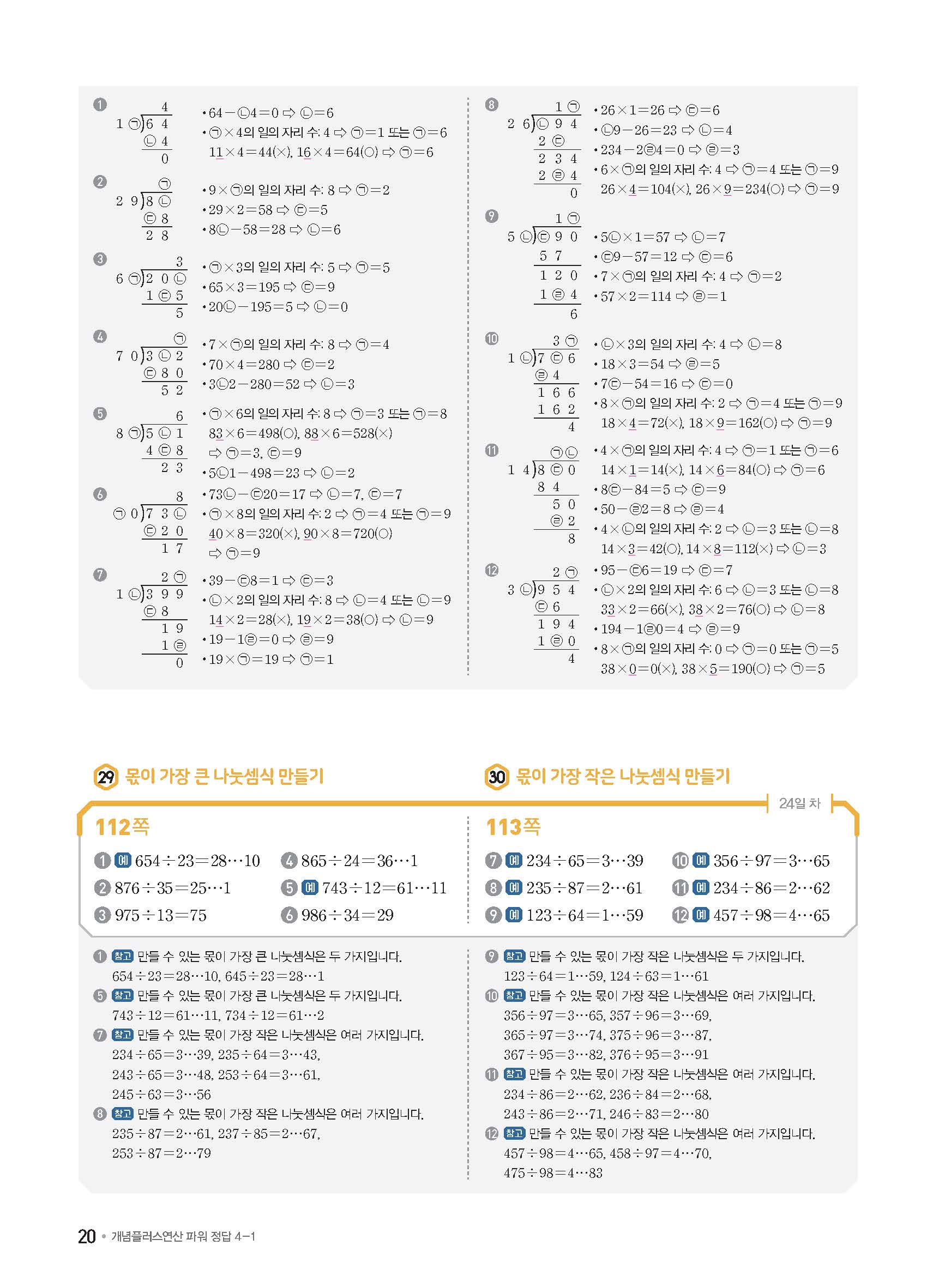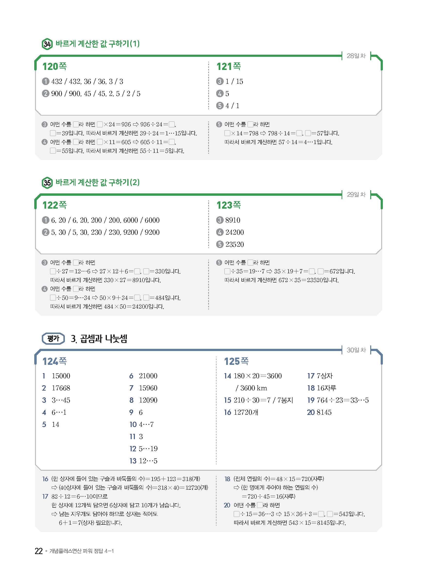 개념플러스연산 초등수학 파워 4-1 사진답지 빠른답지 모바일최적화