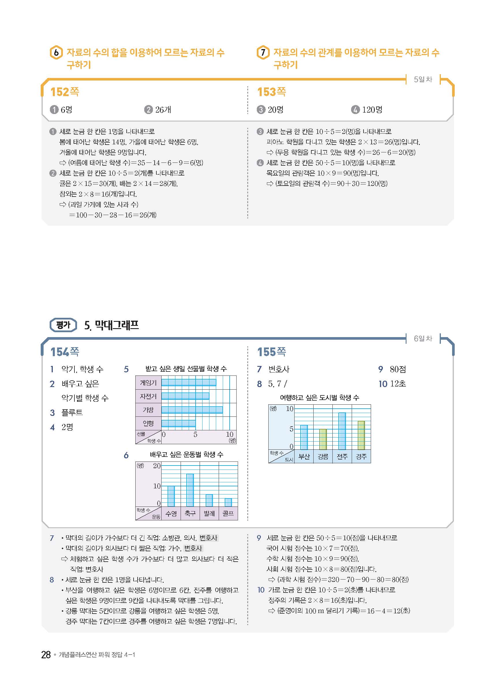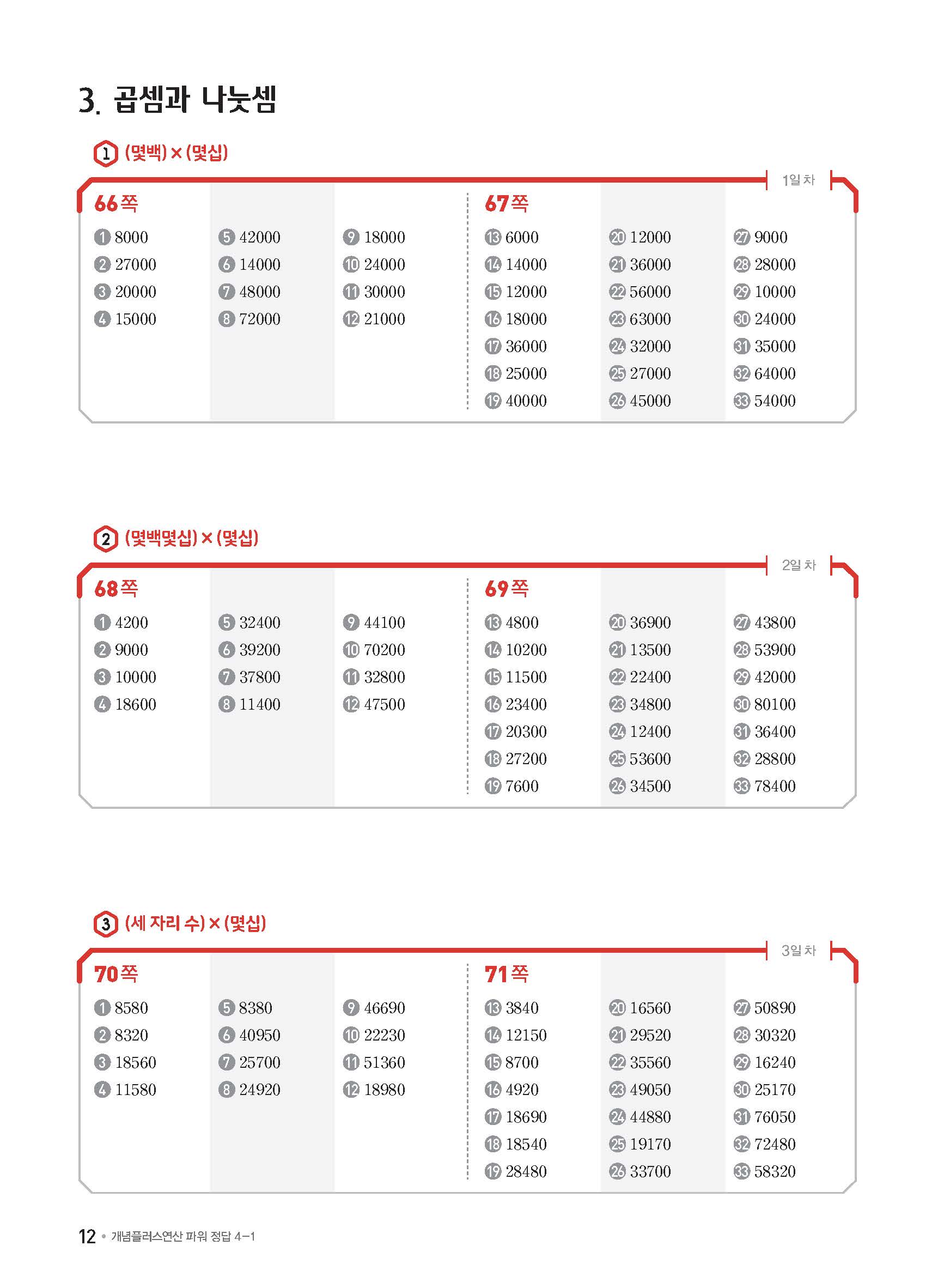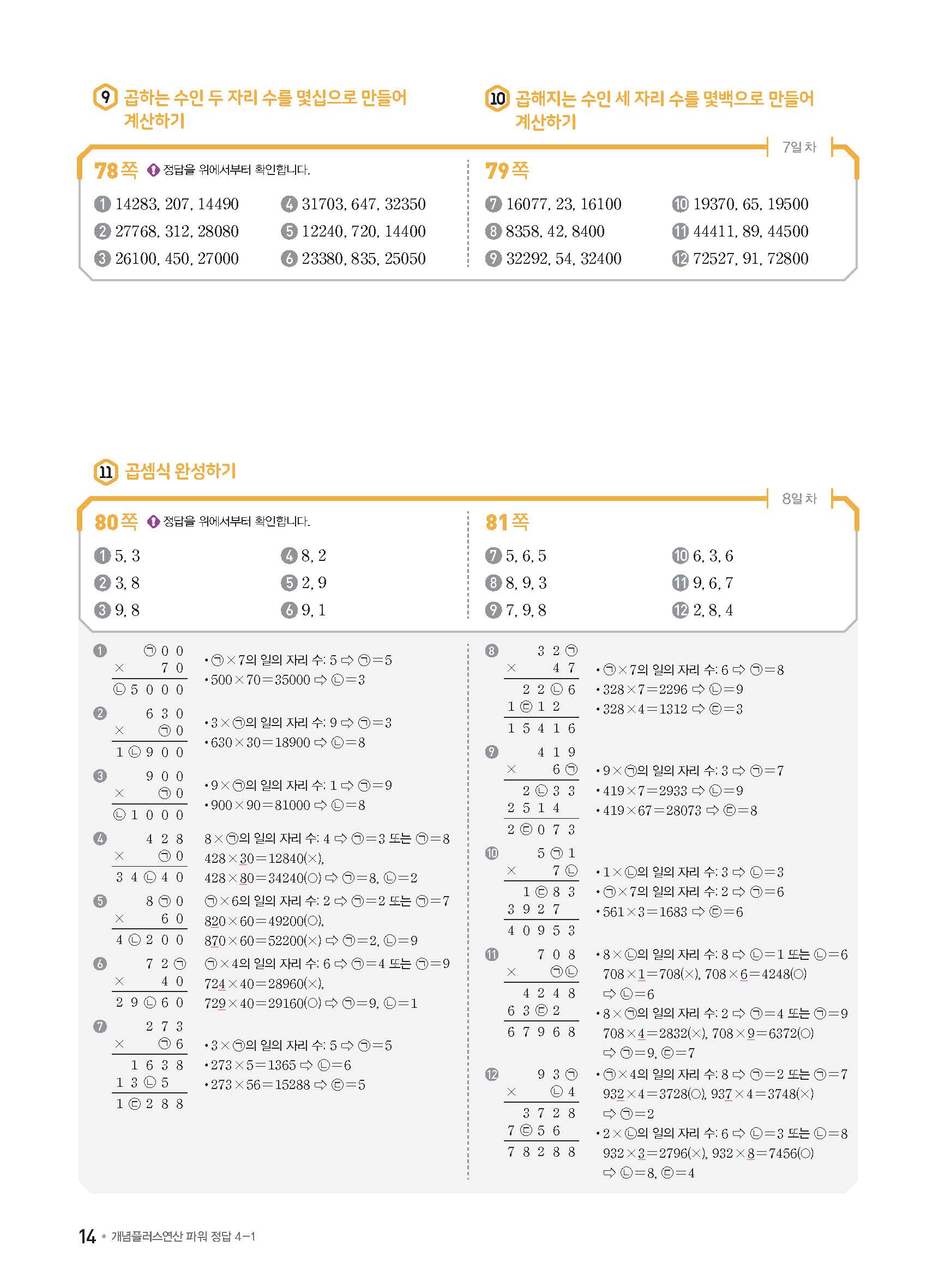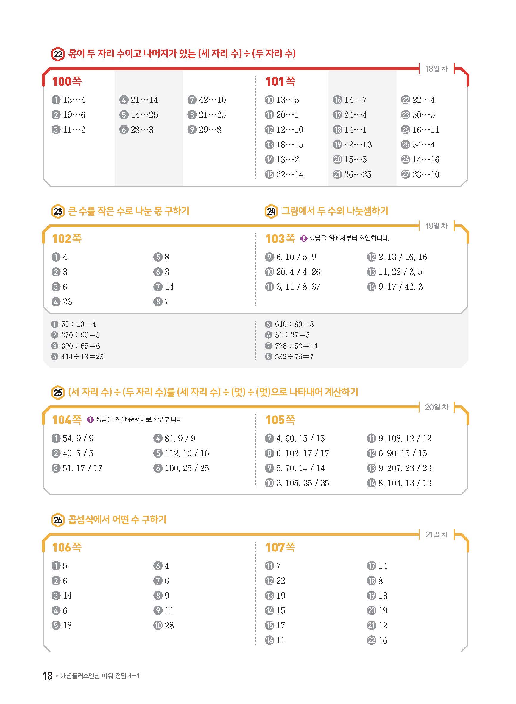 개념플러스연산 초등수학 파워 4-1 사진답지 빠른답지 모바일최적화