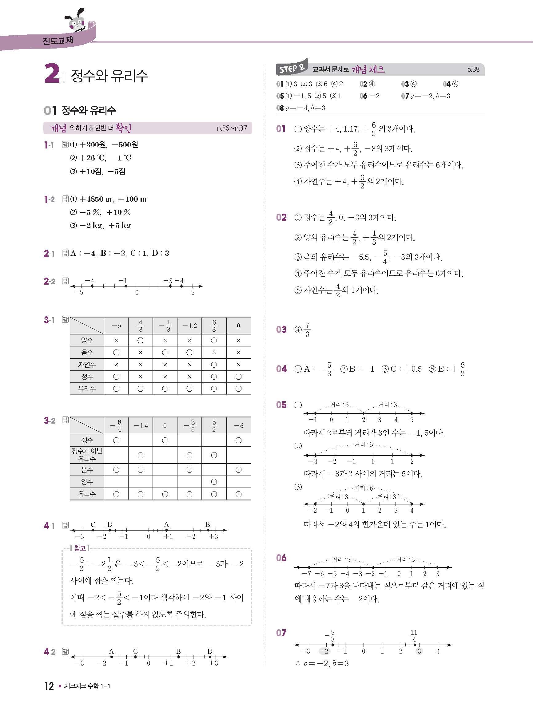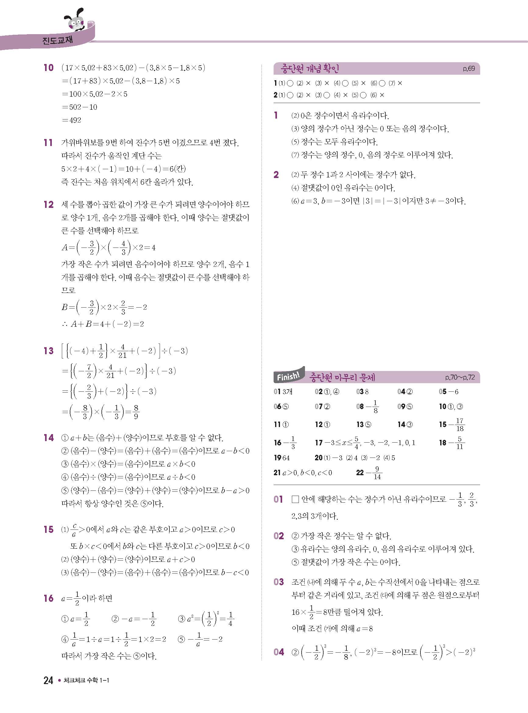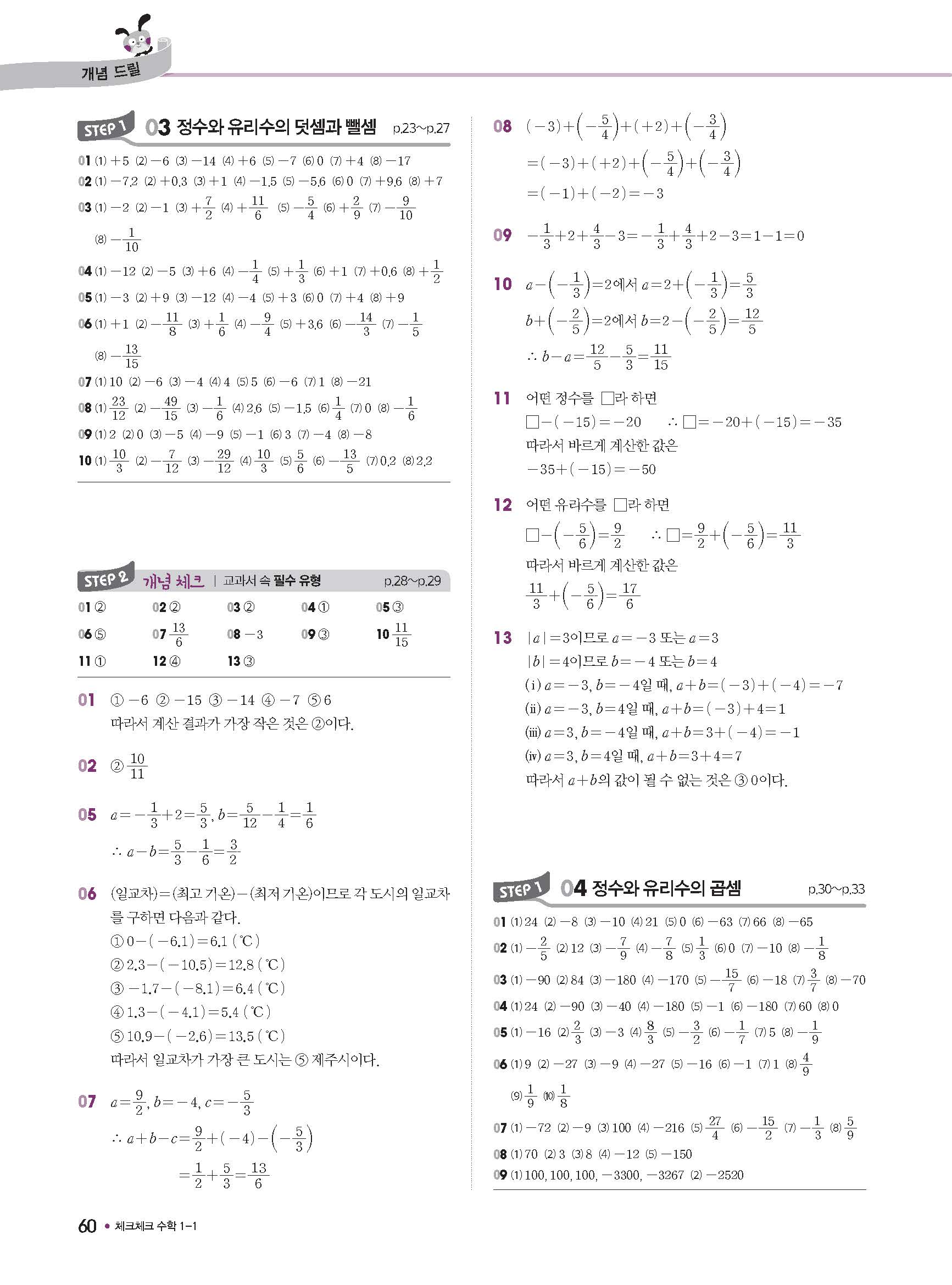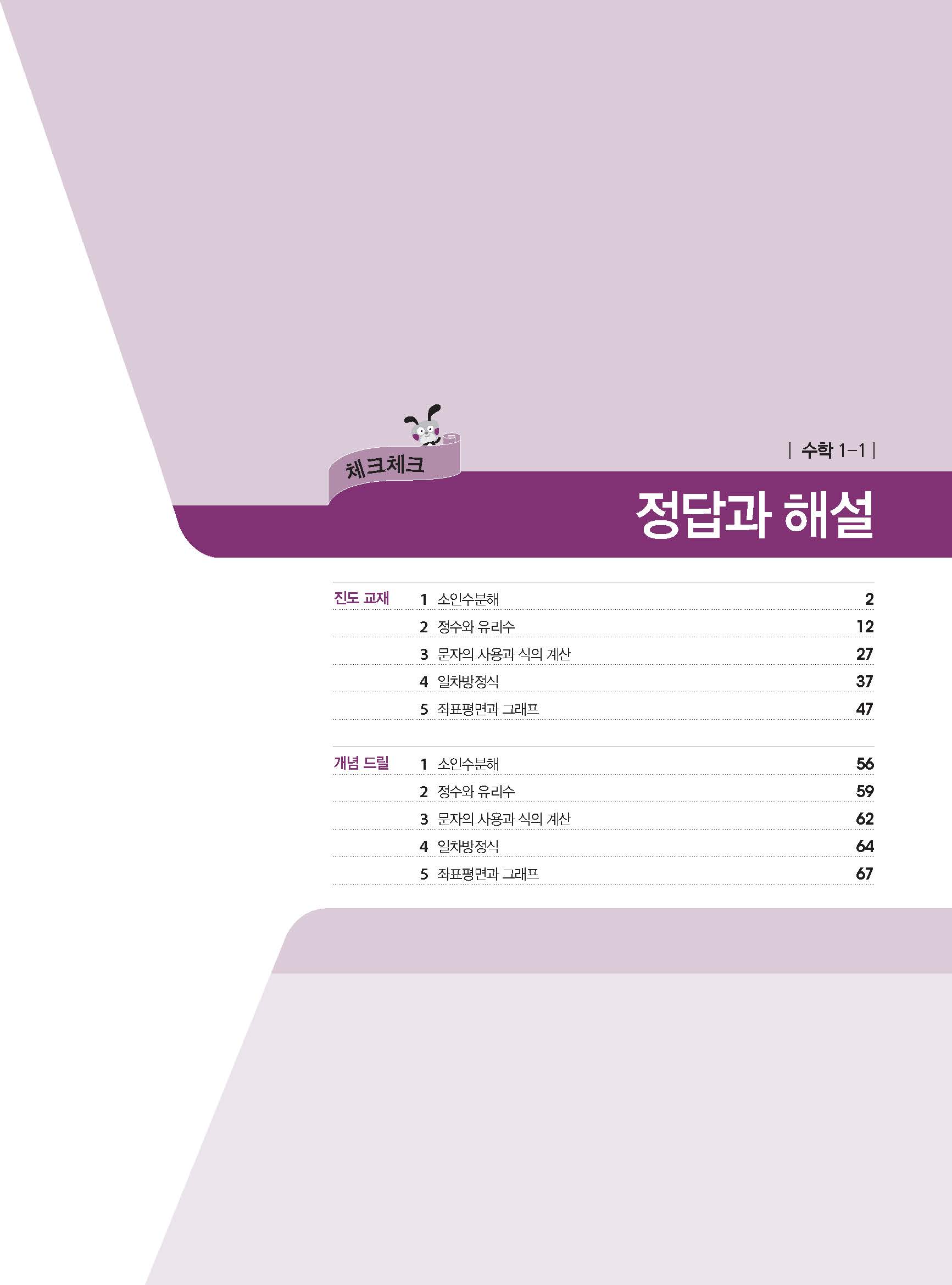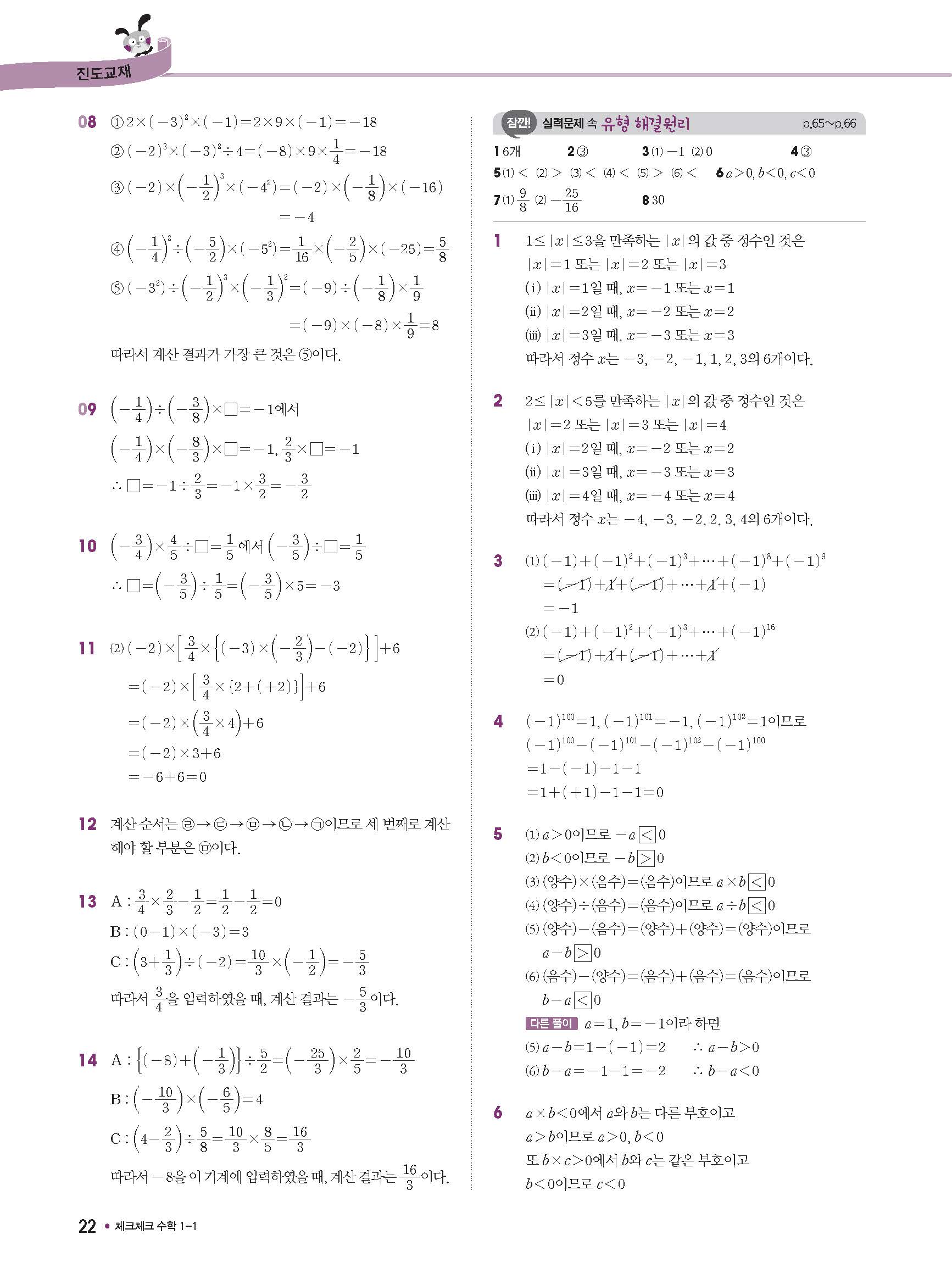 체크체크 중등수학 중1상 1-1 답지 해설 사진답지 빠른답지 모바일최적화