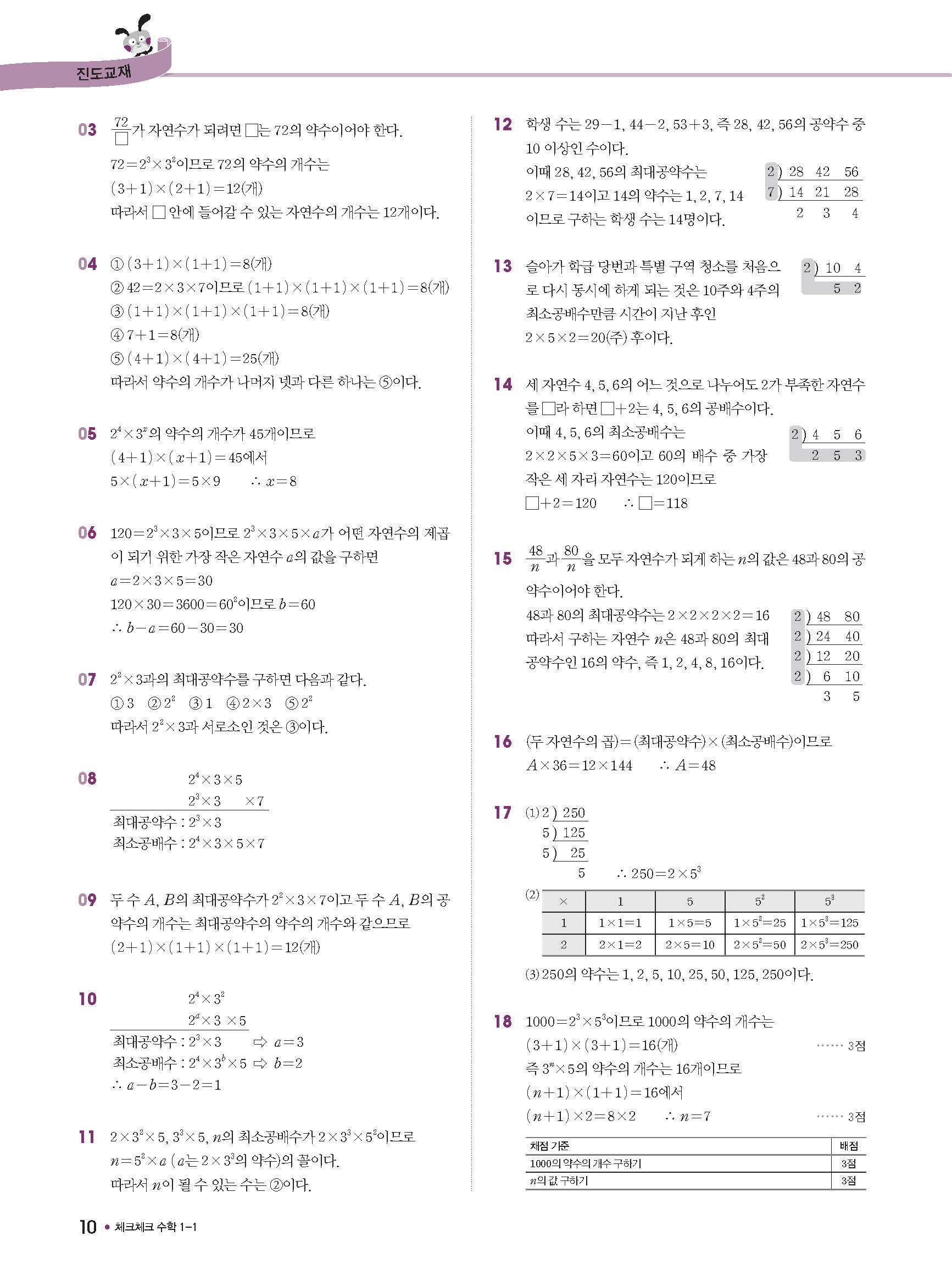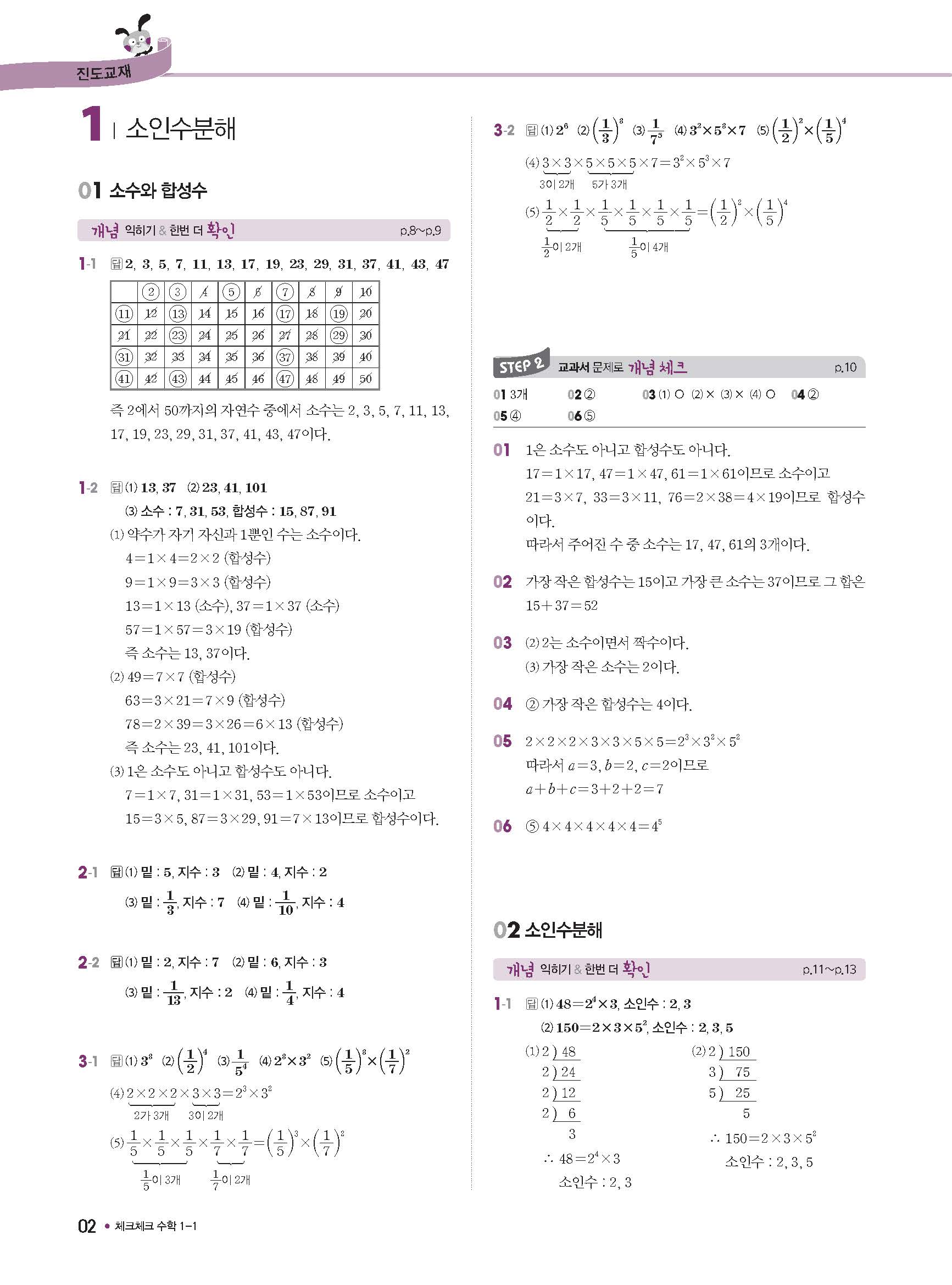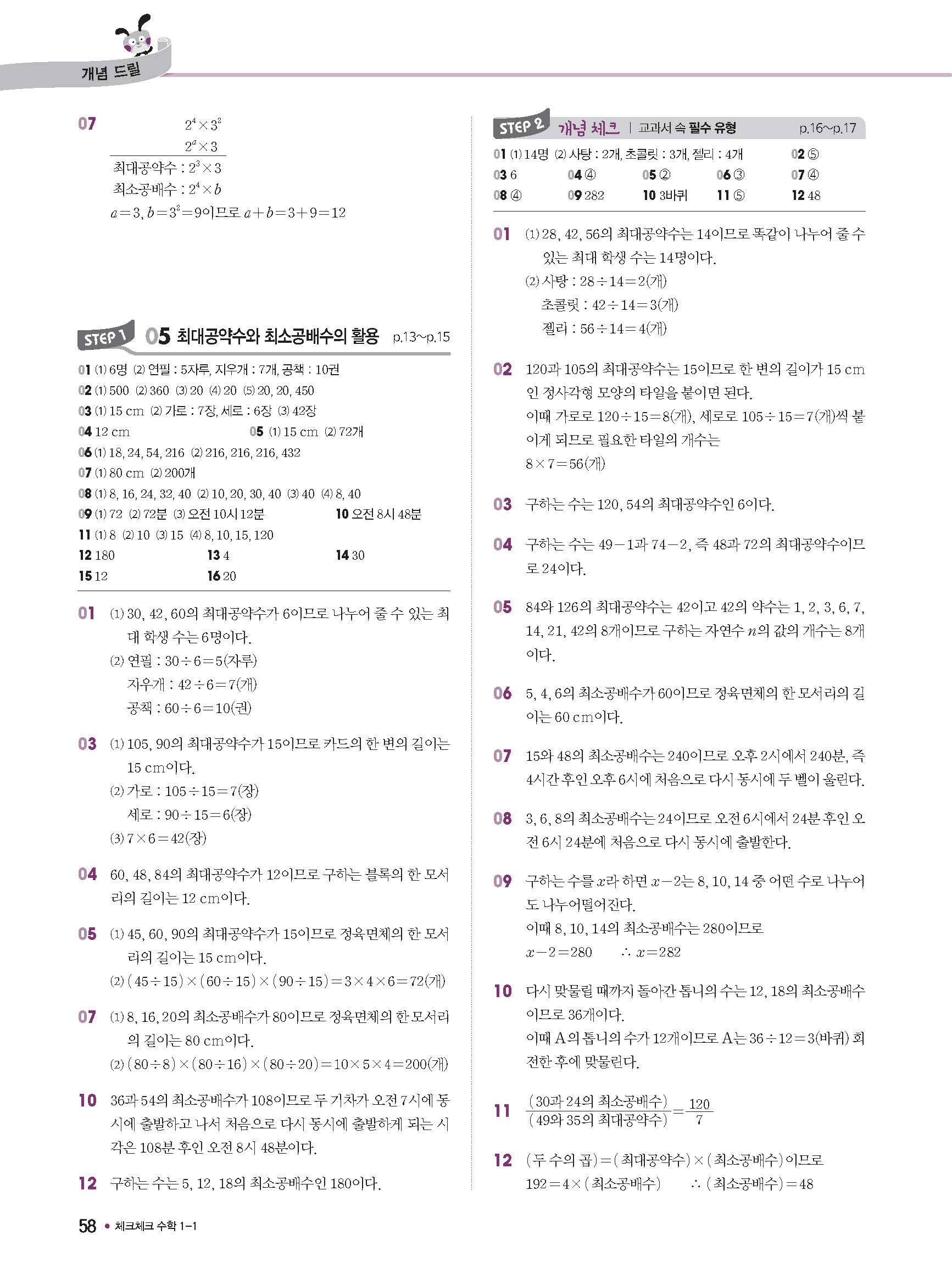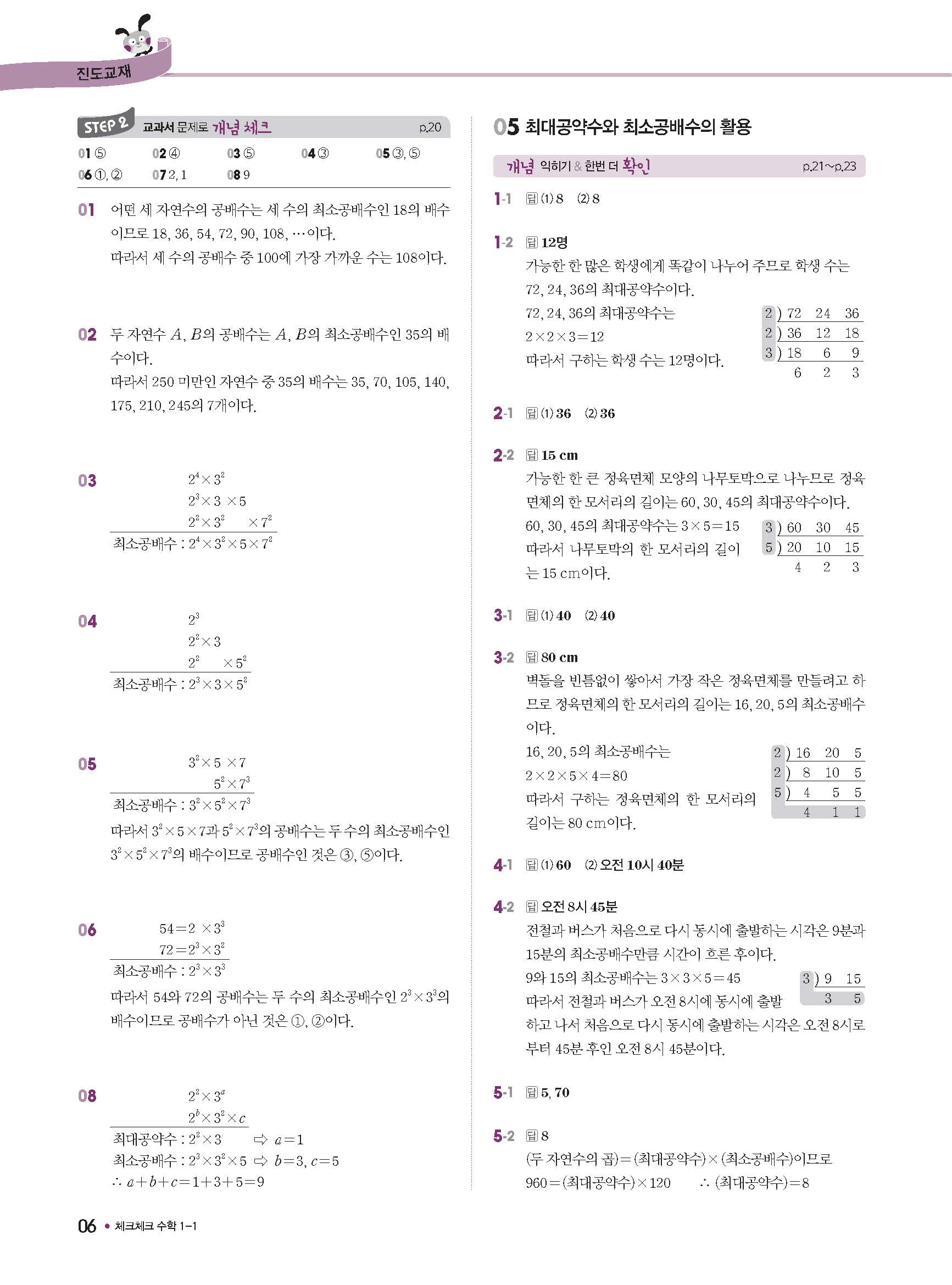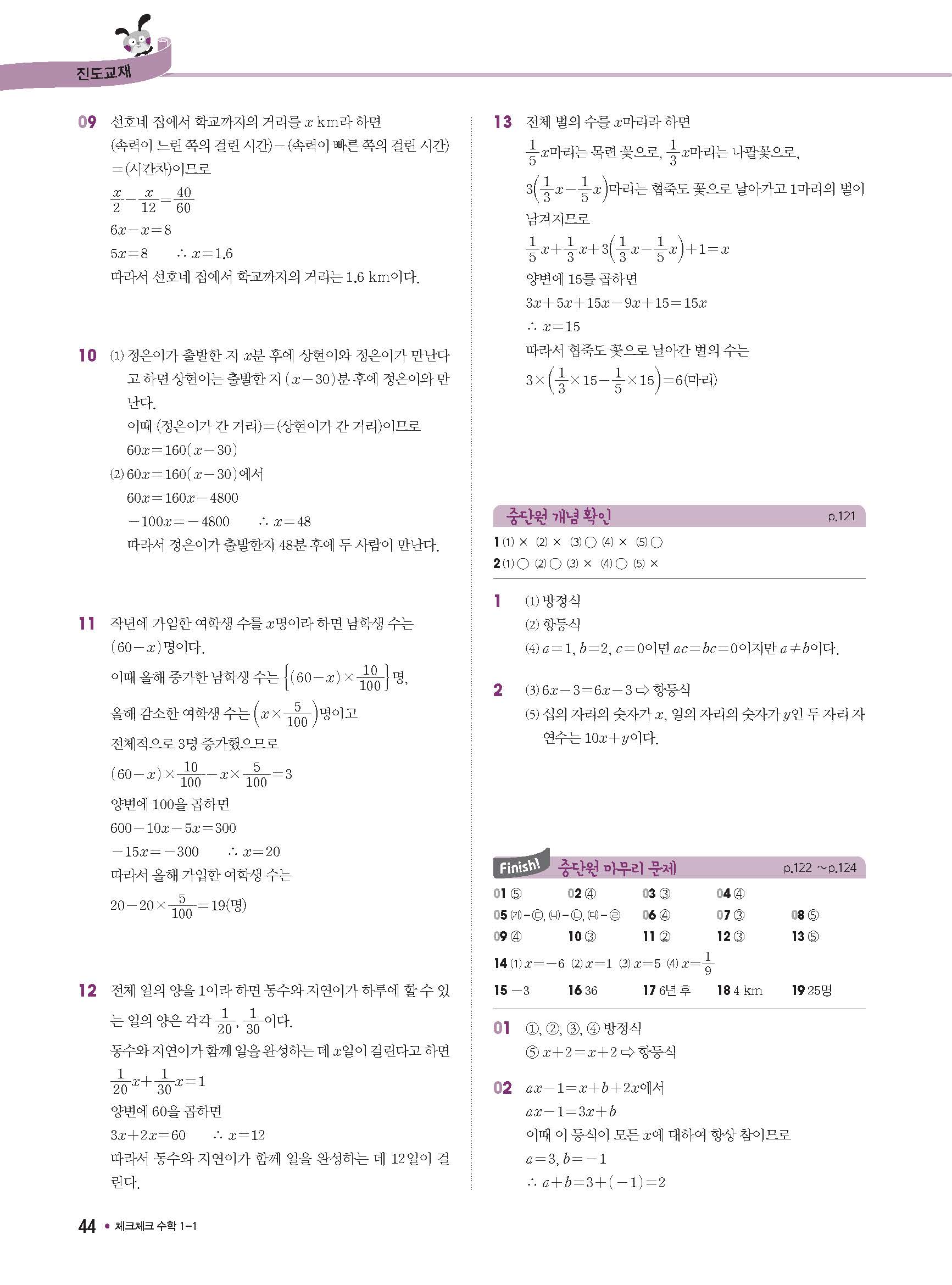 체크체크 중등수학 중1상 1-1 답지 해설 사진답지 빠른답지 모바일최적화