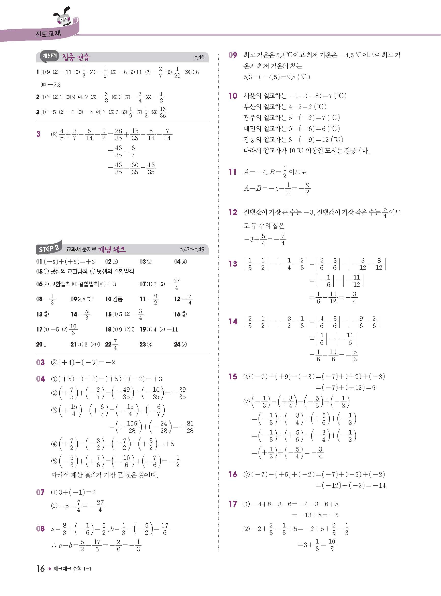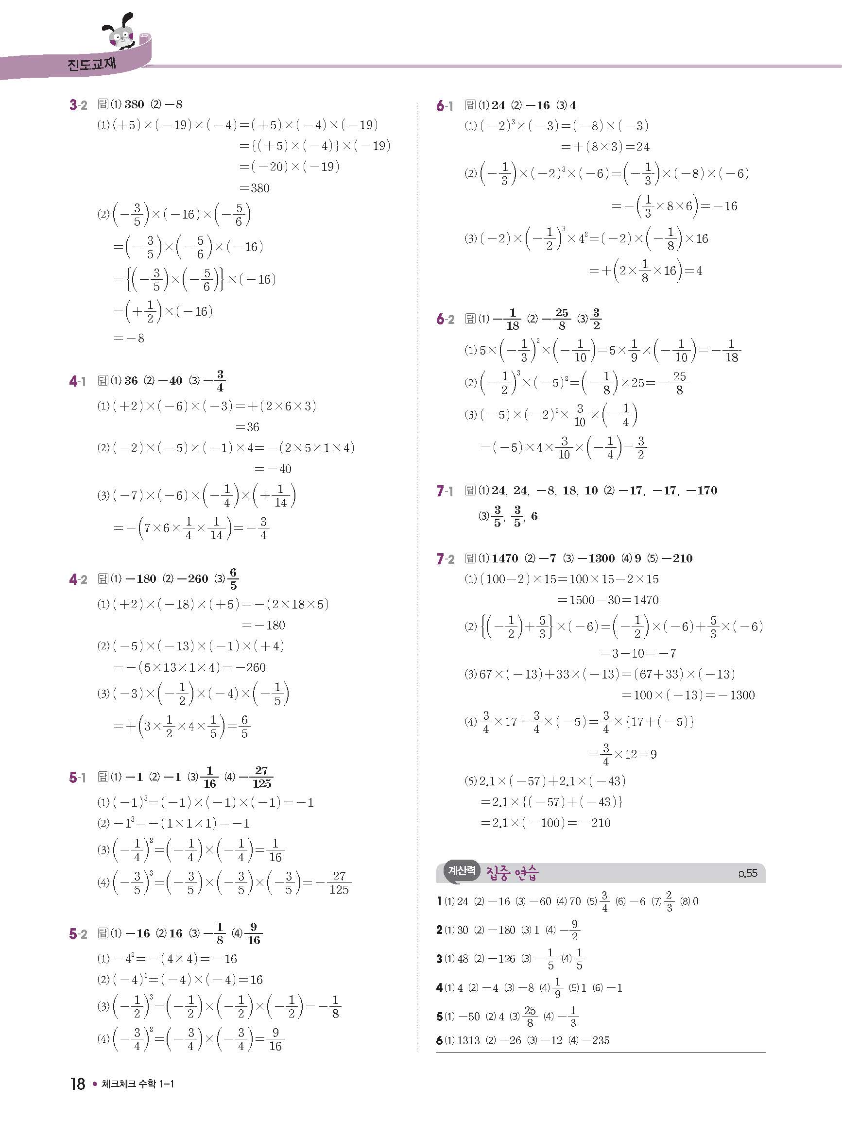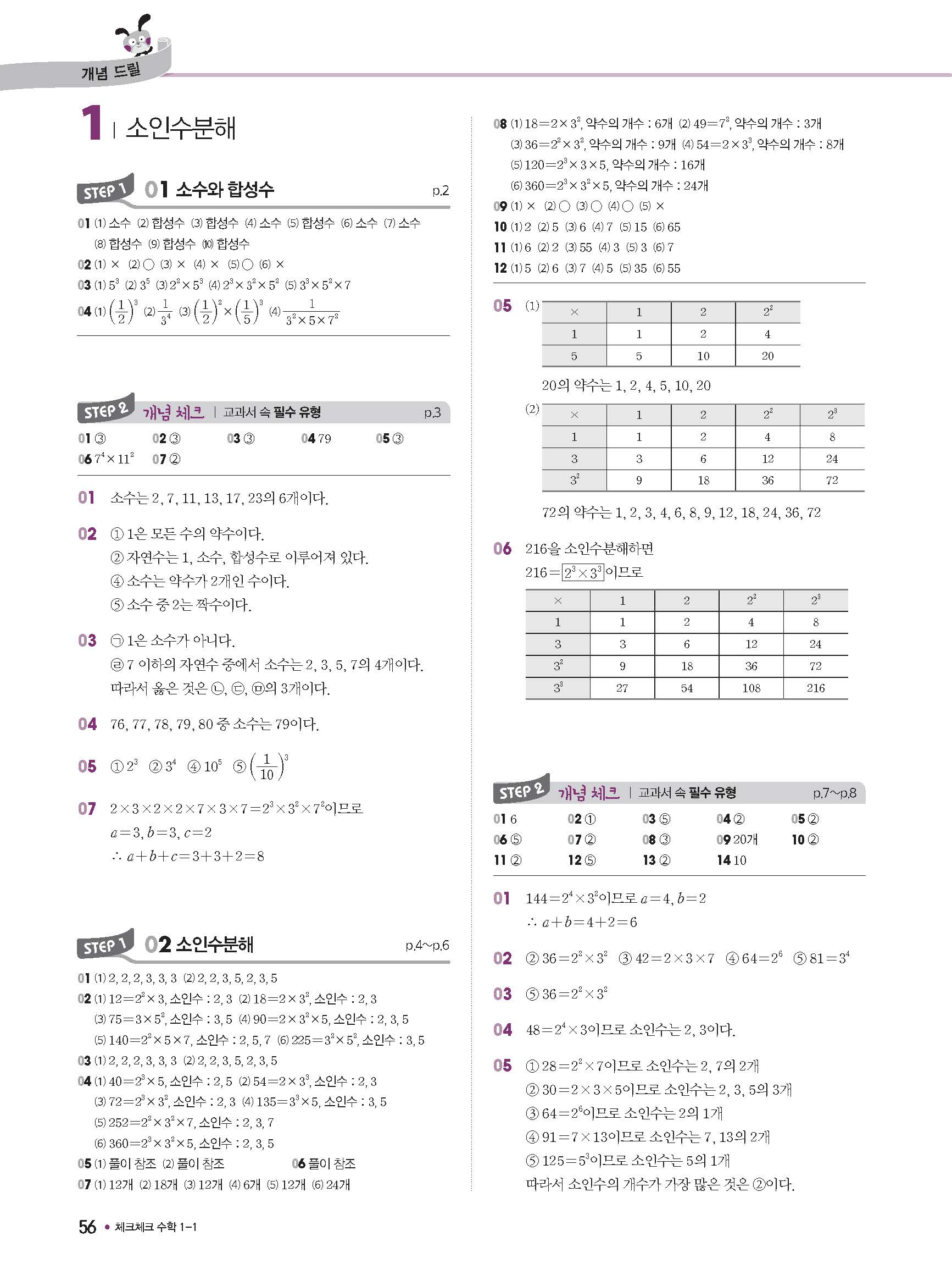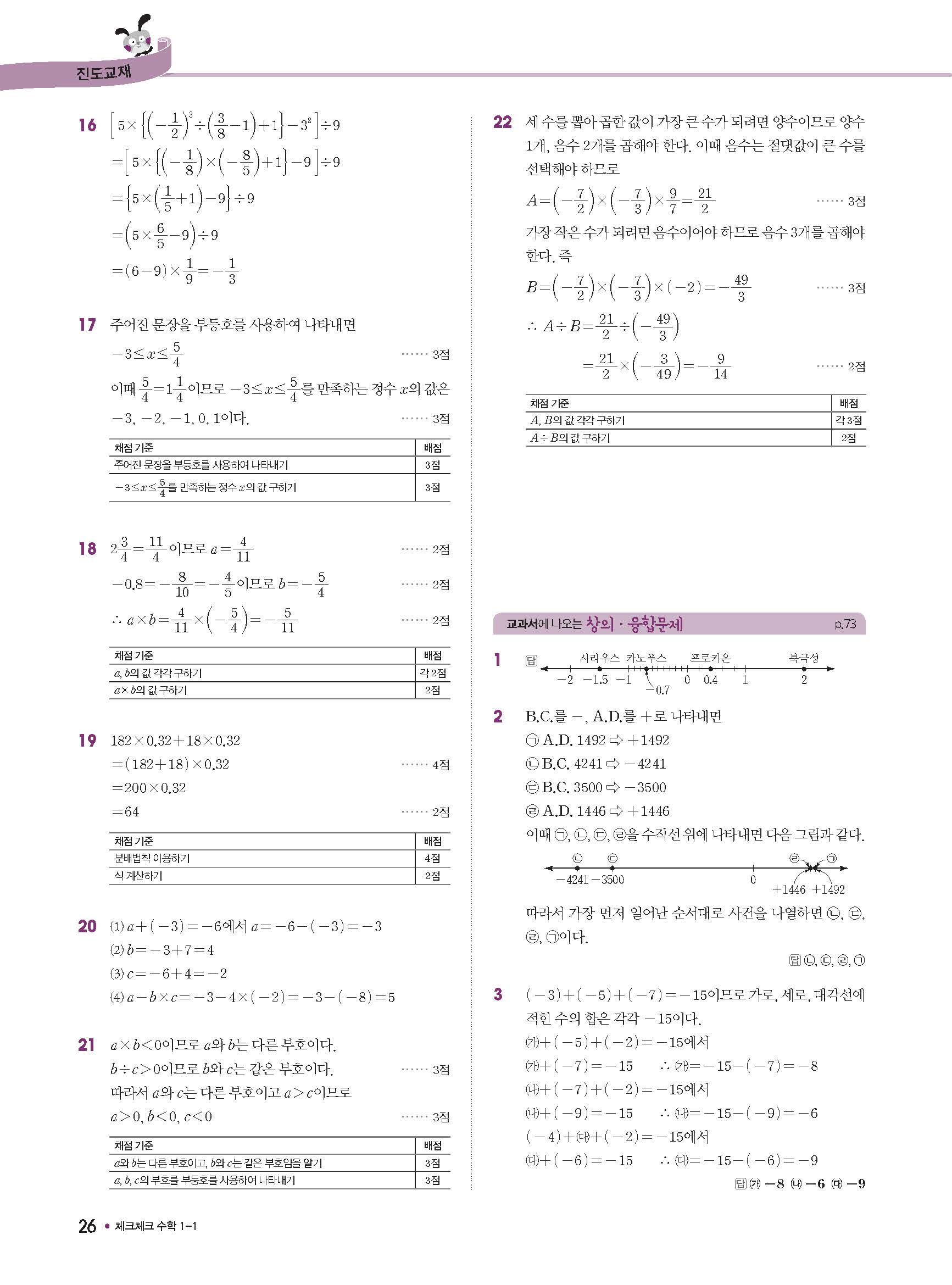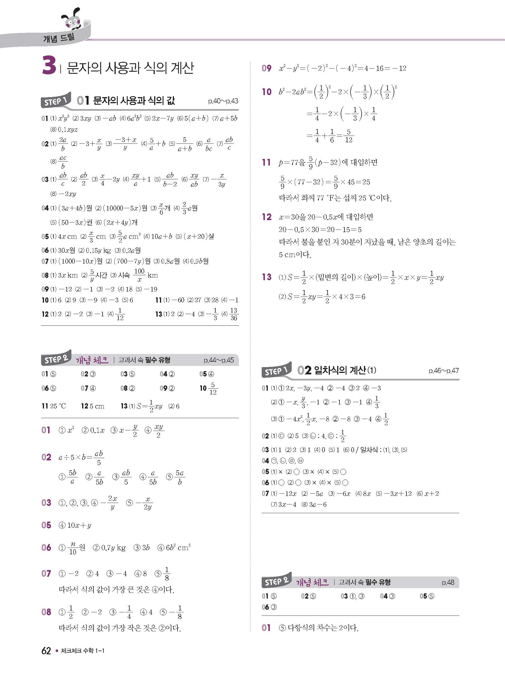 체크체크 중등수학 중1상 1-1 답지 해설 사진답지 빠른답지 모바일최적화