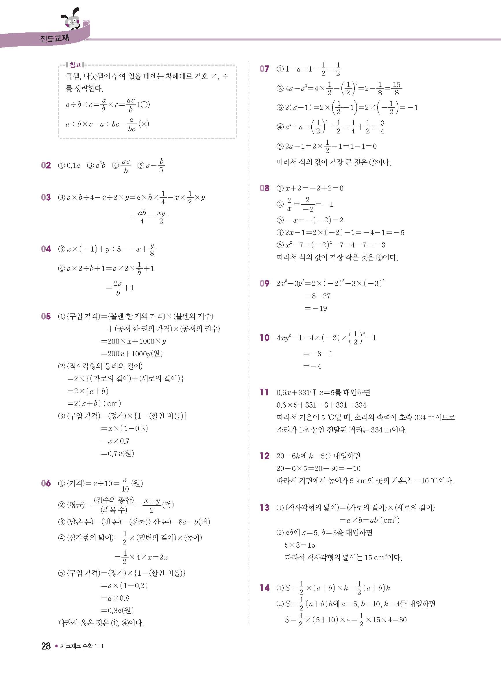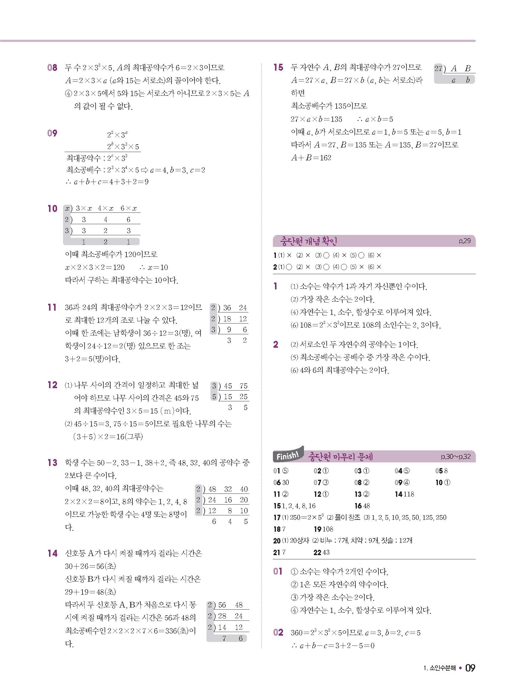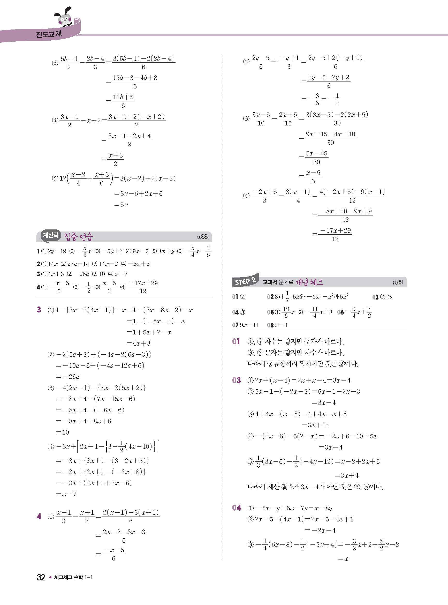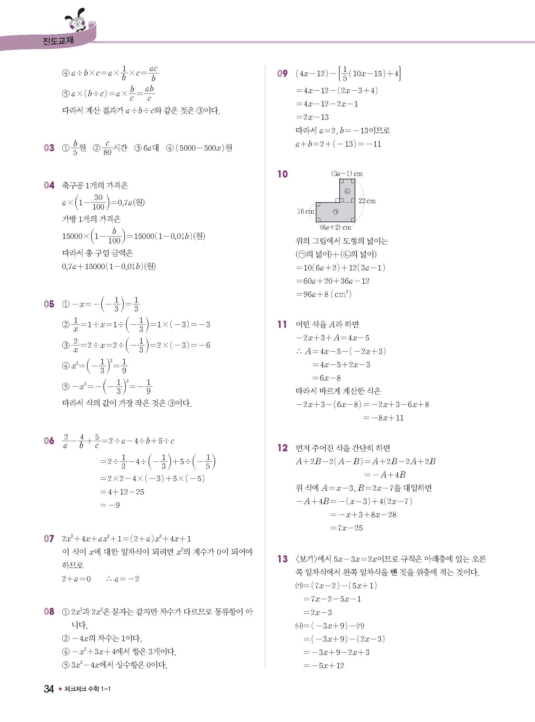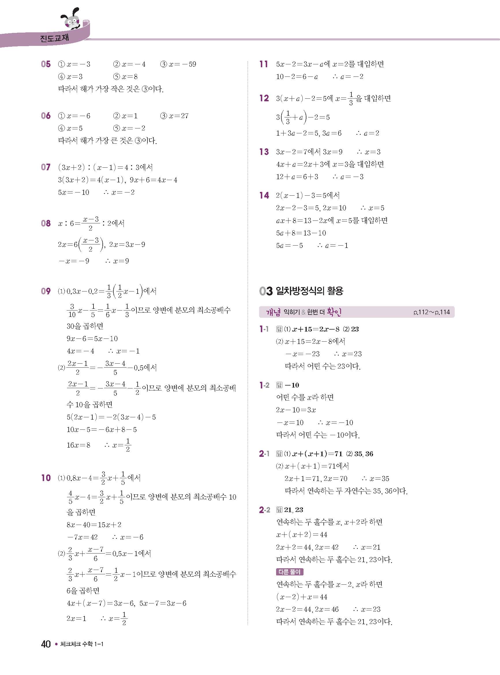 체크체크 중등수학 중1상 1-1 답지 해설 사진답지 빠른답지 모바일최적화