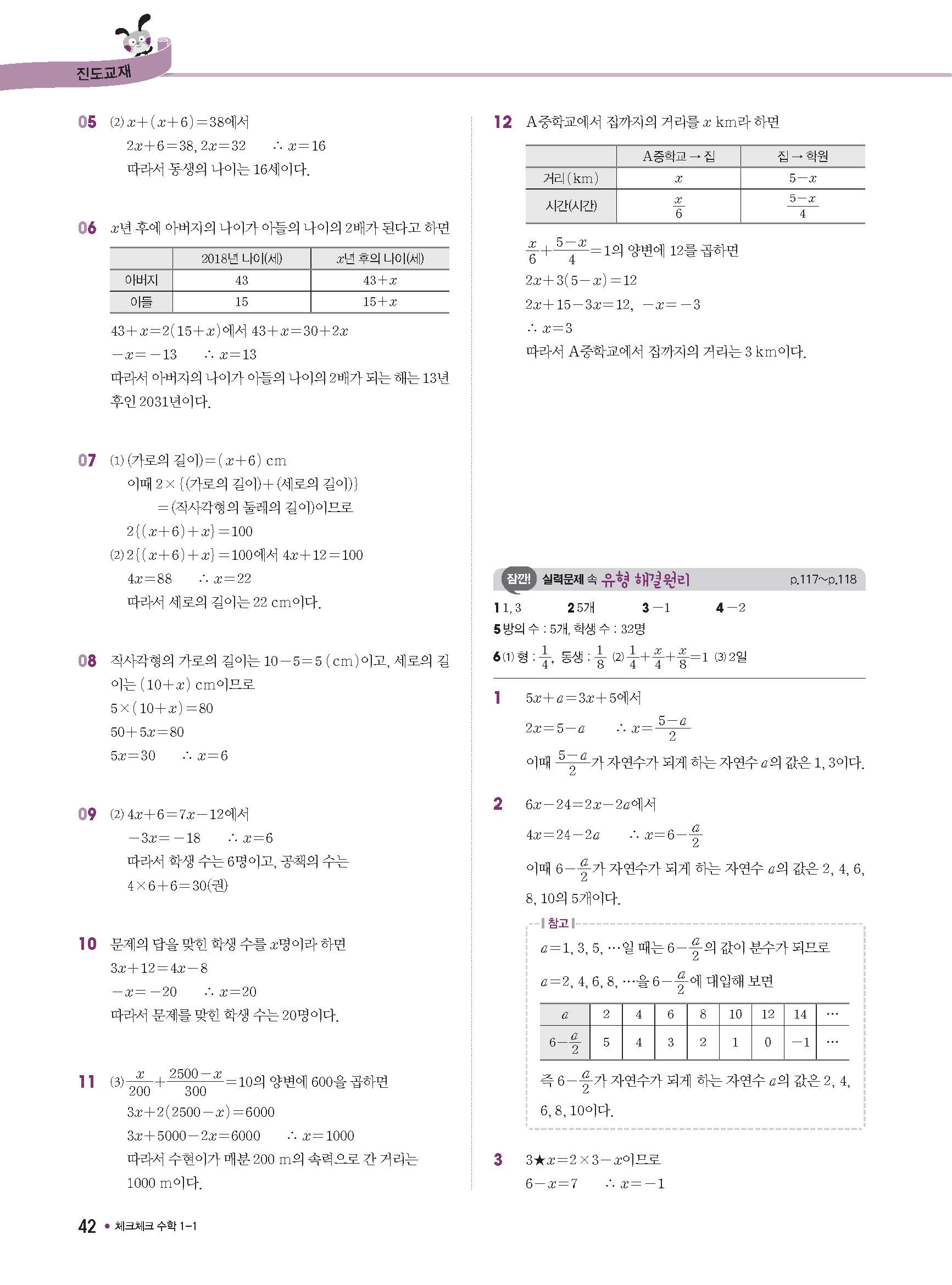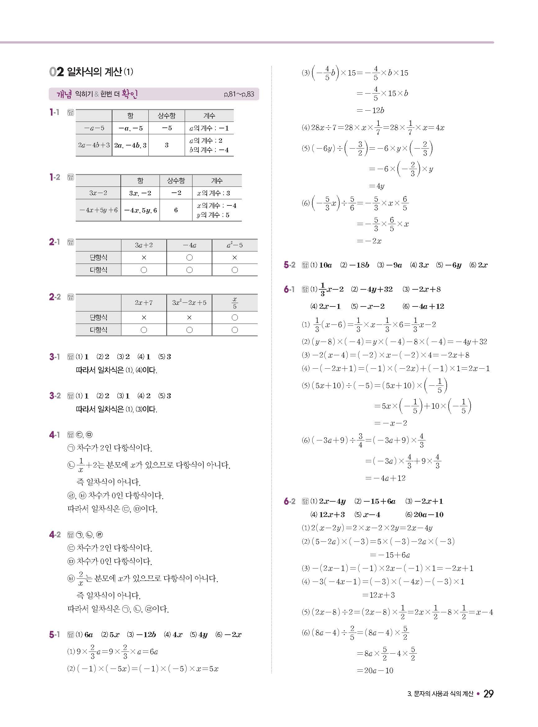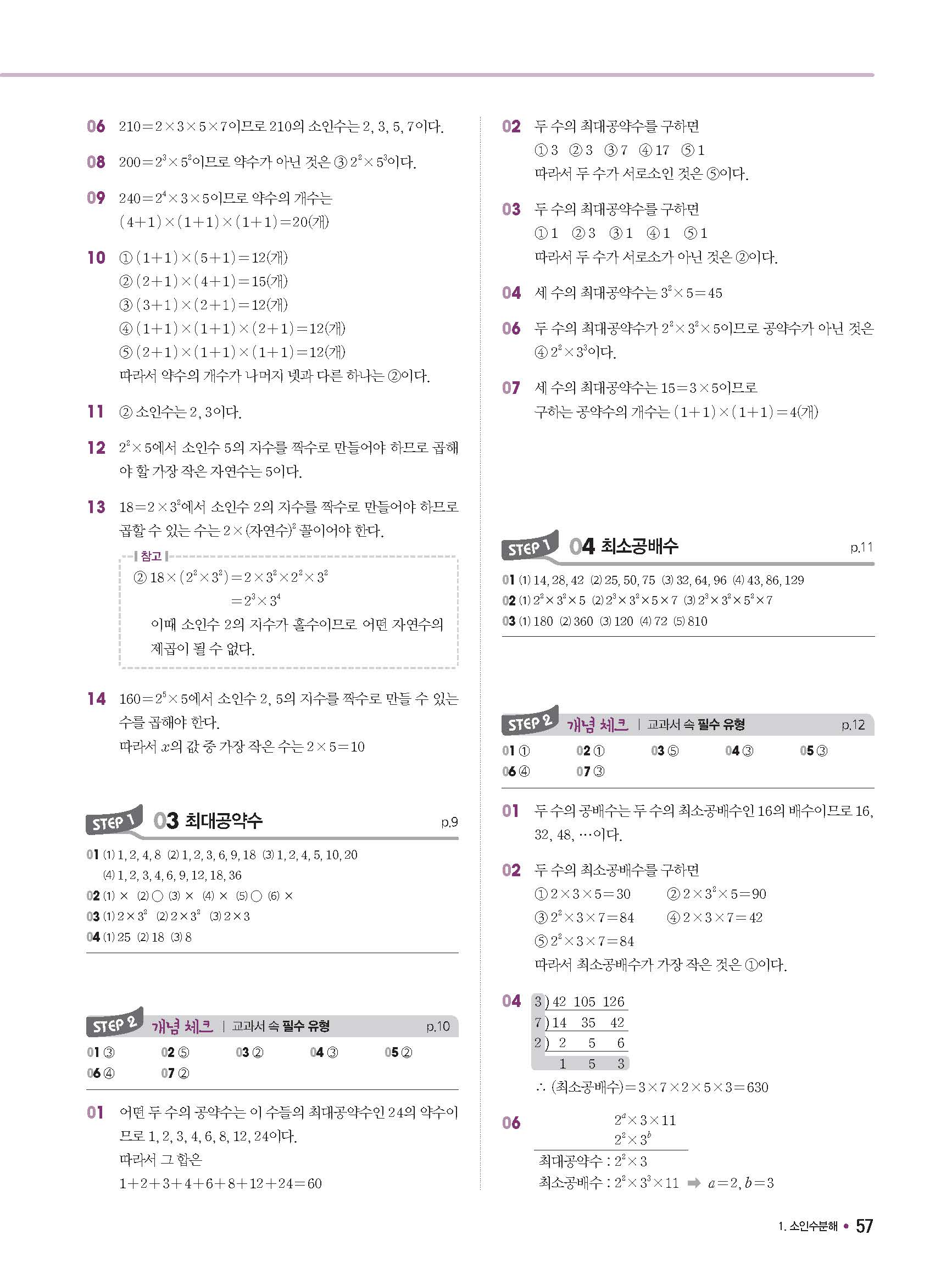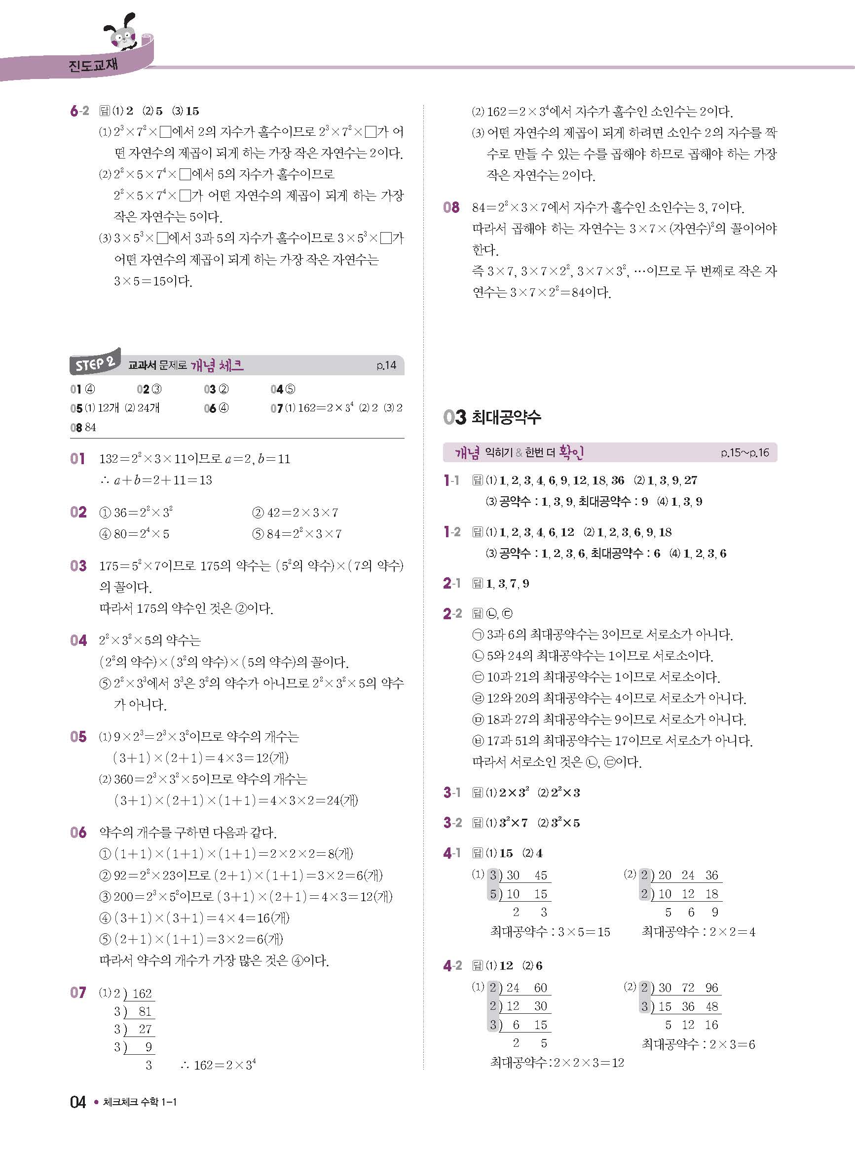 체크체크 중등수학 중1상 1-1 답지 해설 사진답지 빠른답지 모바일최적화