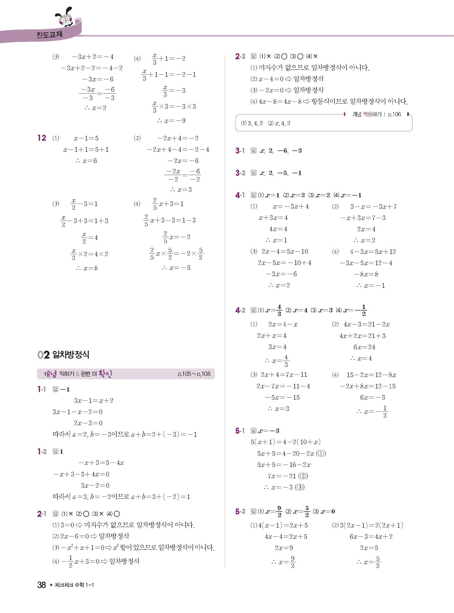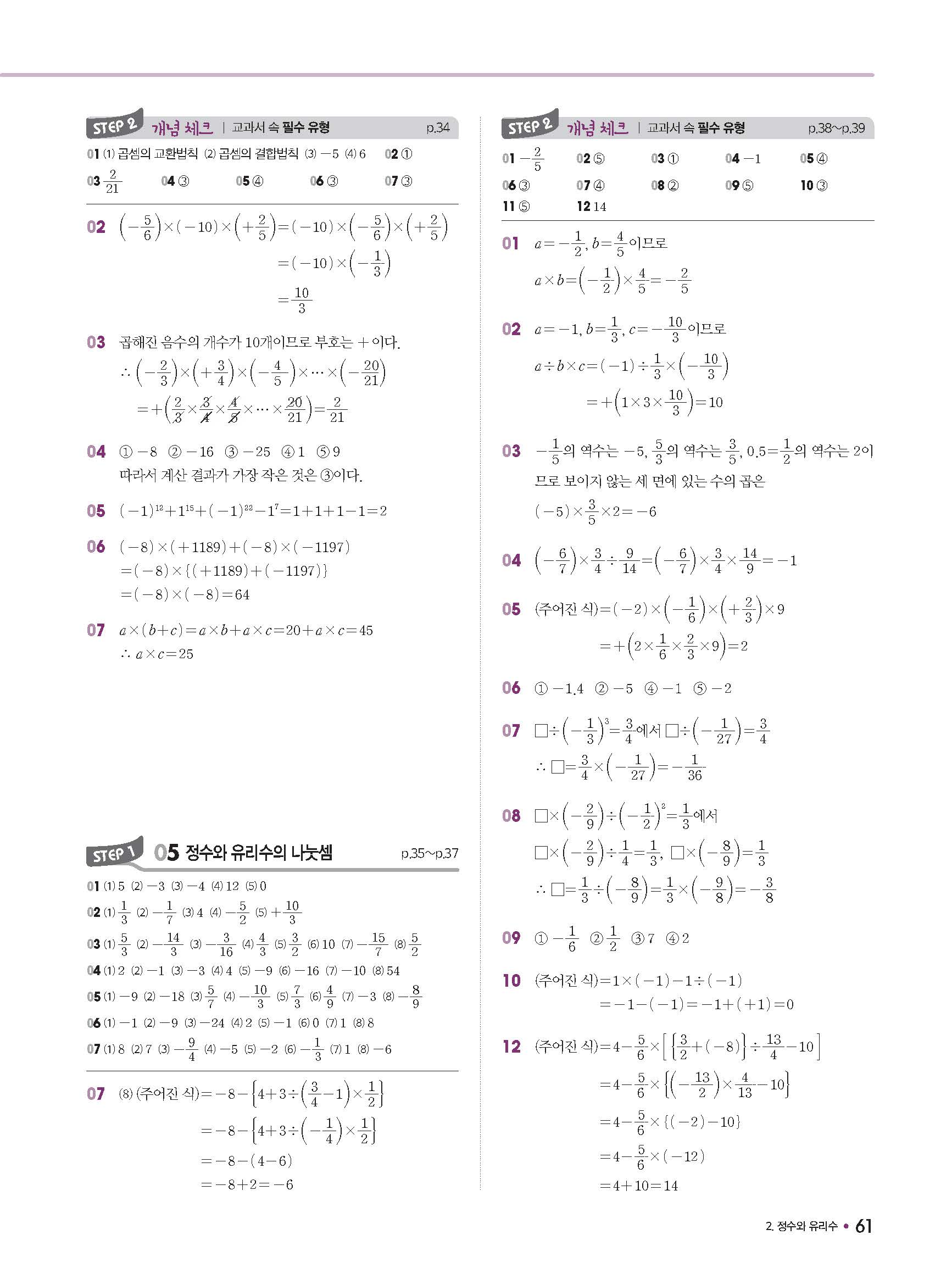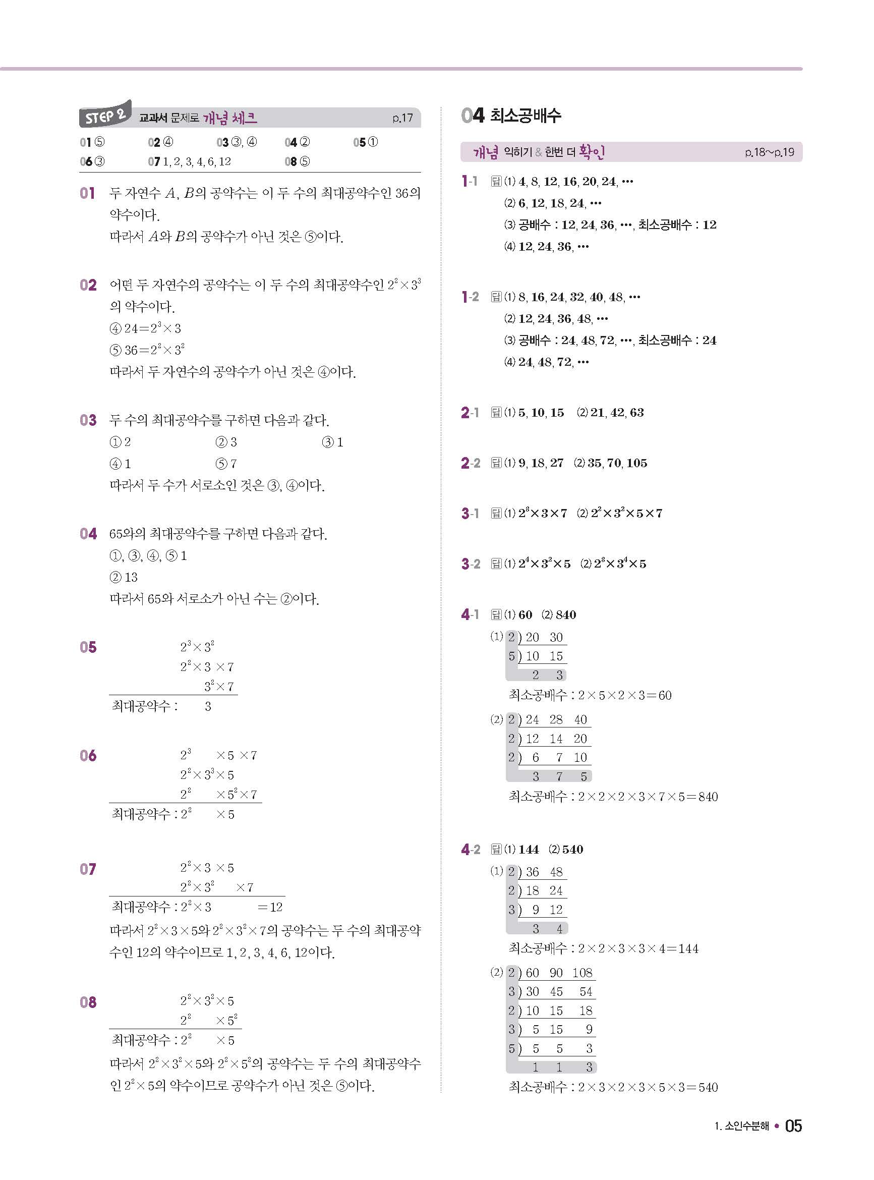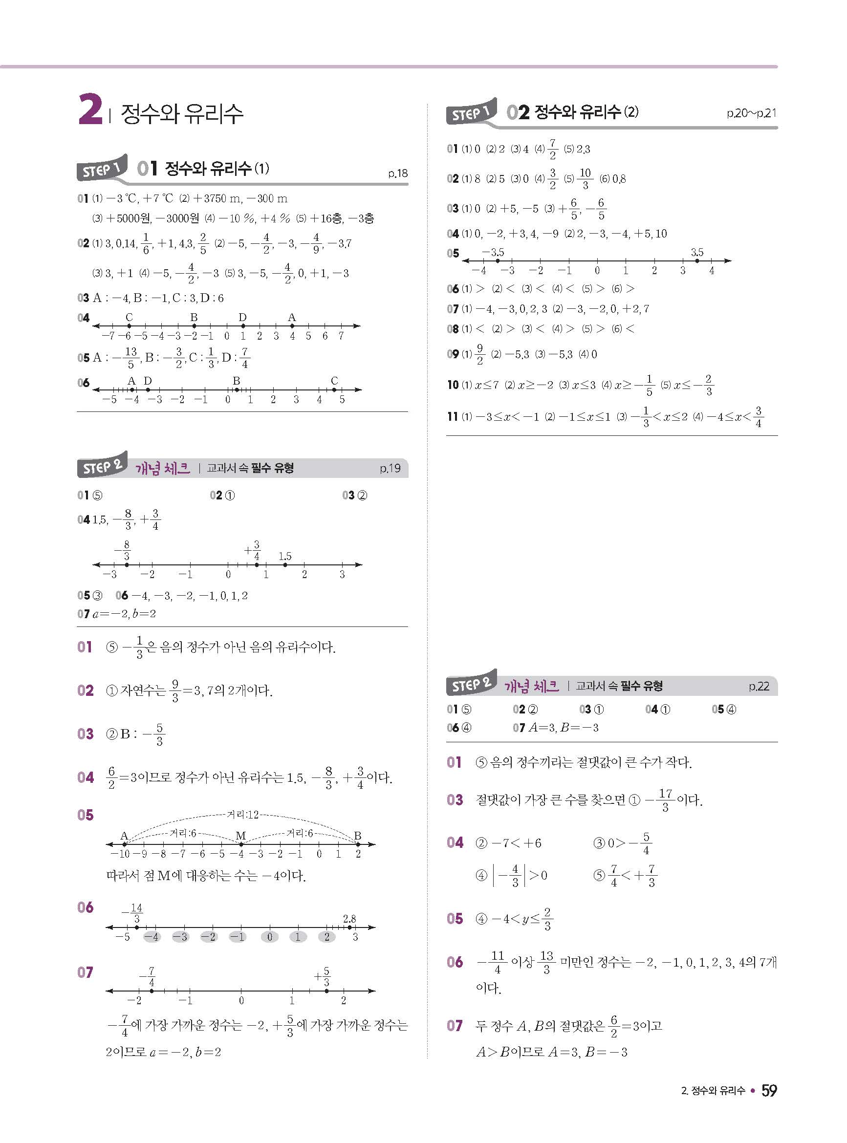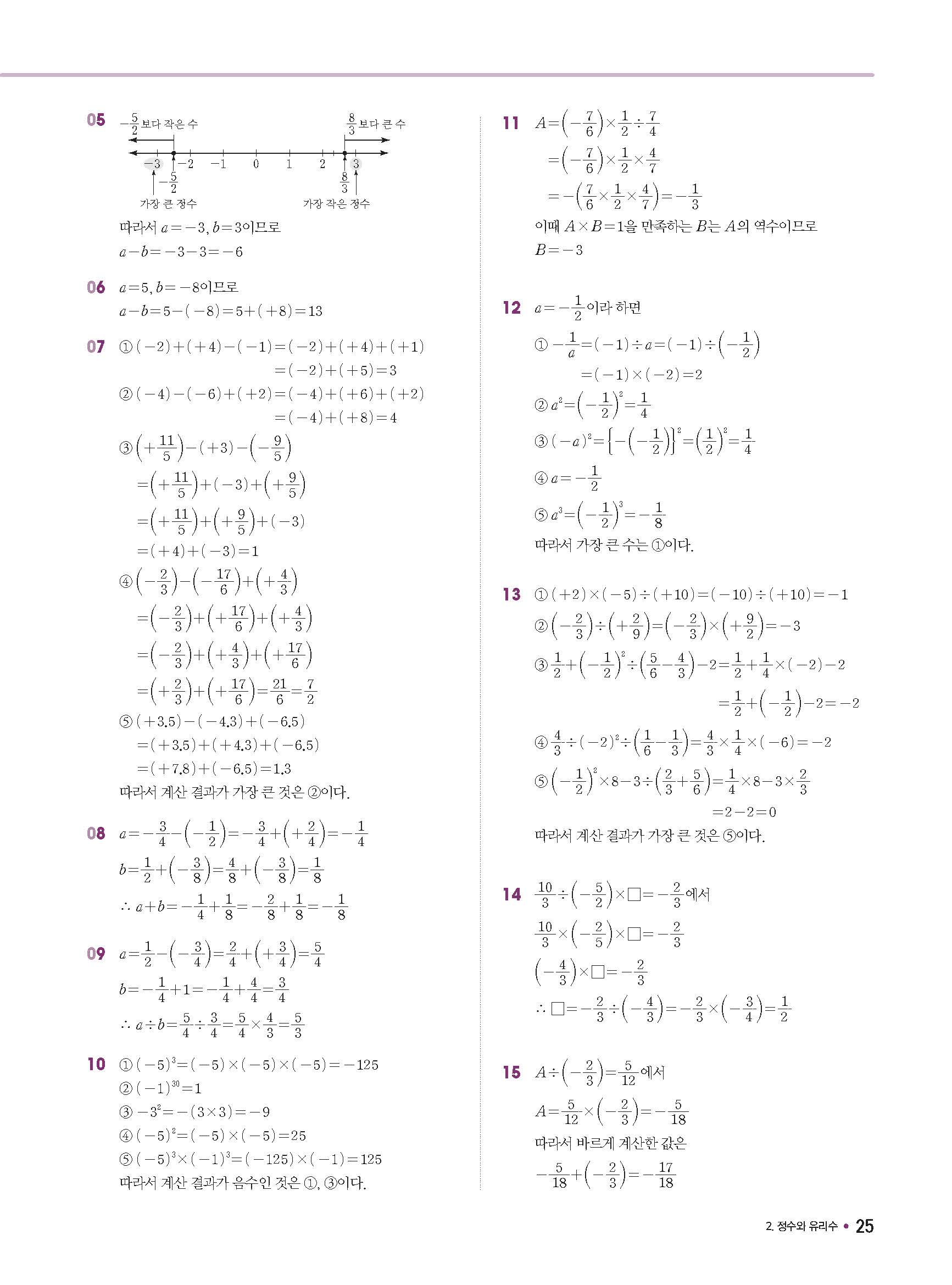 체크체크 중등수학 중1상 1-1 답지 해설 사진답지 빠른답지 모바일최적화