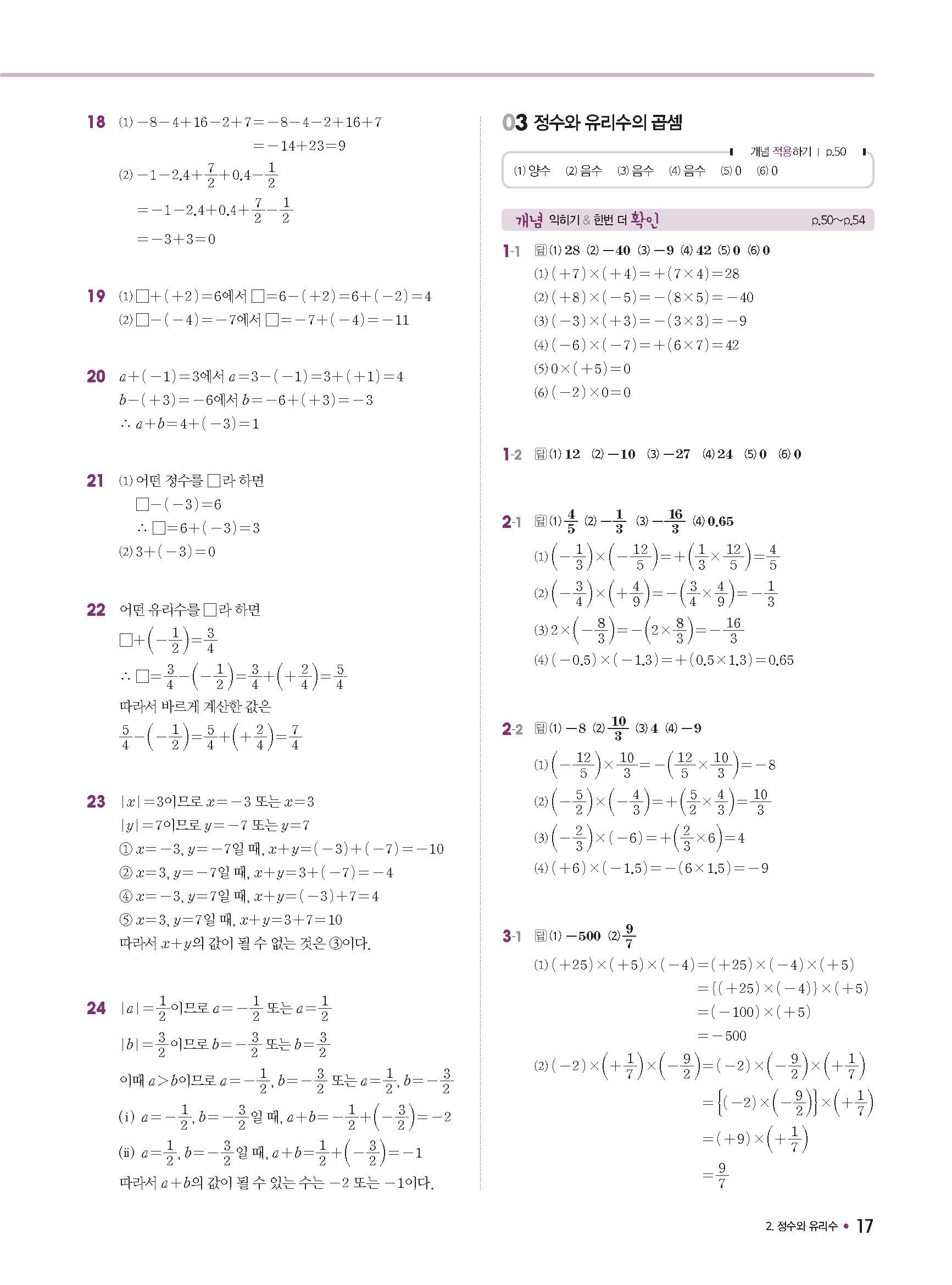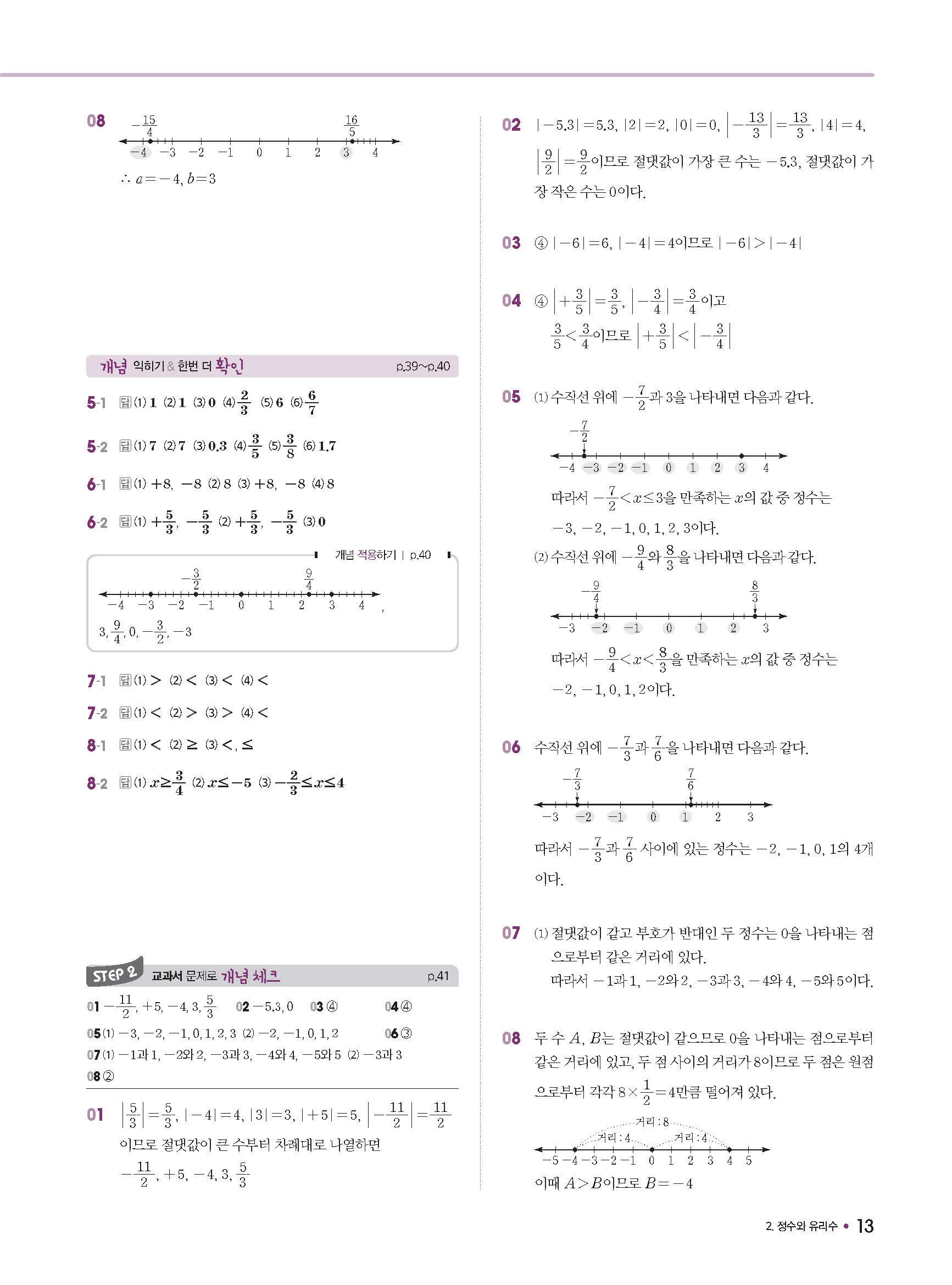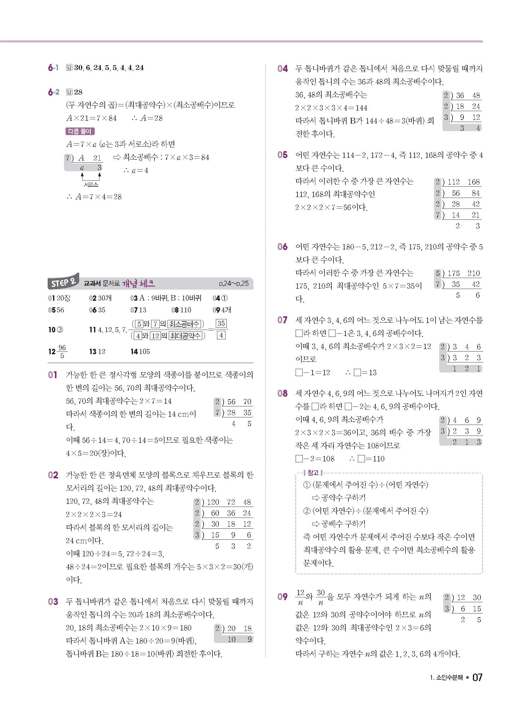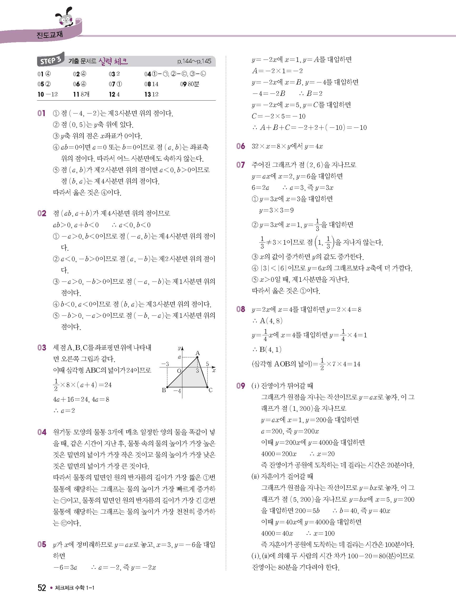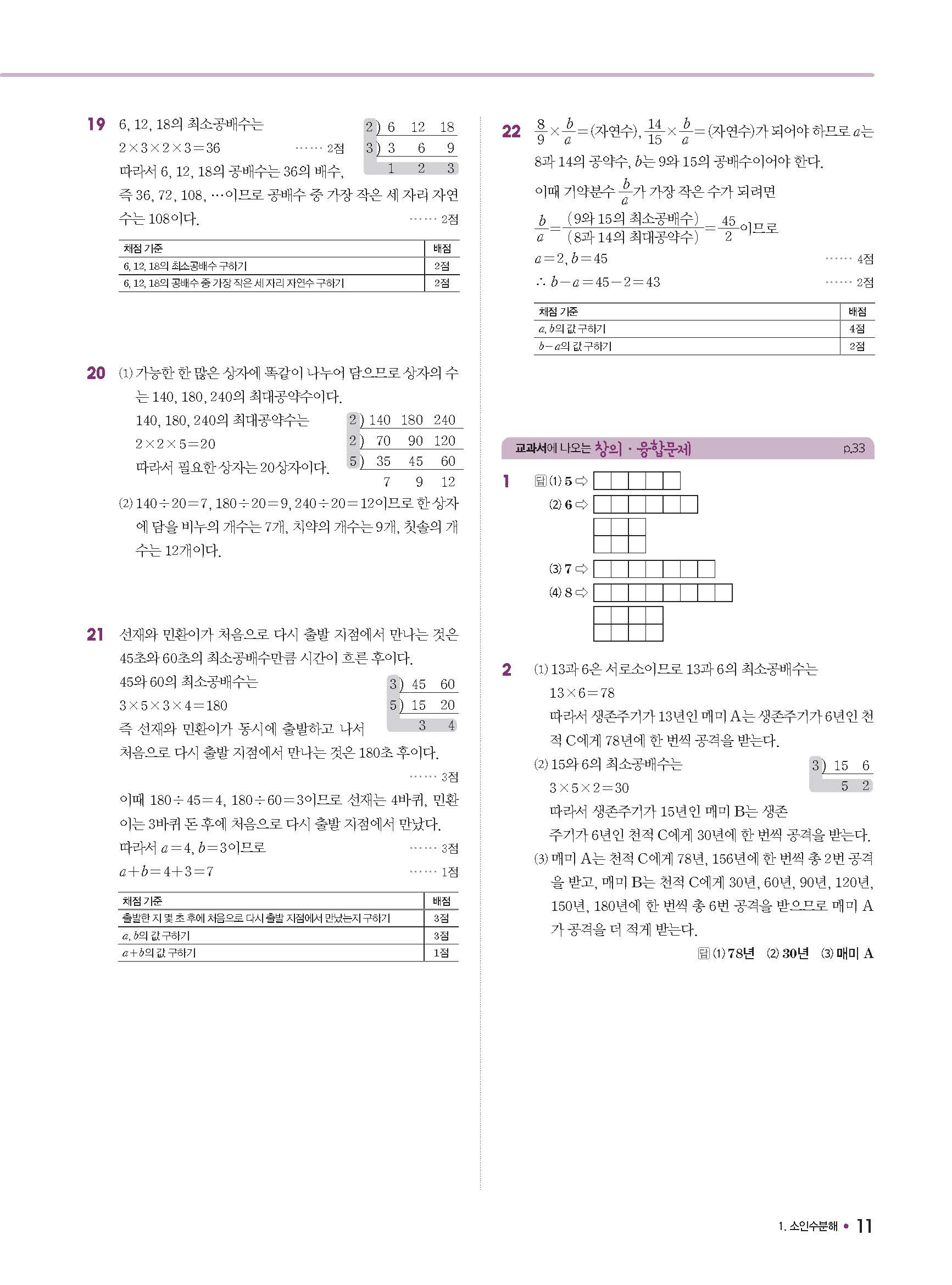 체크체크 중등수학 중1상 1-1 답지 해설 사진답지 빠른답지 모바일최적화