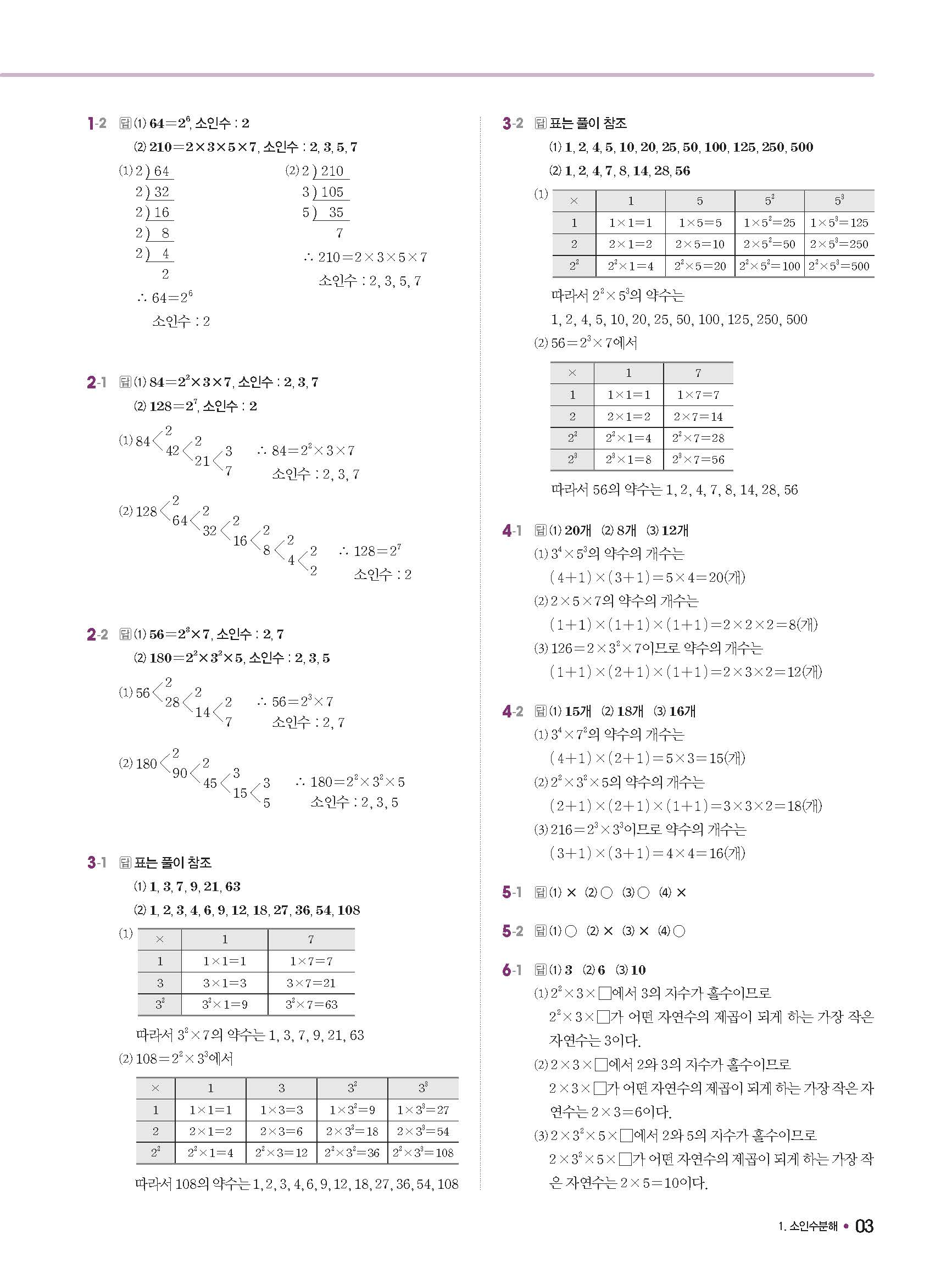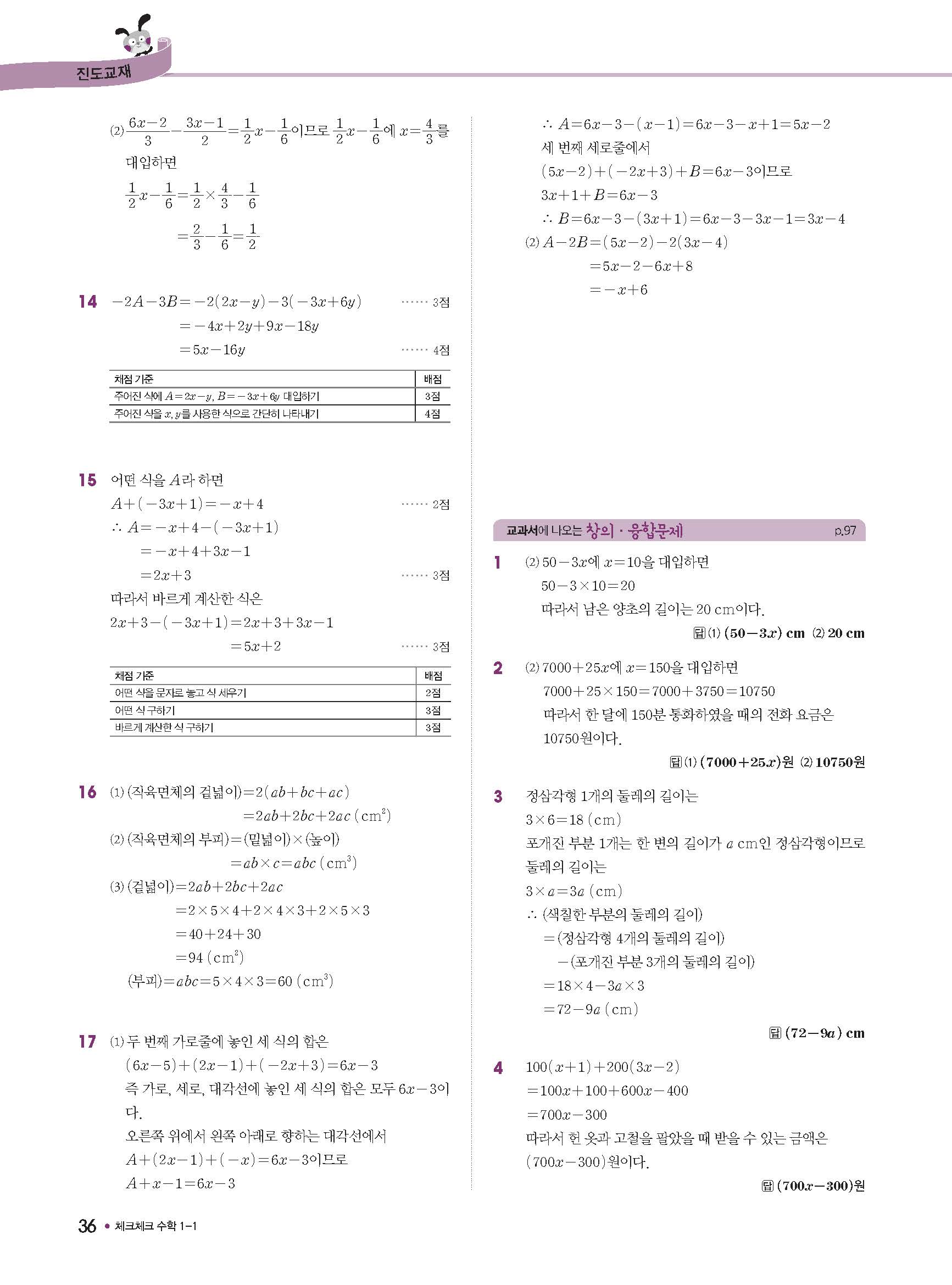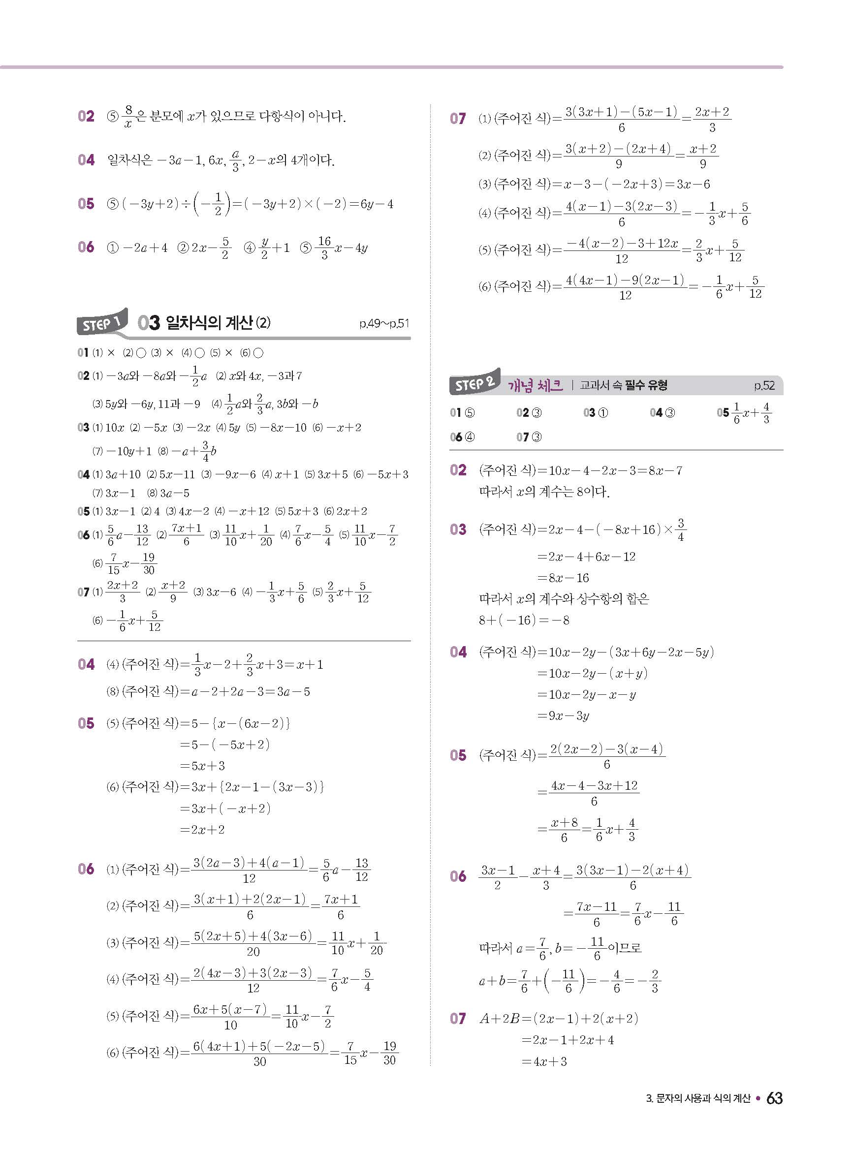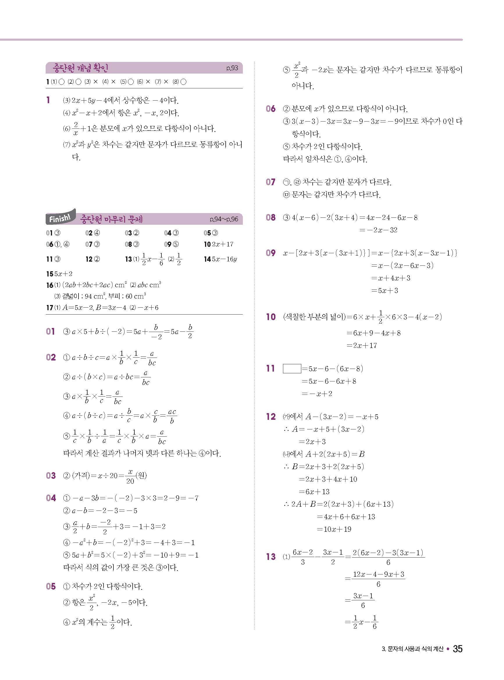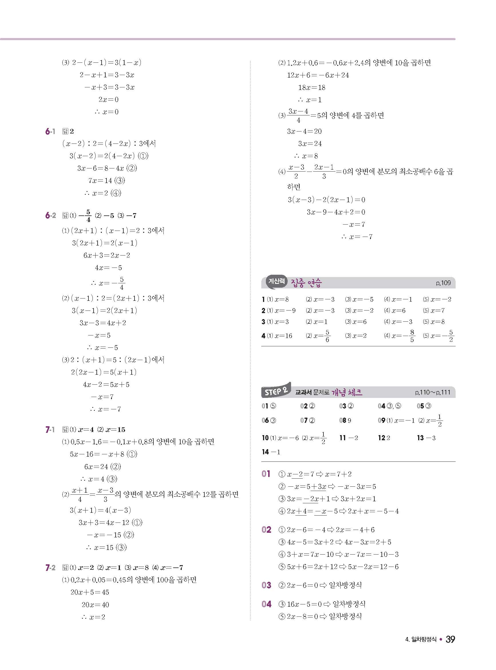 체크체크 중등수학 중1상 1-1 답지 해설 사진답지 빠른답지 모바일최적화