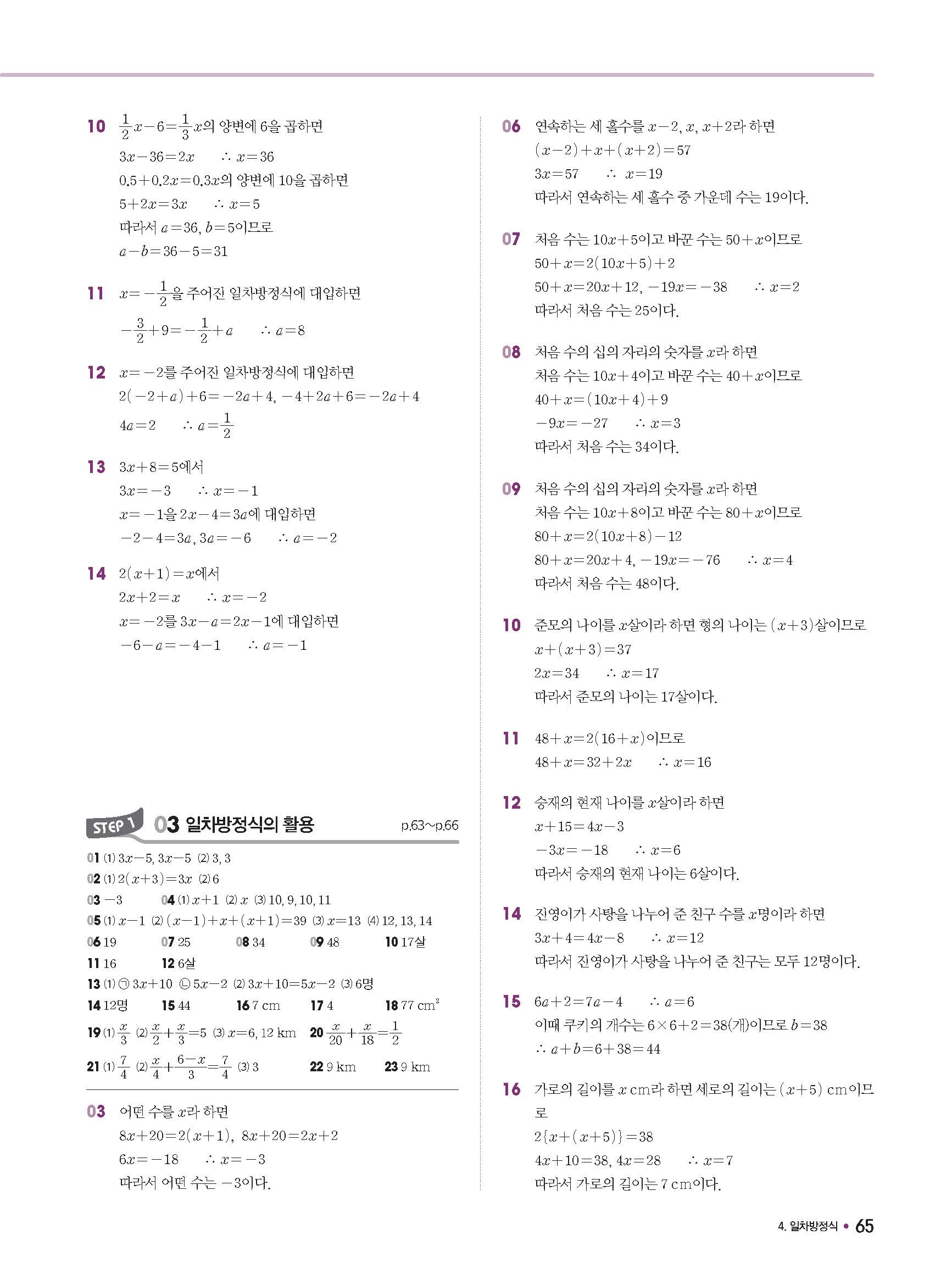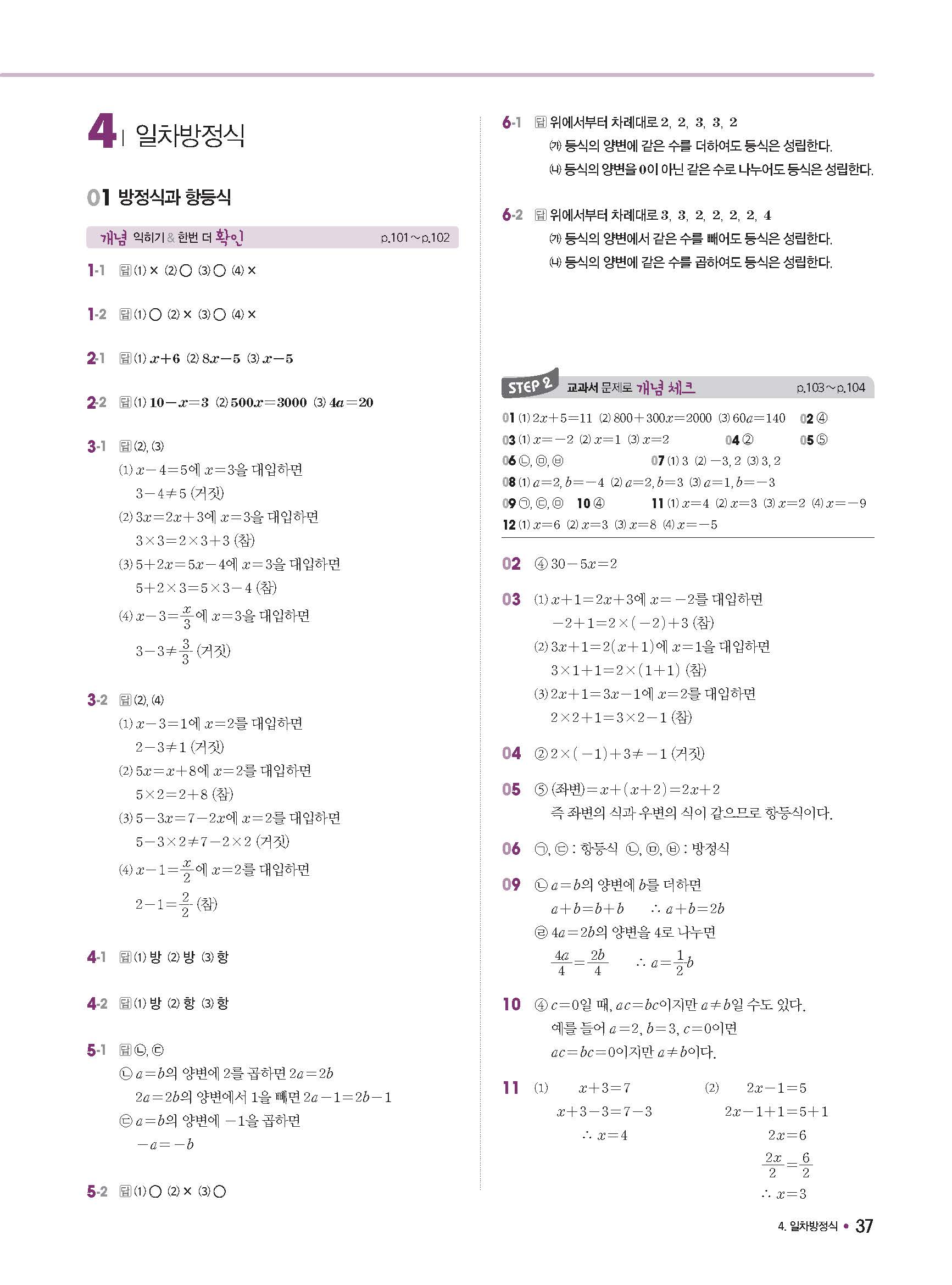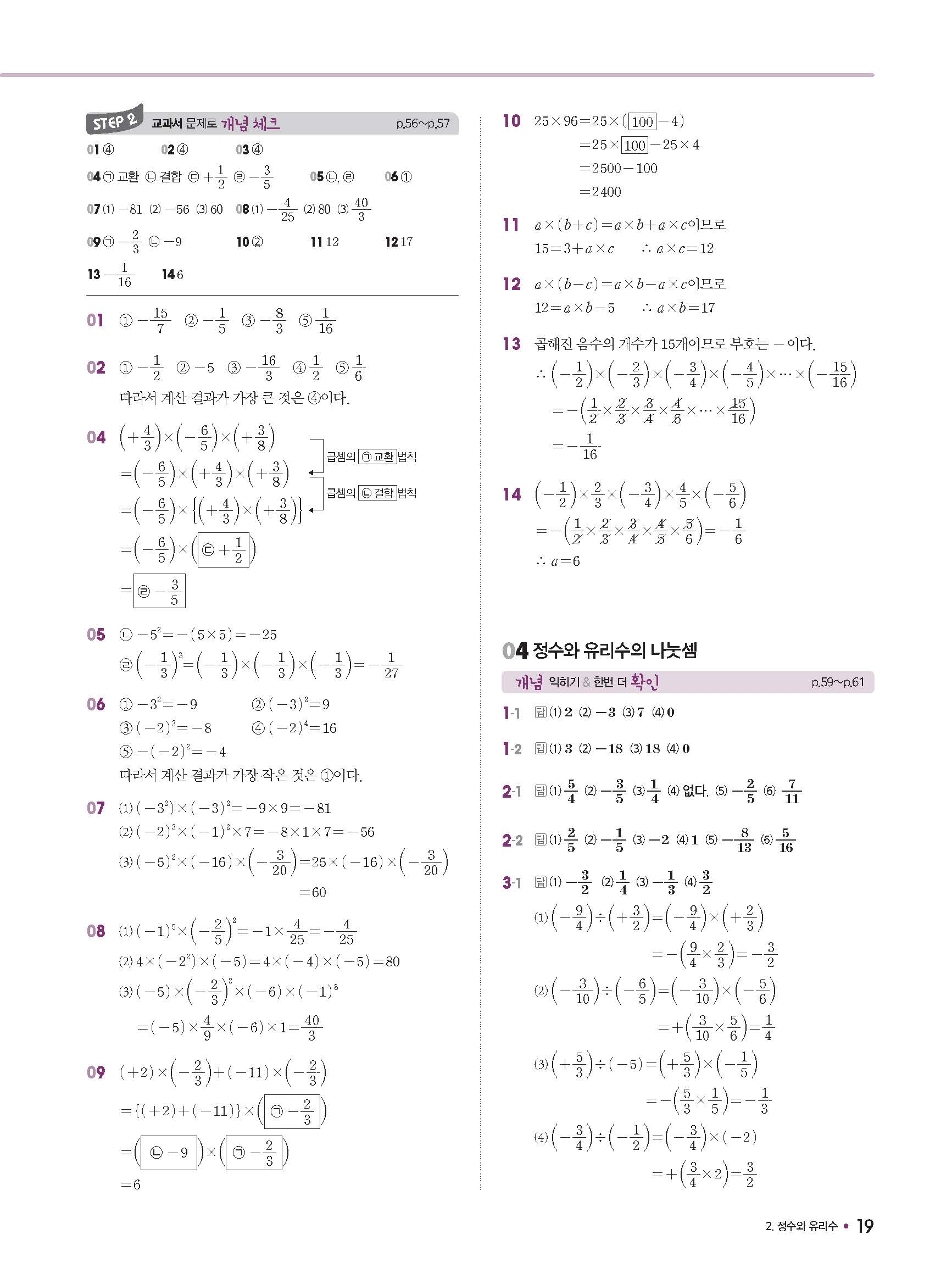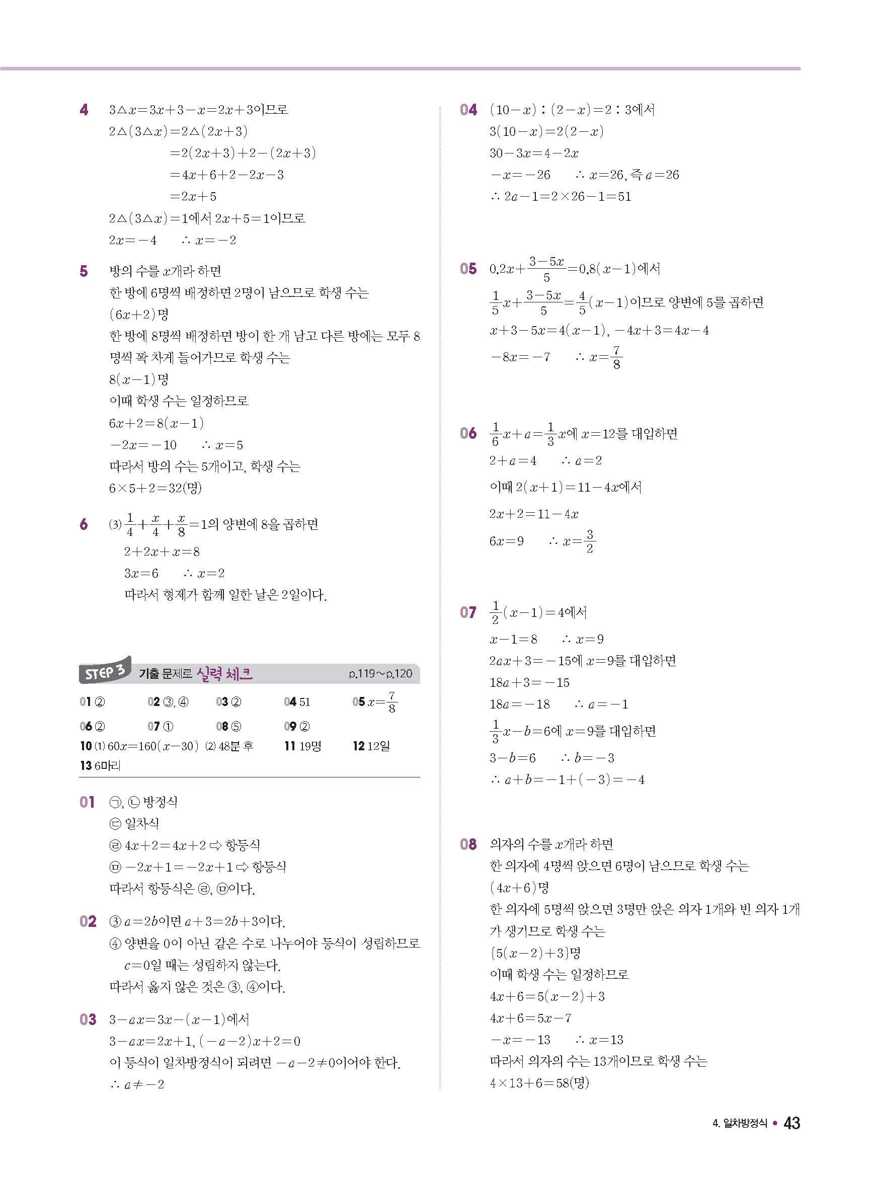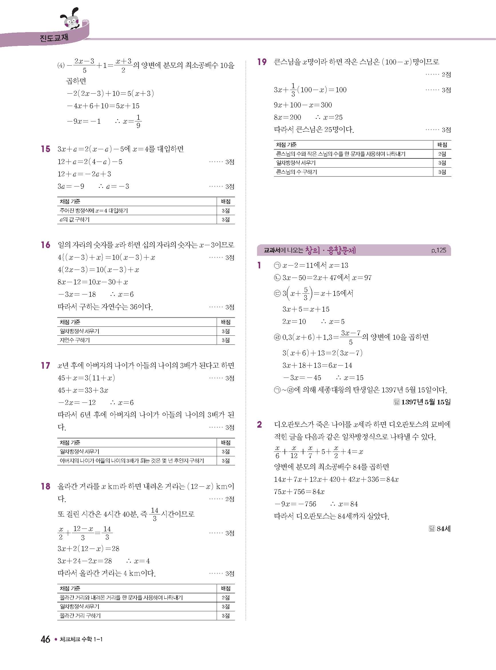 체크체크 중등수학 중1상 1-1 답지 해설 사진답지 빠른답지 모바일최적화
