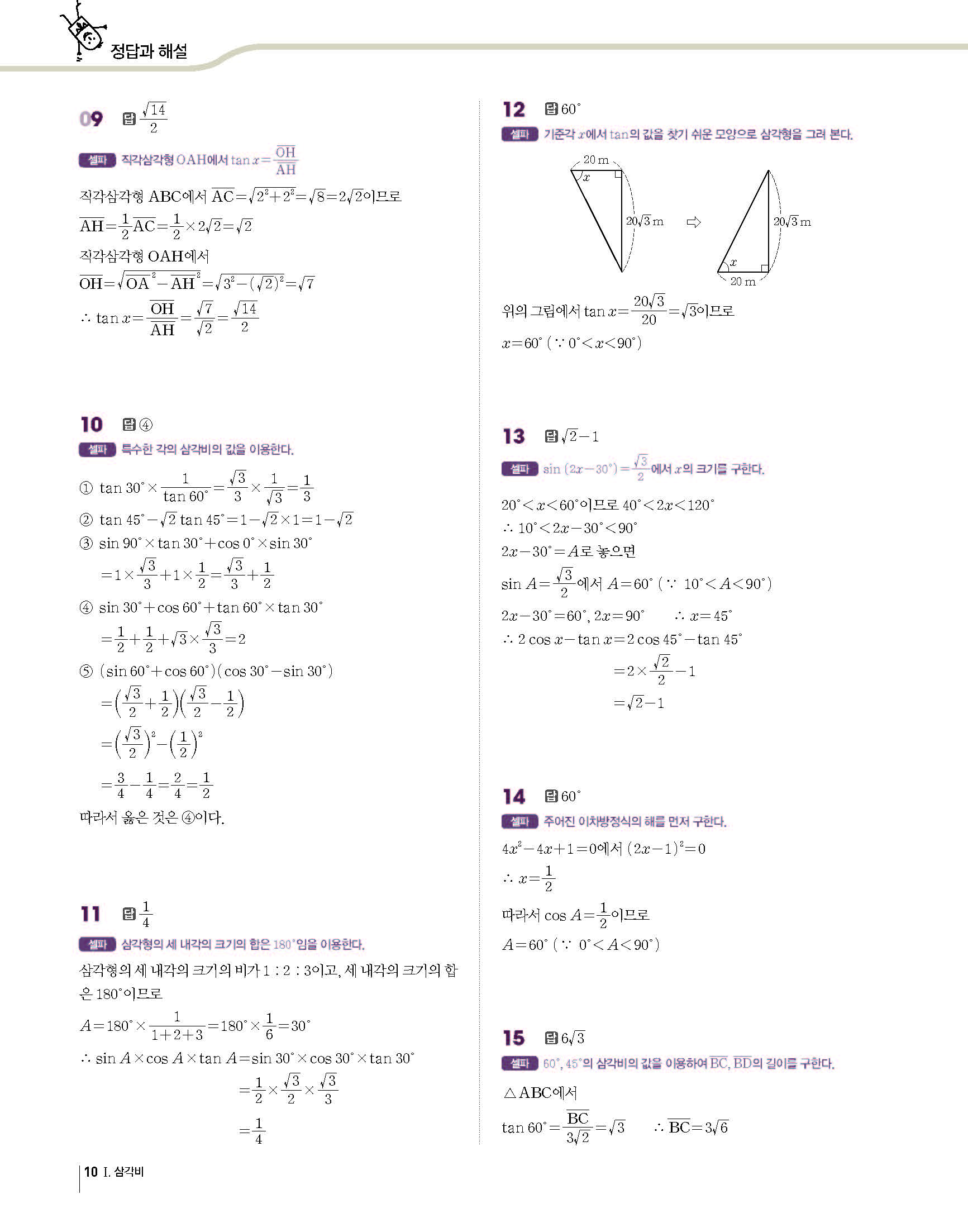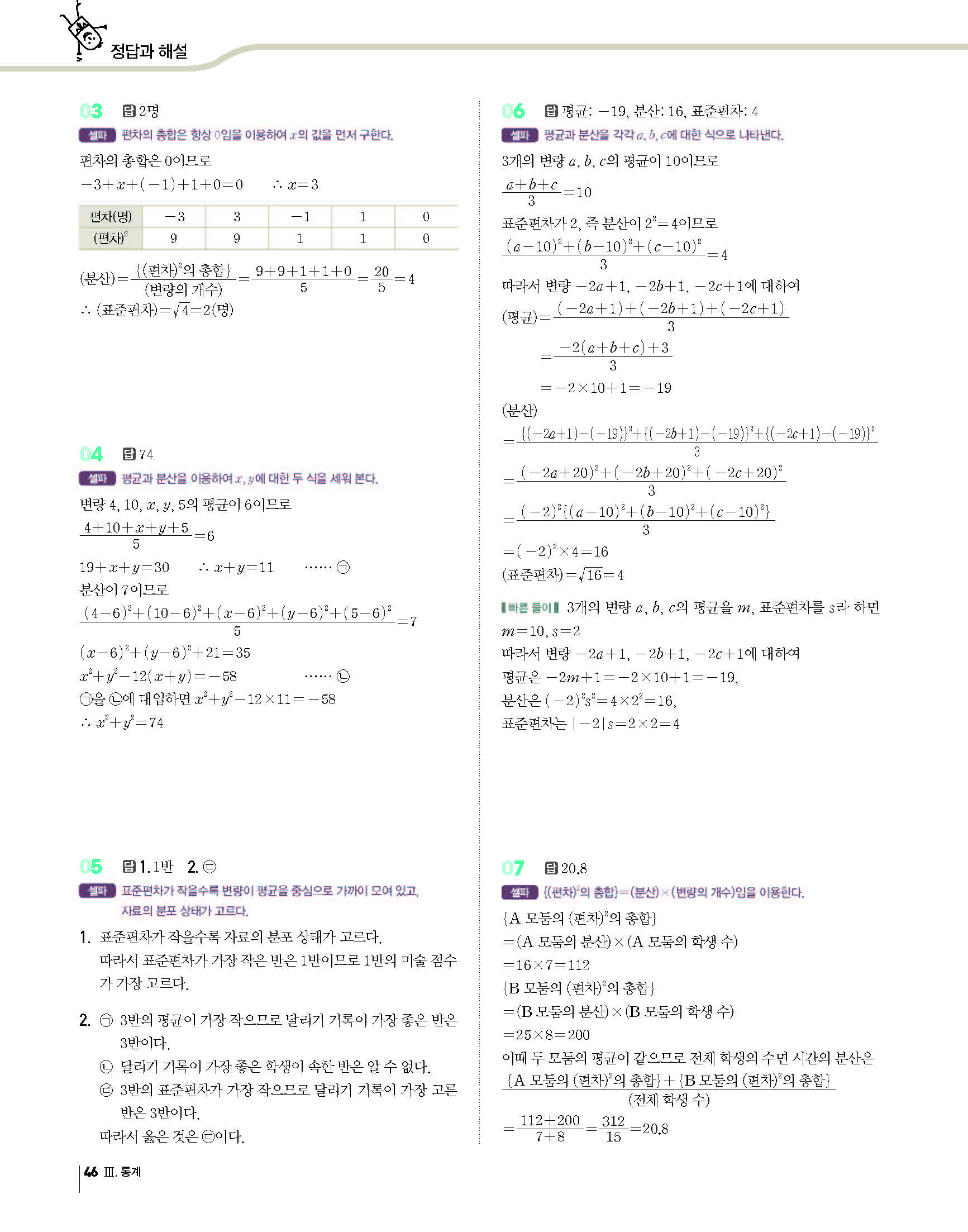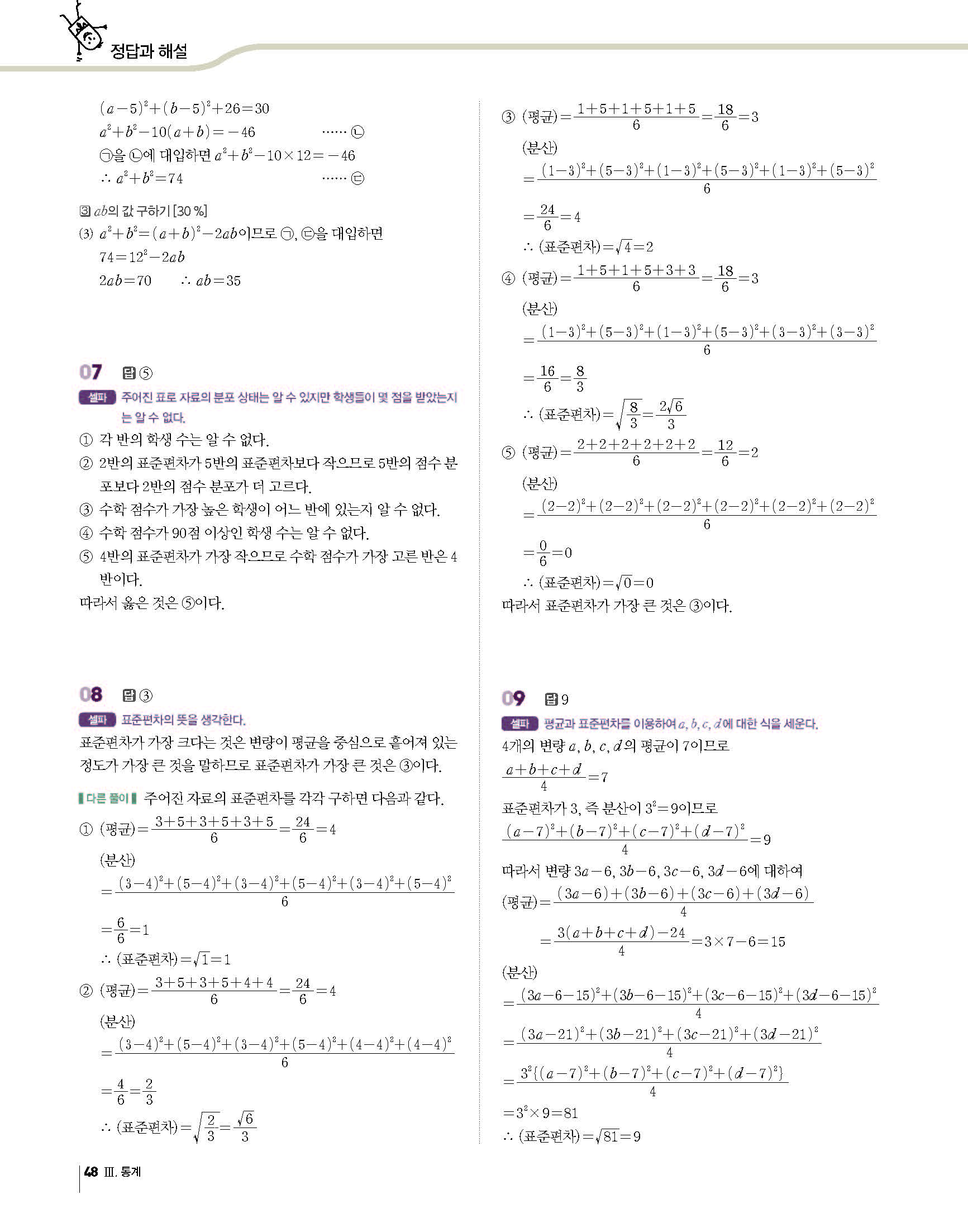 셀파수학 중등수학 중3하 3-2 사진답지 빠른답지 모바일최적화