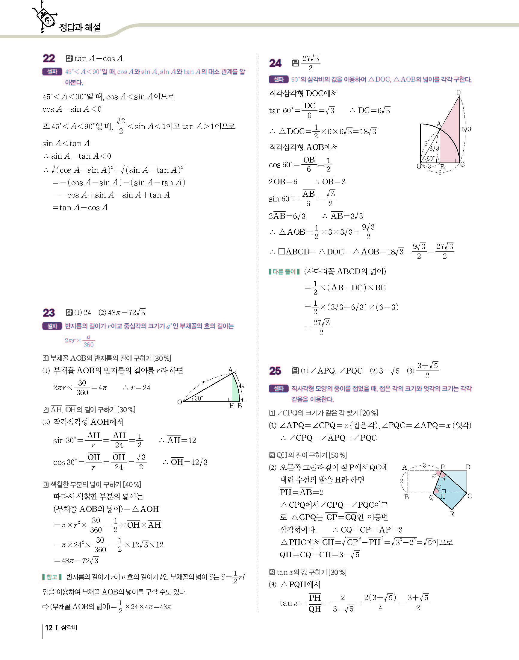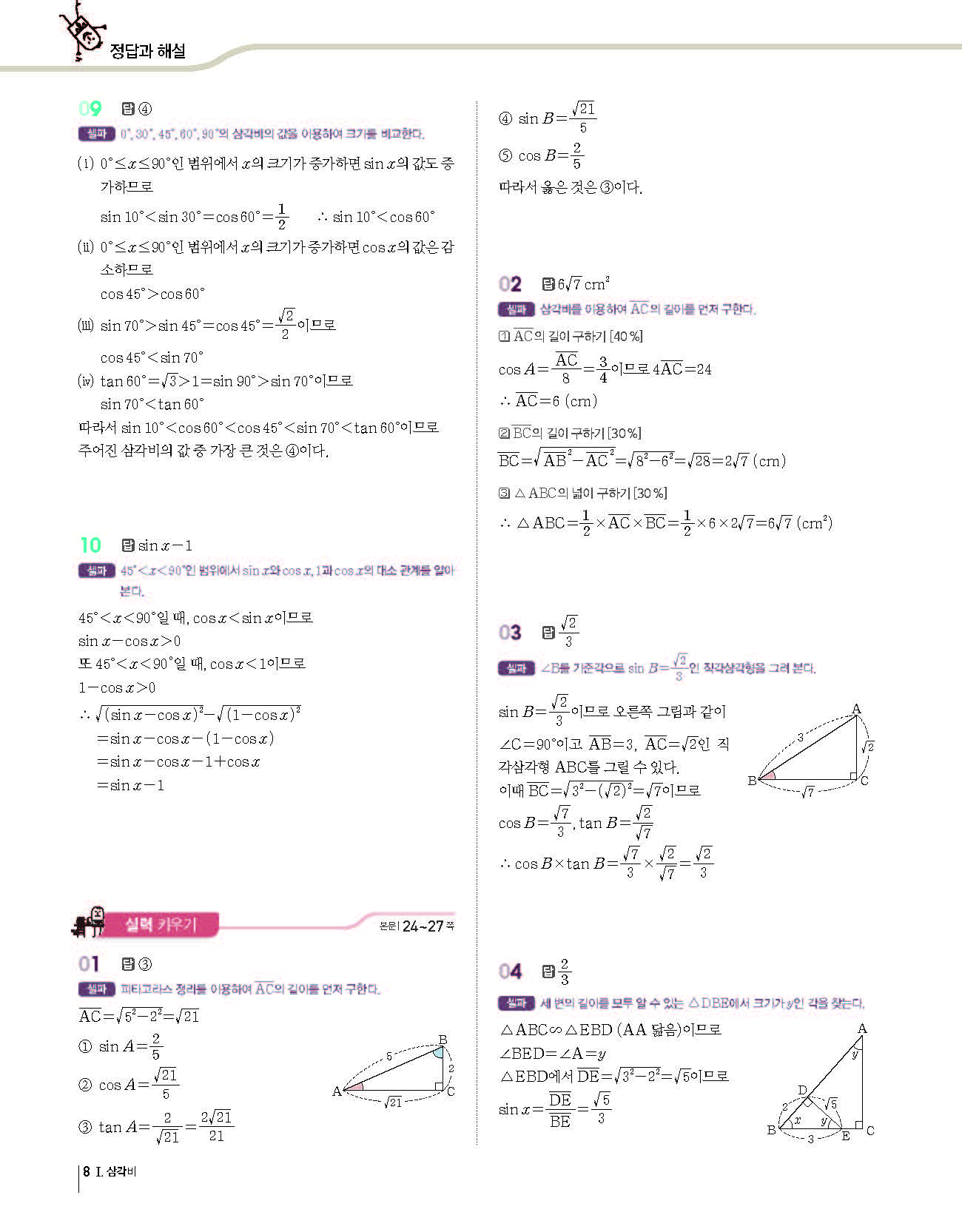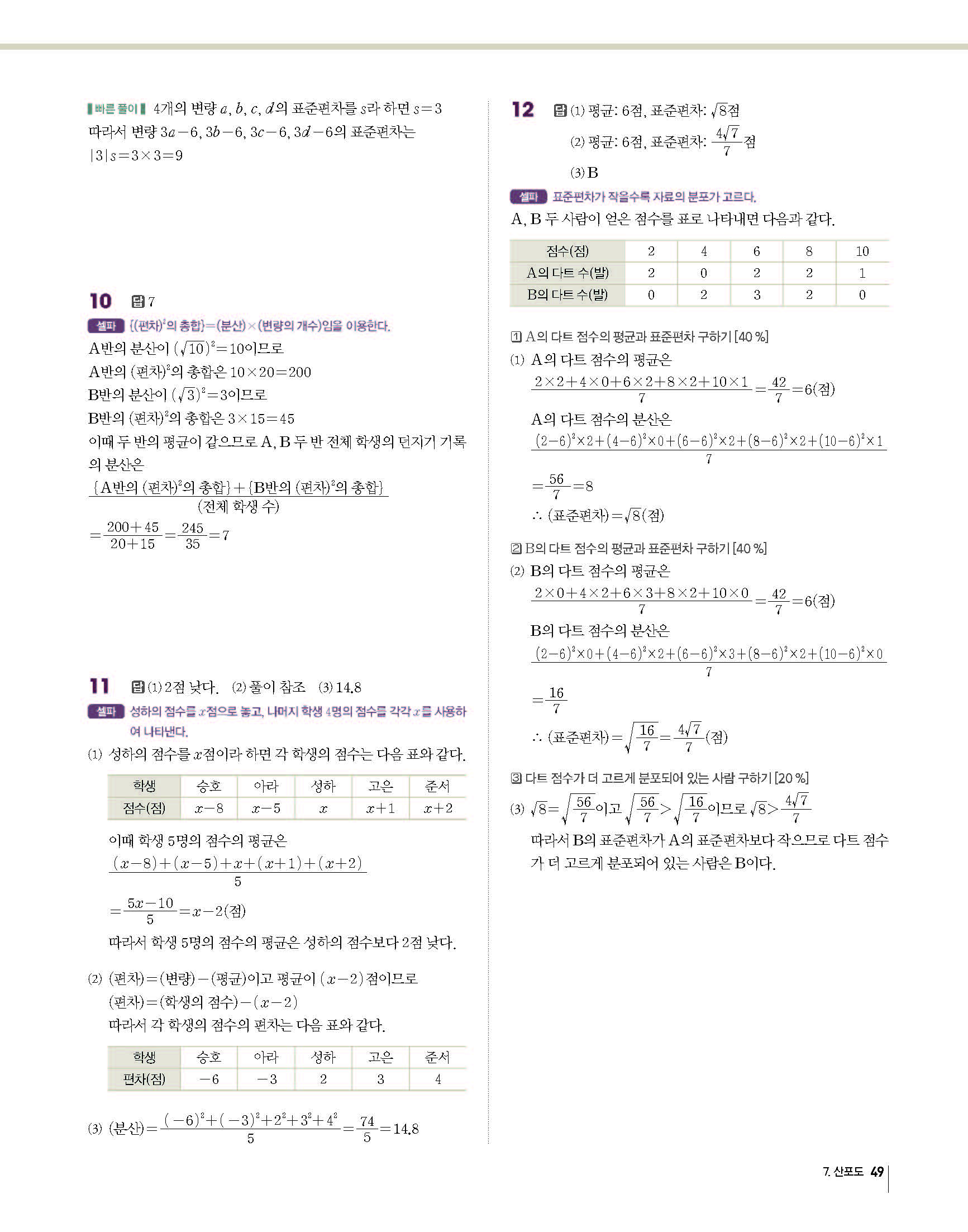 셀파수학 중등수학 중3하 3-2 사진답지 빠른답지 모바일최적화