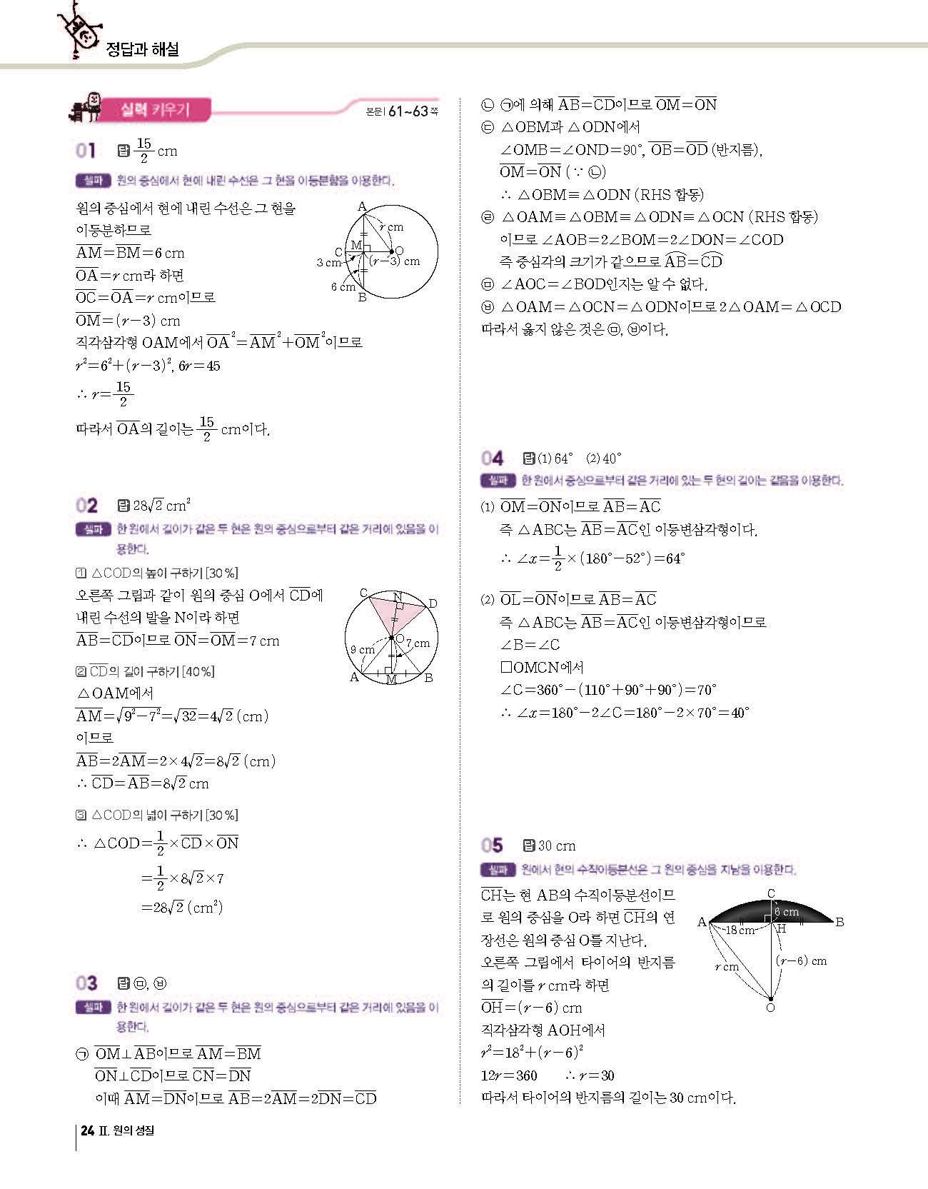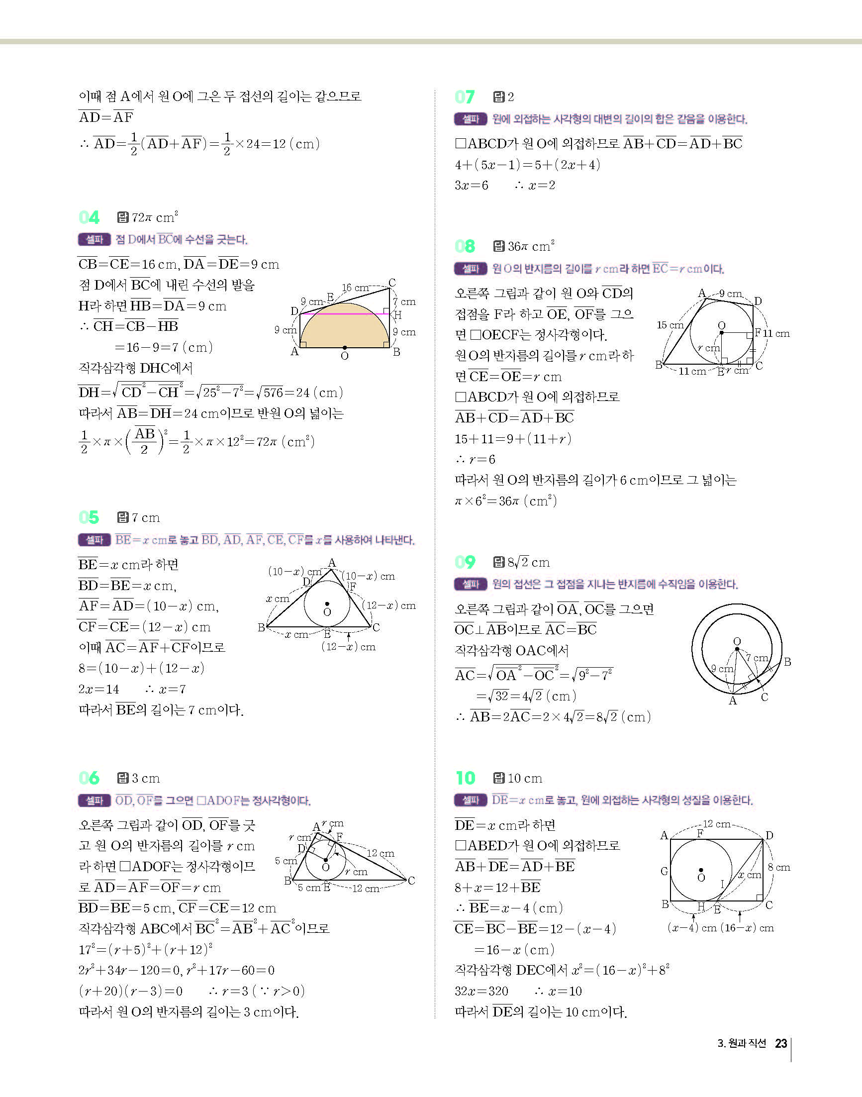 | 천재교육 류희찬 중3 수학교과서 답지 | |